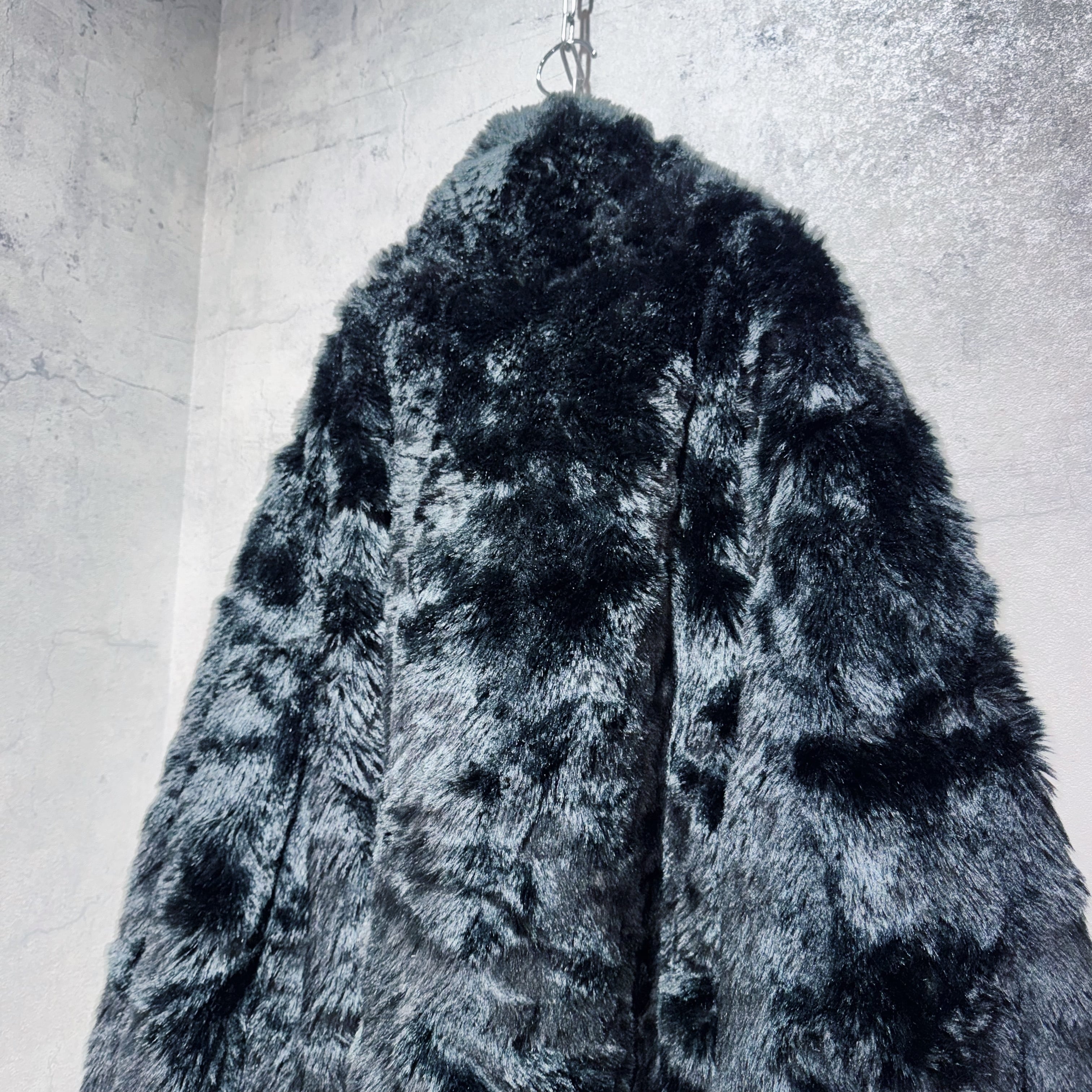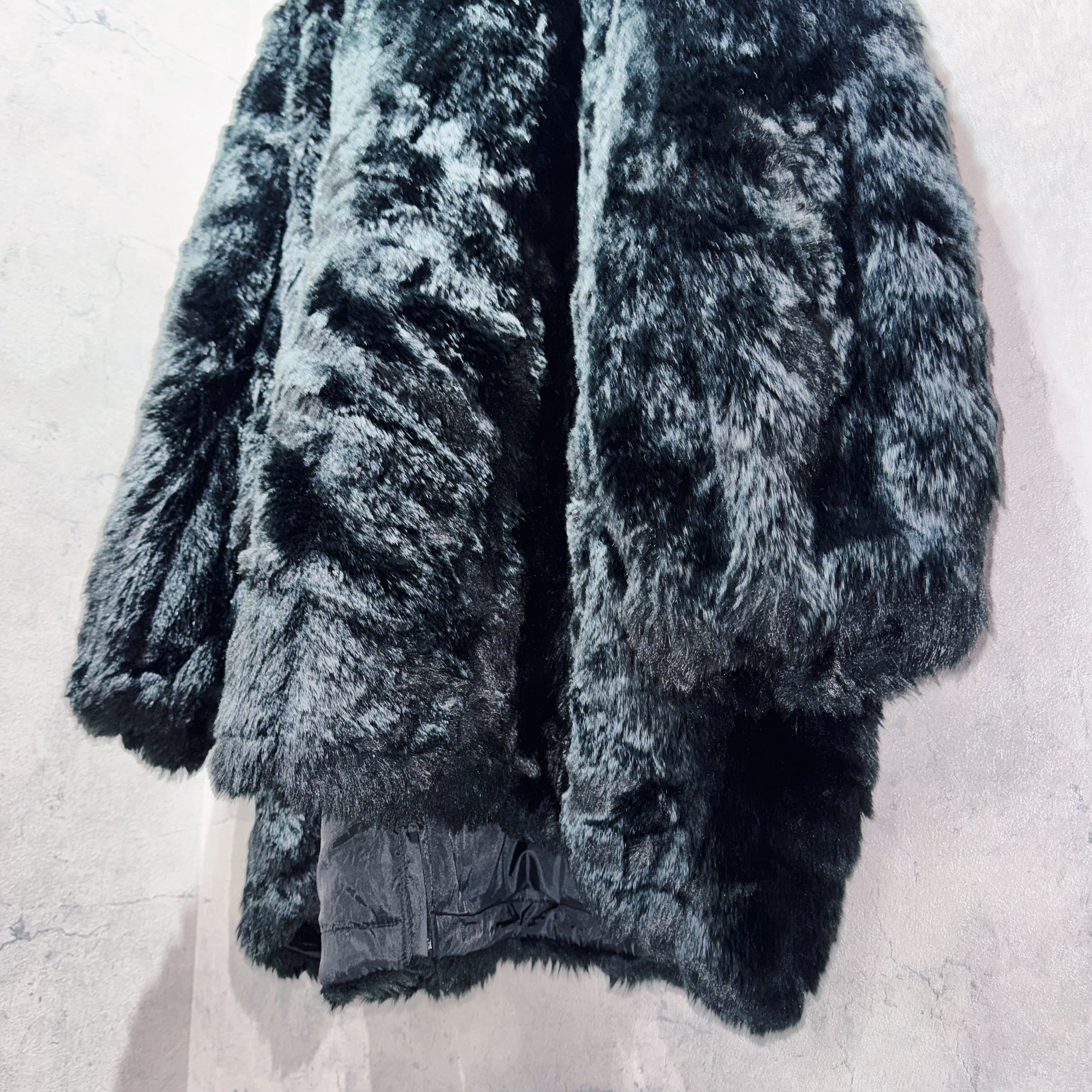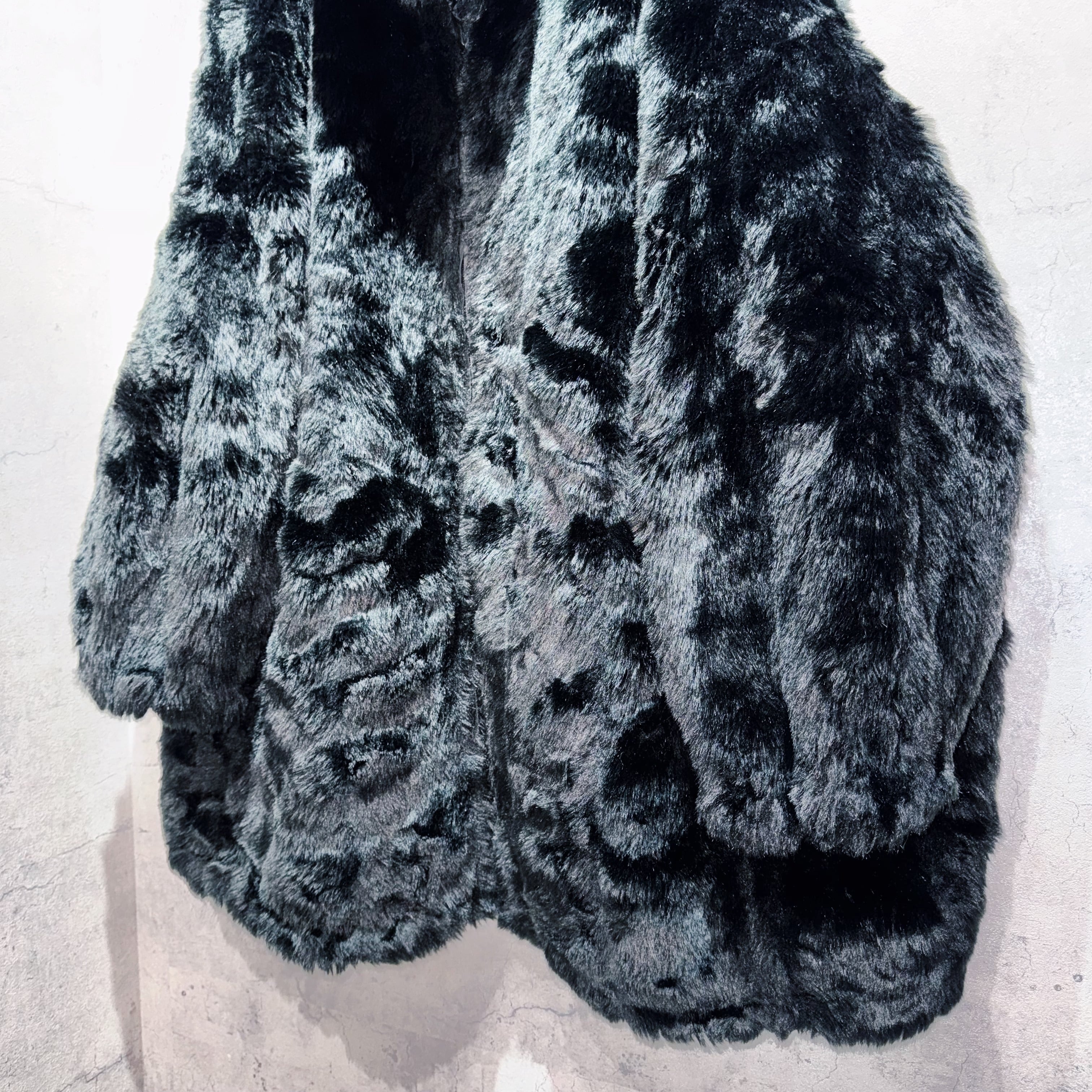 ヴィンテージヘビーブラックカラーフェイクファーコート