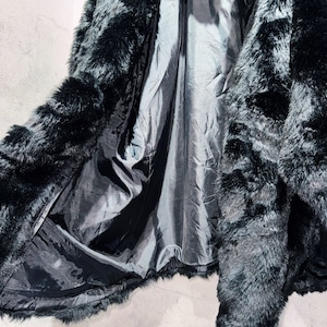 煌びやかな光沢を帯び、柔らかくふんわりとした一度触れればヤミツキになってしまうほどのモッフモフのファーを採用したブラックファーコート。重厚感を演出しながらエレガンスな佇まいでその姿はまさに圧巻…