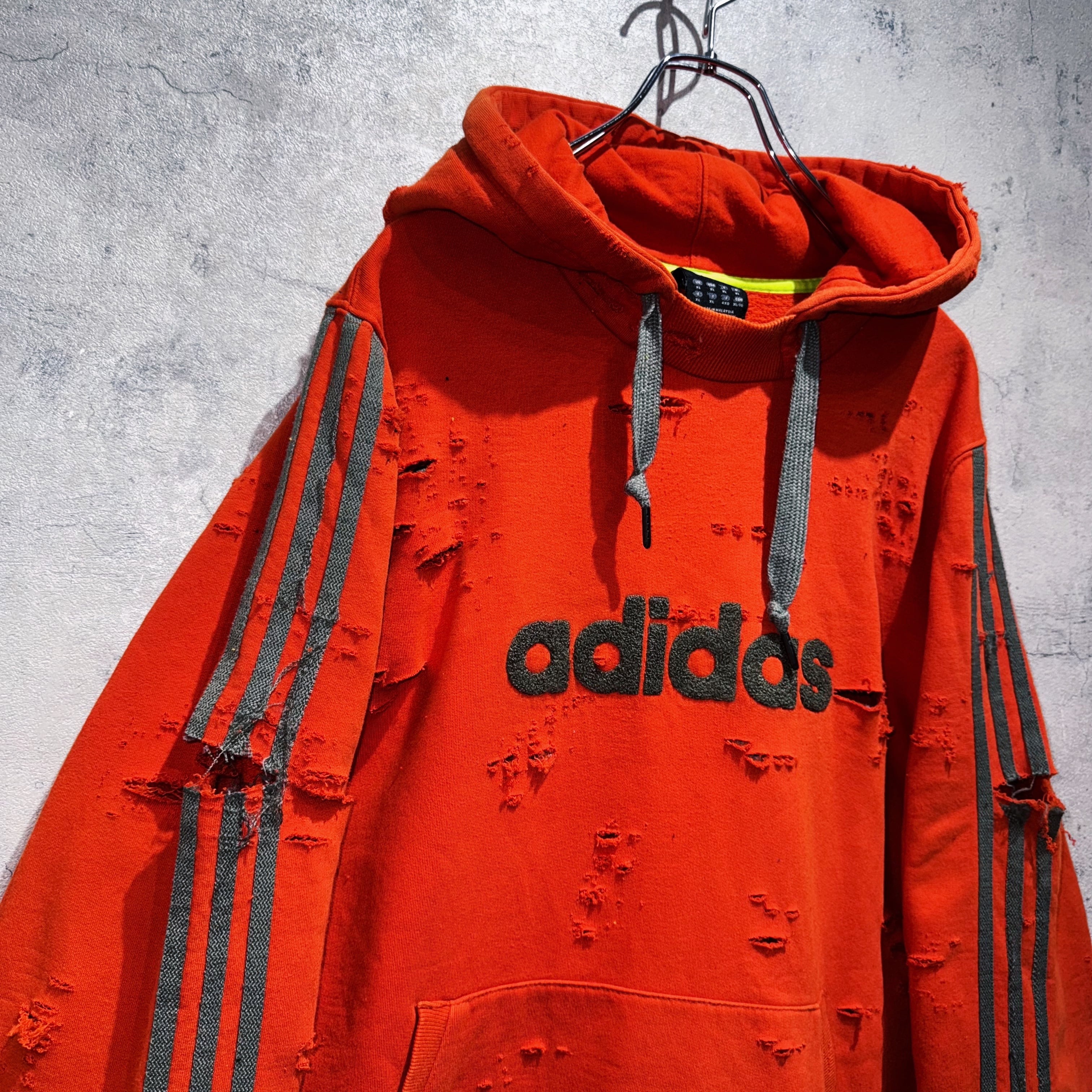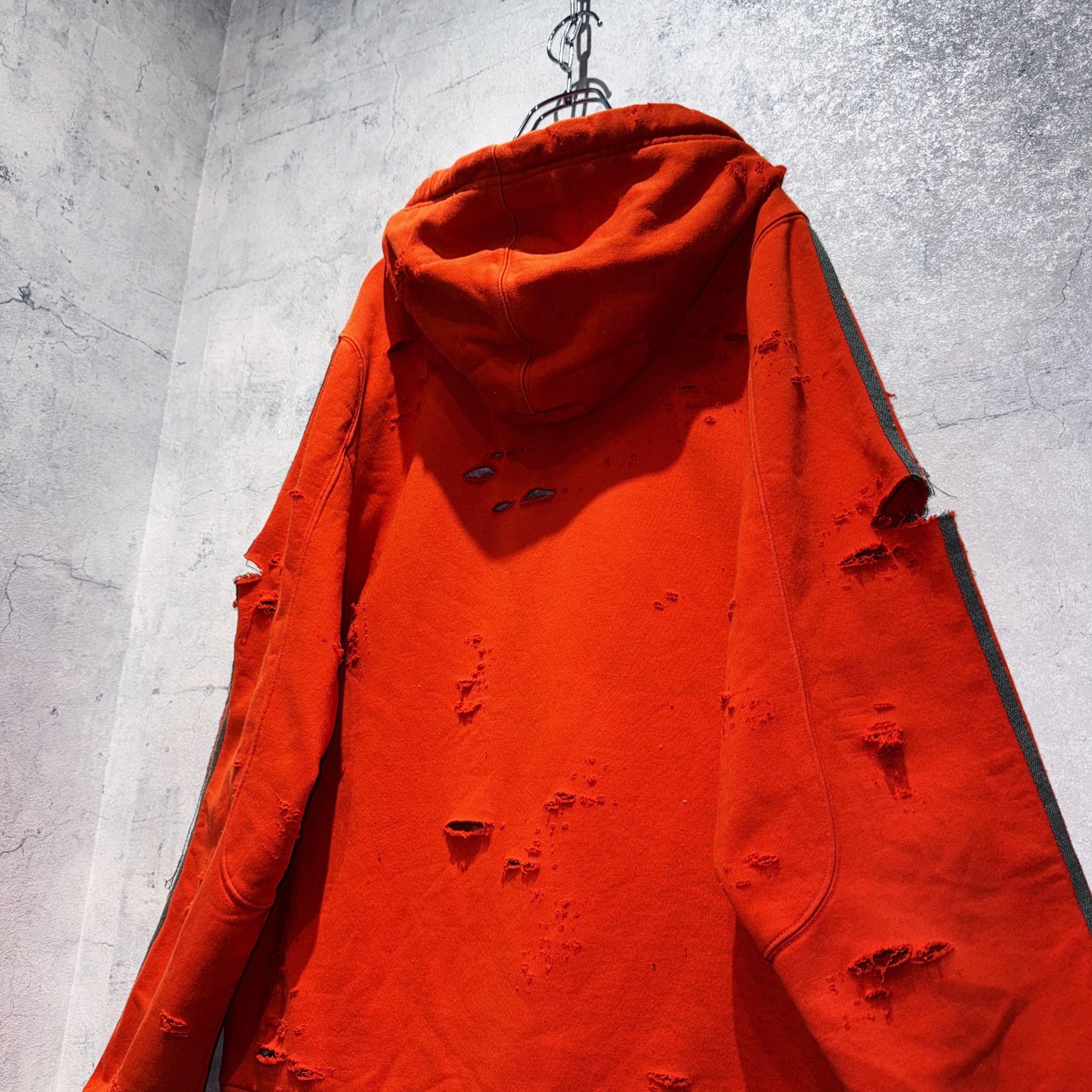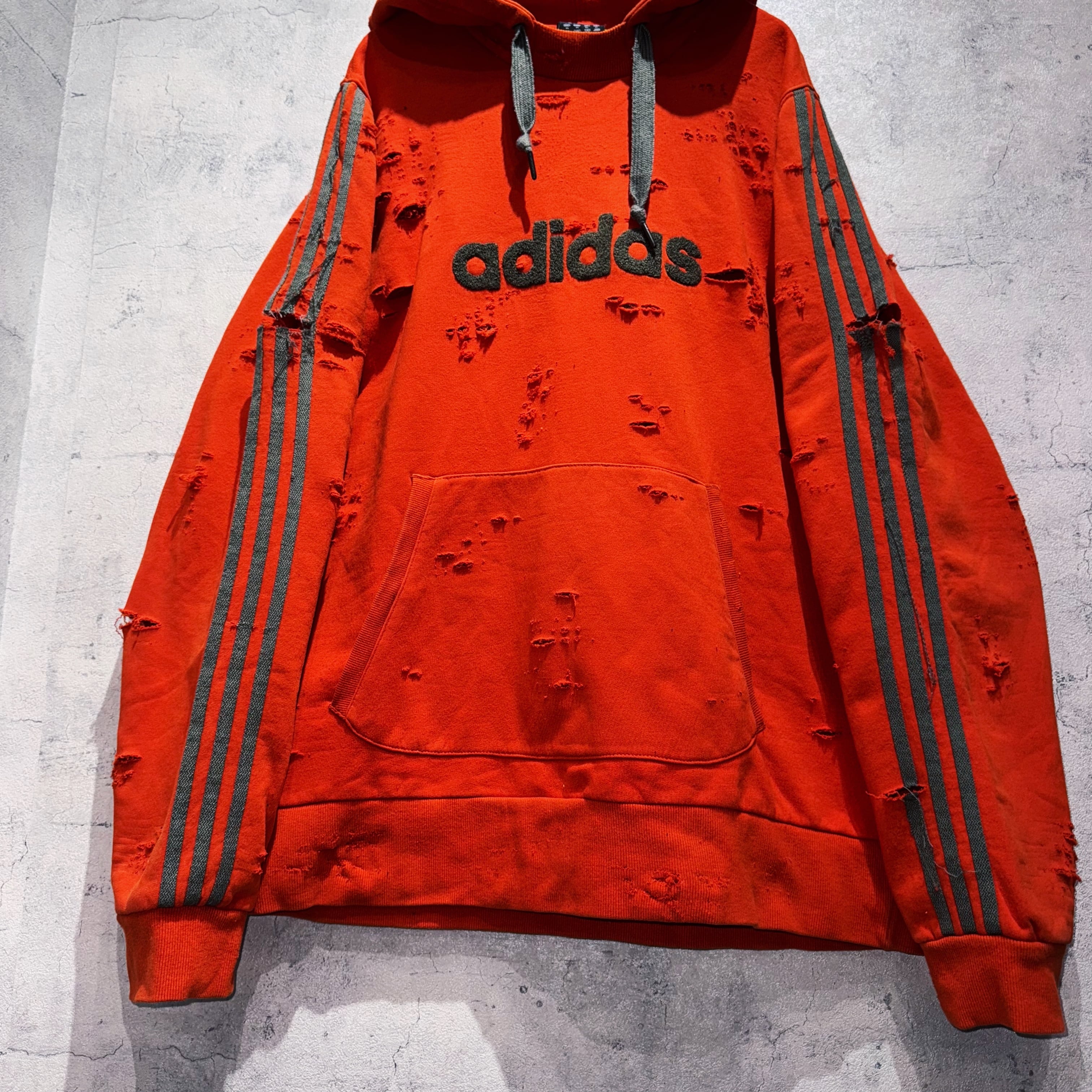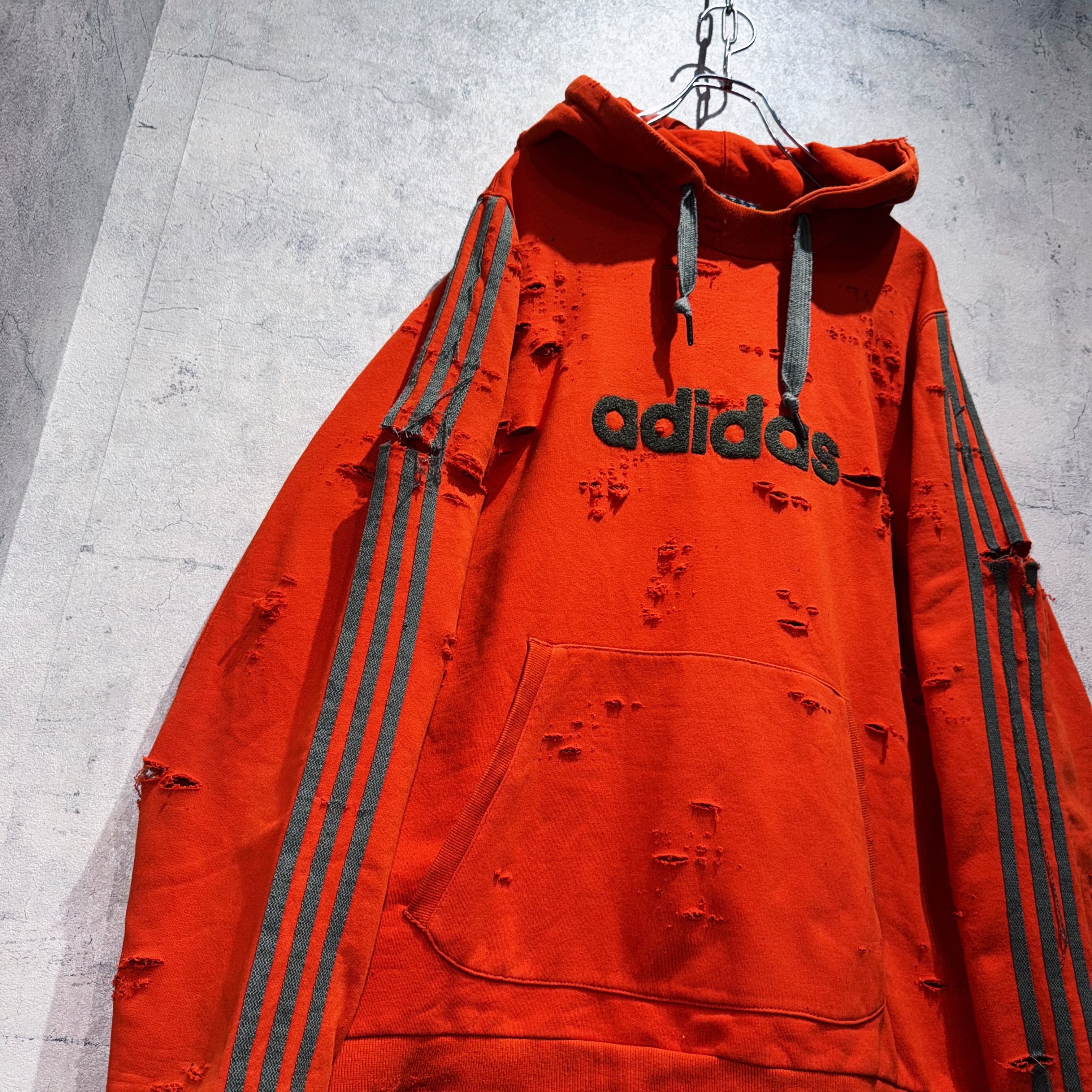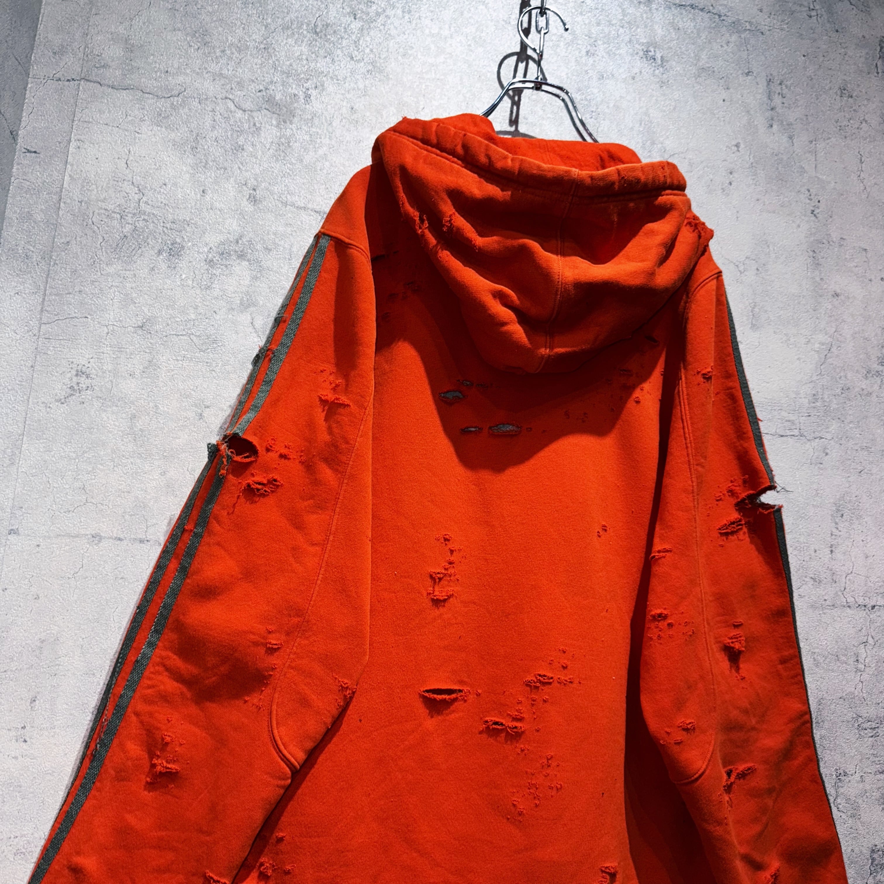 "ADIDAS"のボディを贅沢に採用したボロスウェット。デザイナーズブランドでもダメージアイテムが近年増えてきていますが、それに引けを取らない精密なダメージ技術は間違いなく一流。