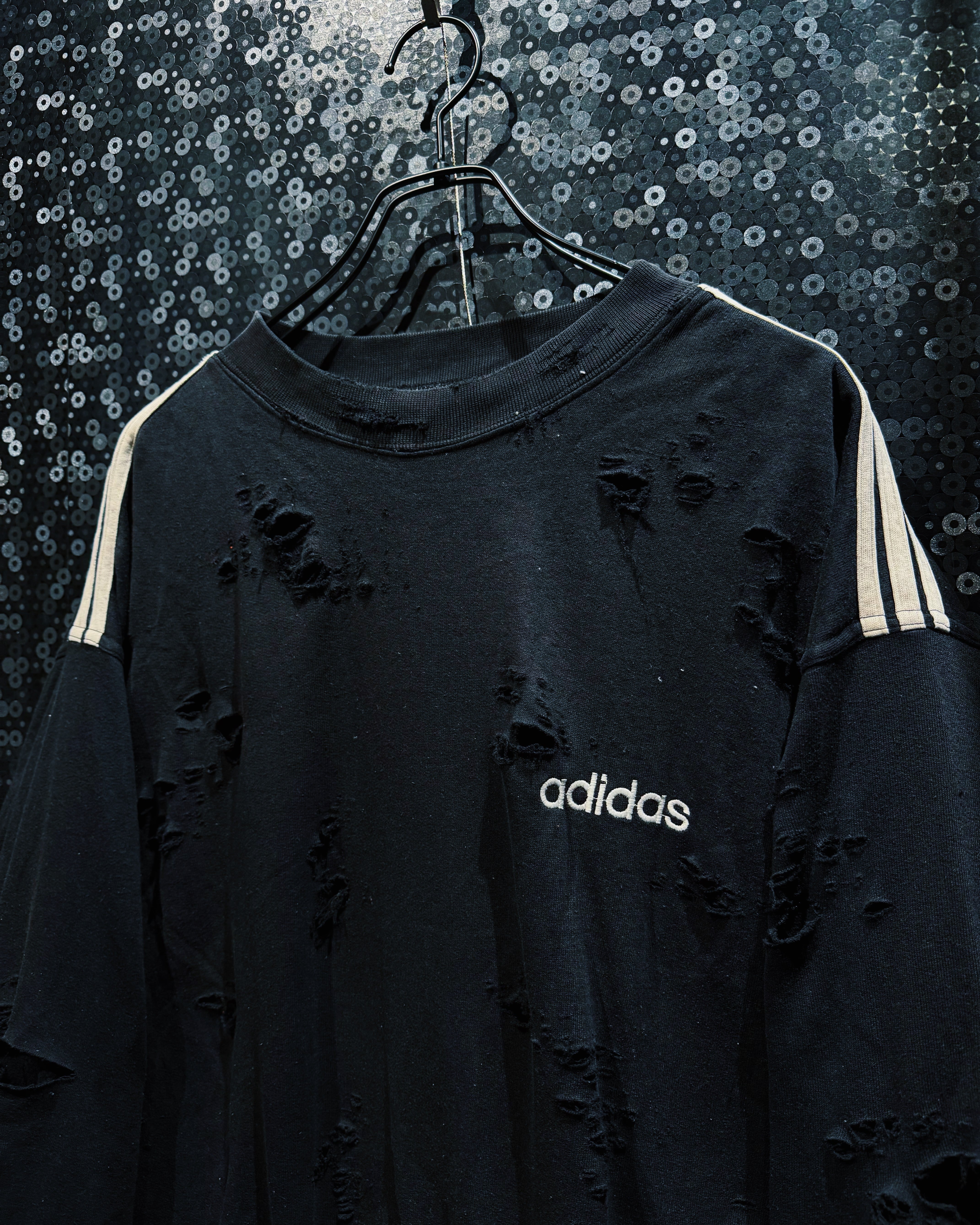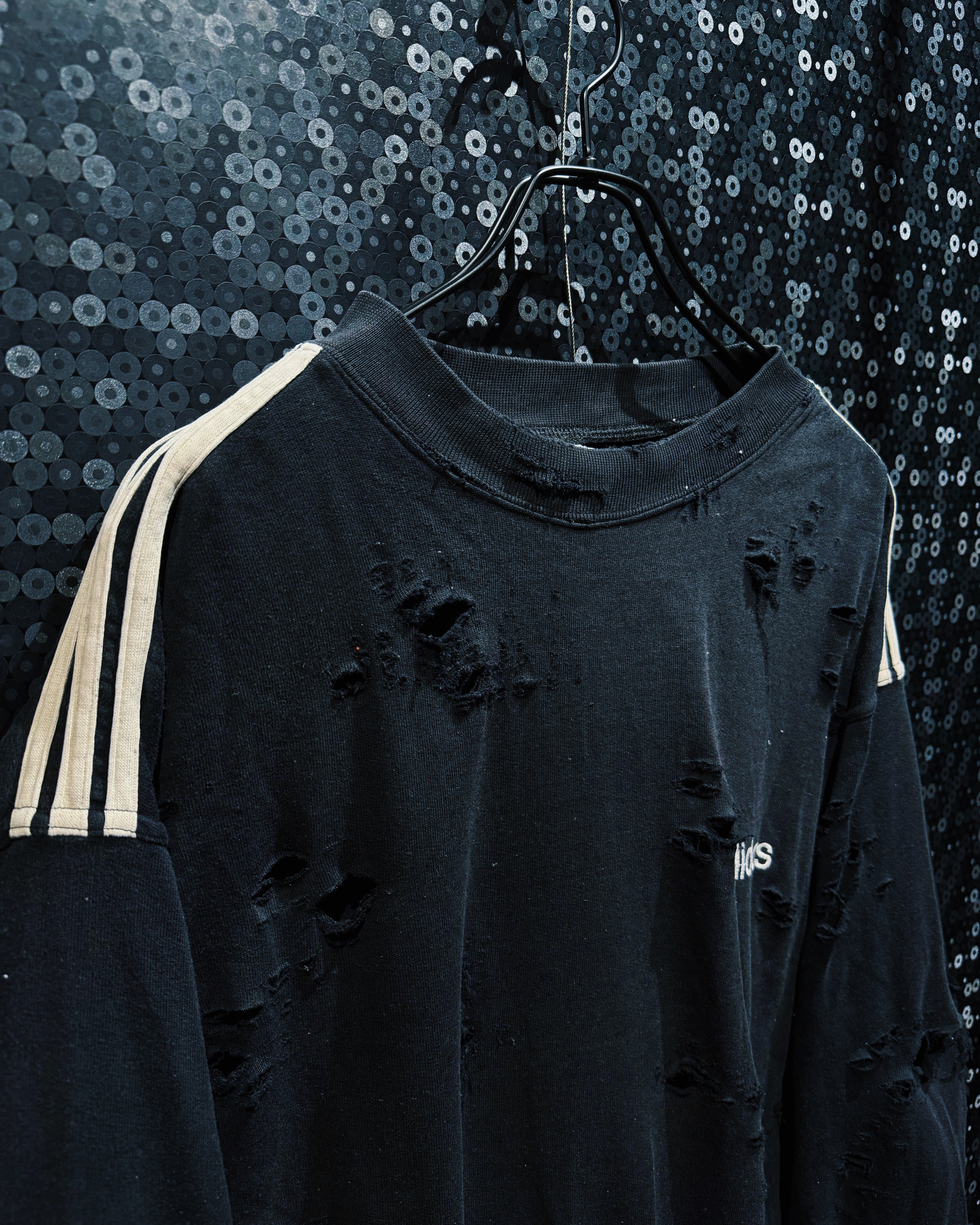 【ÆIEM】original”boro”remake” “adidas” vintage Minimal Logo Triple-Stripe Destroyed Sweat