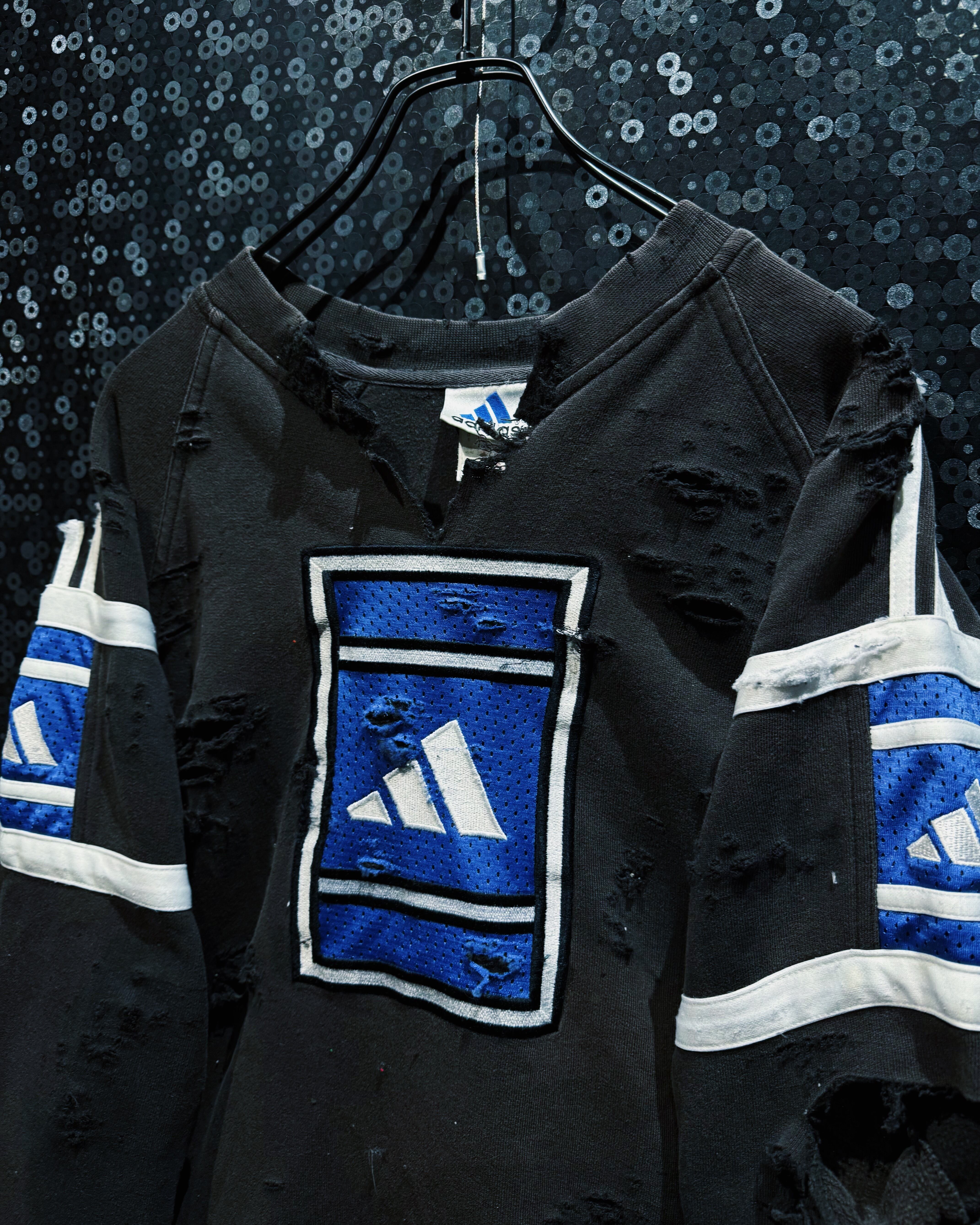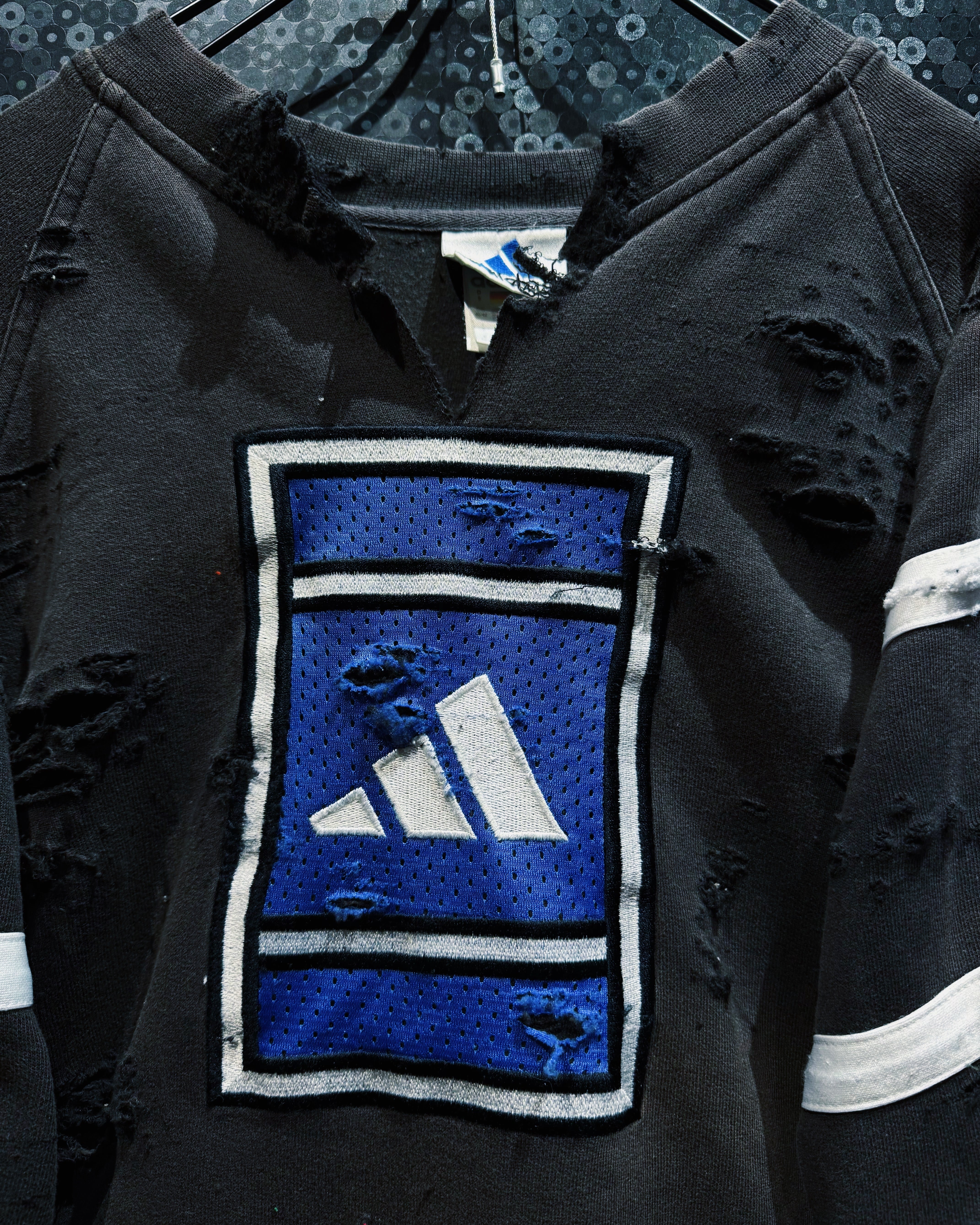 【ÆIEM】original”boro”remake” “adidas” vintage Patch-Panel Destroyed Sports Sweat Pullover
