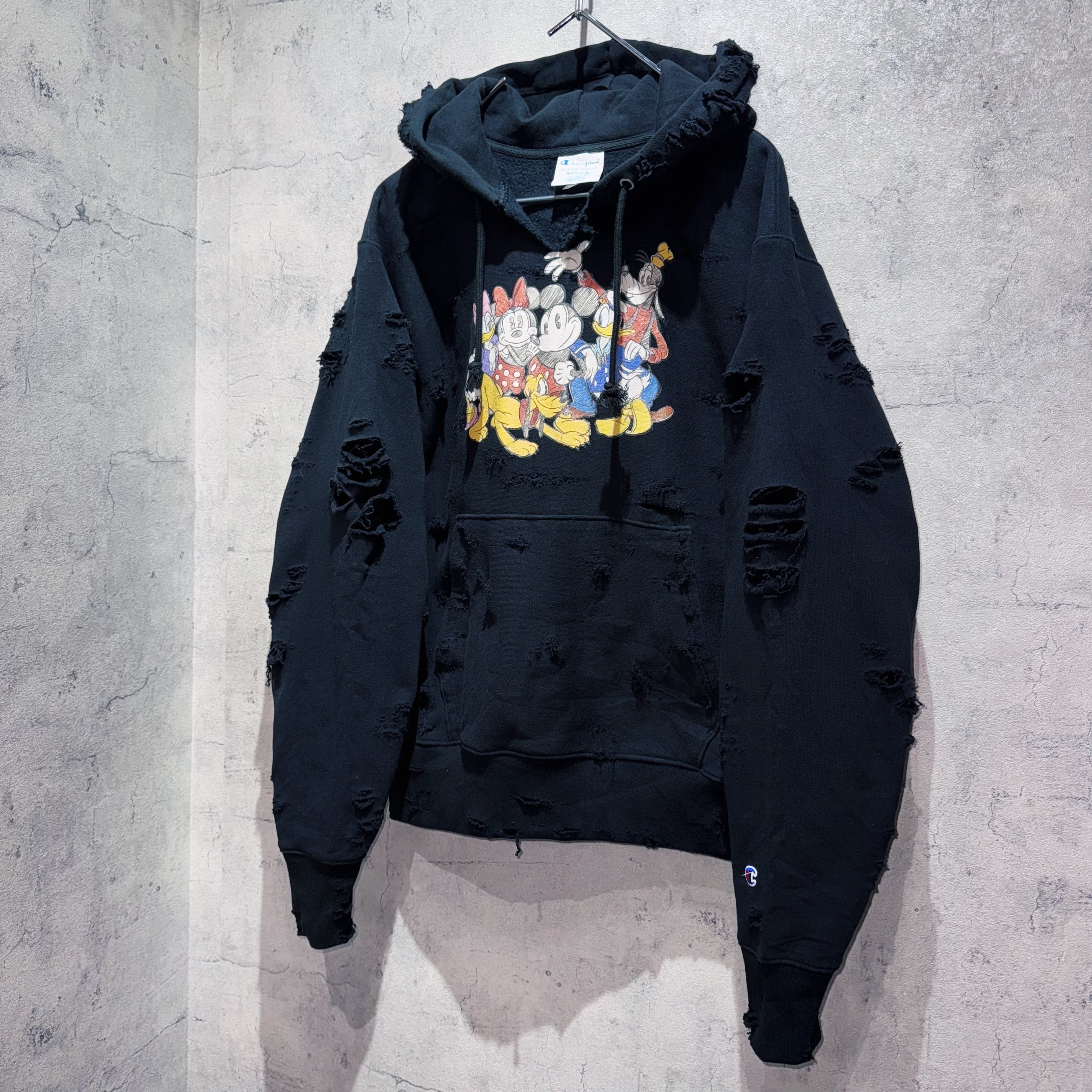 "ディズニー×チャンピオン"リバースウィーブミッキーアンドフレンズデザインボロカスタムフーディー