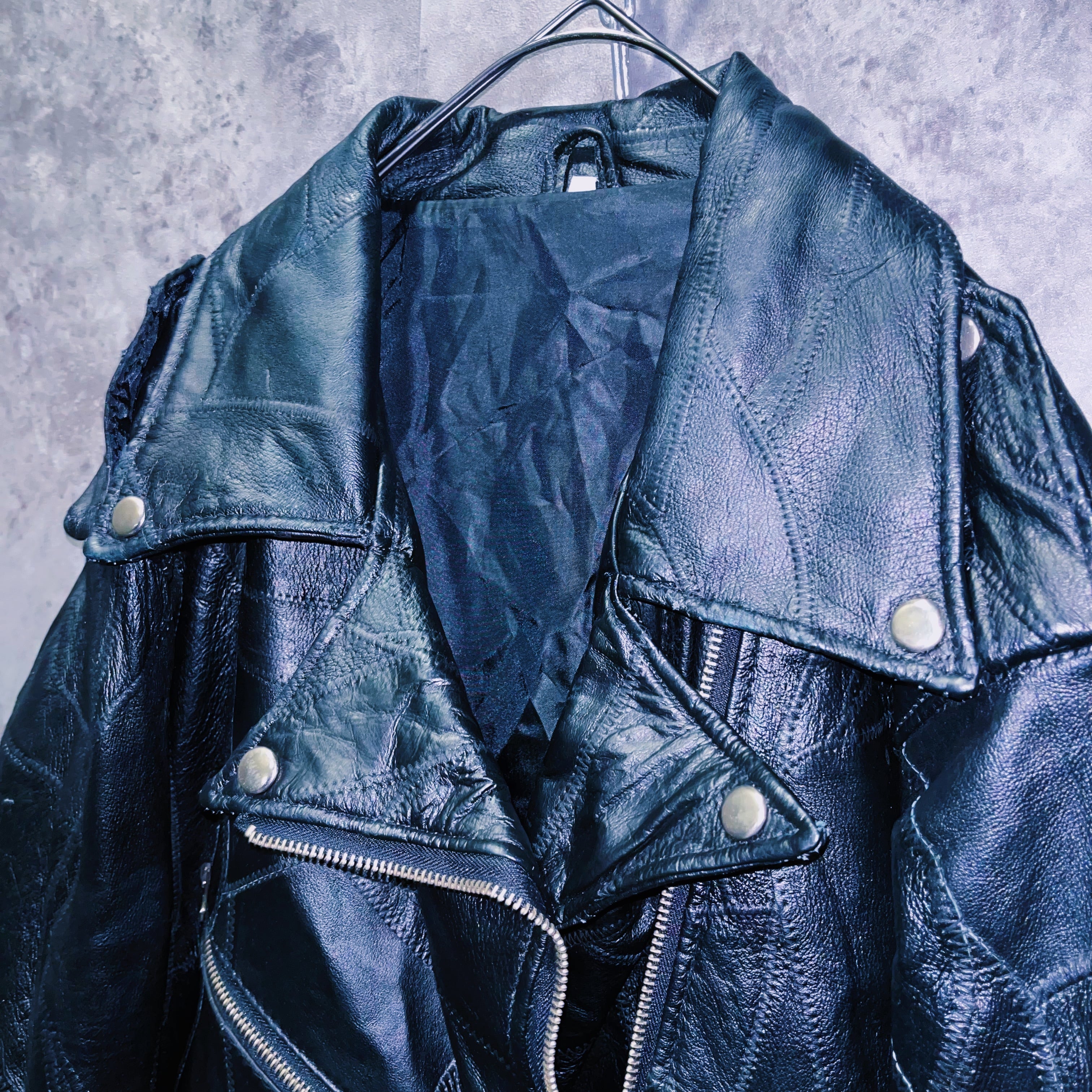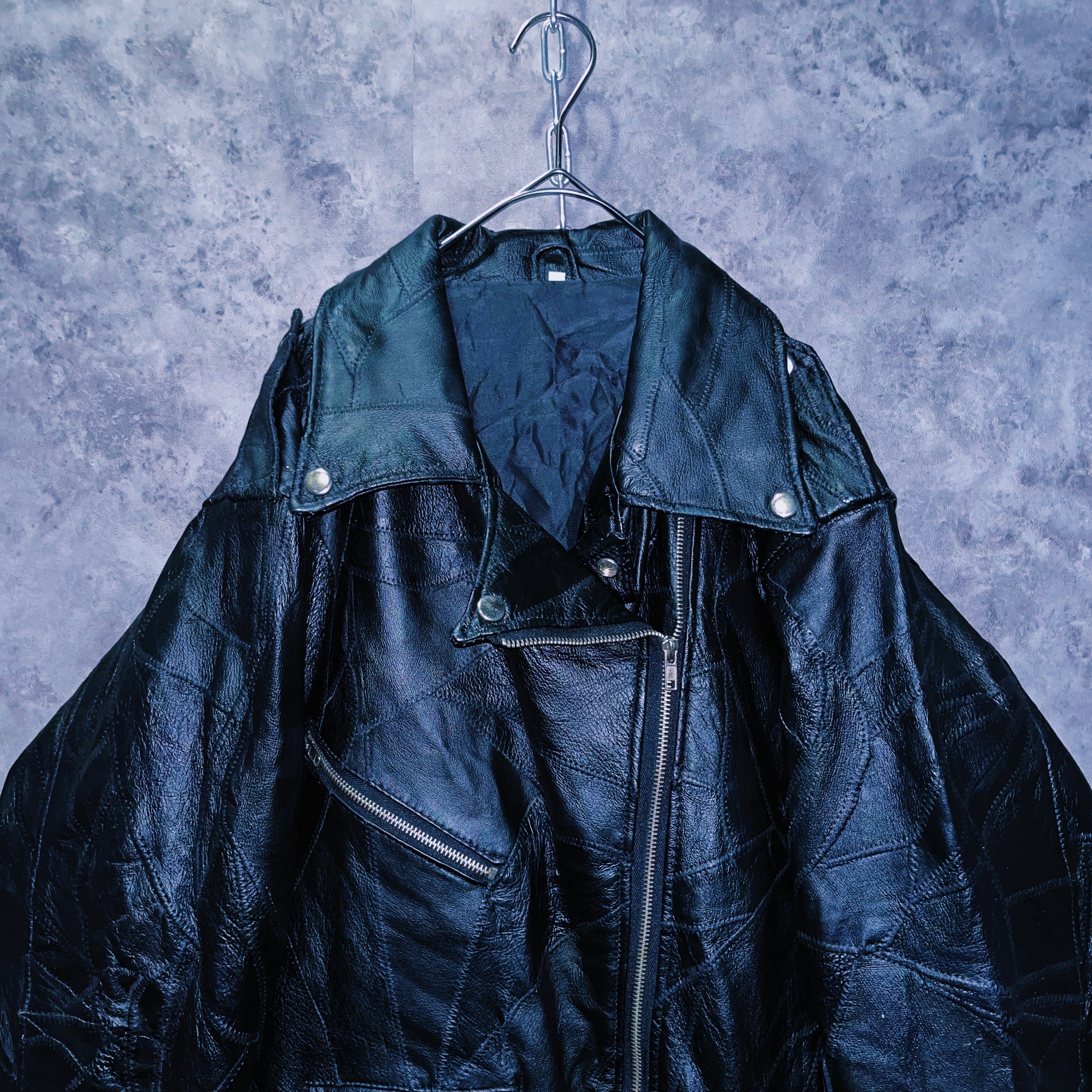 ヴィンテージパッチワークデザインレザージップアップライダースジャケット