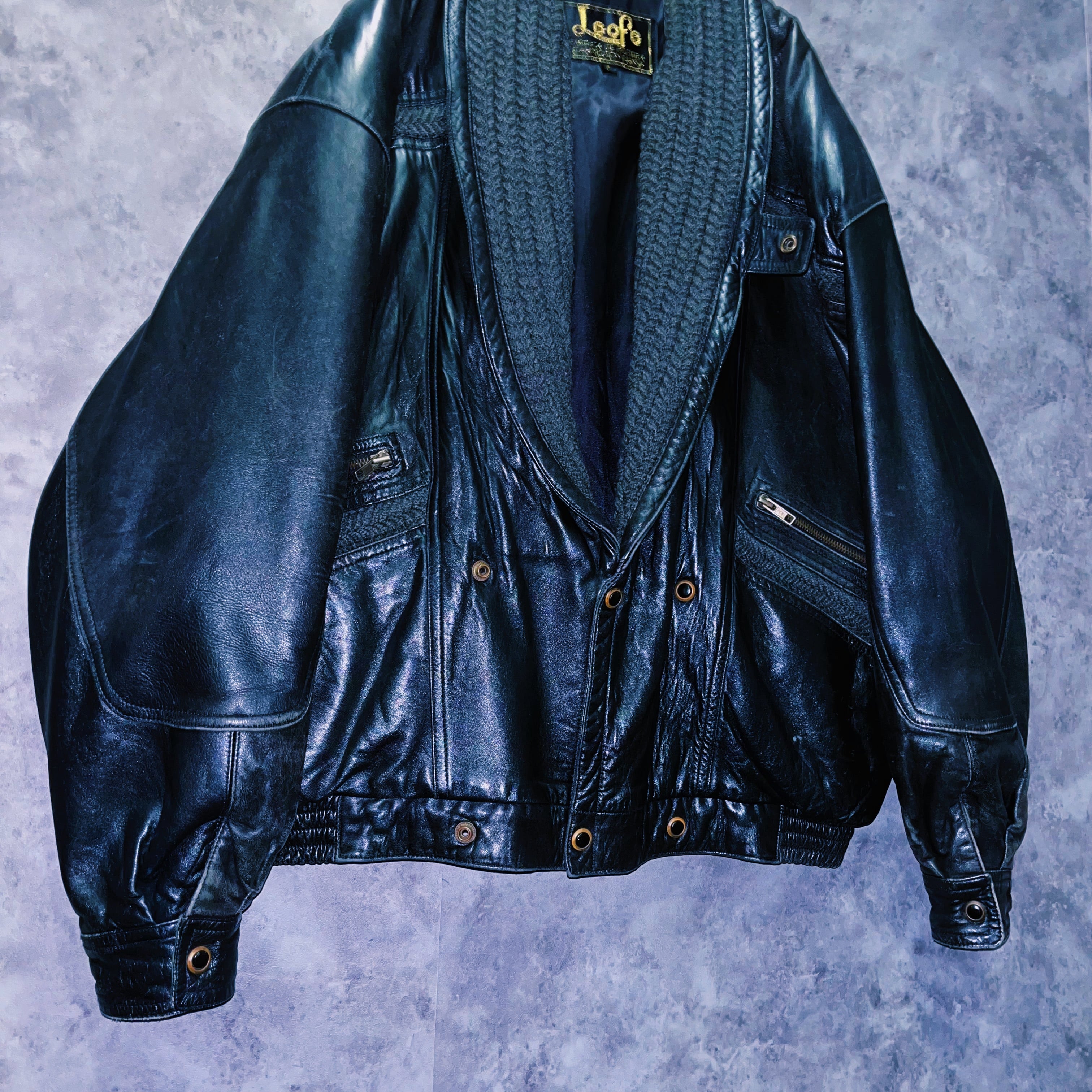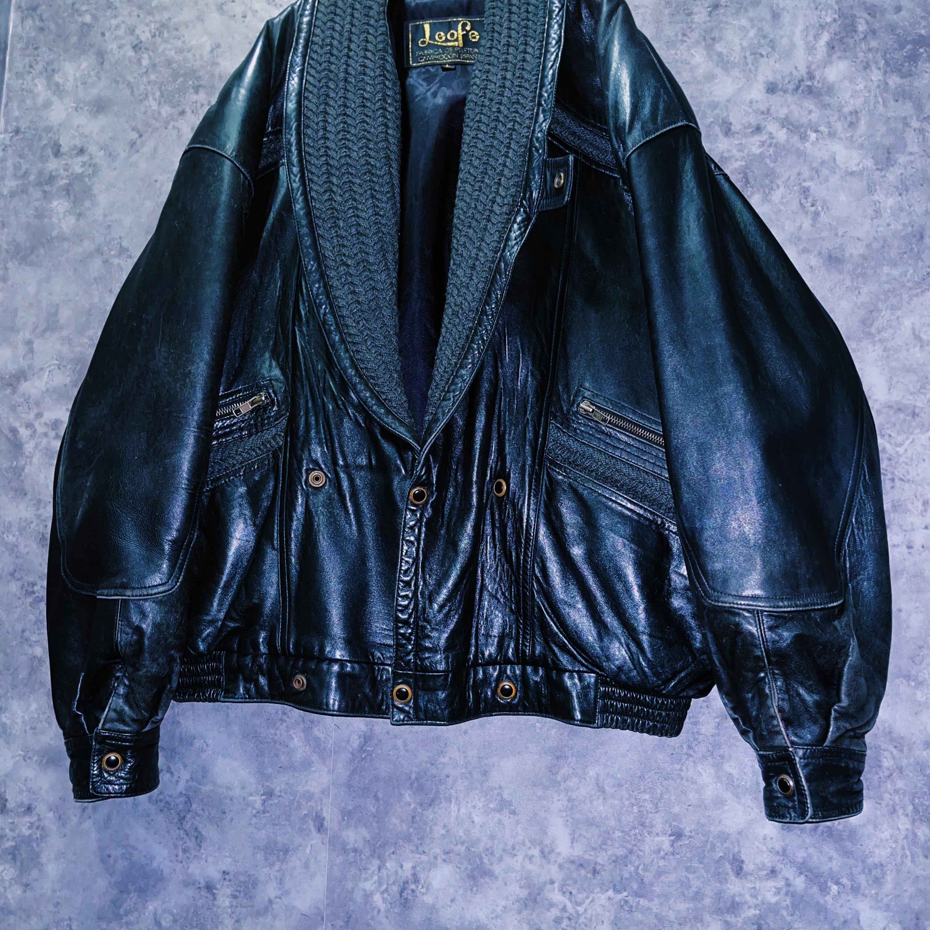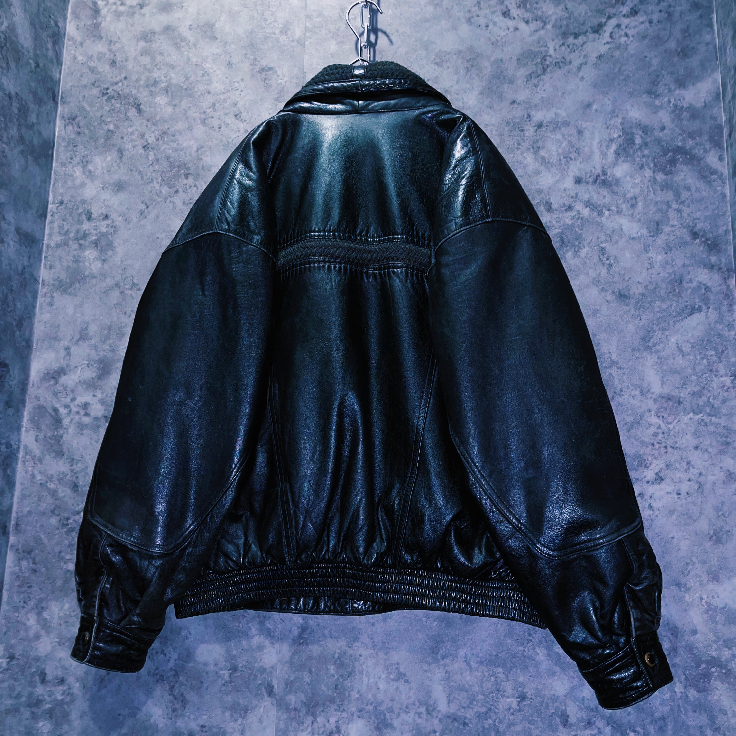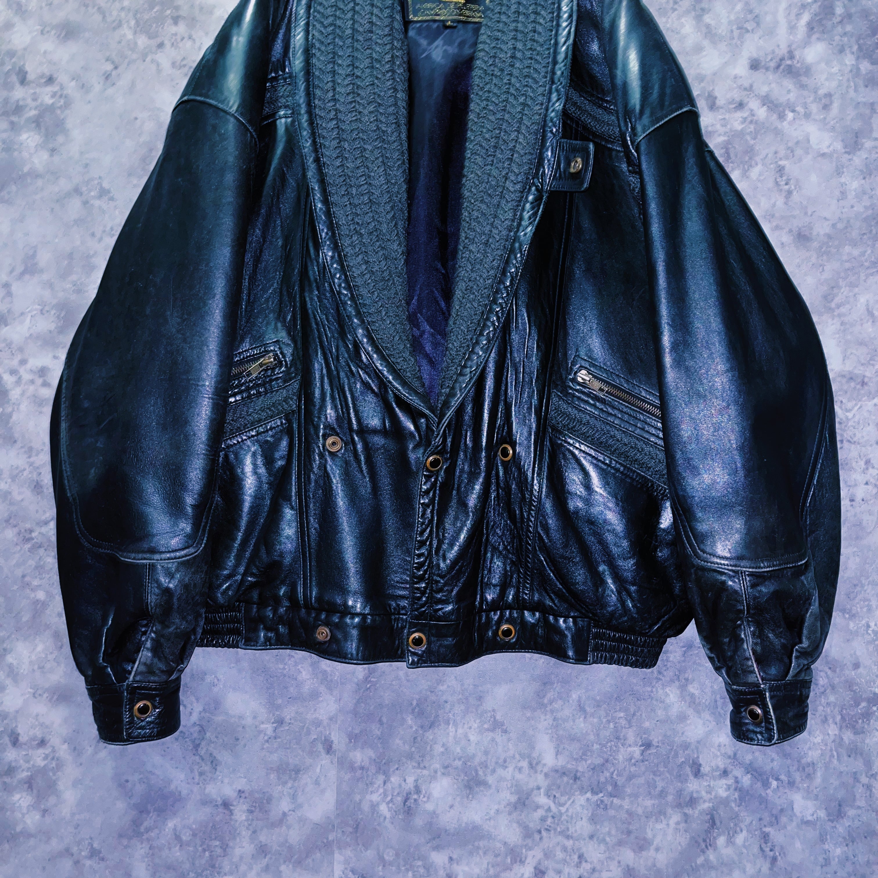 ヴィンテージコットンカラーデザインレザーブルゾンジャケット