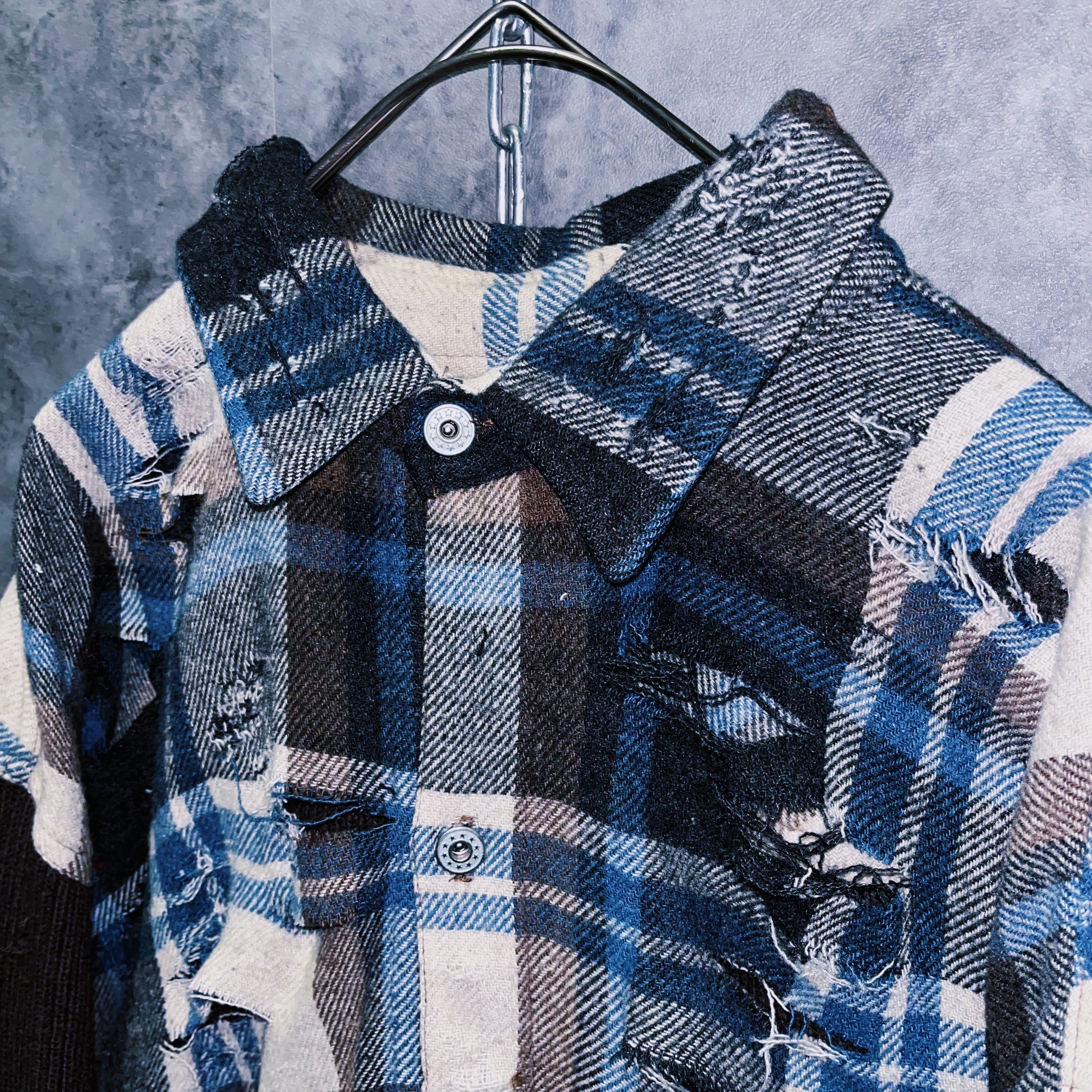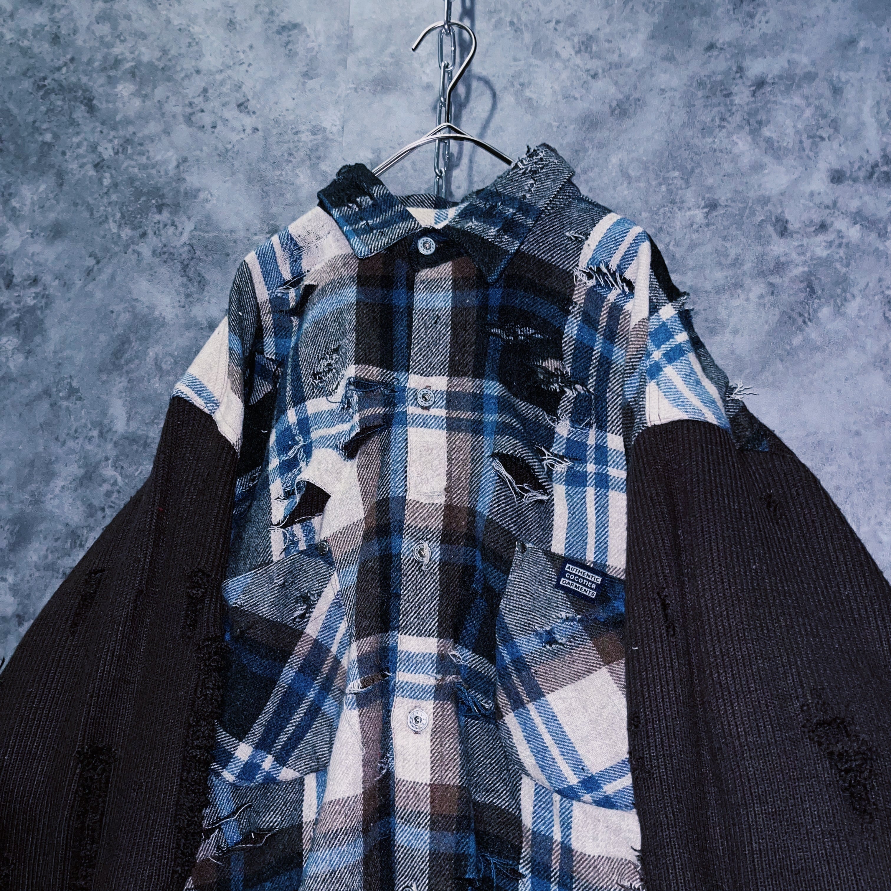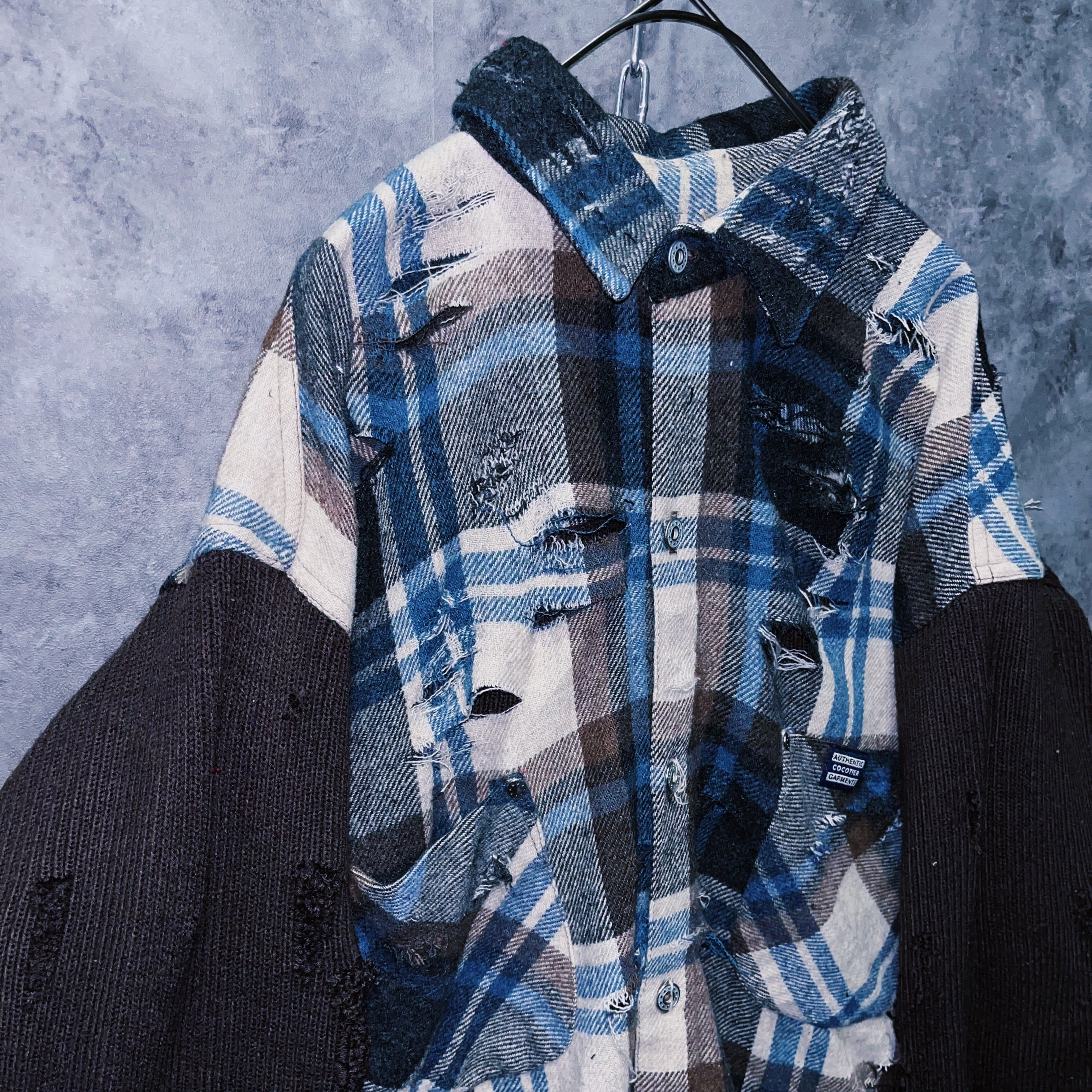 【doppio】vintage knit switching design boro custom check shirt