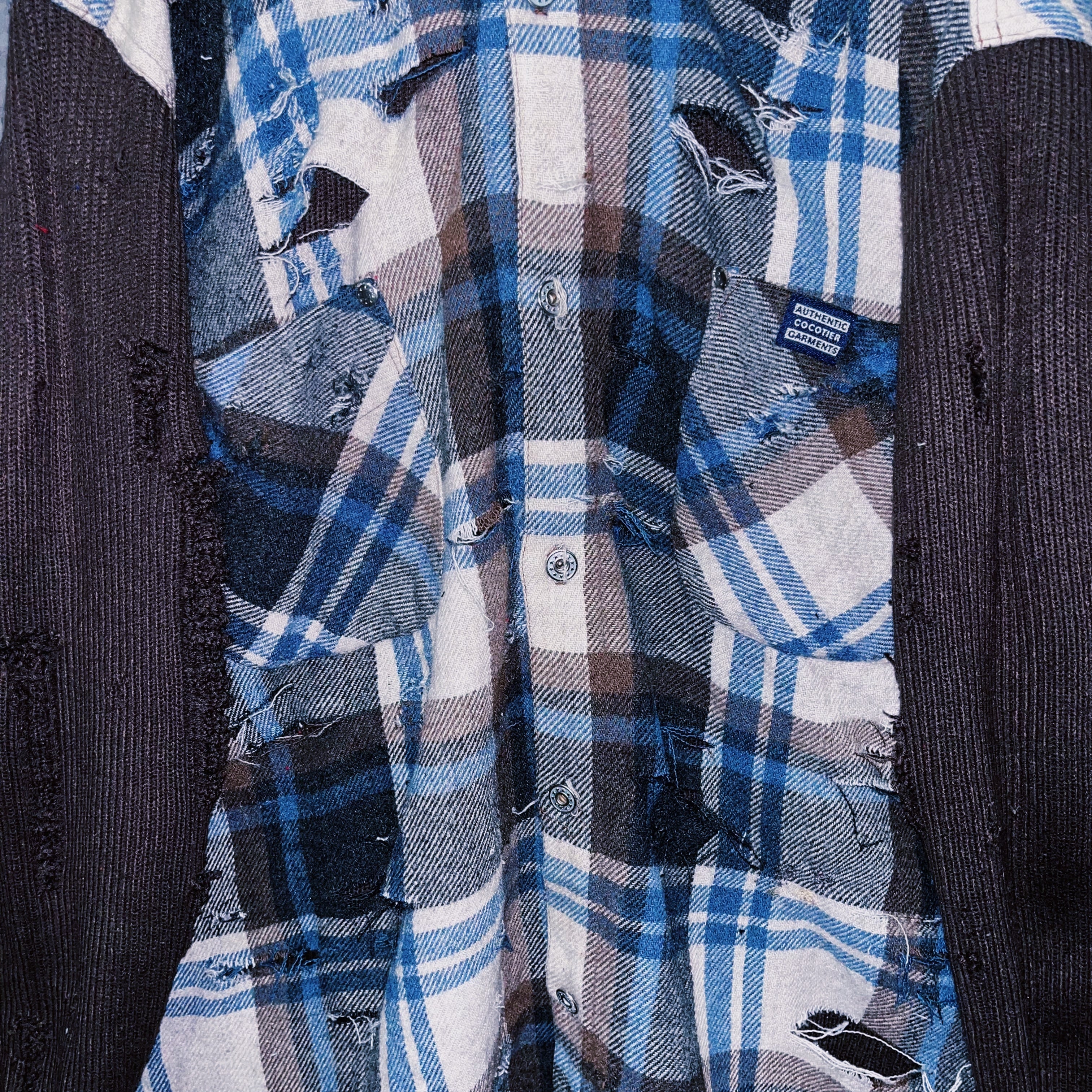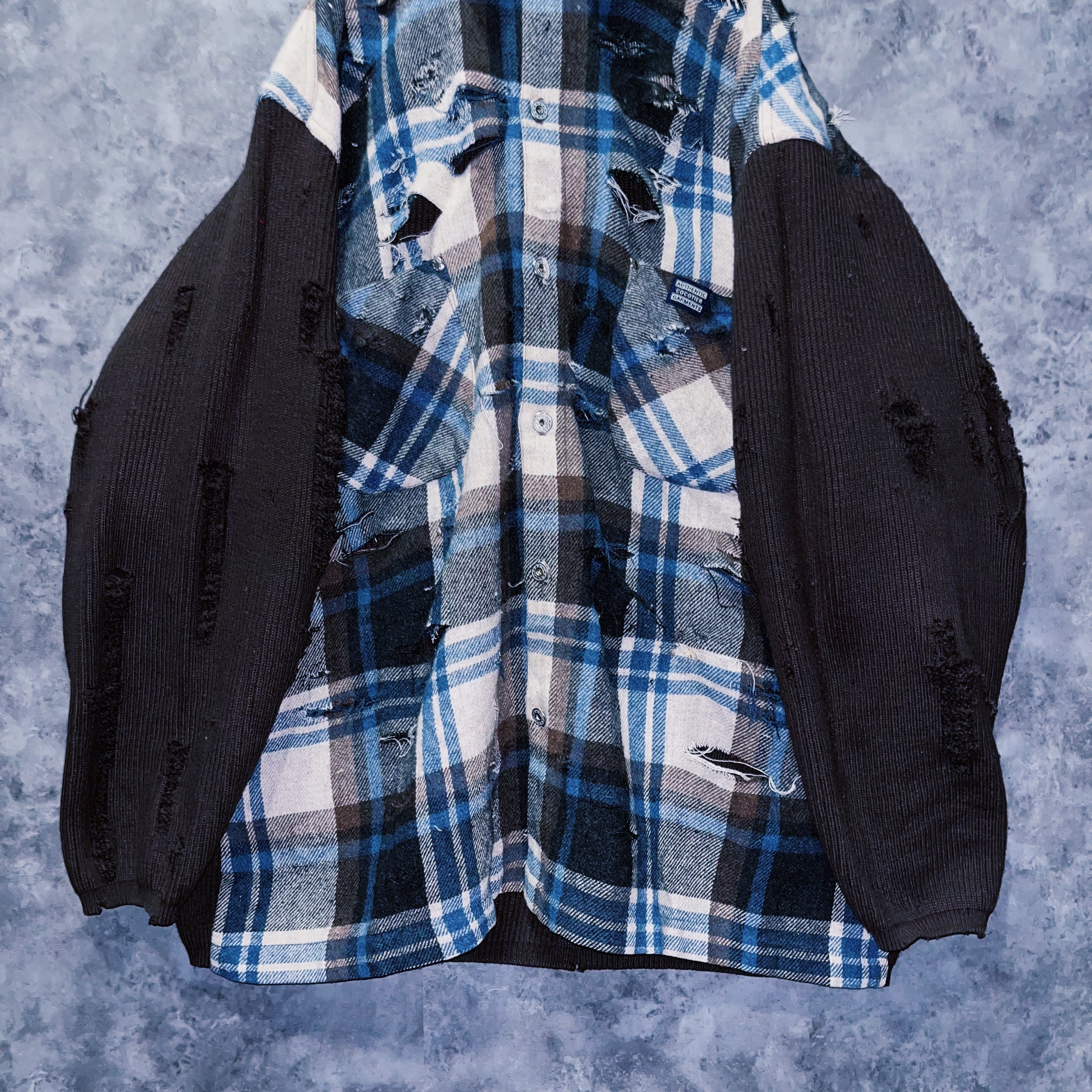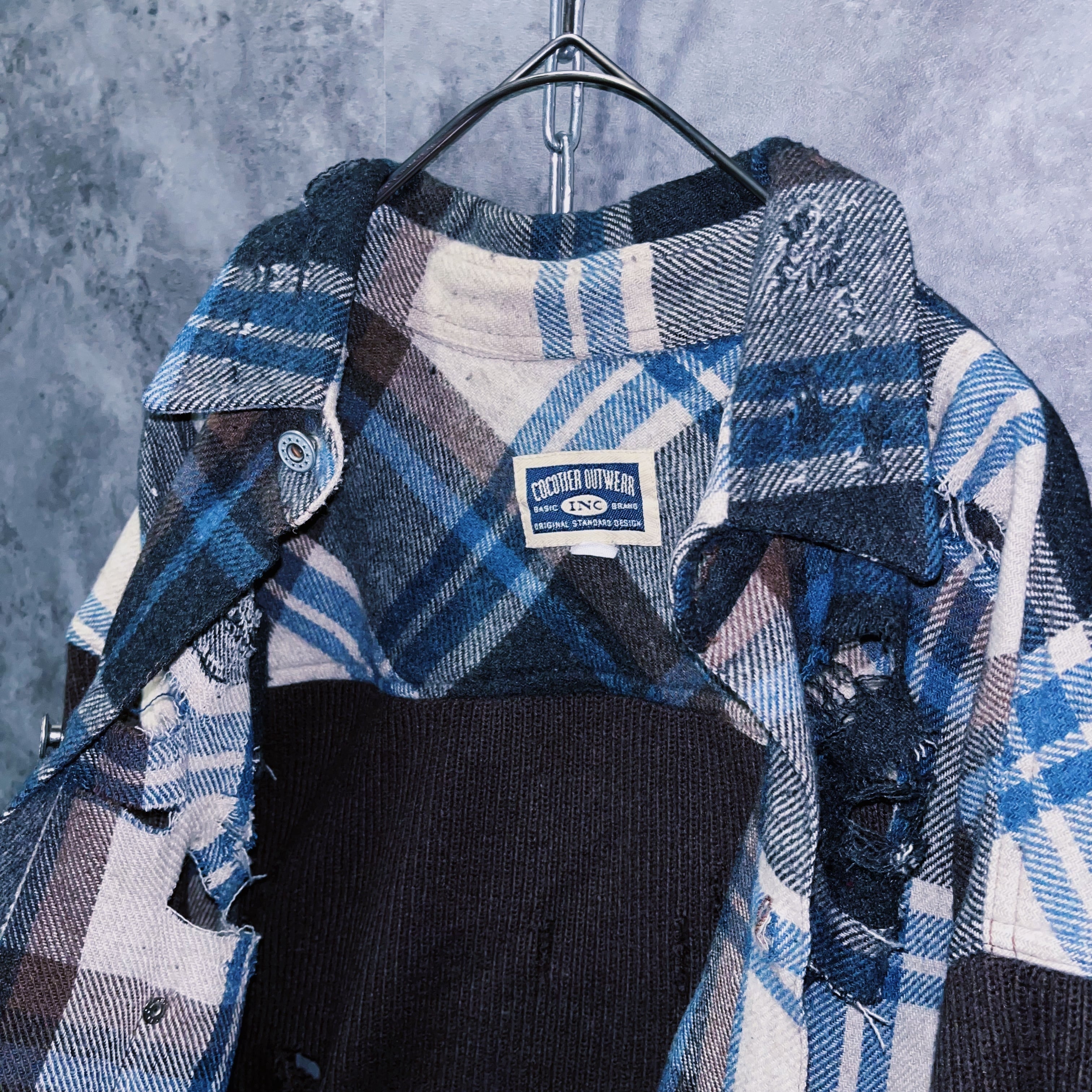 【doppio】vintage knit switching design boro custom check shirt