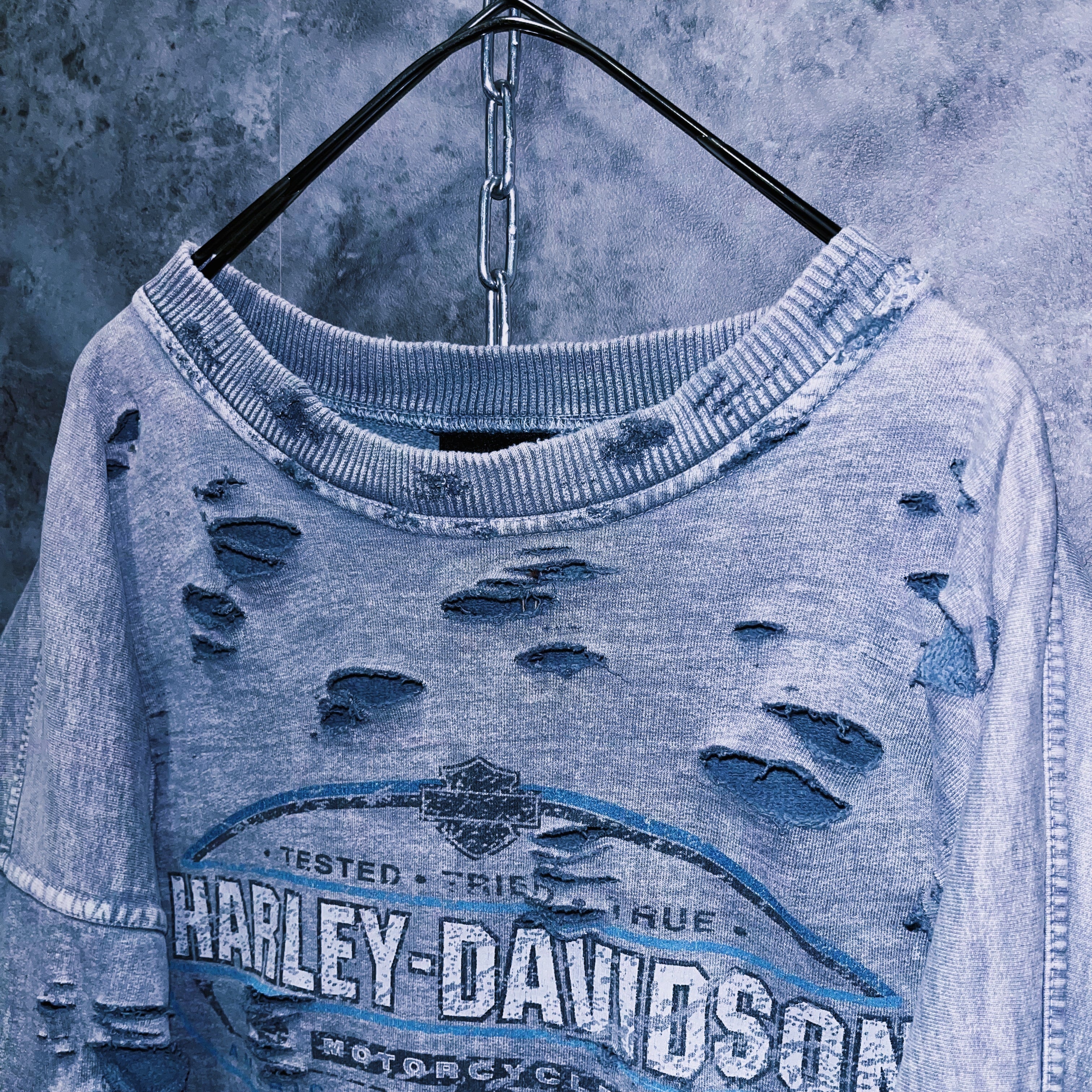 ヴィンテージ“Harley-Davidson”ロゴプリントデザインボロカスタムスウェットプルオーバー