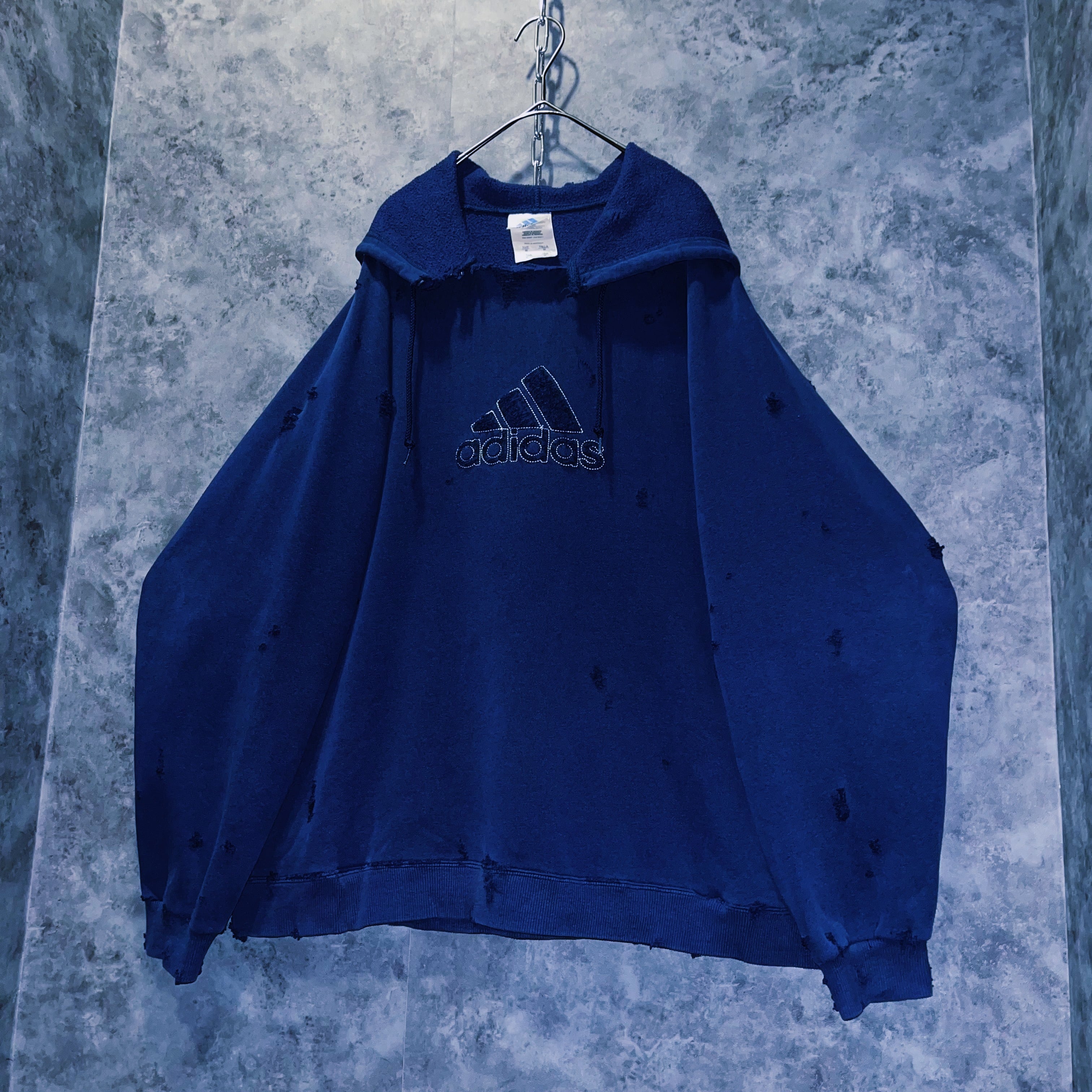 90’sヴィンテージ“adidas”パフォーマンスロゴデザインボロカスタムスウェットフーディ