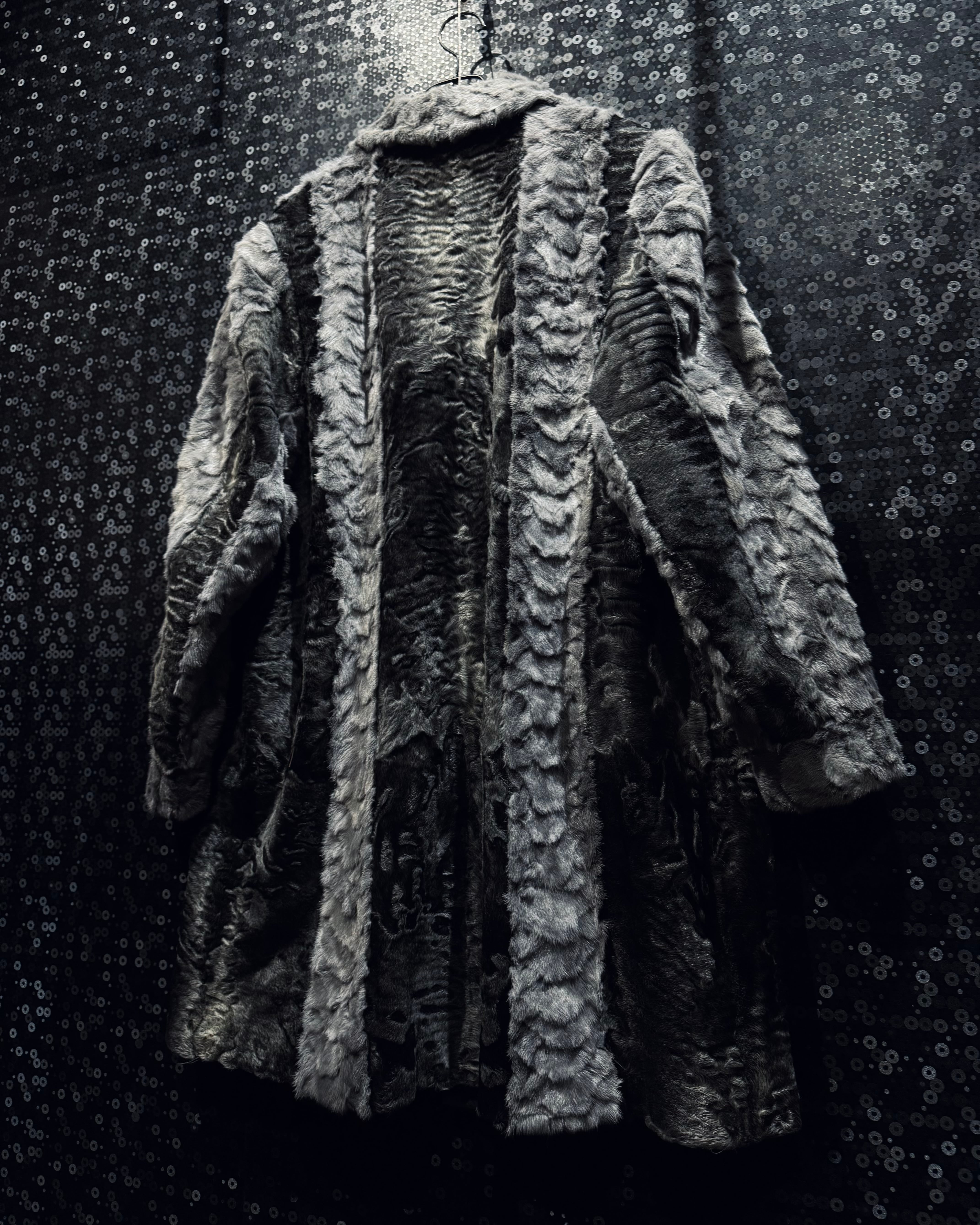 【ÆIEM】“vintage” Grey Multi-Texture Fur Long Coat