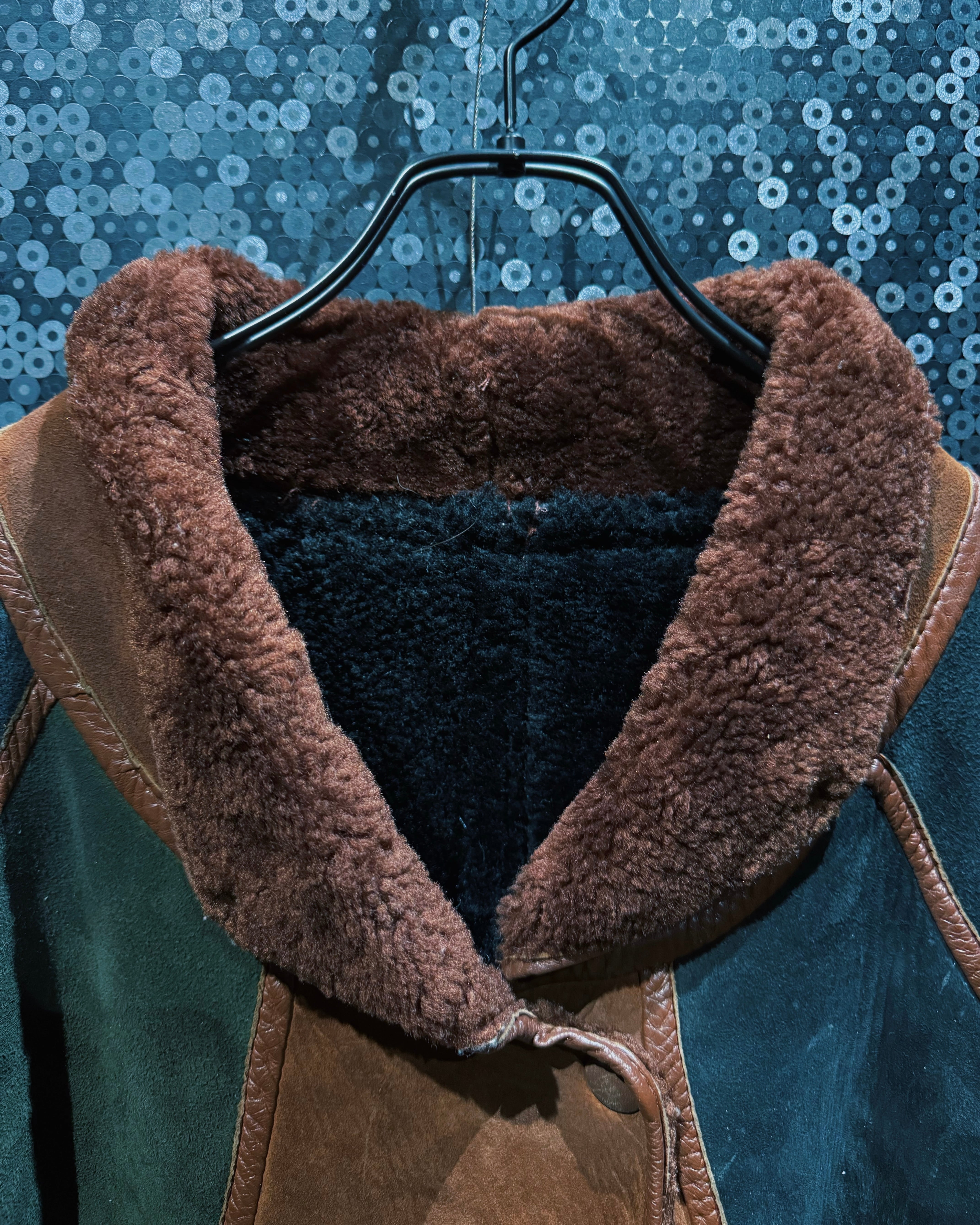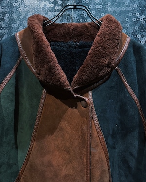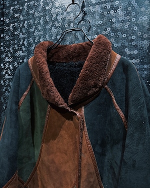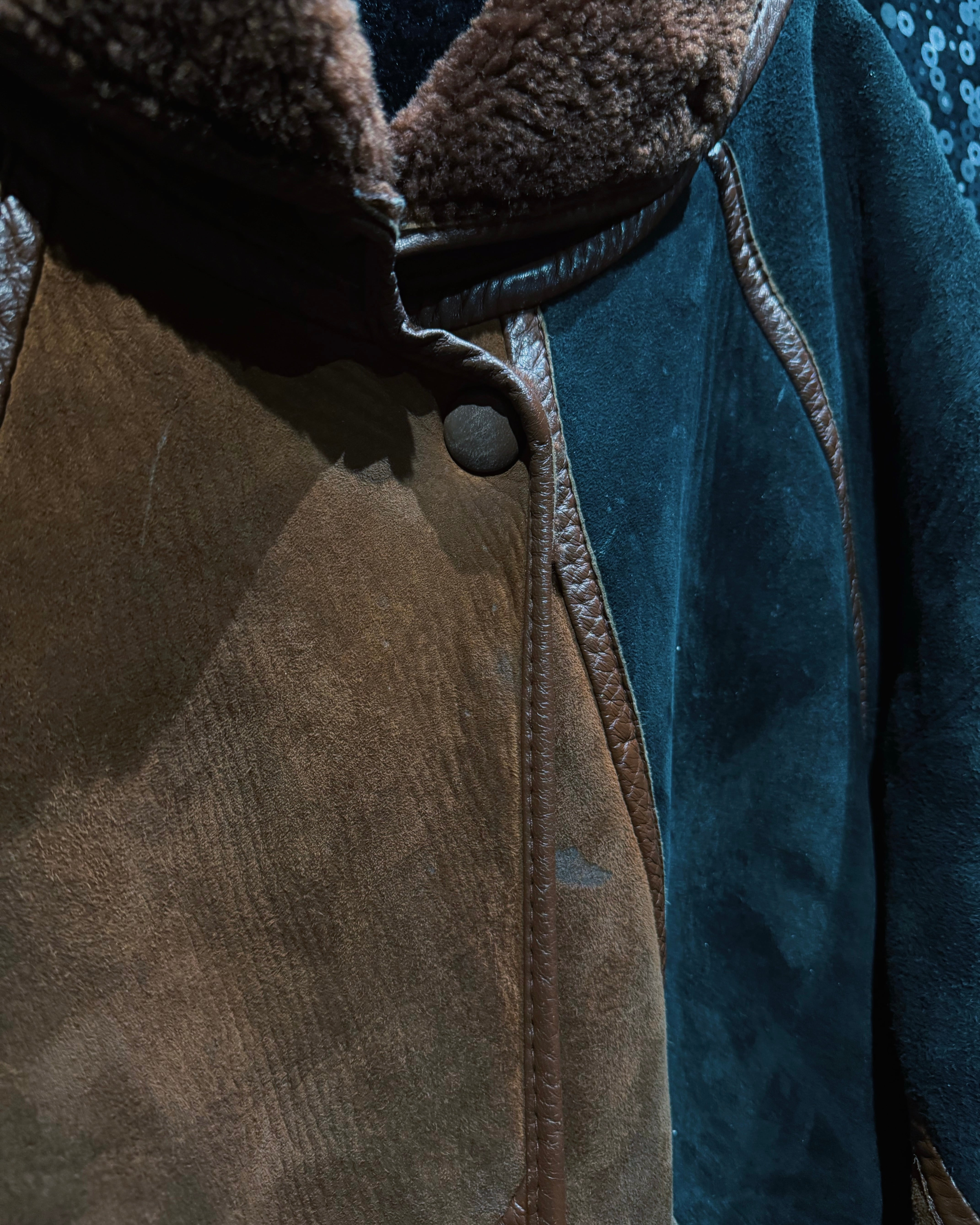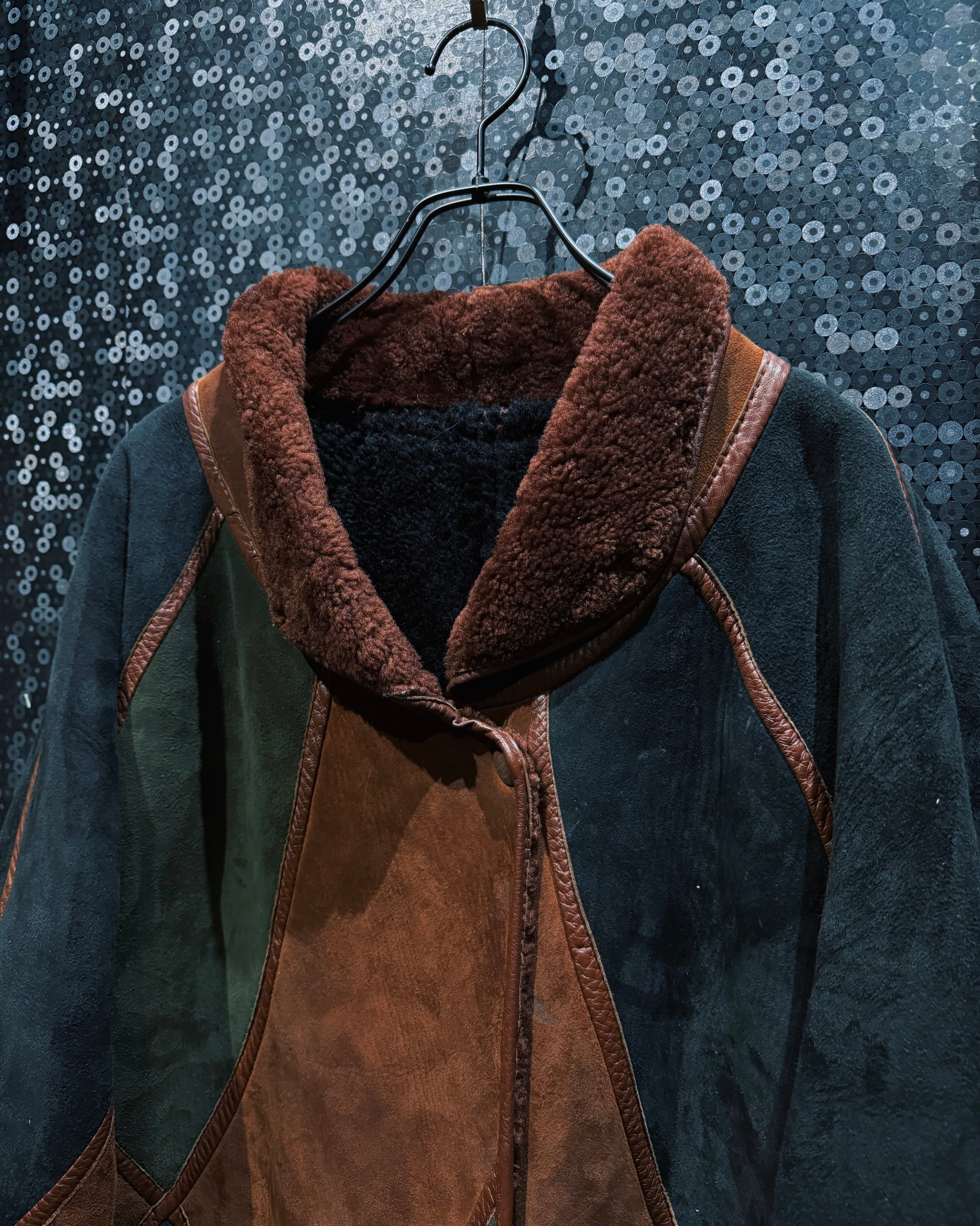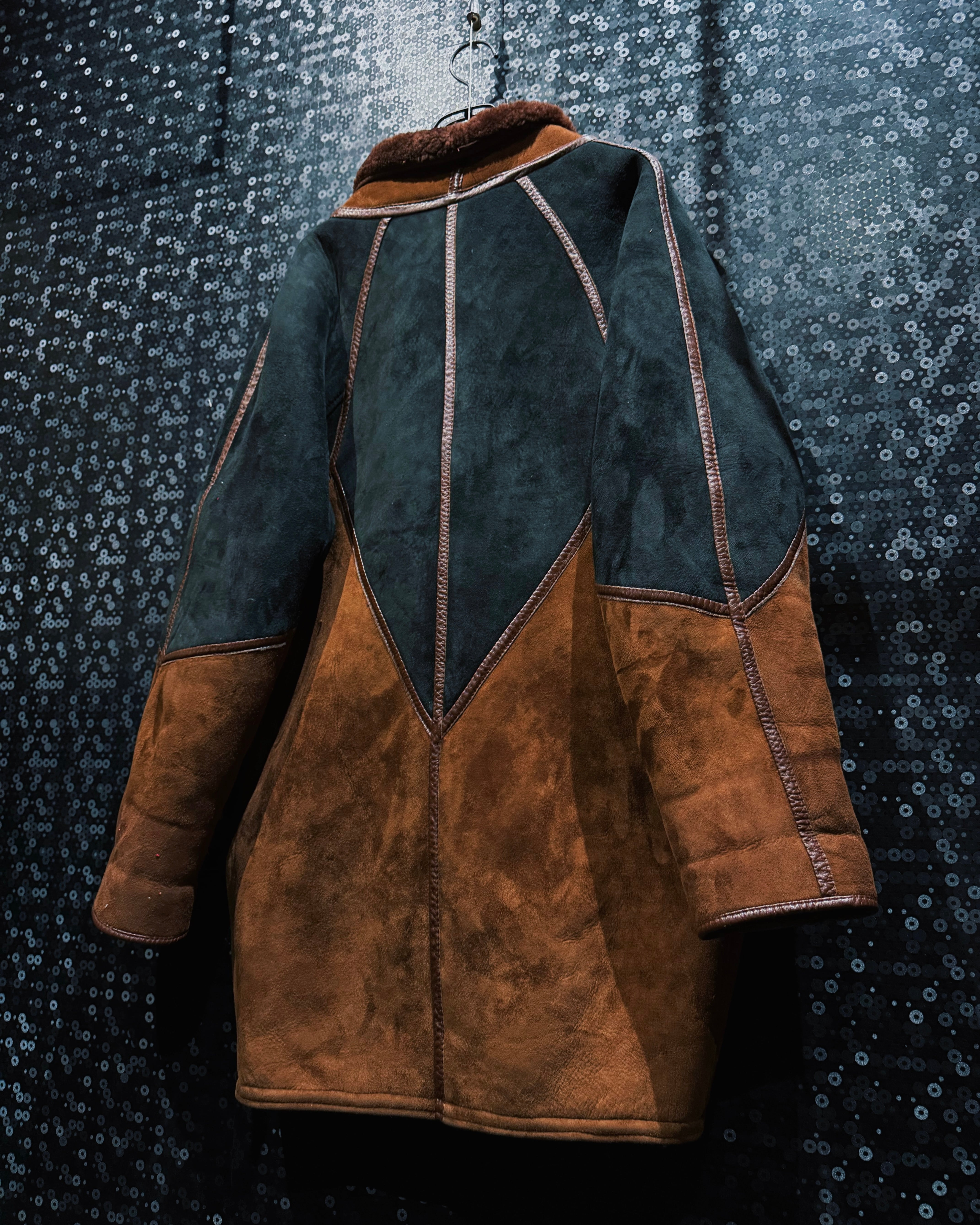 ブラウン・カーキ・ブラックなど深みのあるスエードパネルを曲線的に切り替えた、重厚さと温かみの共存するヴィンテージスエードコート。