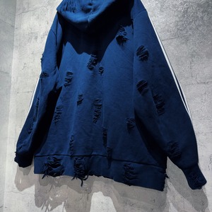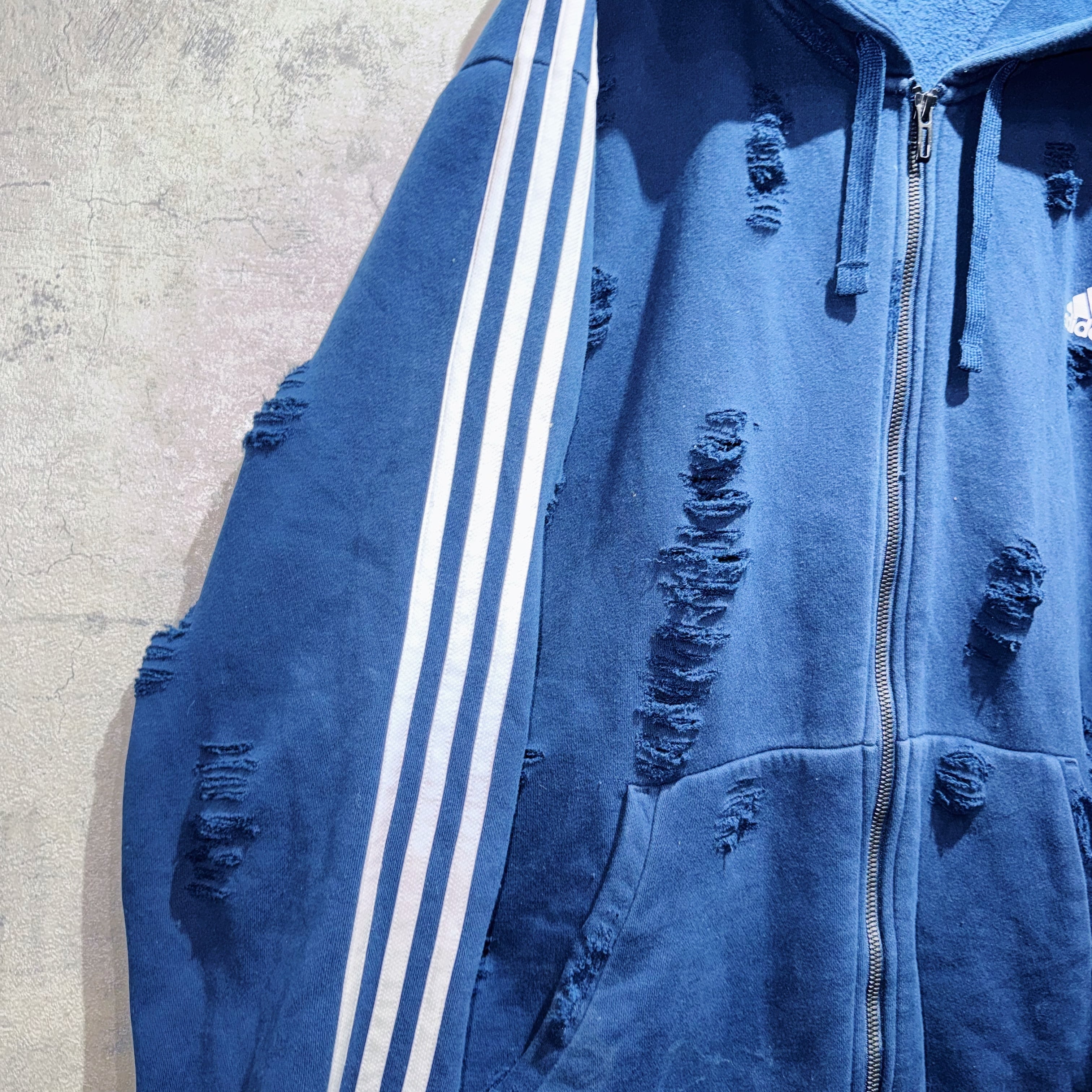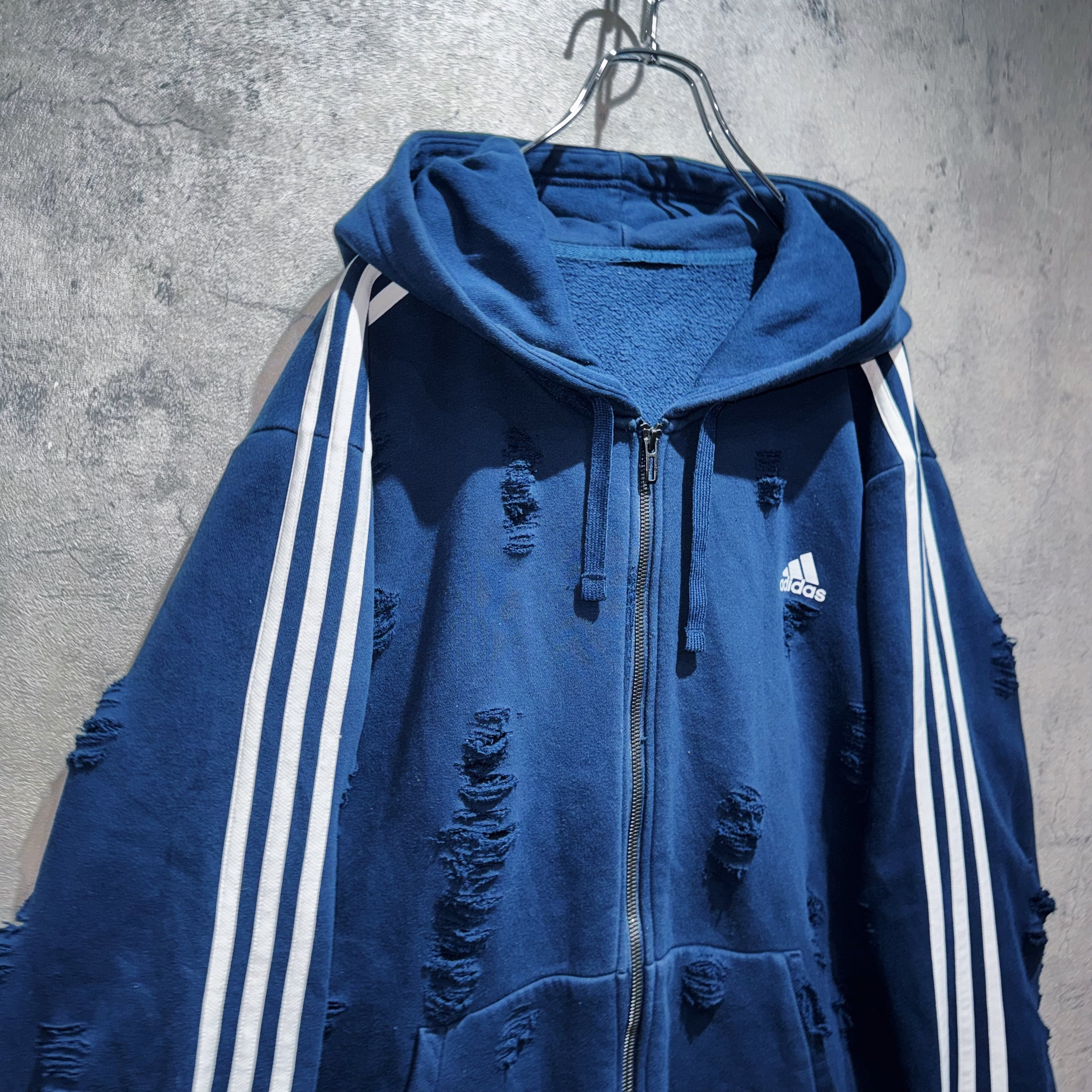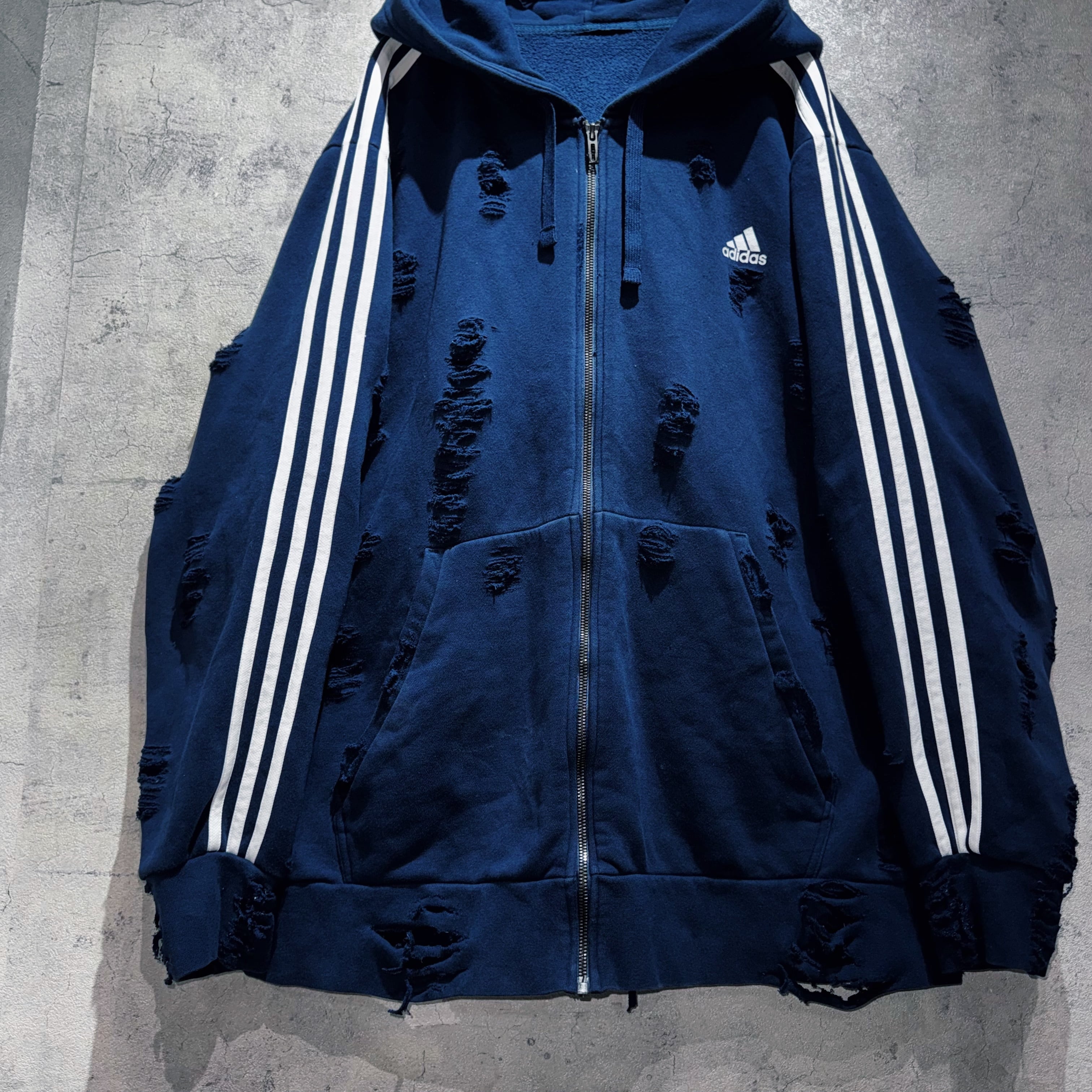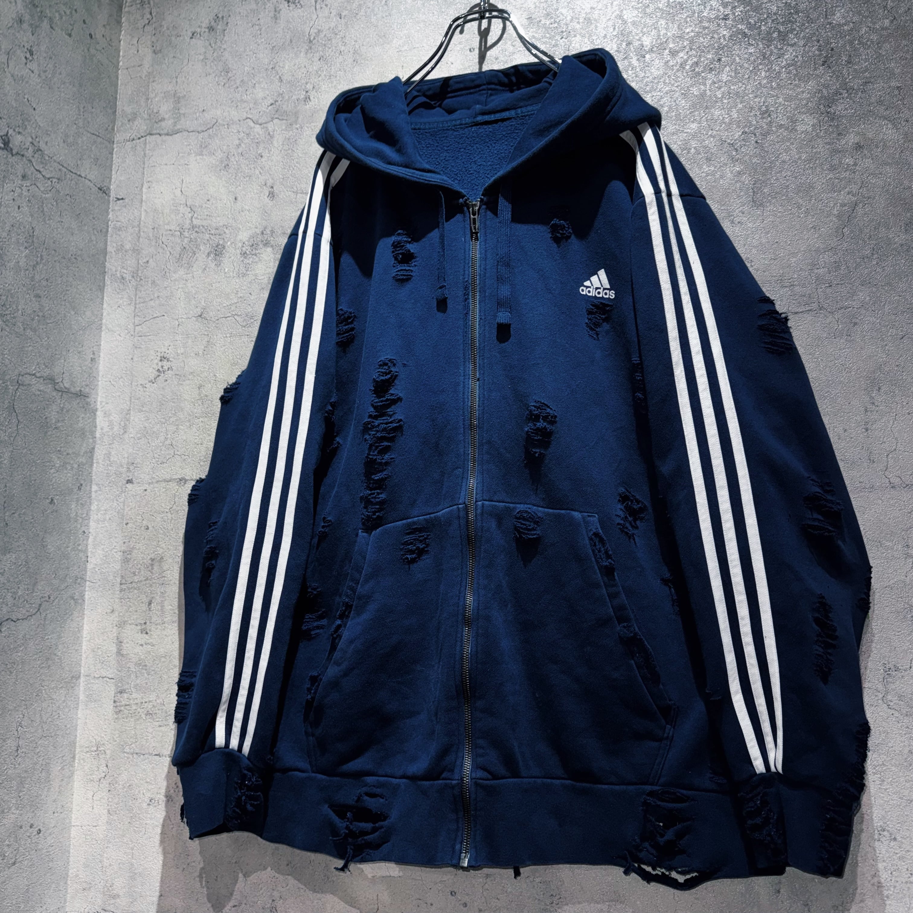 "アディダス"パフォーマンスロゴ&3ストライプスデザインボロカスタムジップアップフーディー