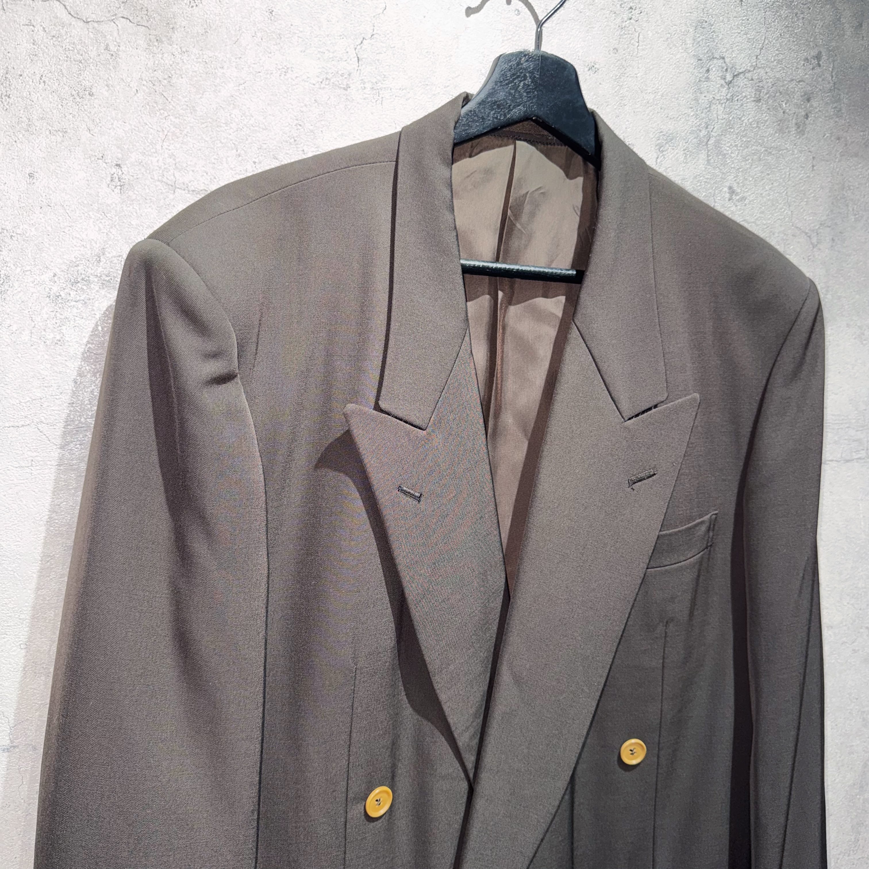 80年代カーキカラークアトロボタンダブルブレストストライプセットアップ