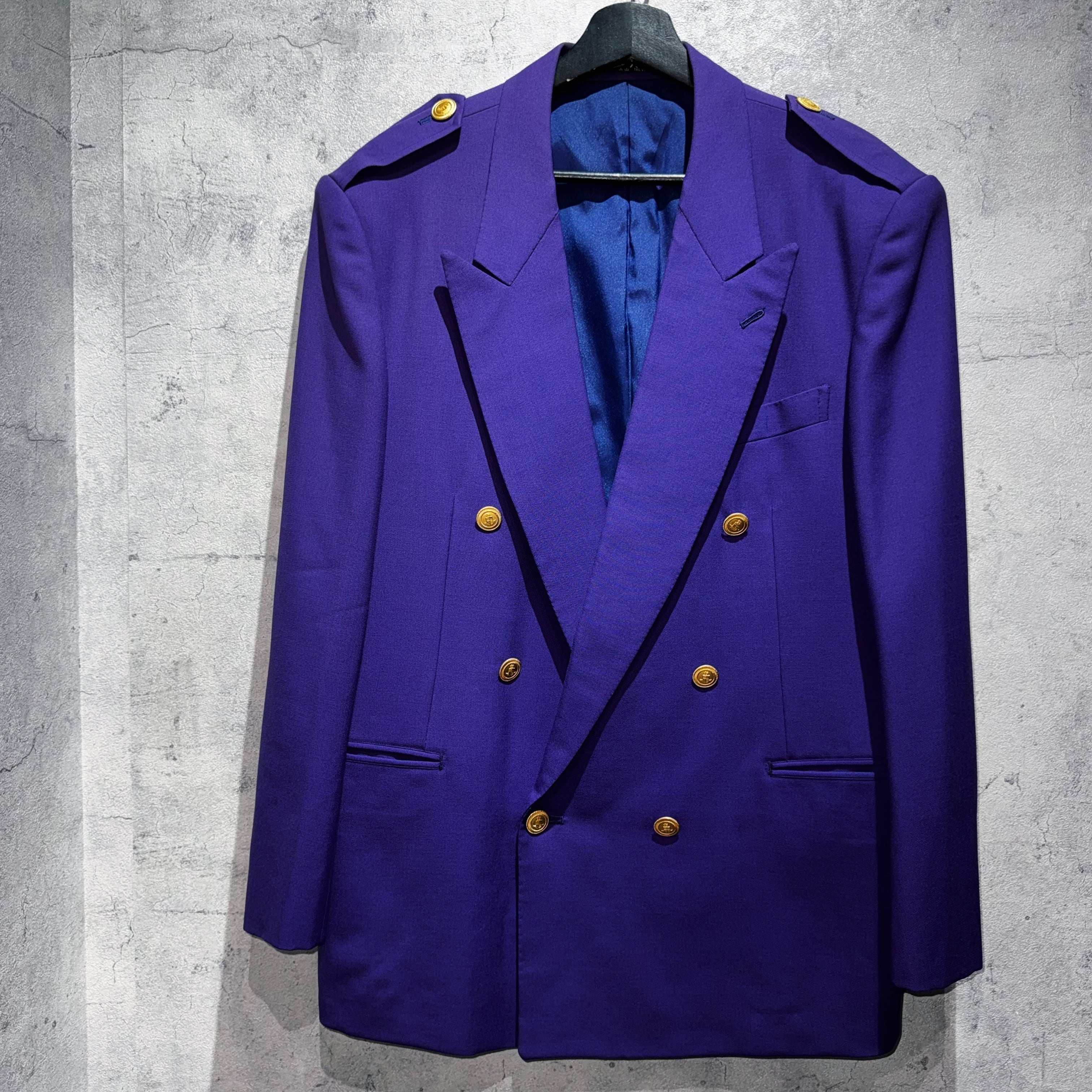 ミリタリーデザインゴールドボタンロイヤルパープルカラーダブルブレストセットアップ