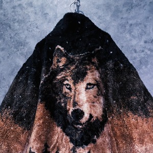 【doppio】vintage wolf and landscape design zip up fleece jacket