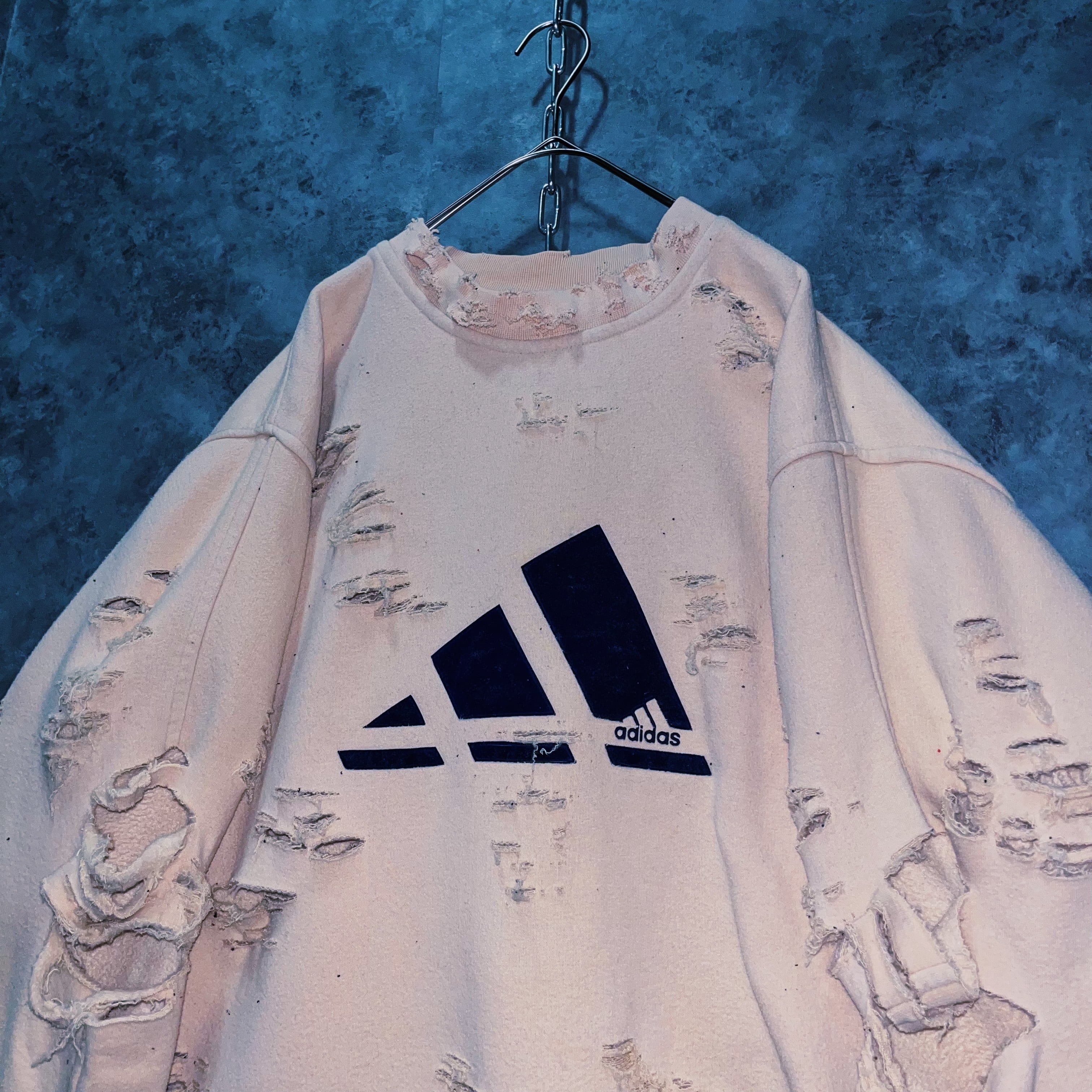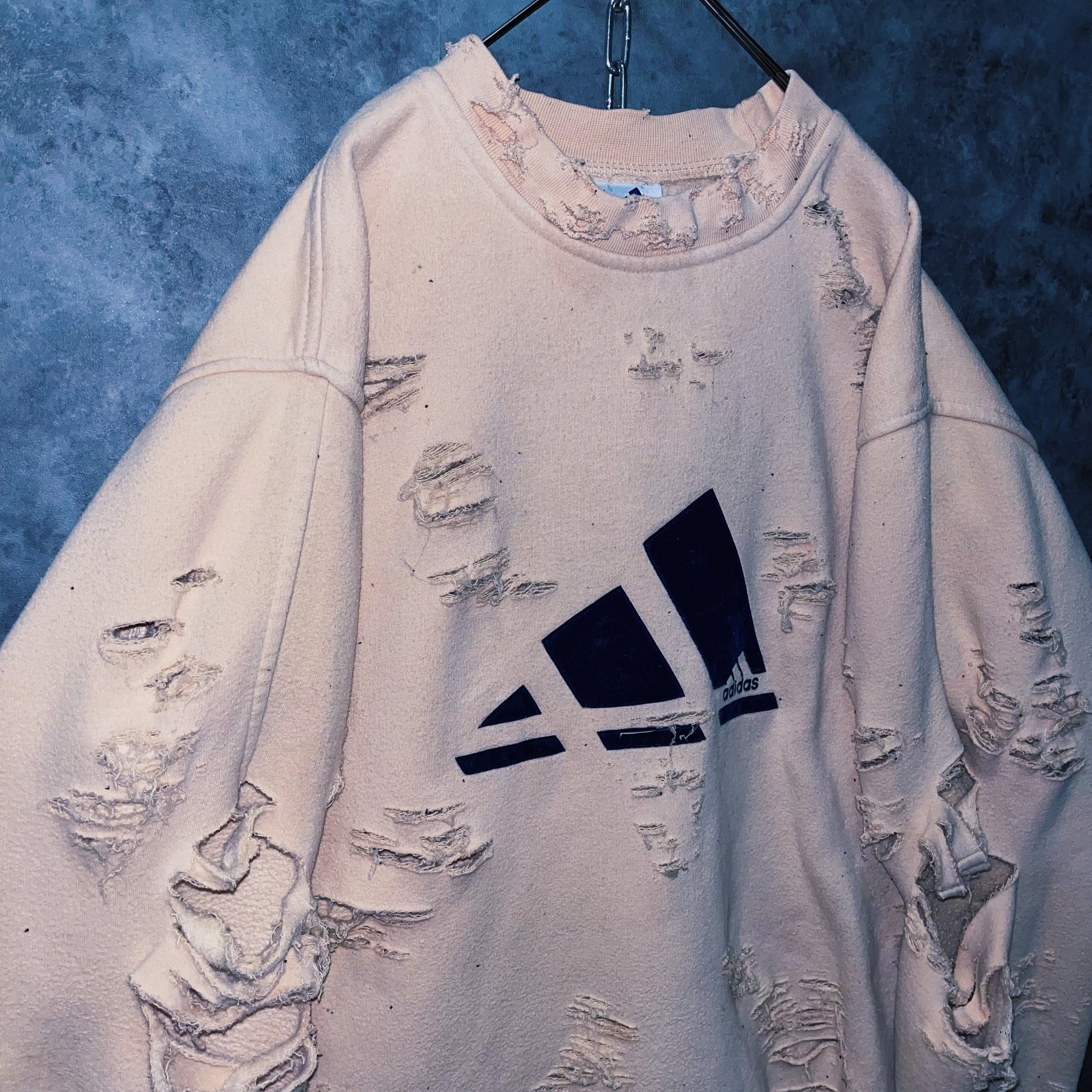 ヴィンテージ“adidas”ロゴエンブロイダリーデザインボロカスタムスウェットプルオーバー