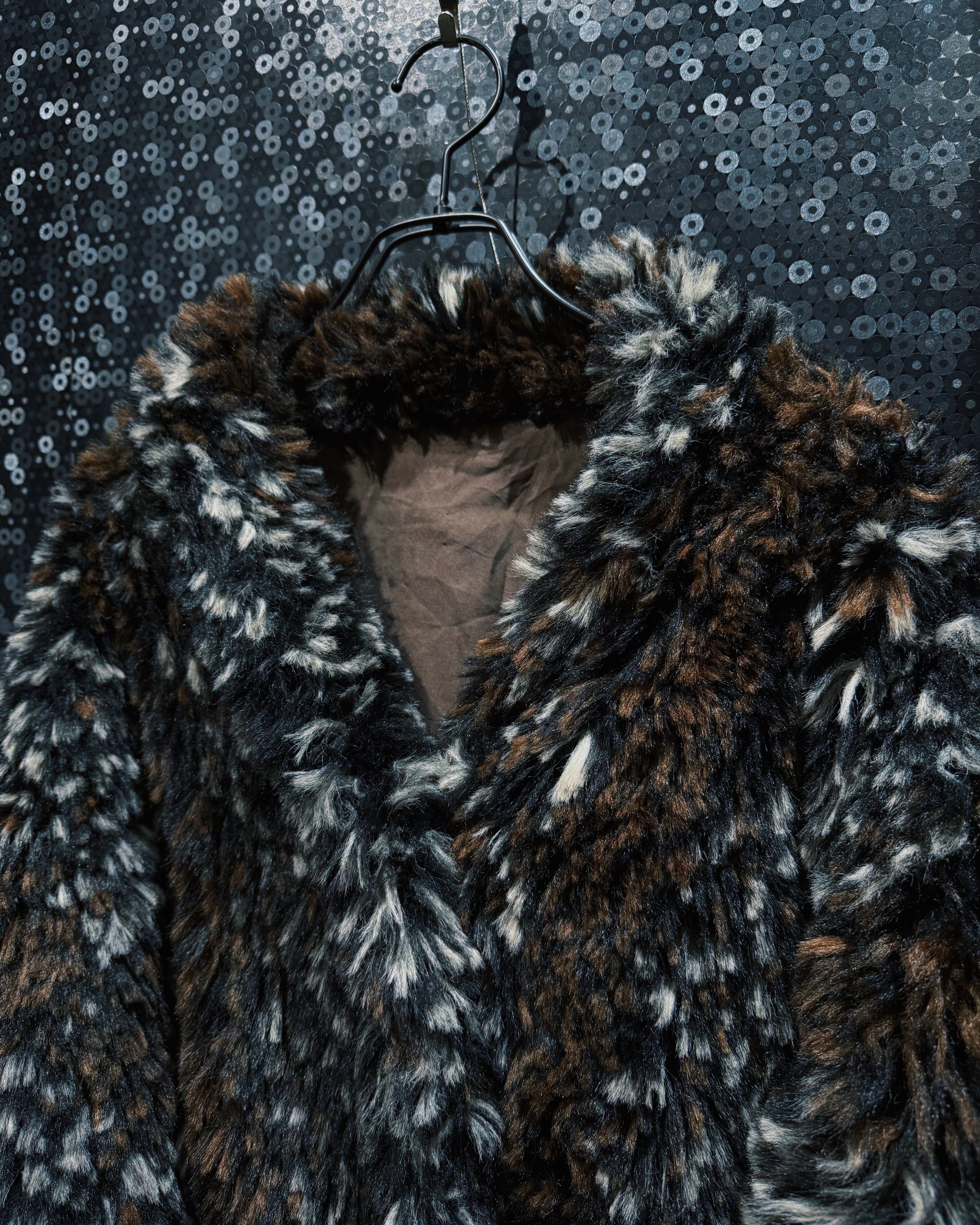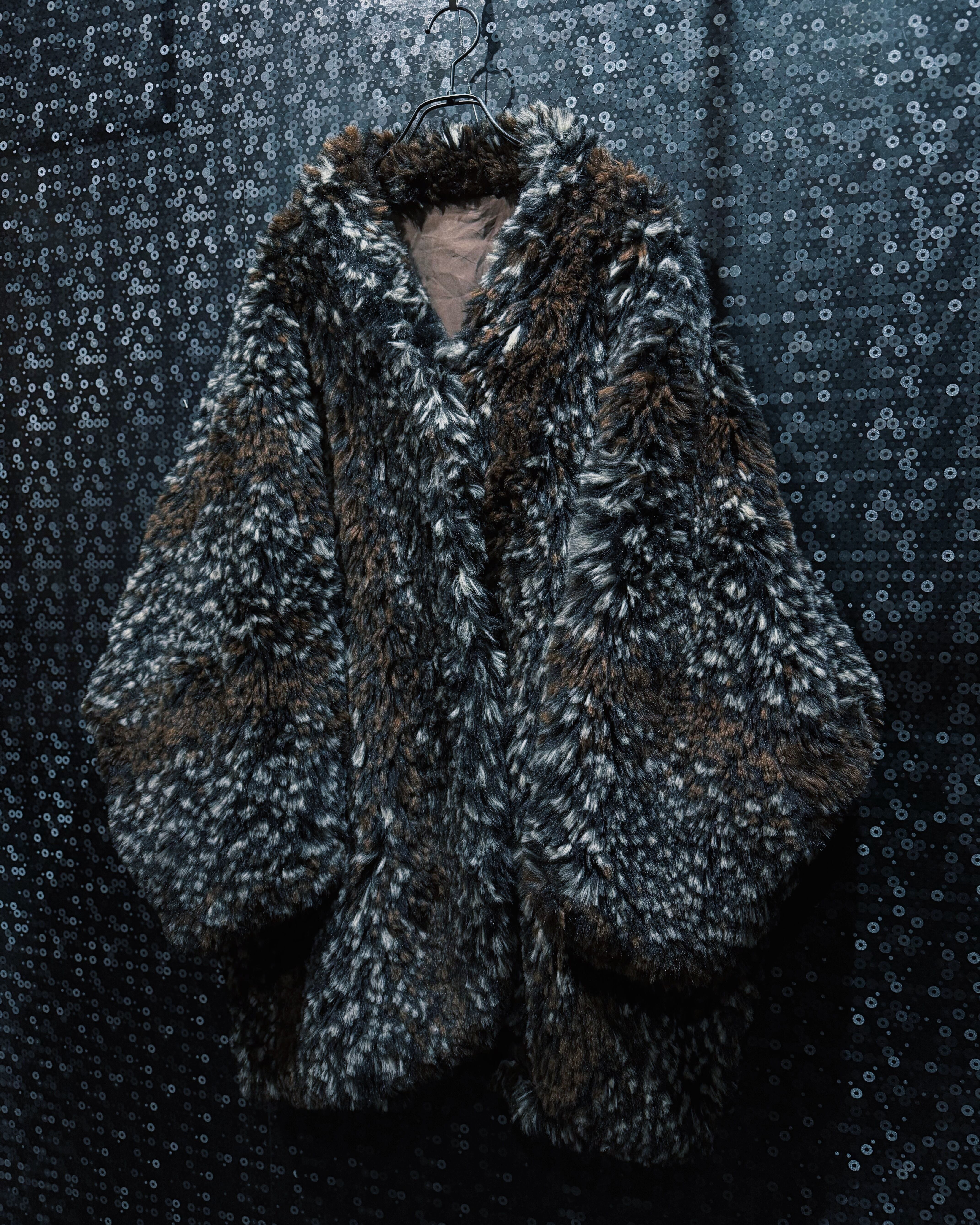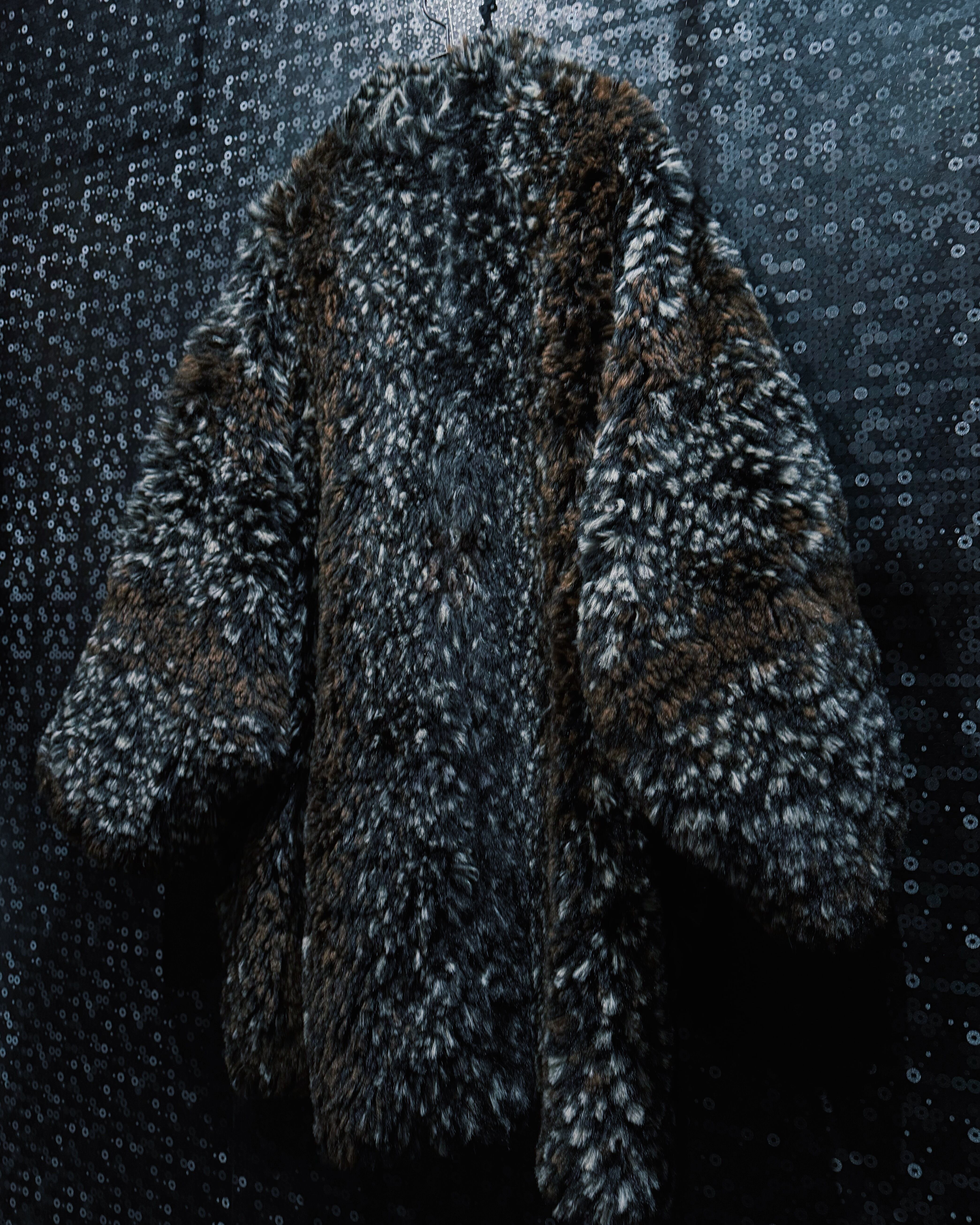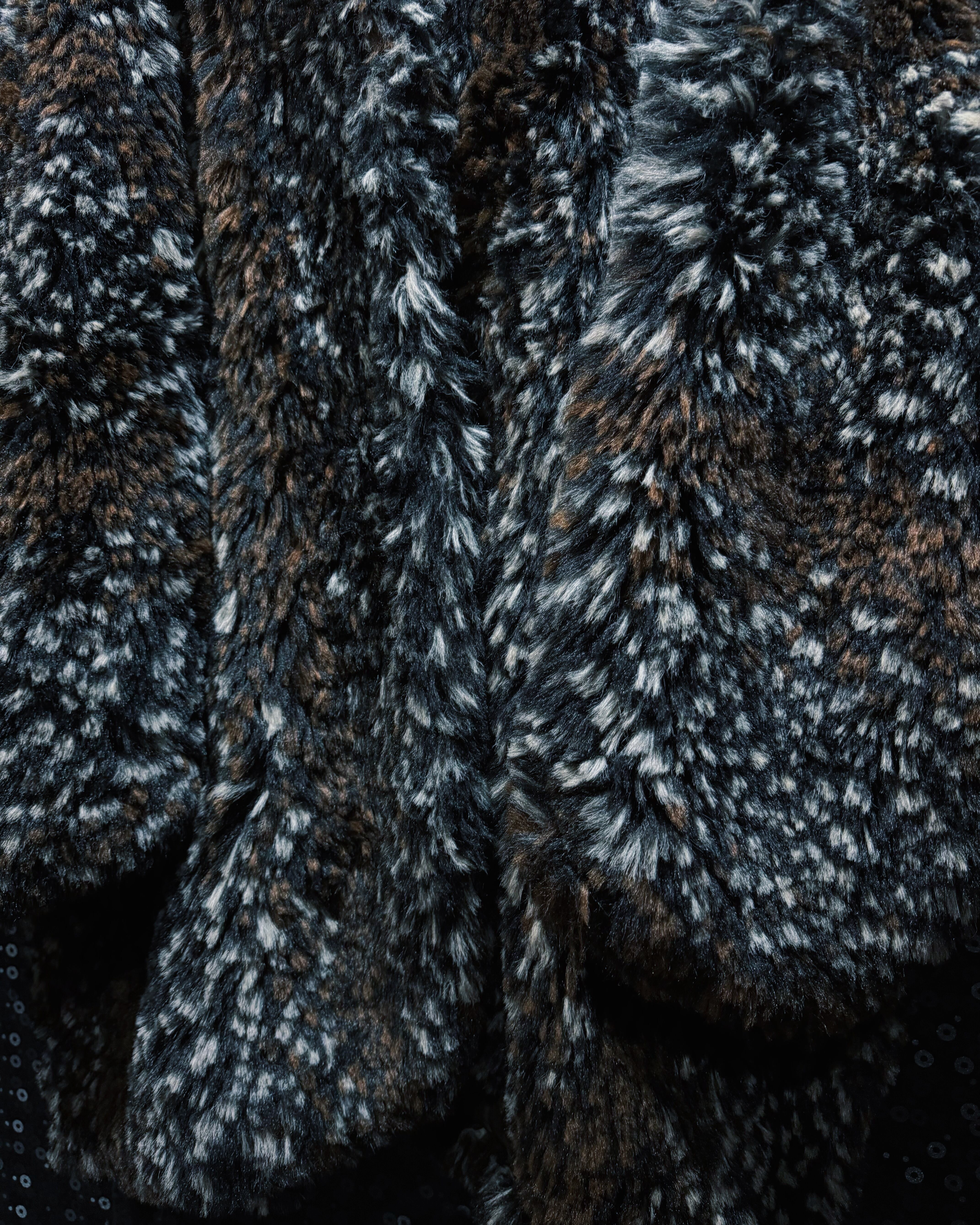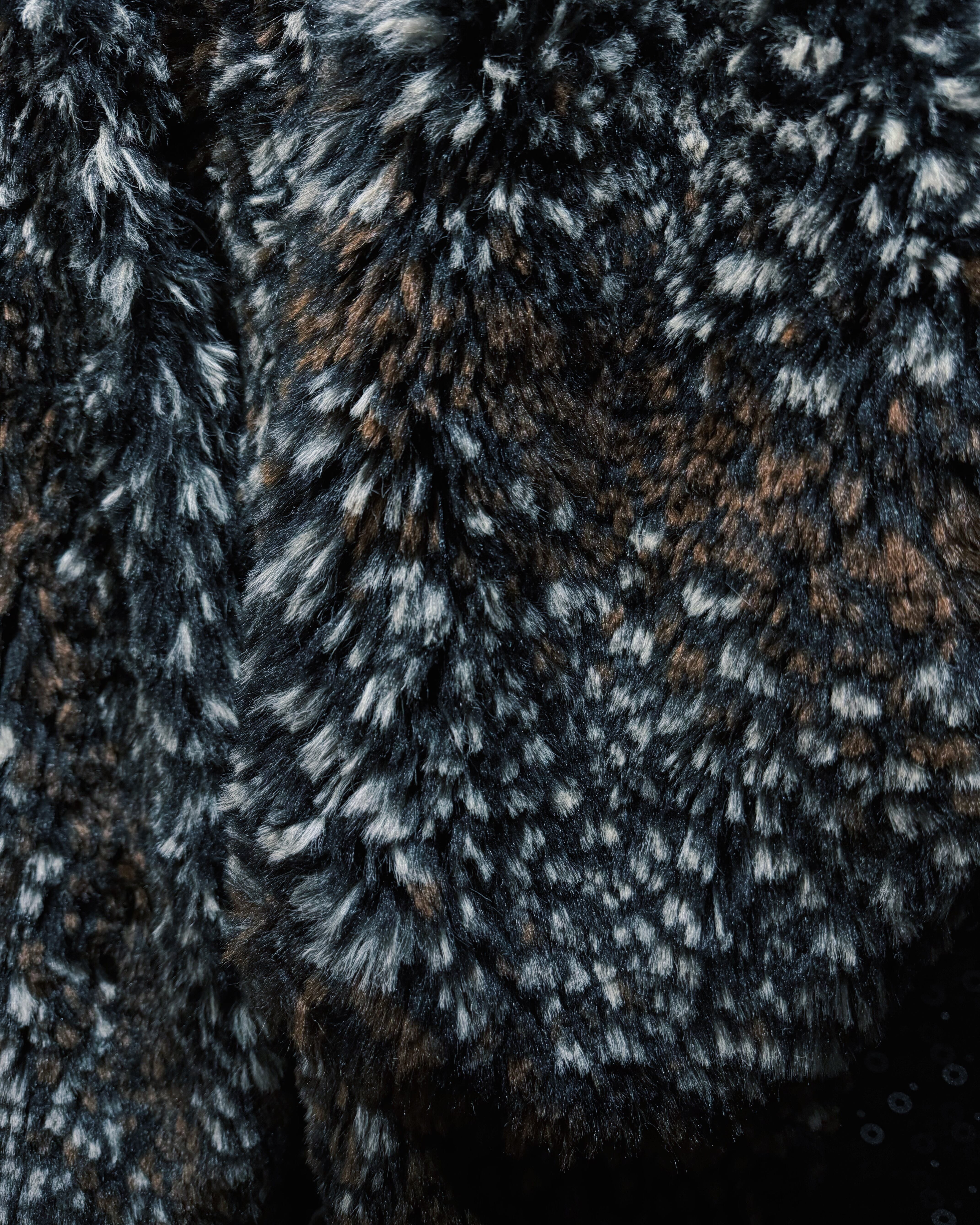 ブラウン、ブラック、ホワイトが細かく混ざり合ったシャギーファー素材を使用したヴィンテージコート。