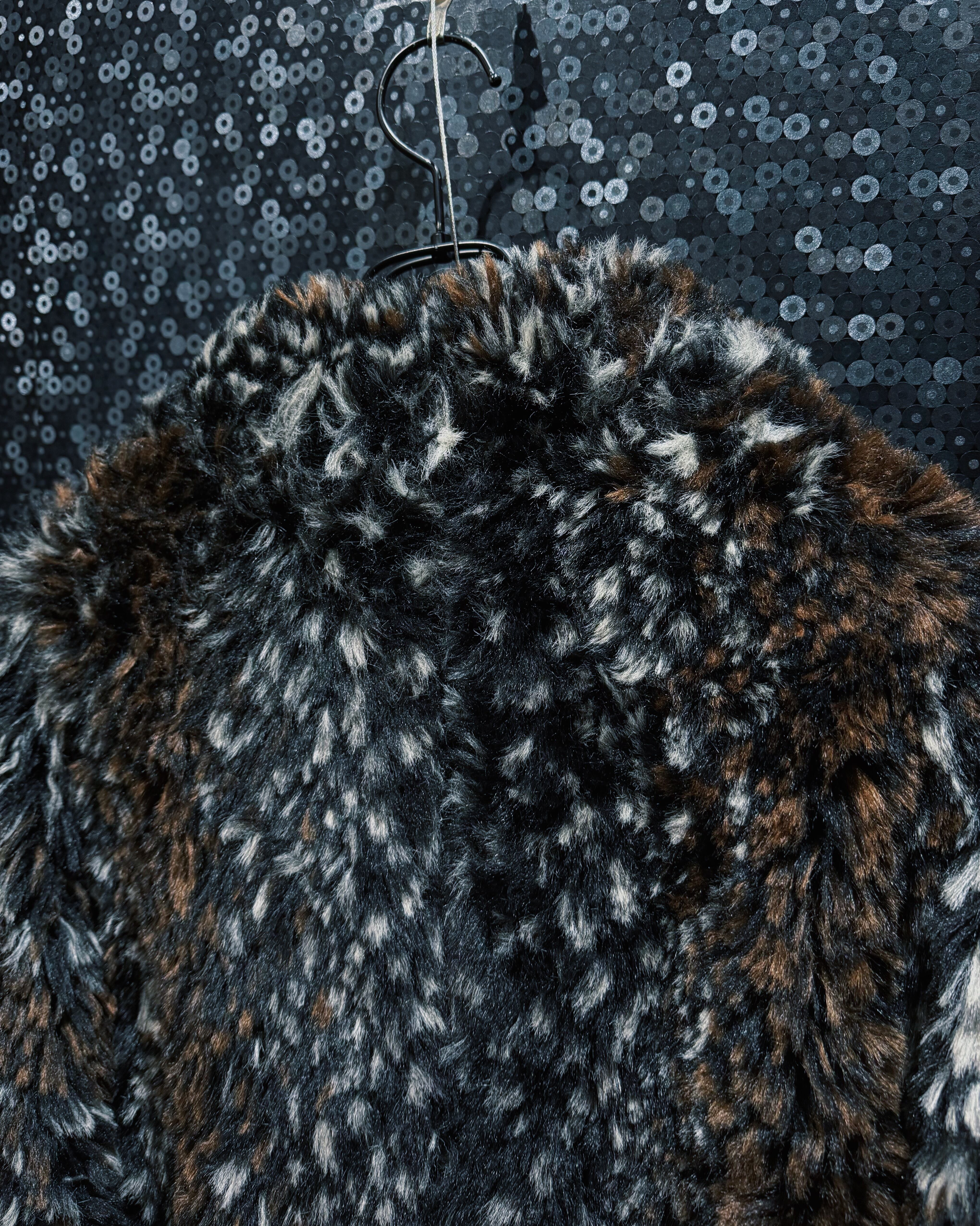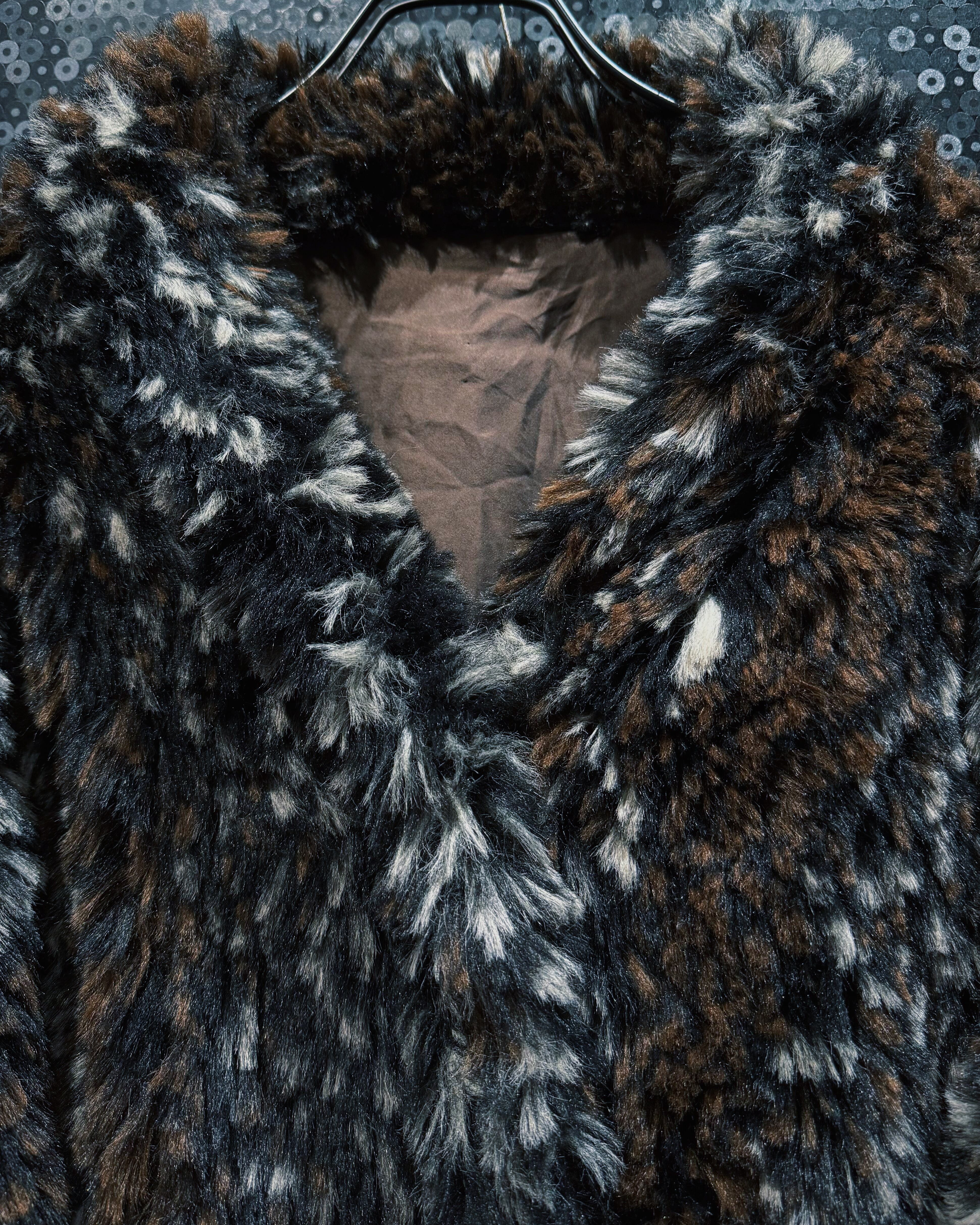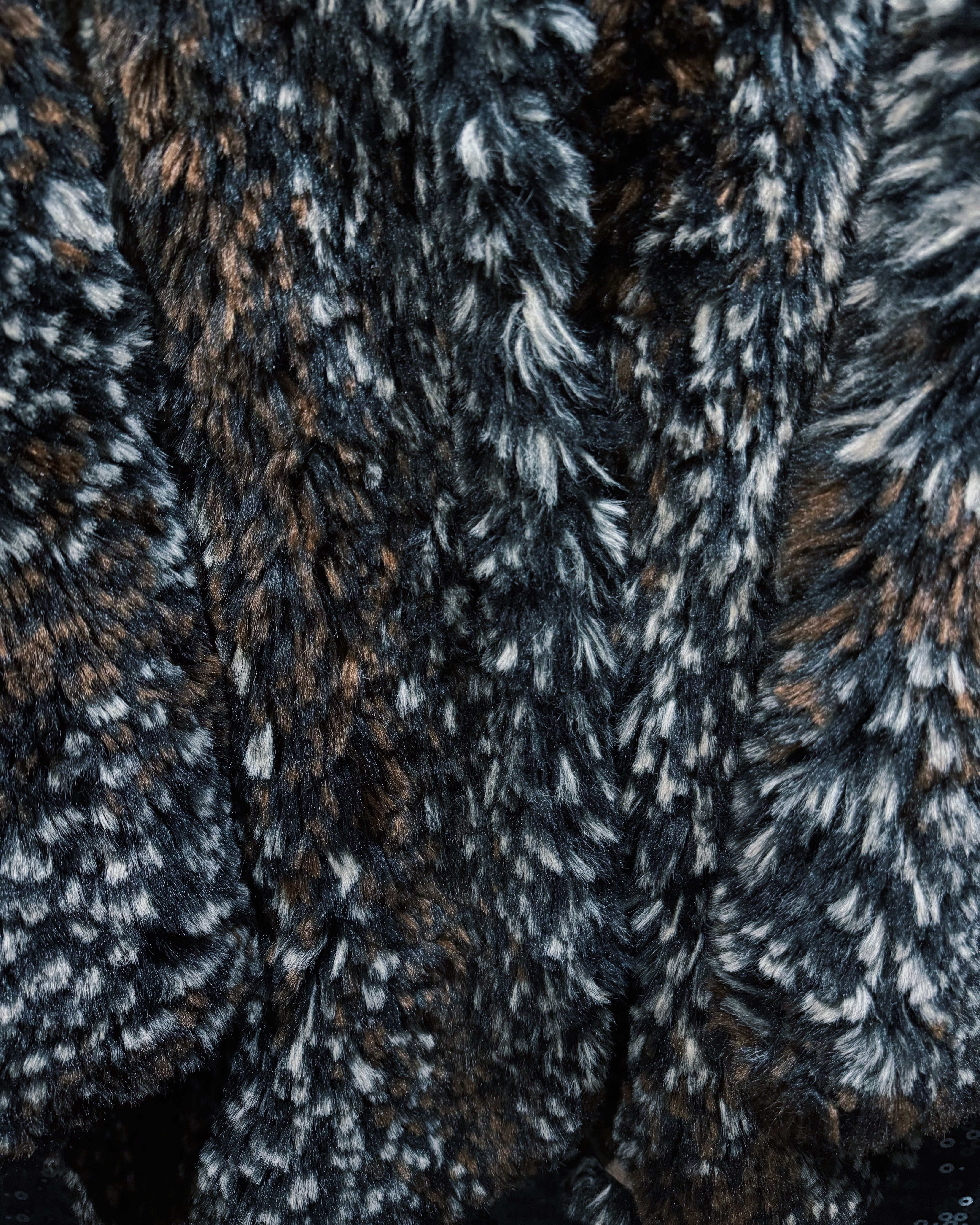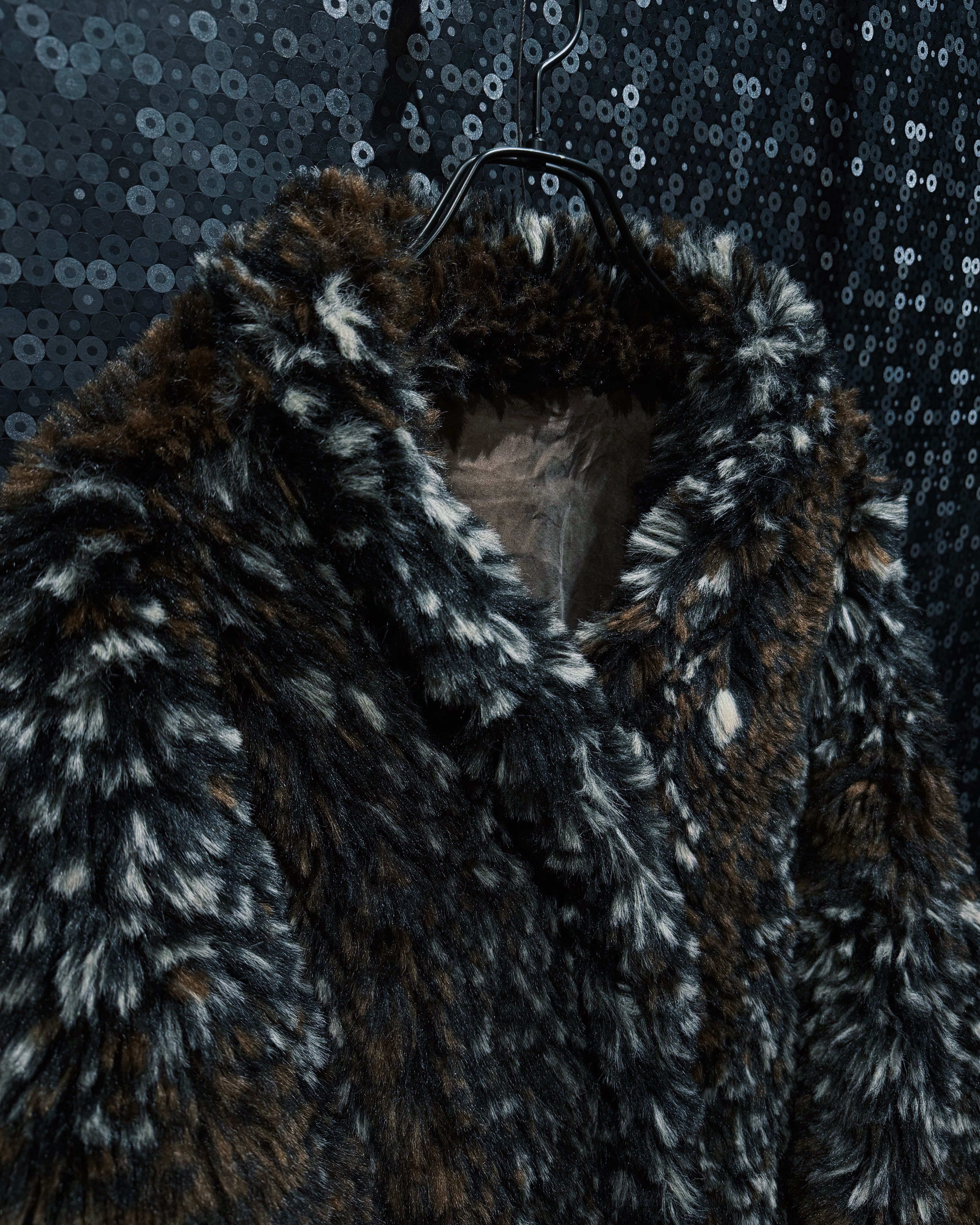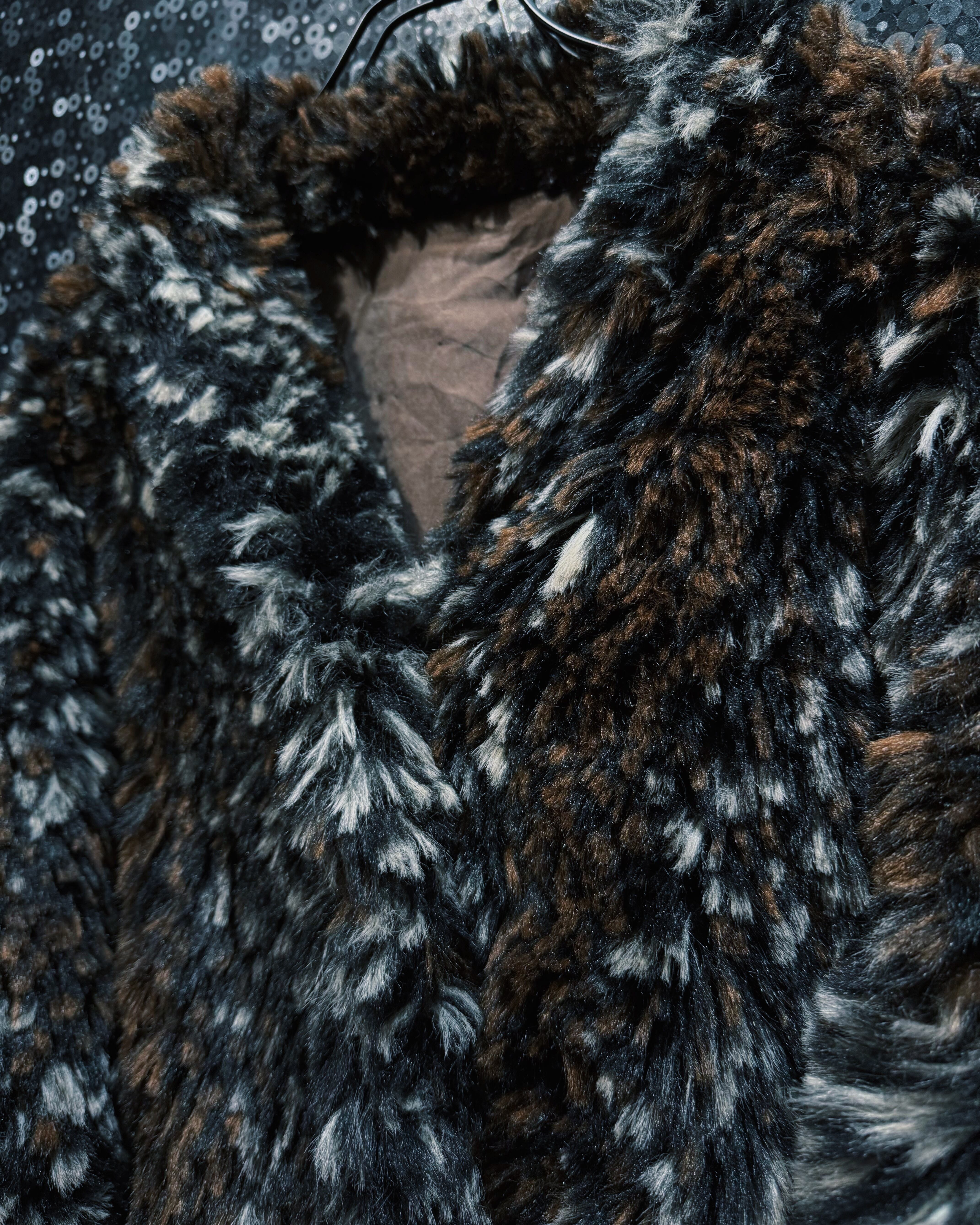 ブラウン、ブラック、ホワイトが細かく混ざり合ったシャギーファー素材を使用したヴィンテージコート。