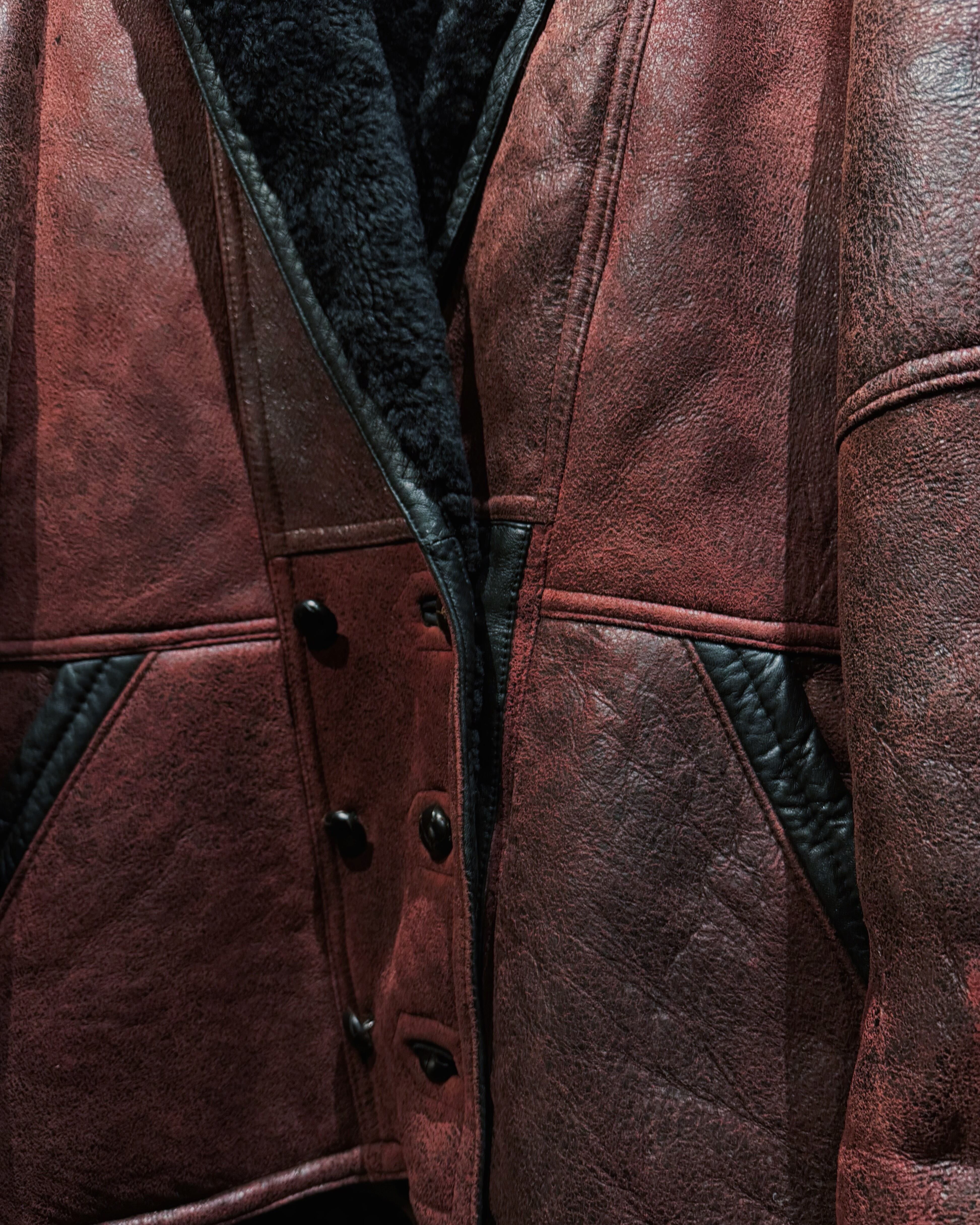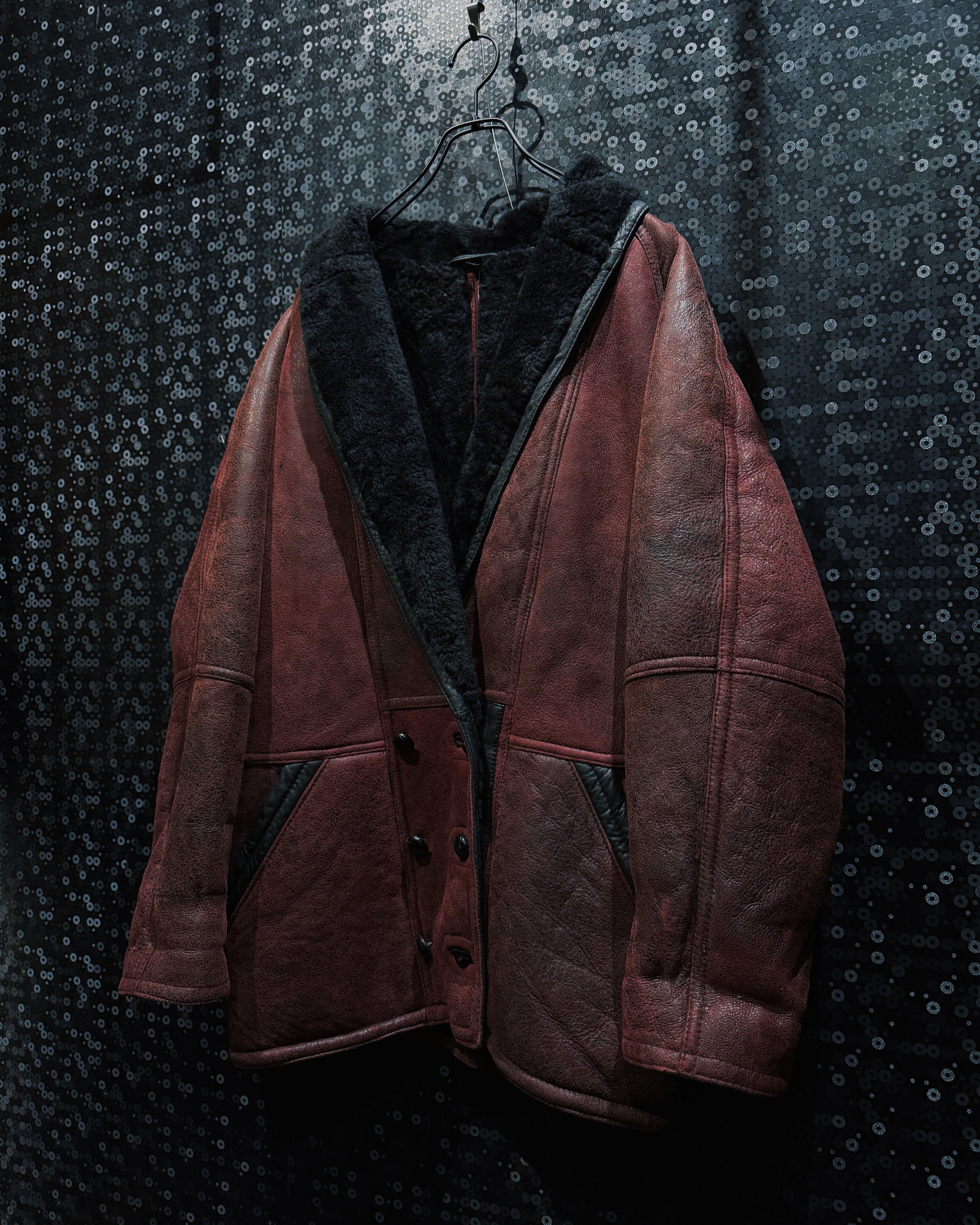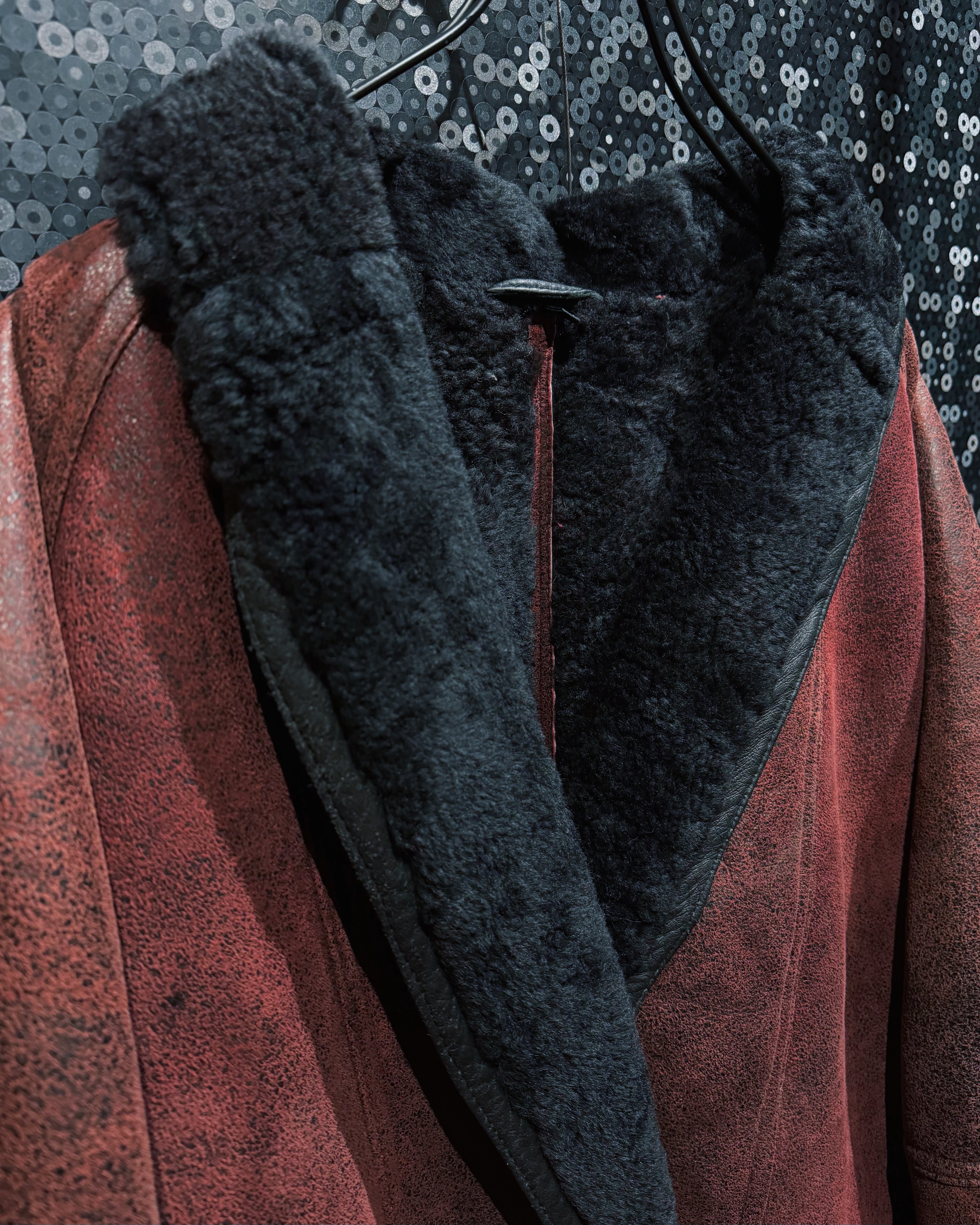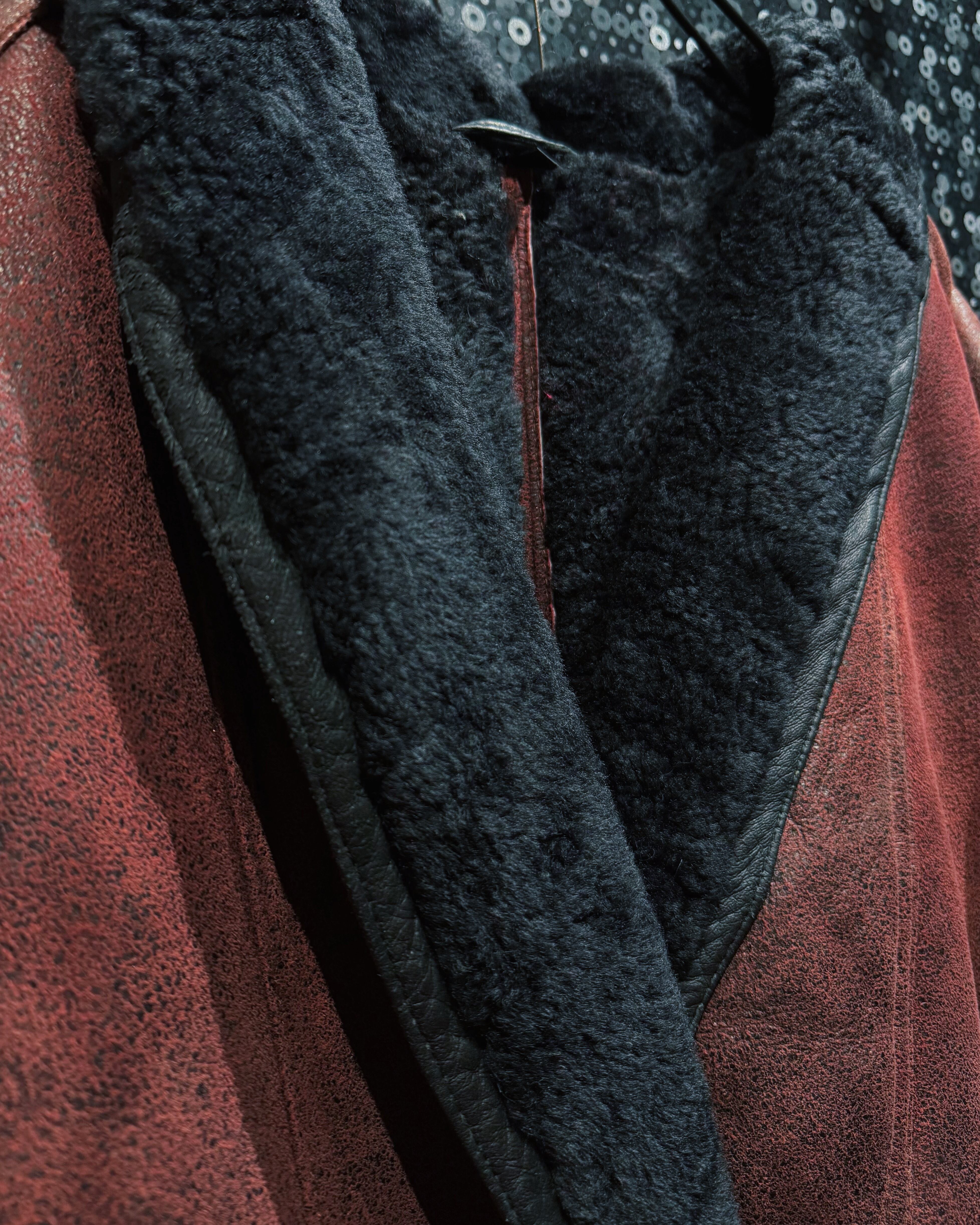 【ÆIEM】"vintage"wine red shearling leather jacket