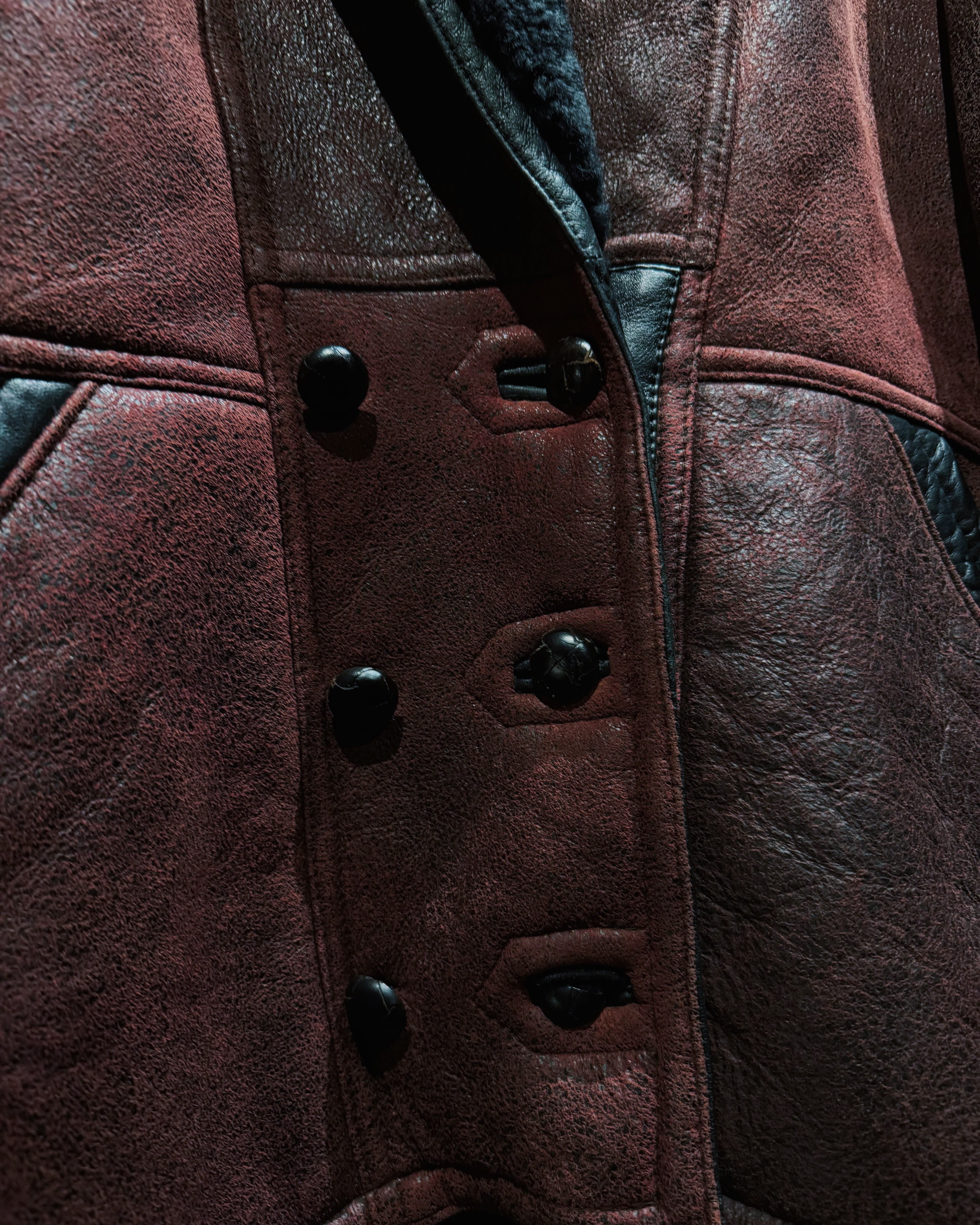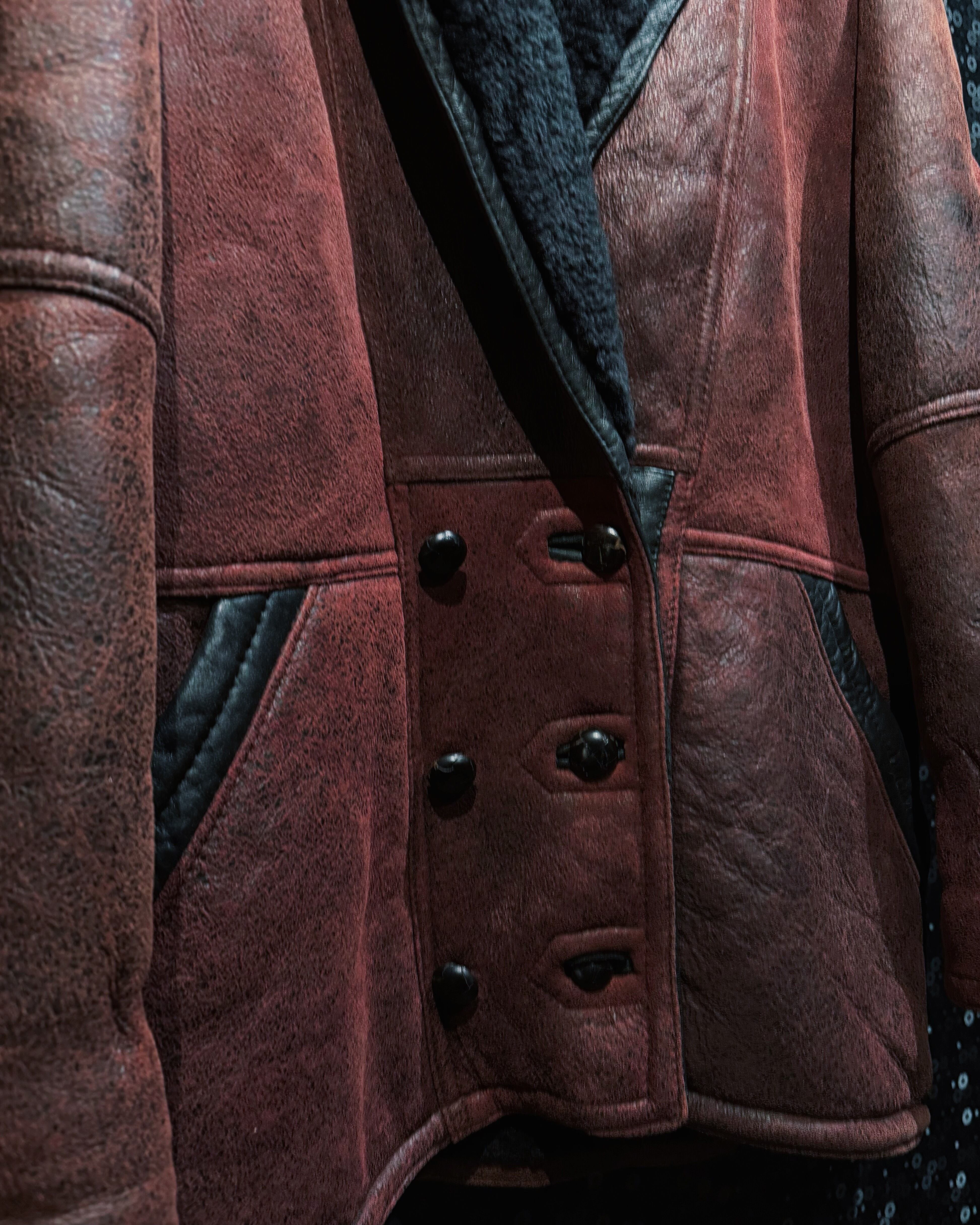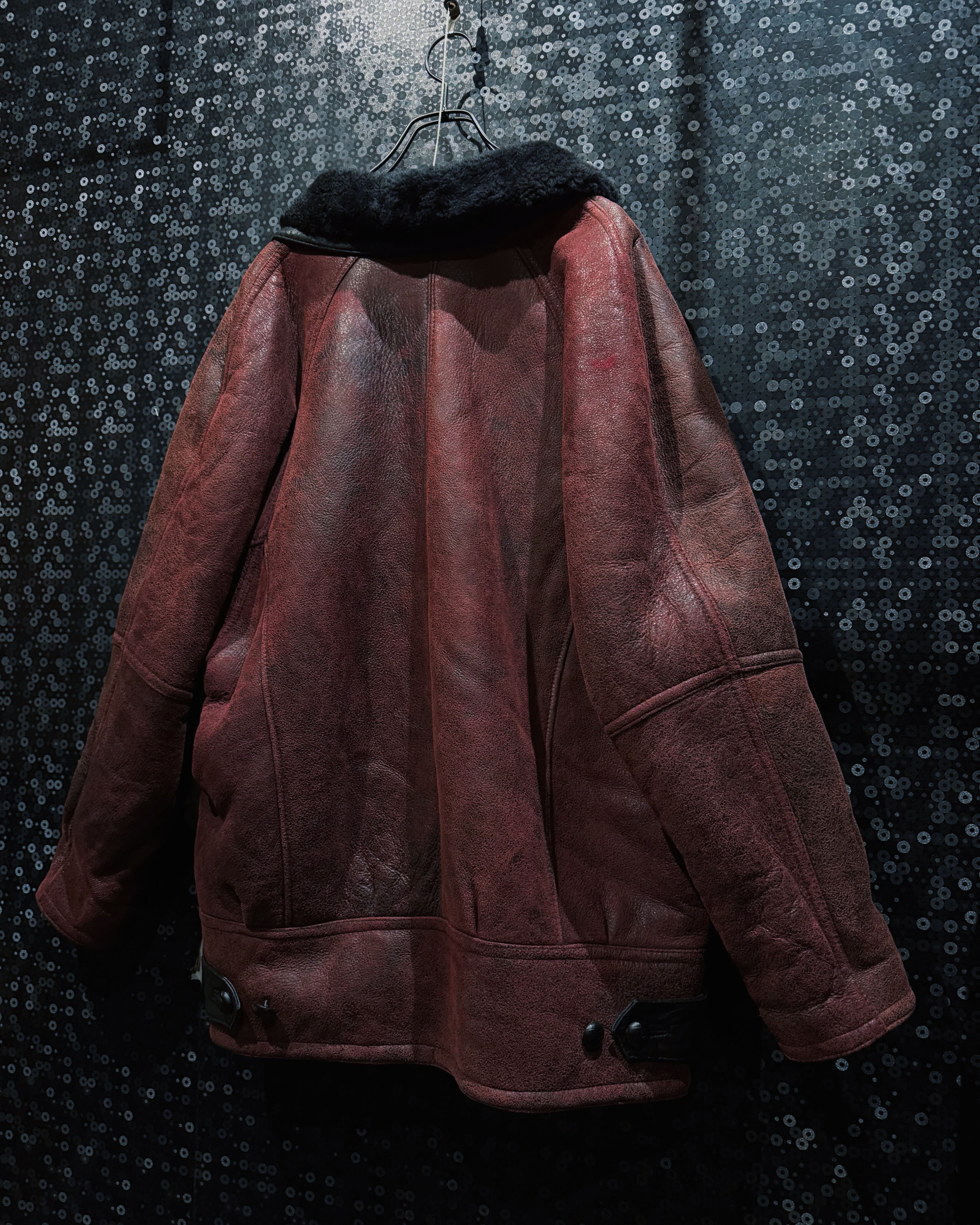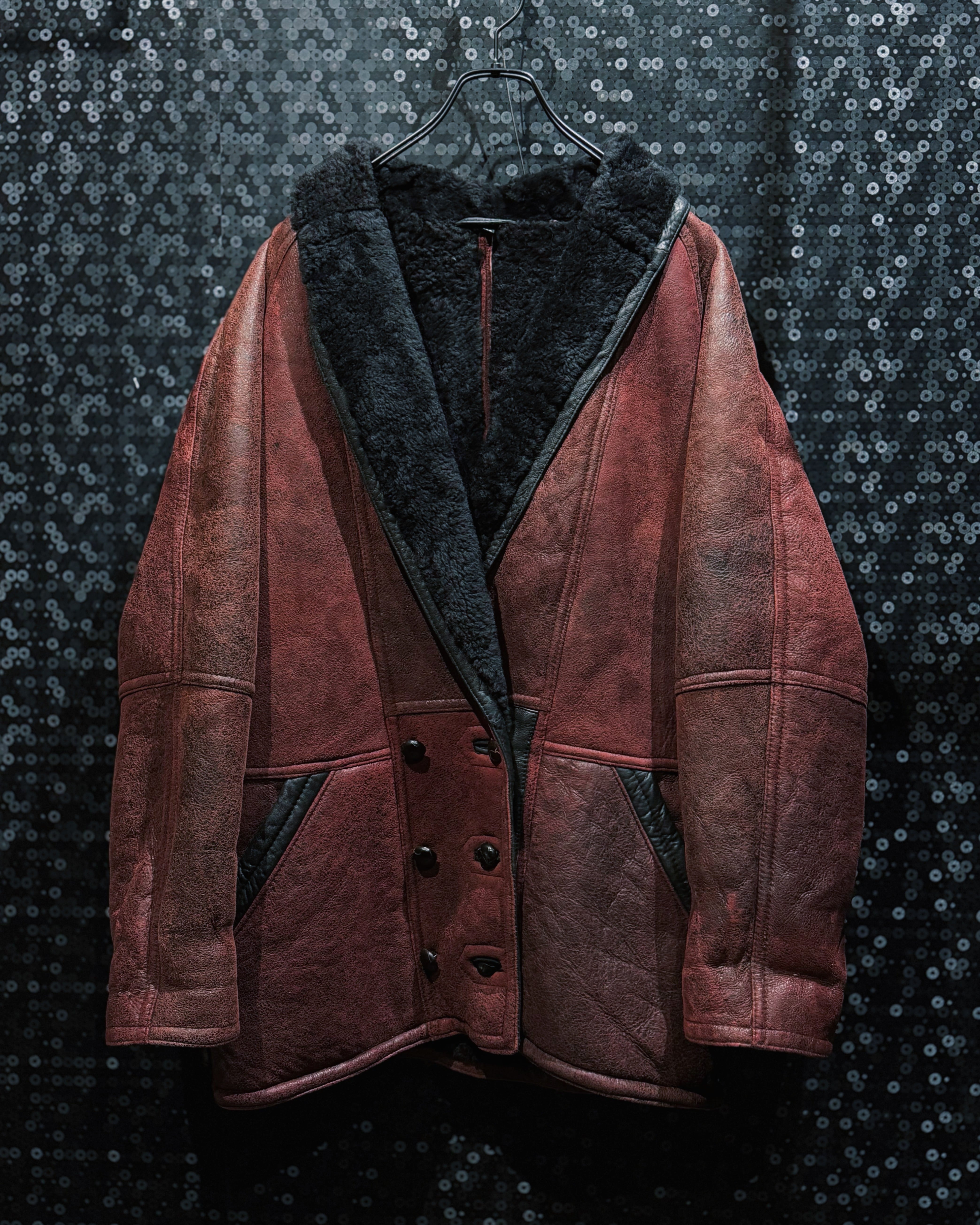 【ÆIEM】"vintage"wine red shearling leather jacket