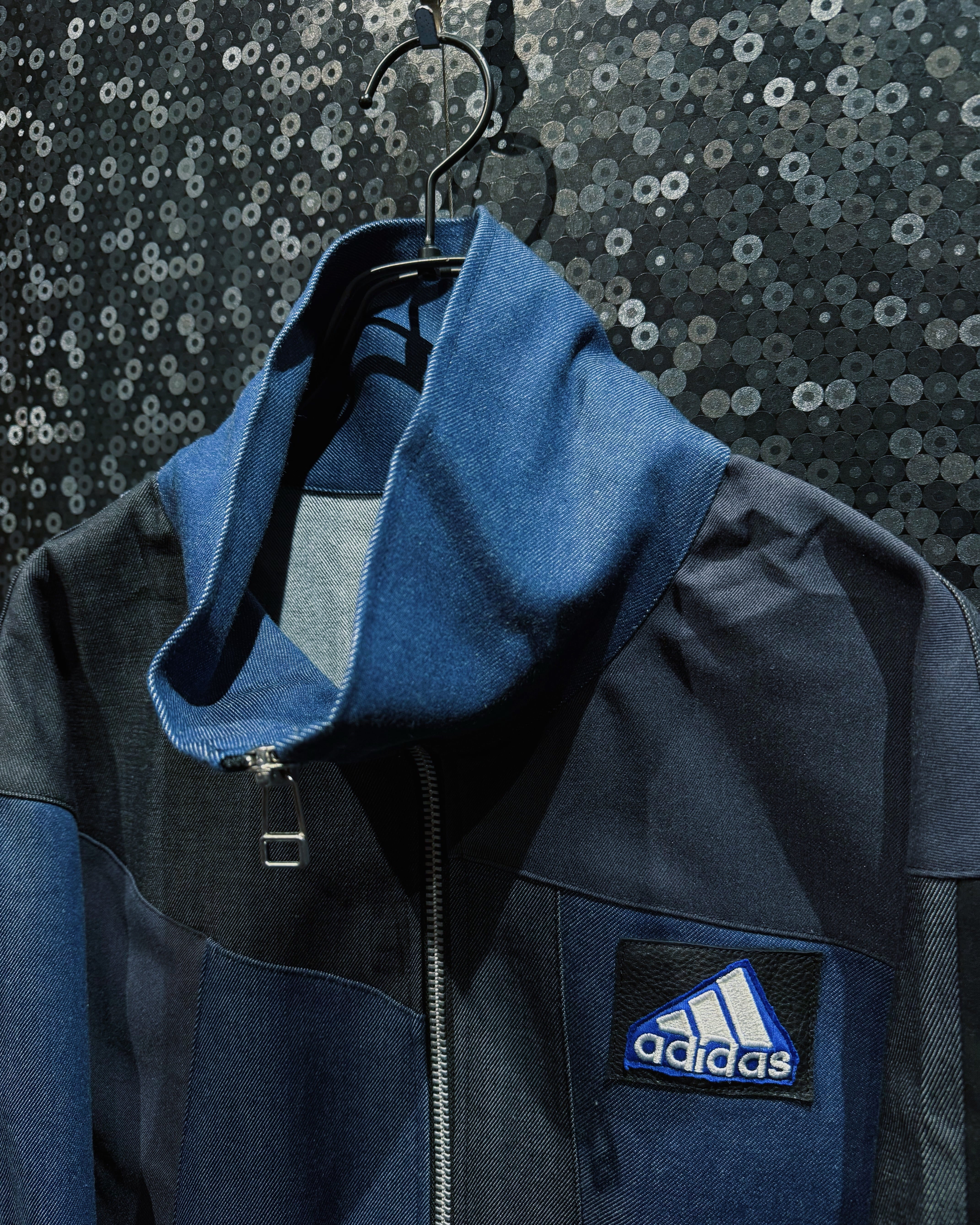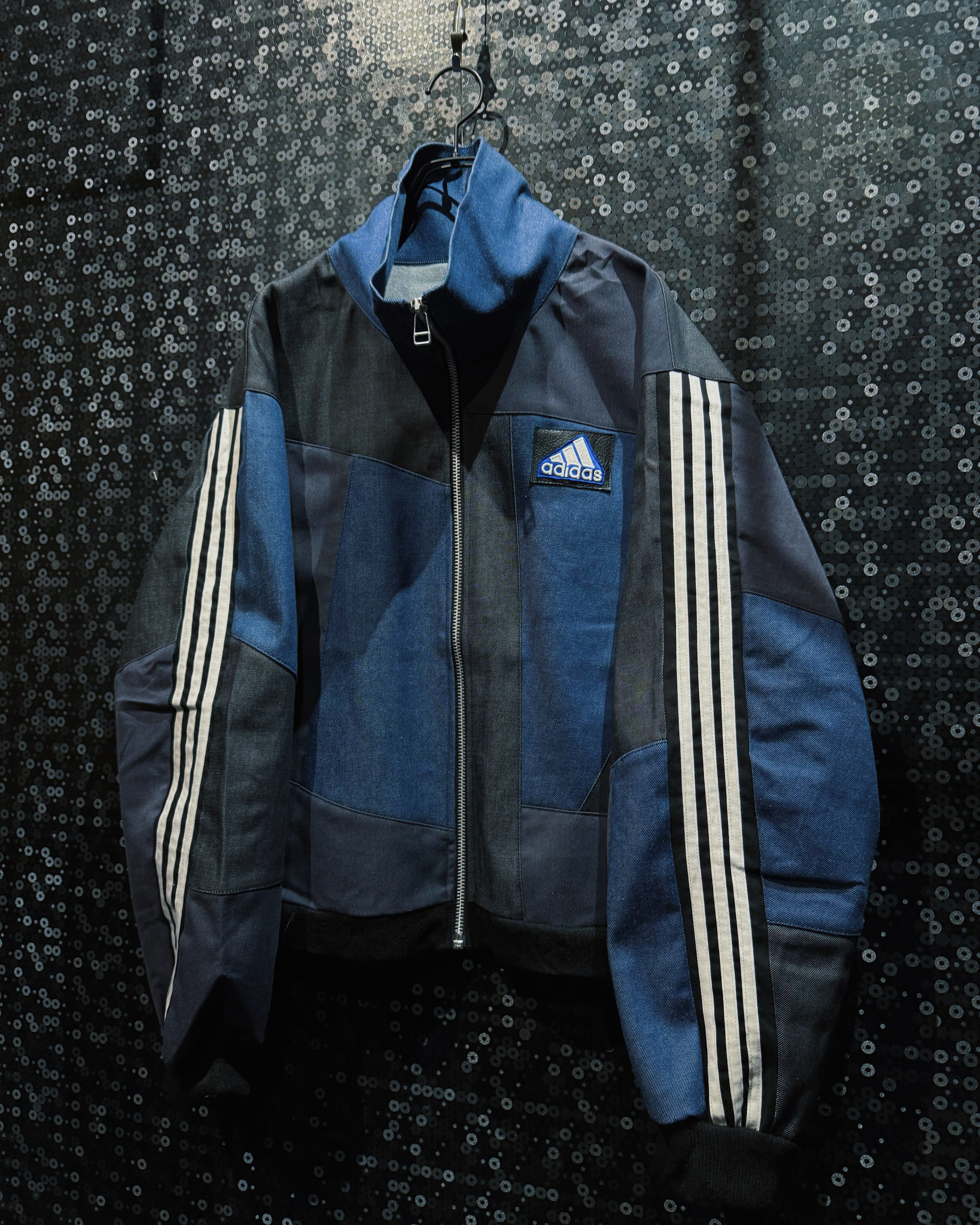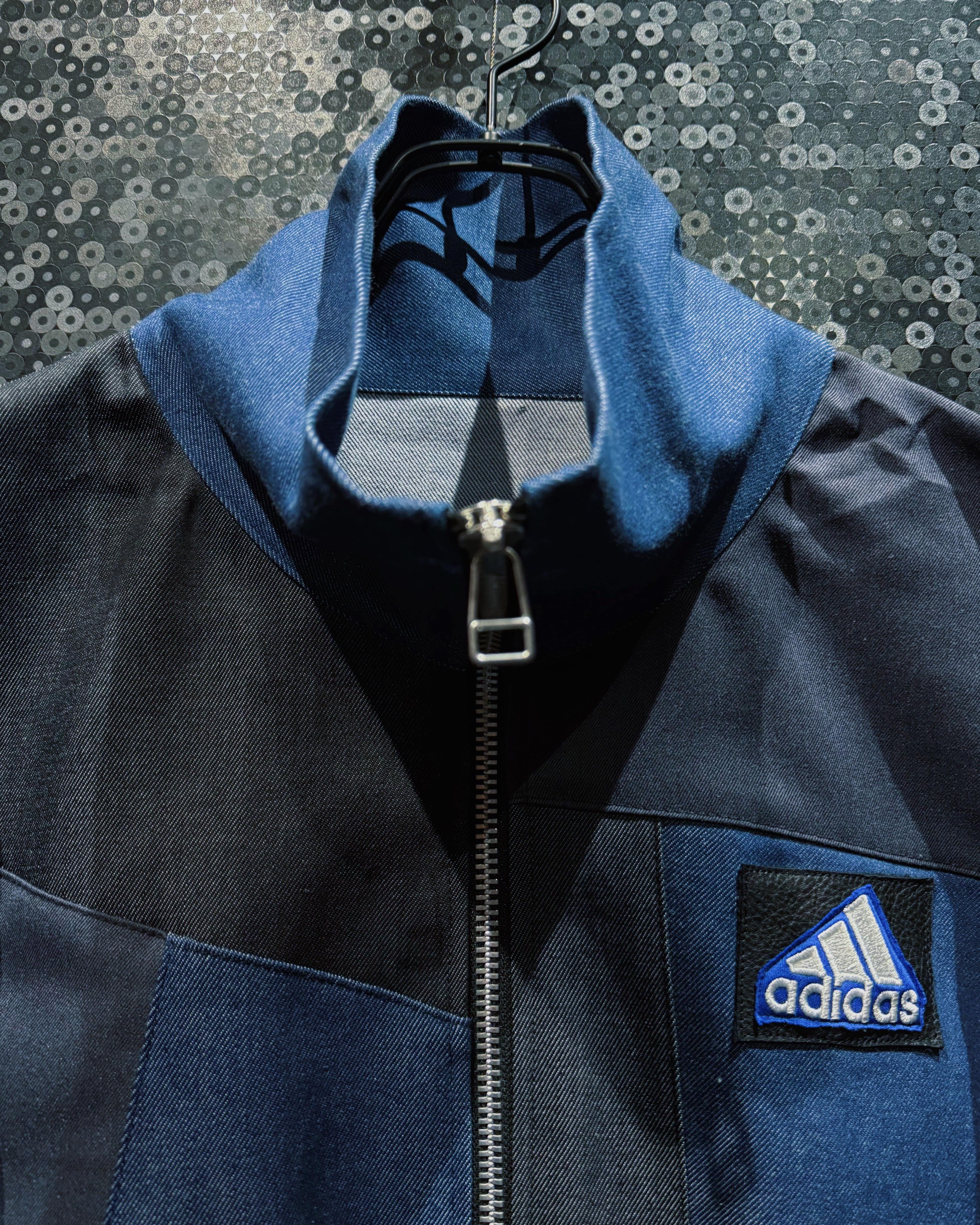 【ÆIEM】special" Original Re:make" denim patch work design stand neck track jacket