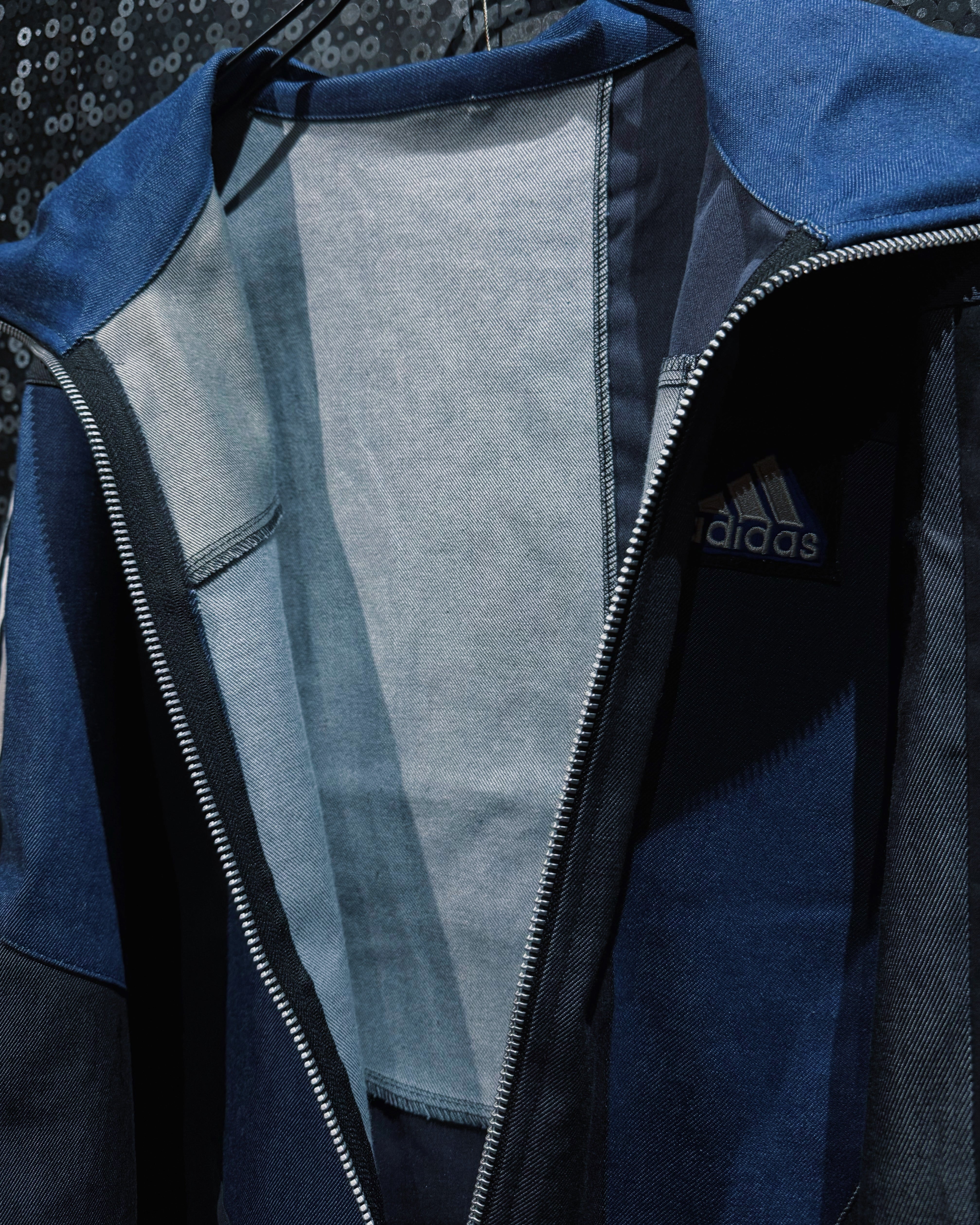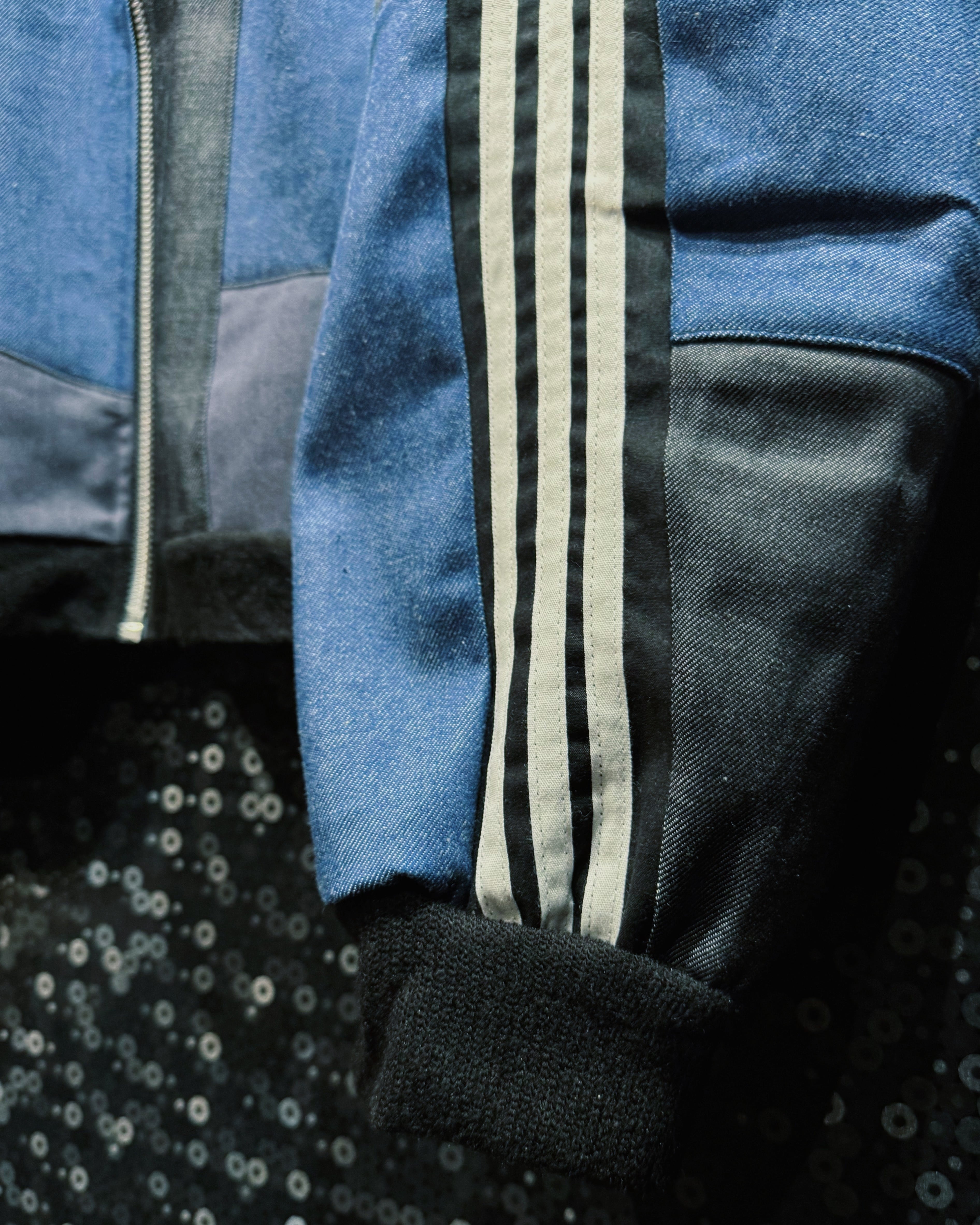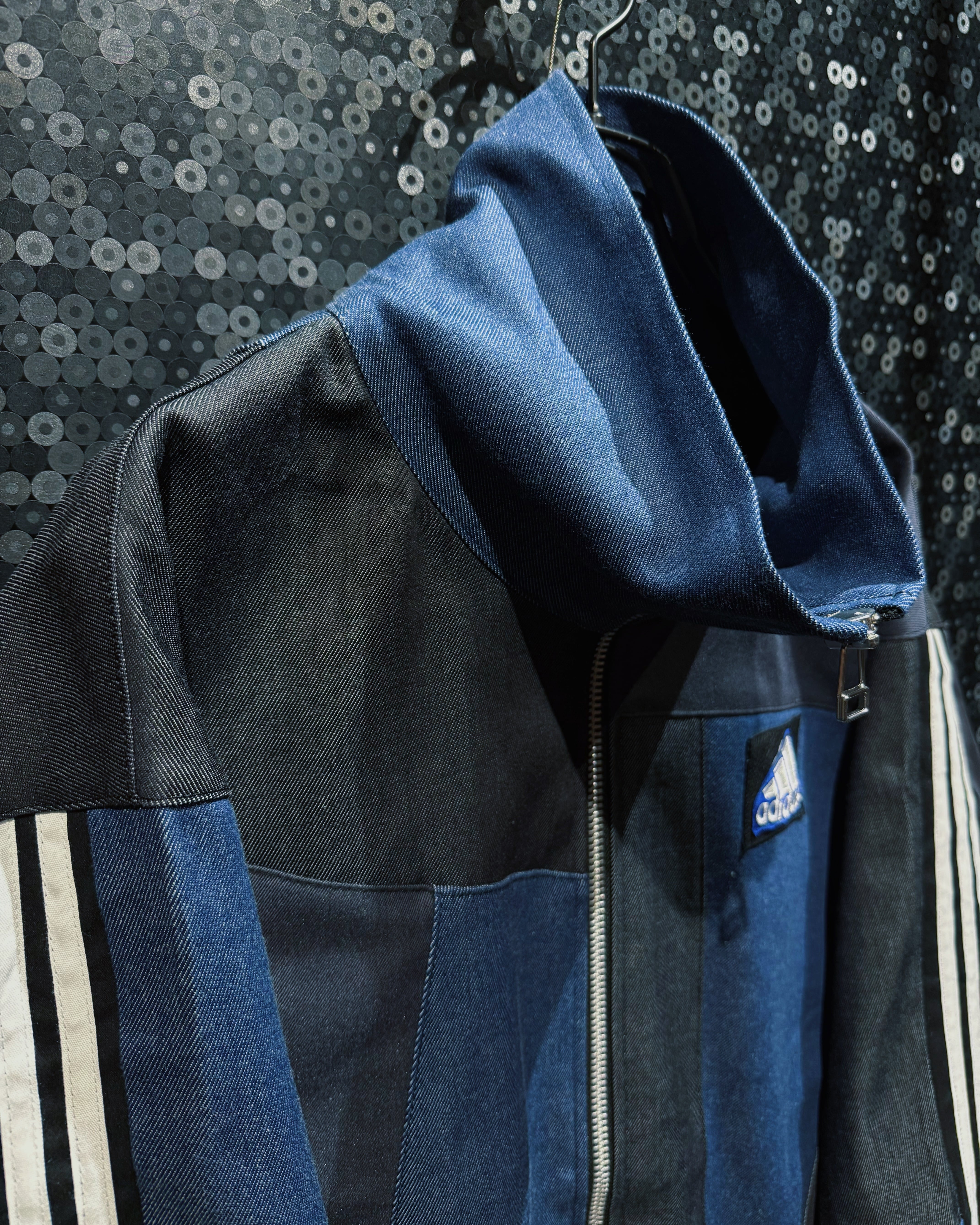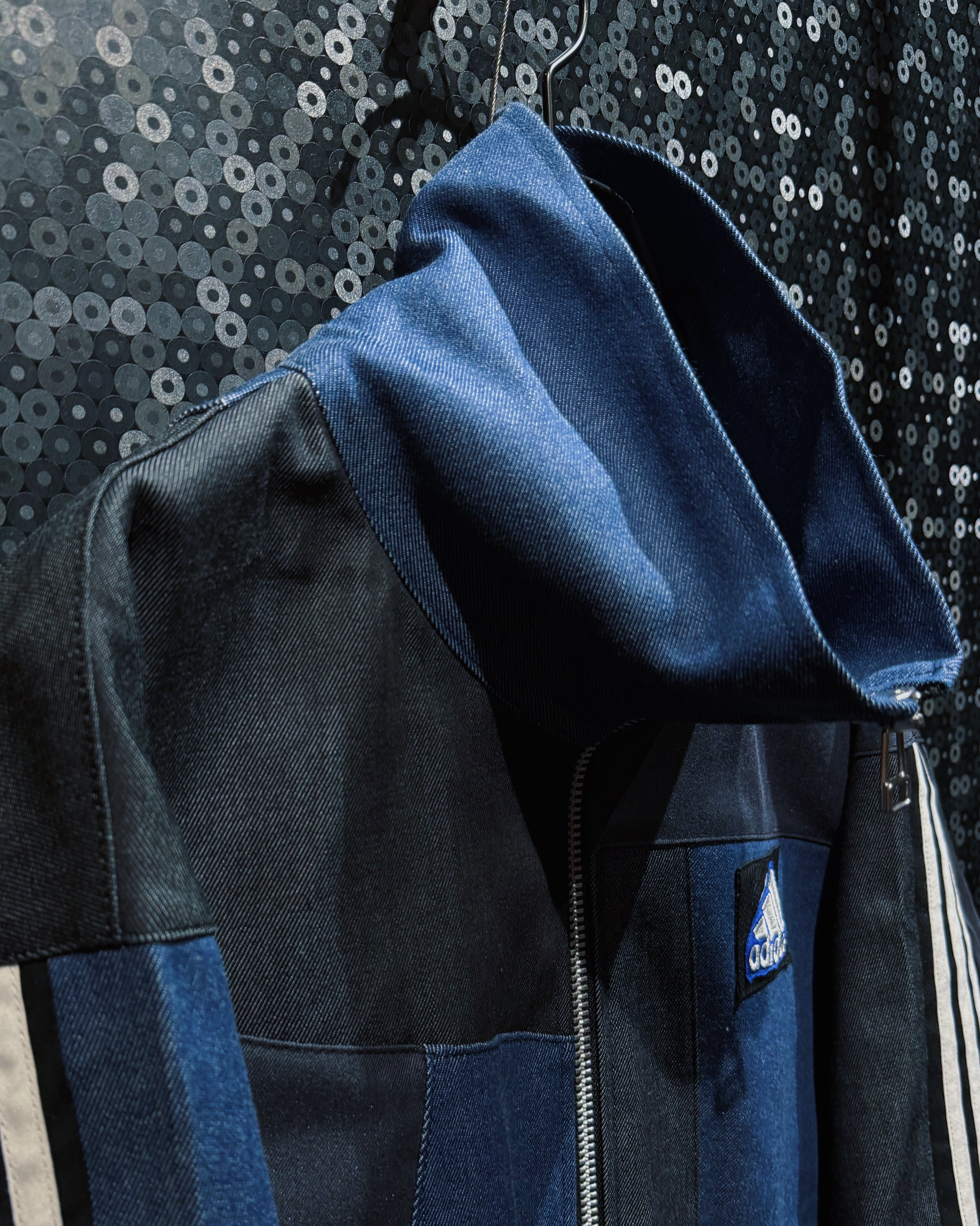 【ÆIEM】special" Original Re:make" denim patch work design stand neck track jacket