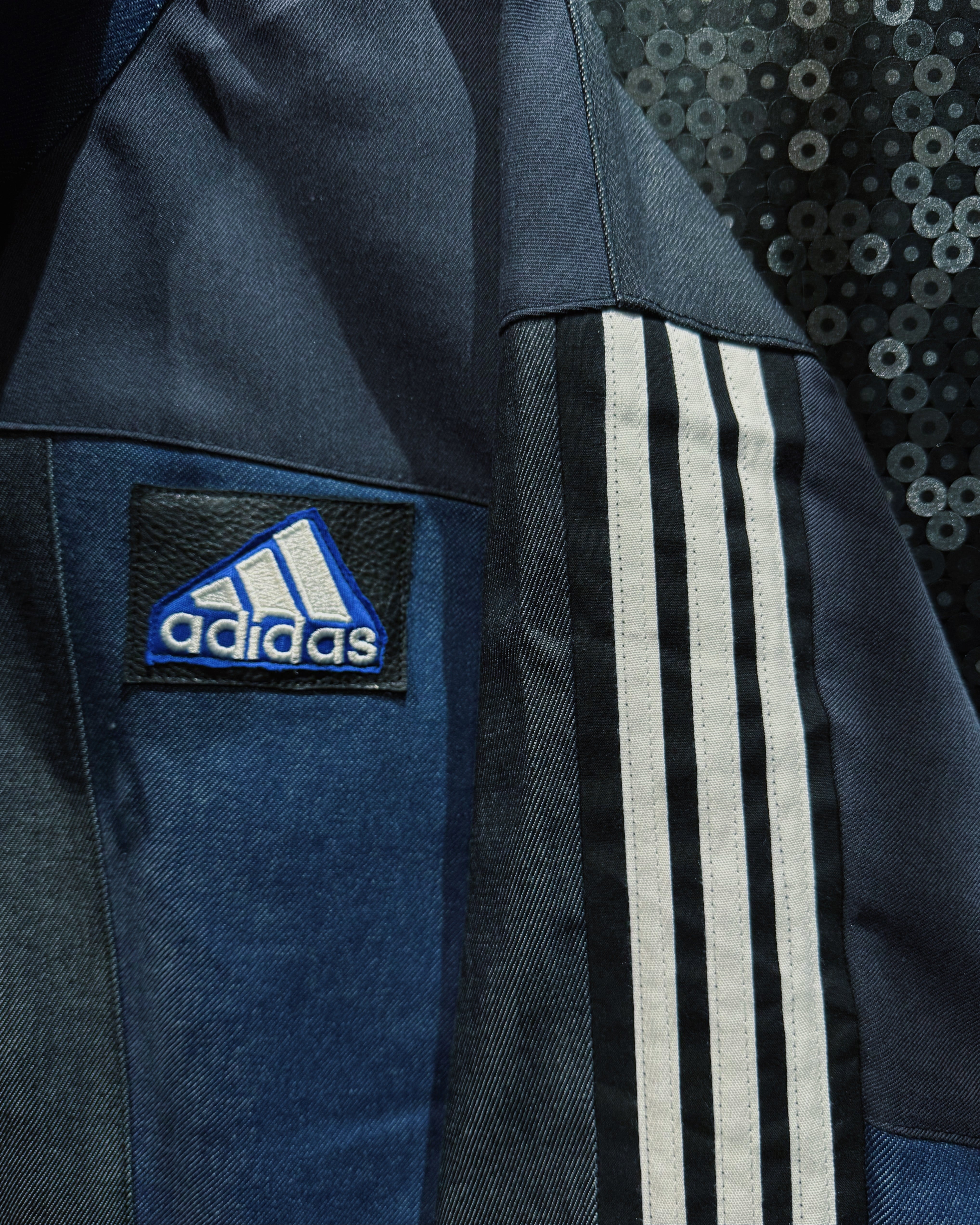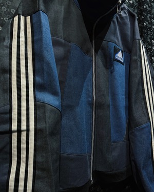 スラックスはもちろん、デニムやカーゴ、リメイクパンツなど合わせるアイテムで様々な表情を見せてくれる当店のトラックジャケットの中でも一際存在感のある逸品。
