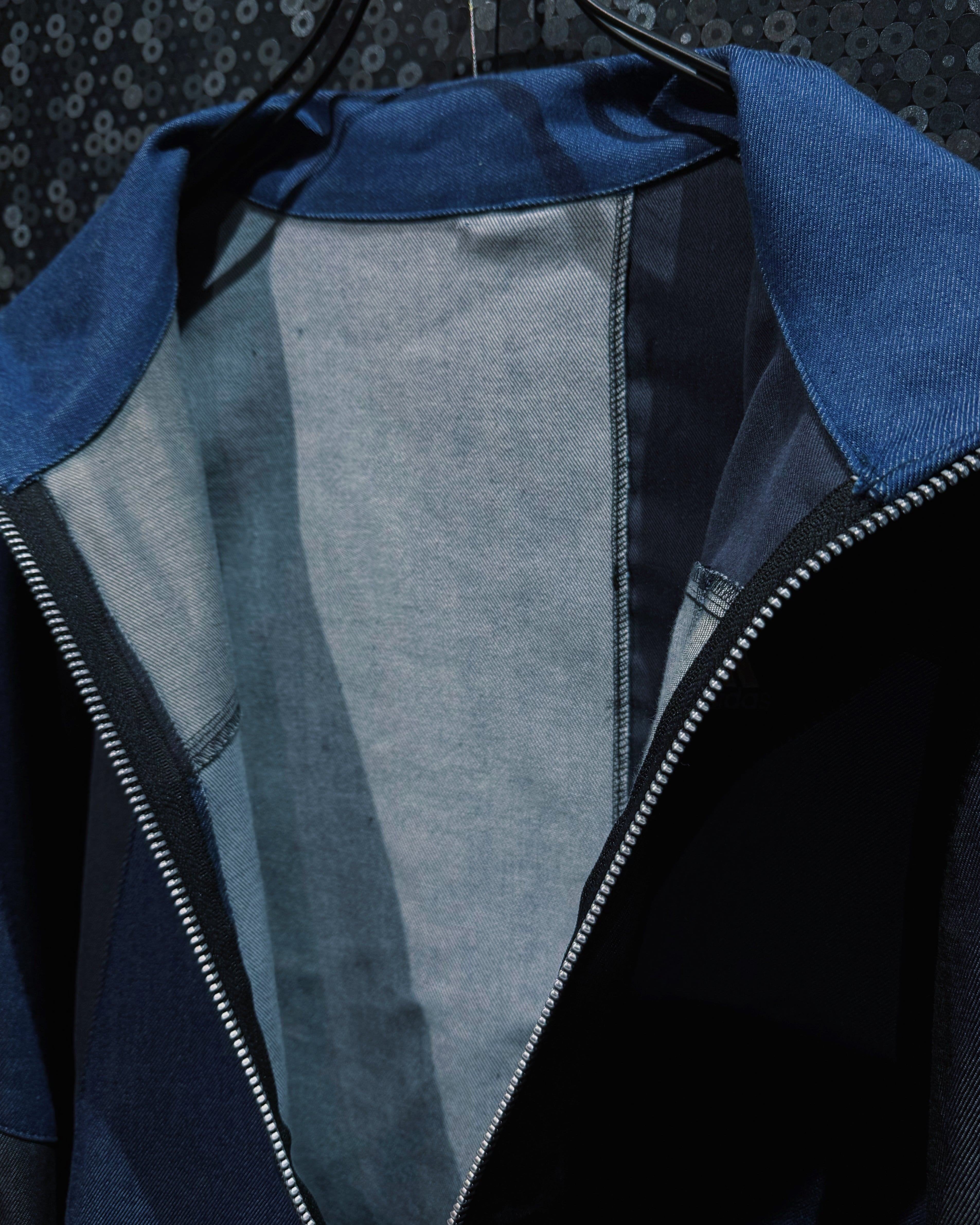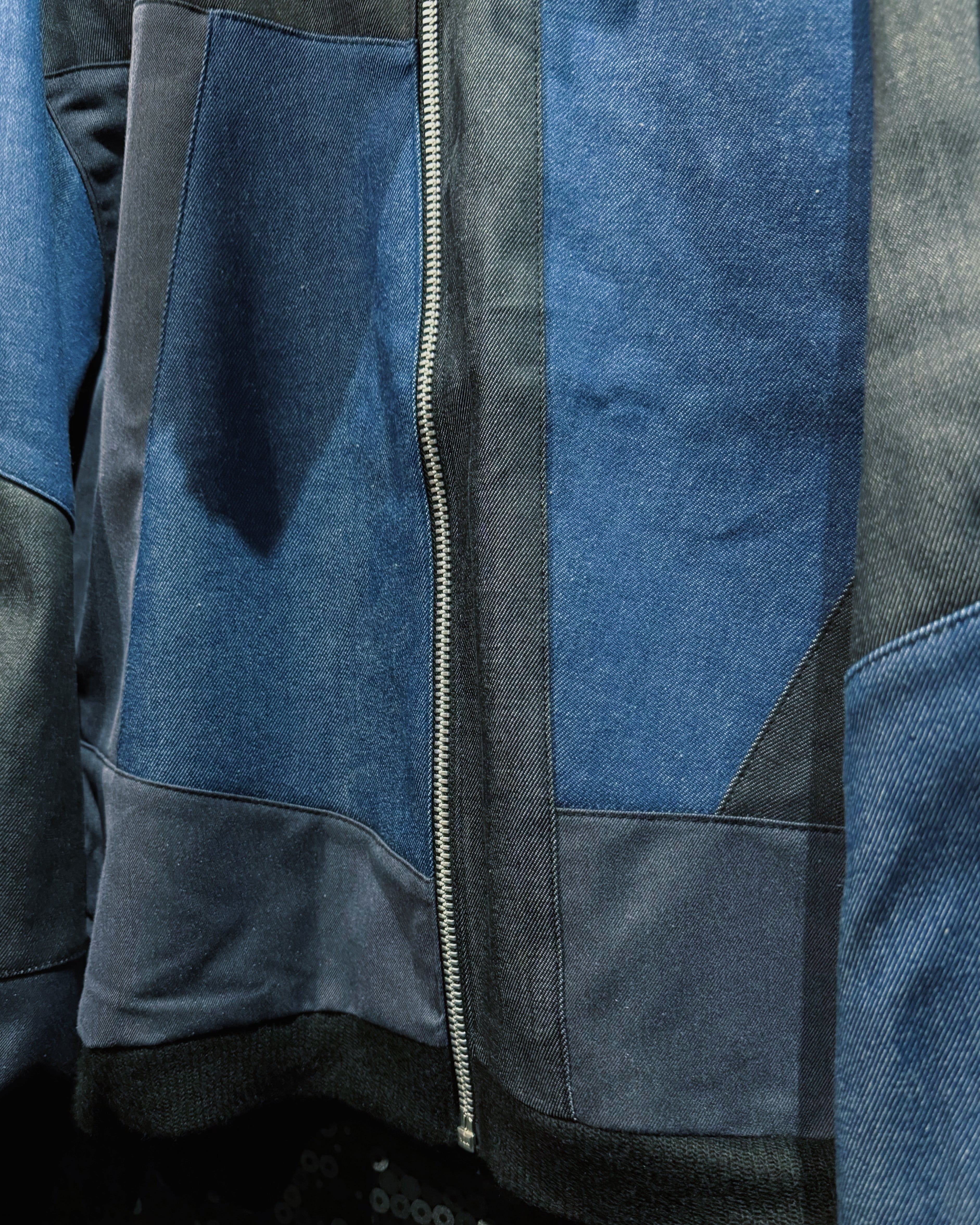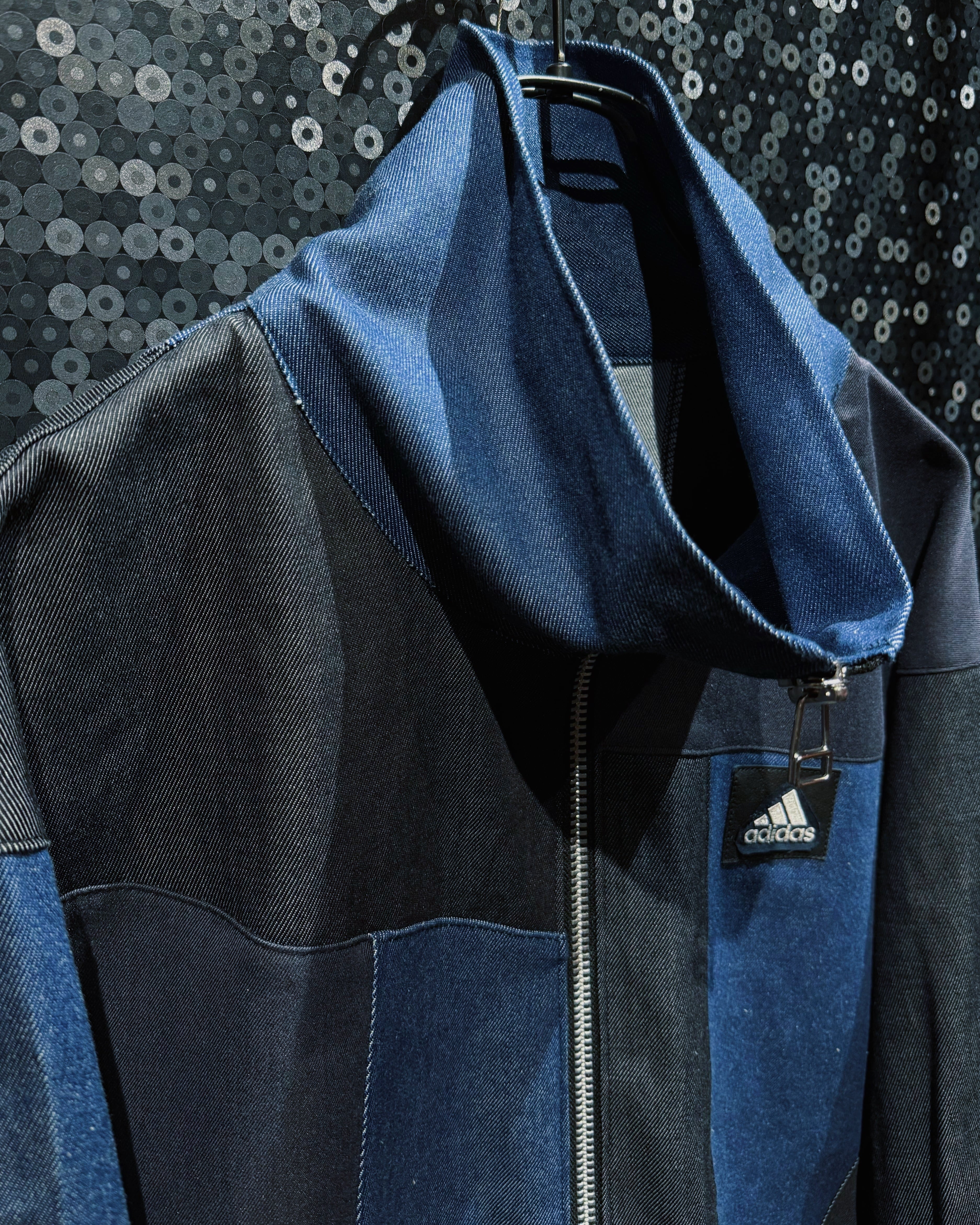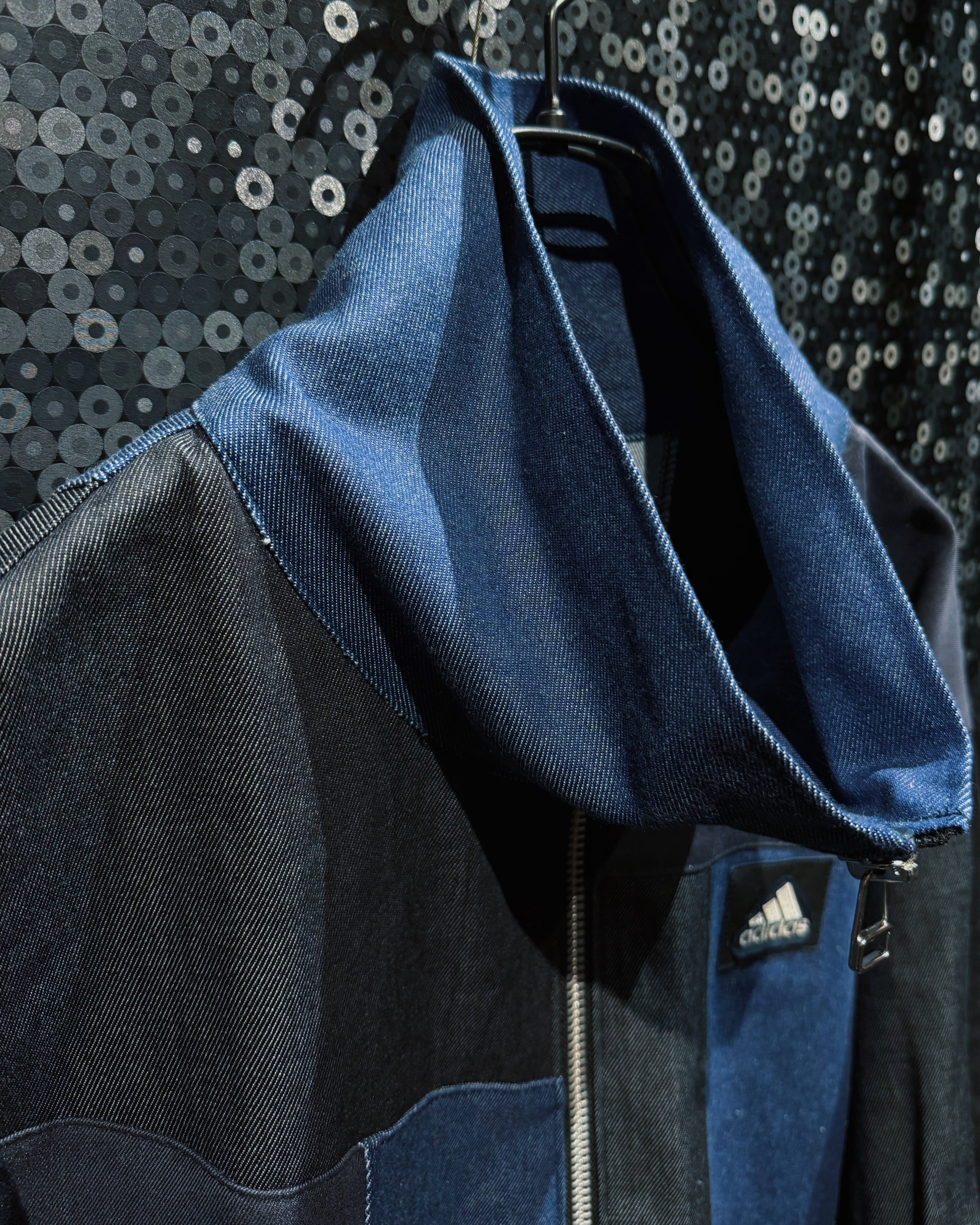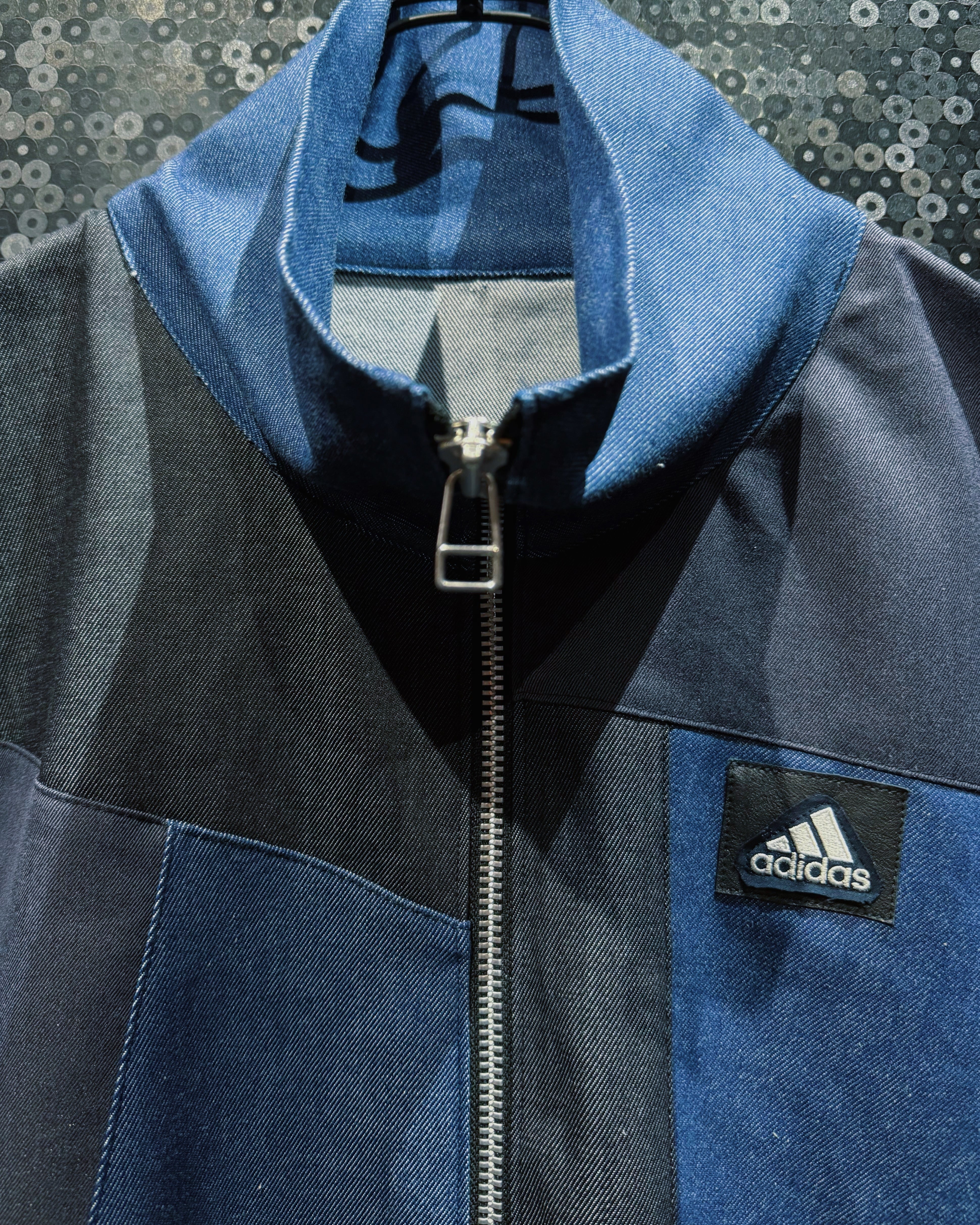 【ÆIEM】special" Original Re:make" denim patch work design stand neck track jacket