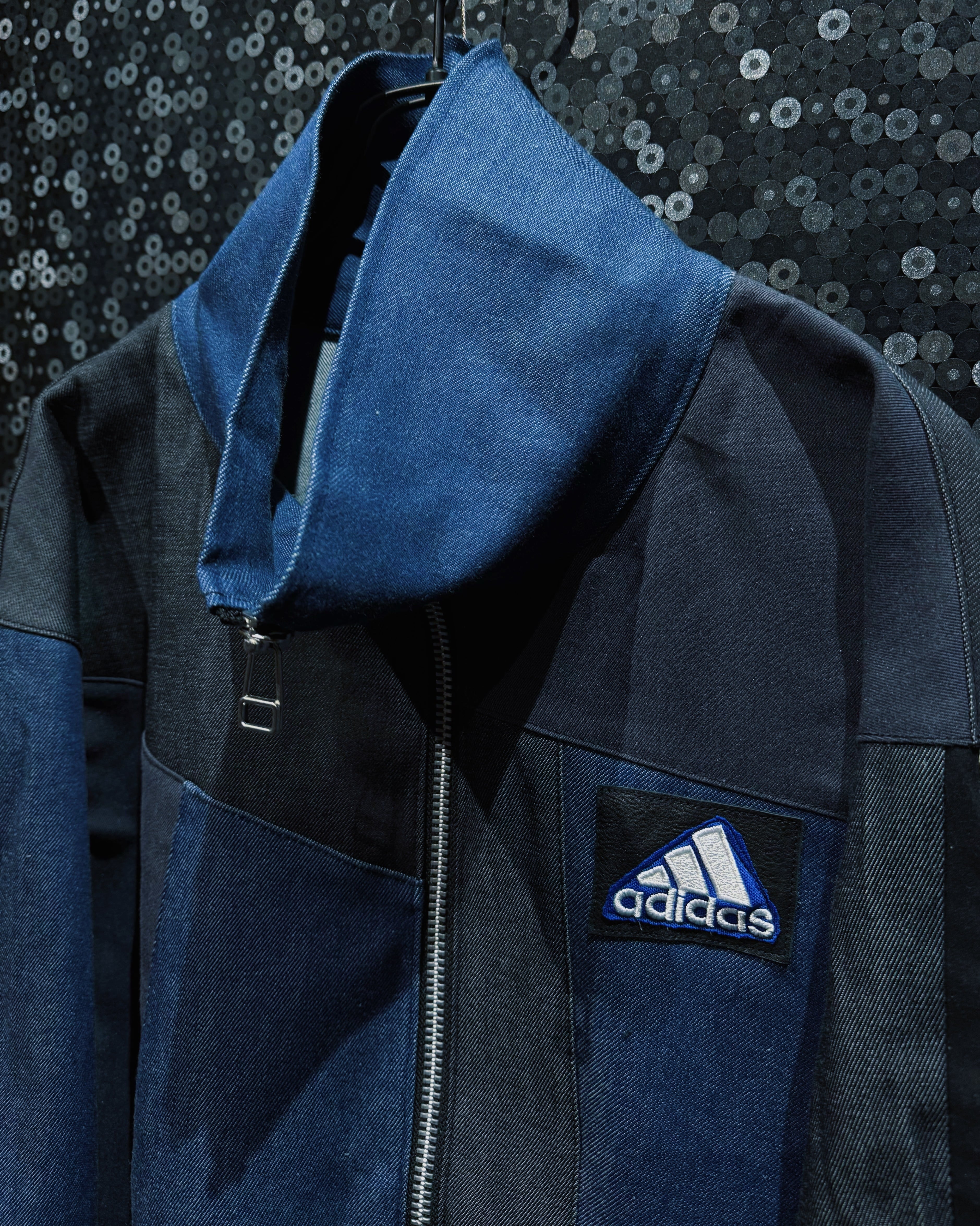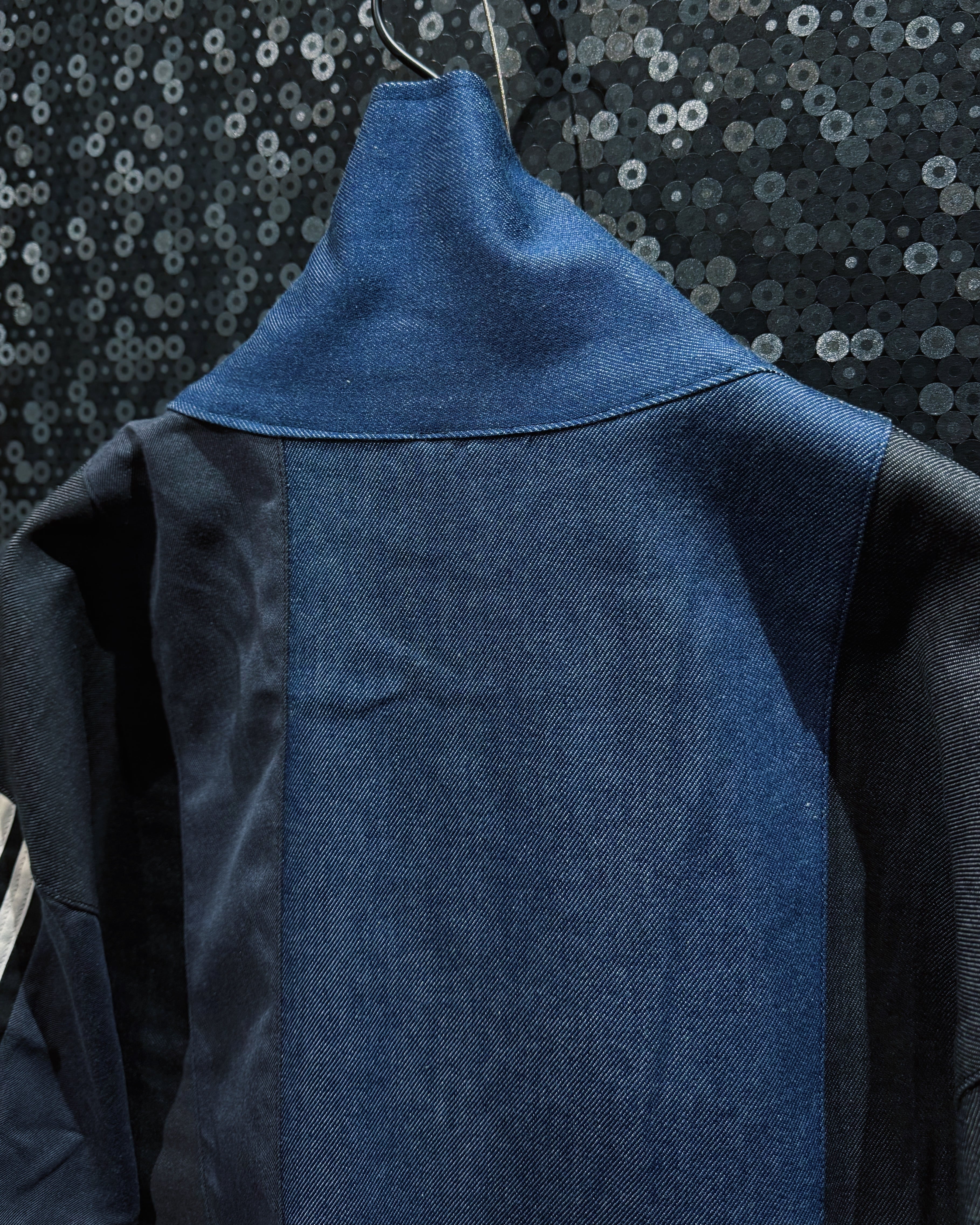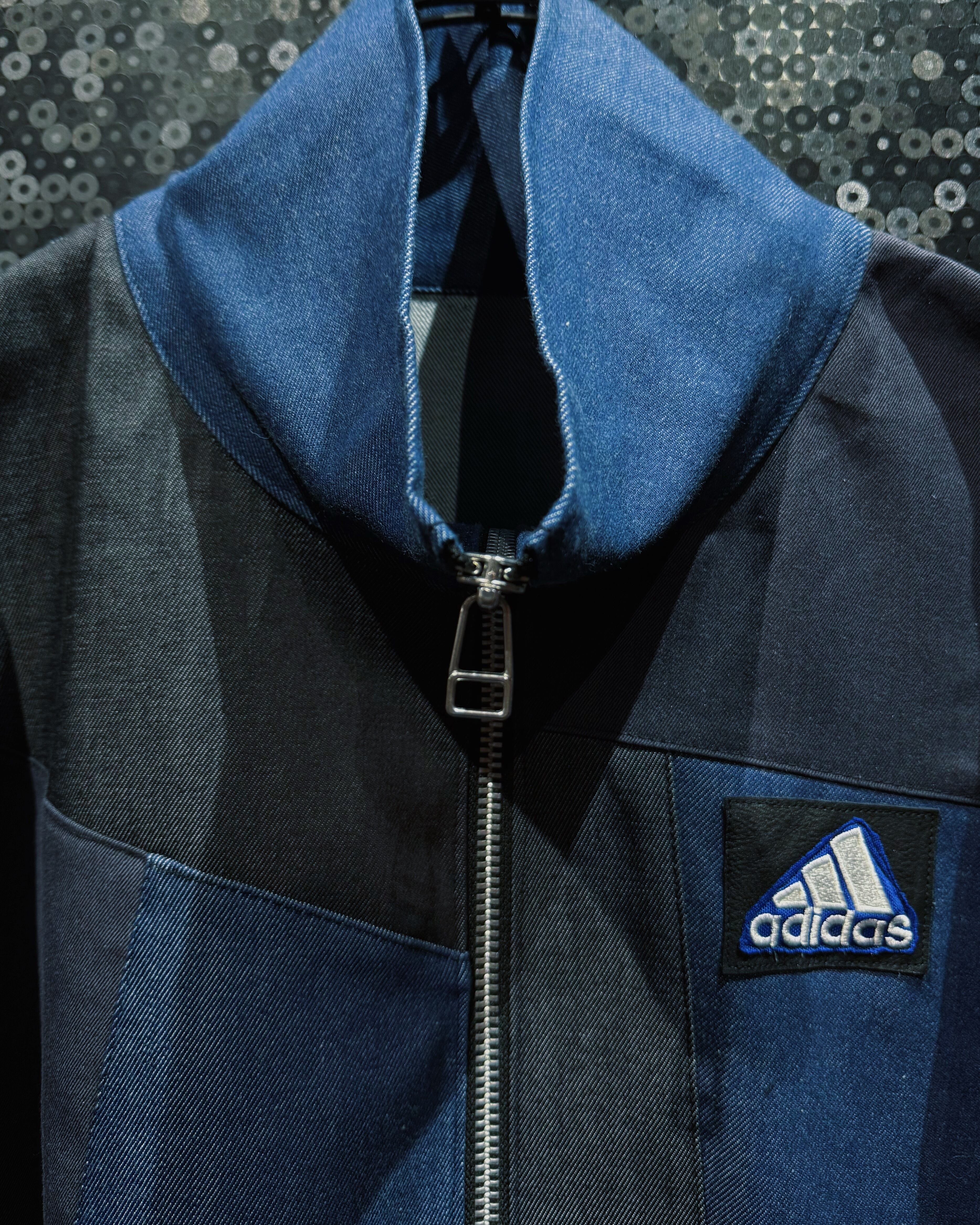 【ÆIEM】special" Original Re:make" denim patch work design stand neck track jacket