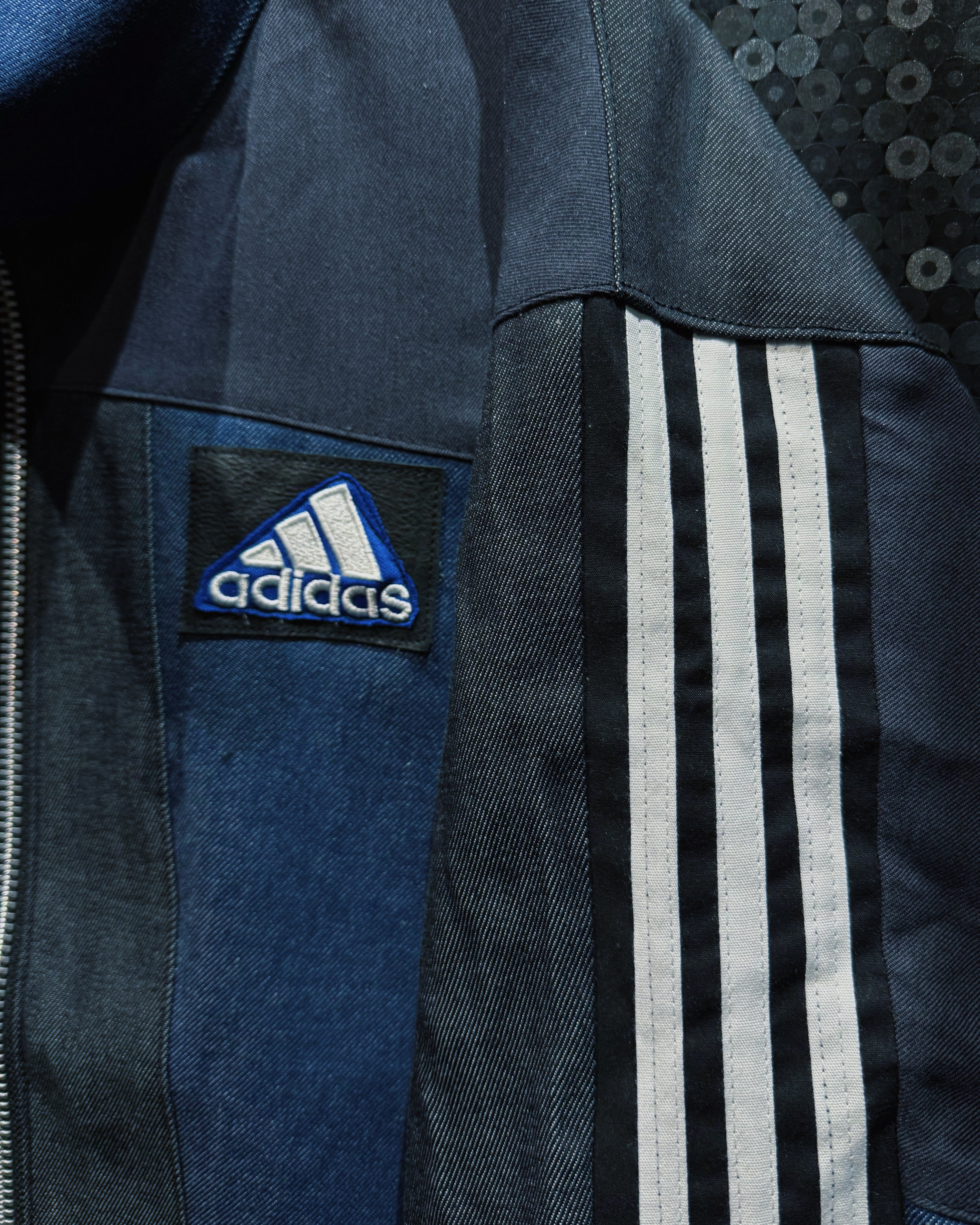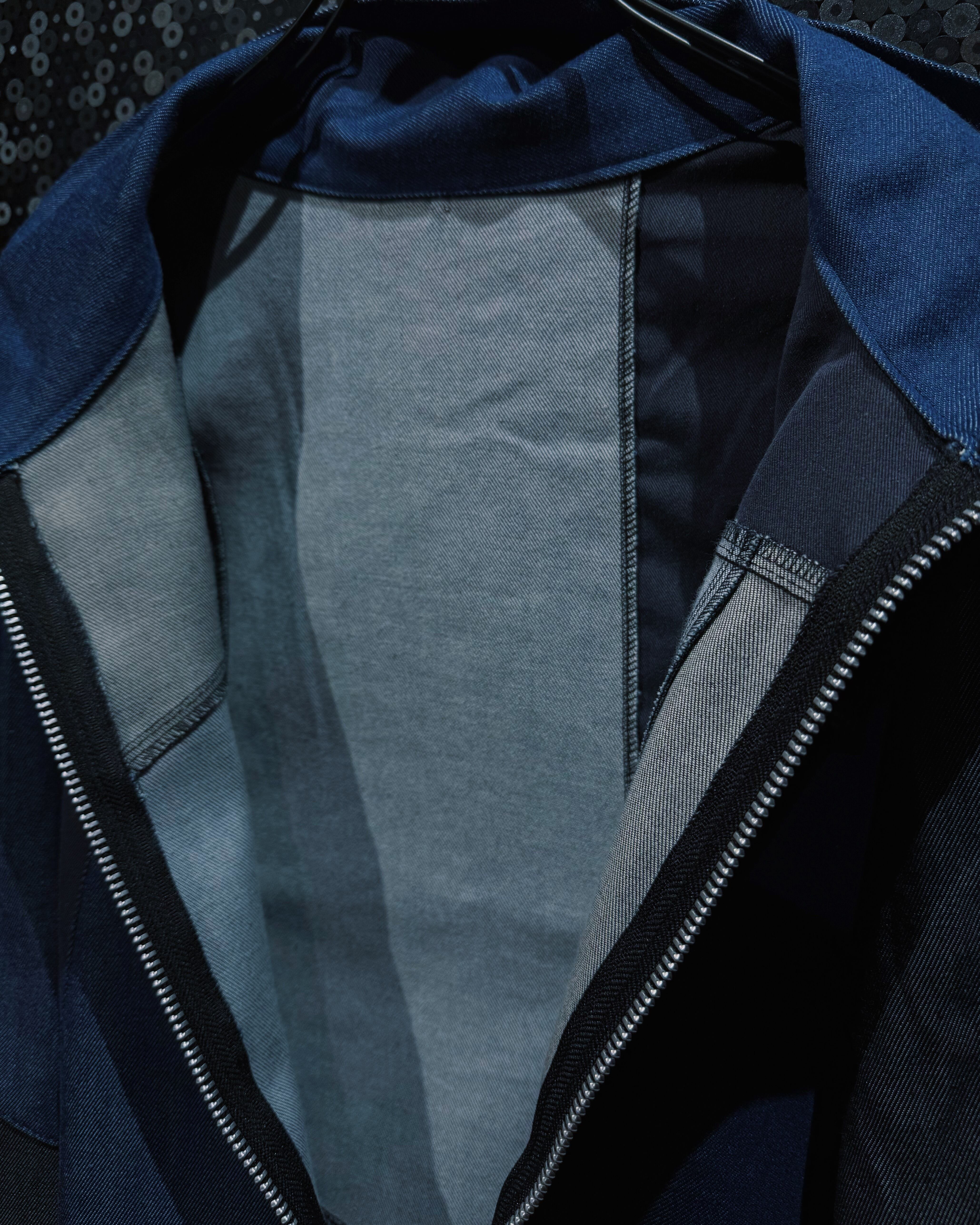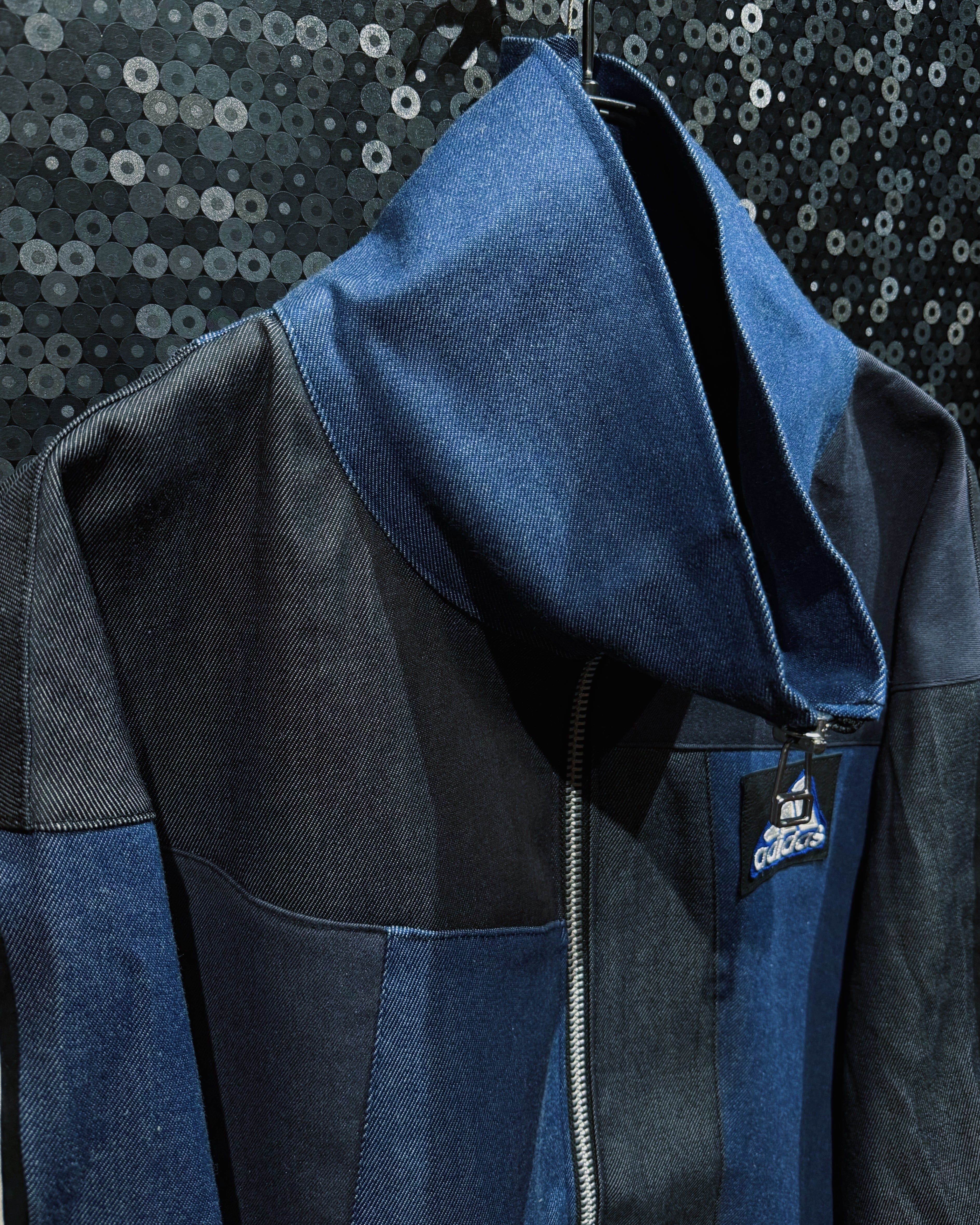 【ÆIEM】special" Original Re:make" denim patch work design stand neck track jacket