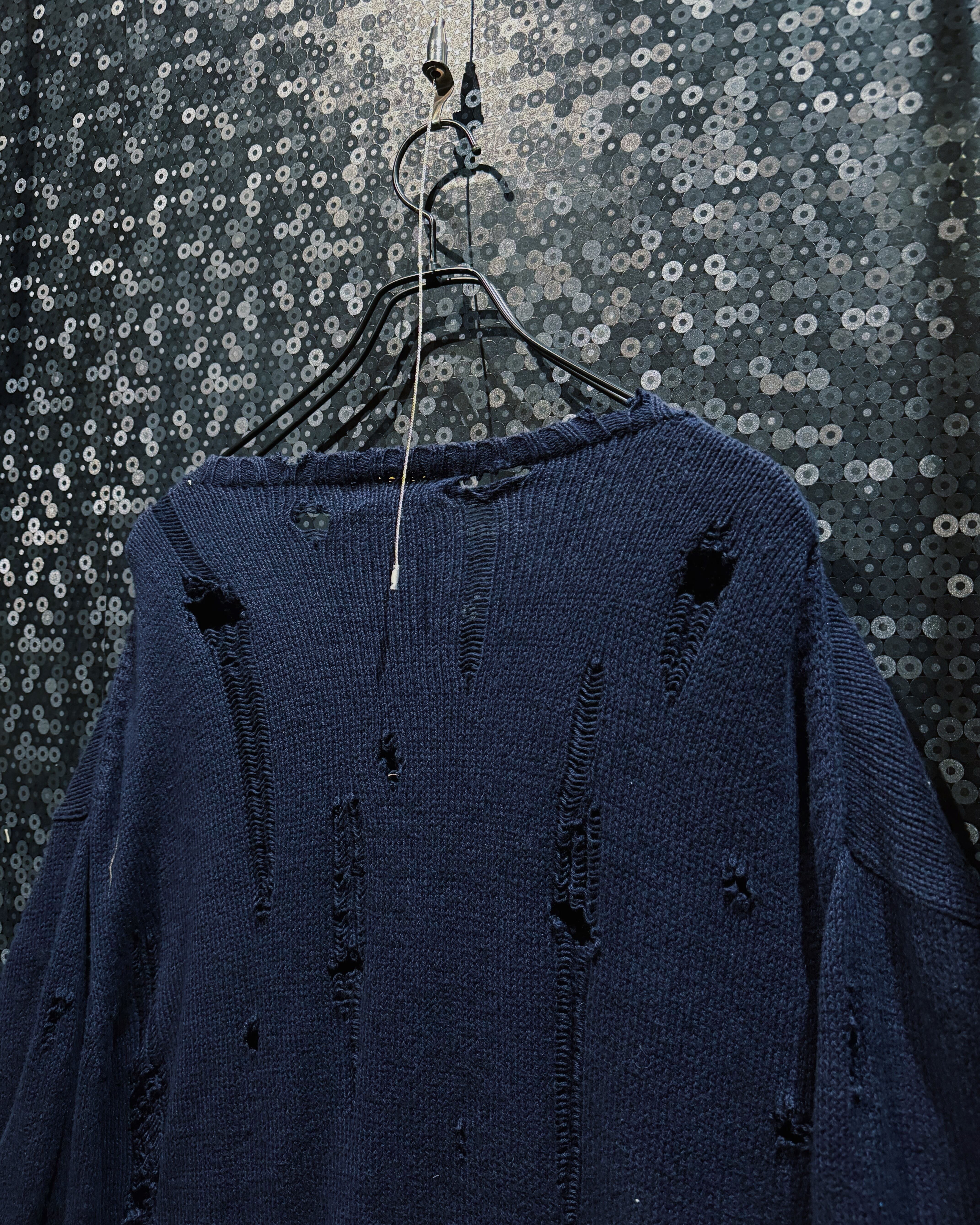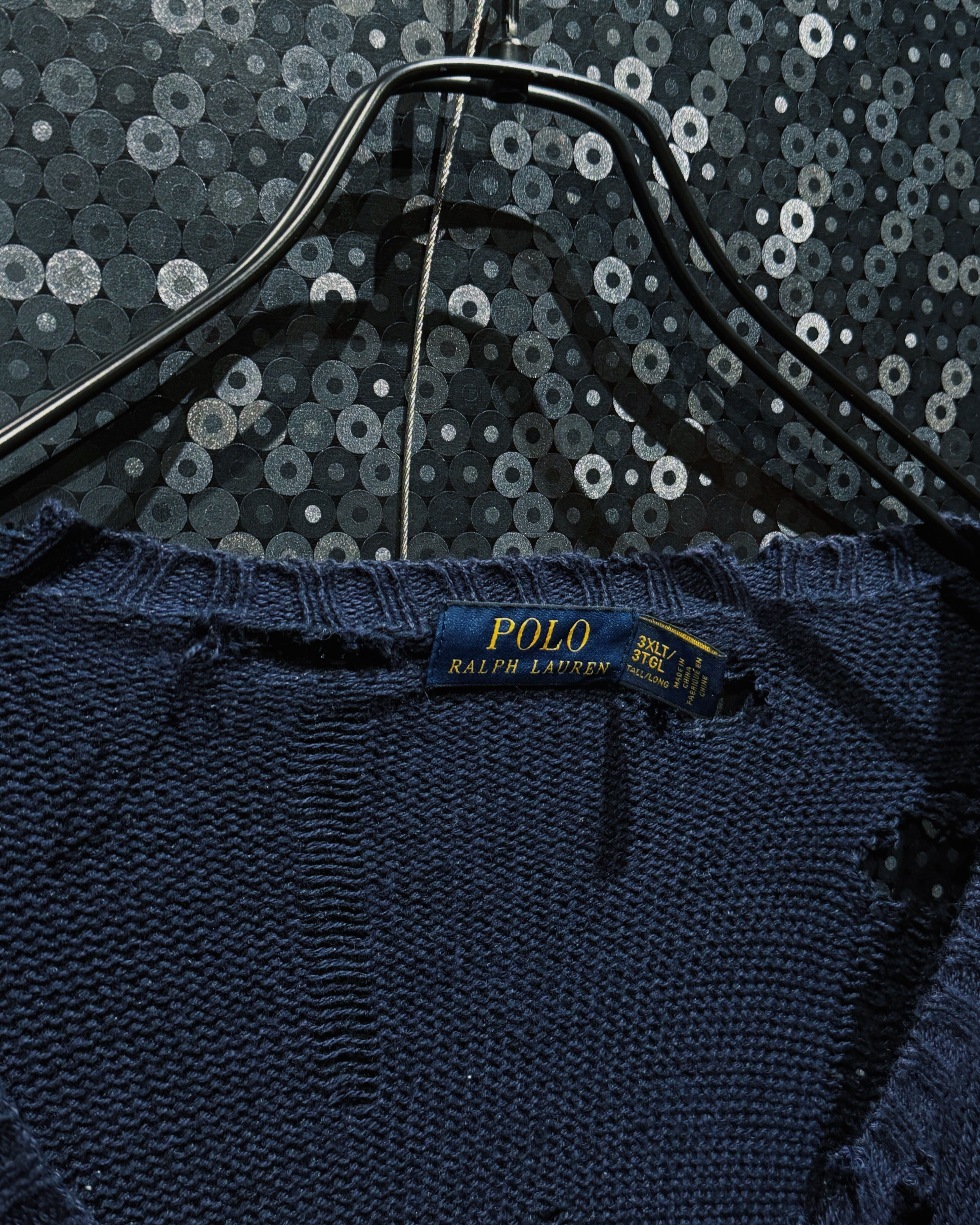 上品でクラシックなPoloベアニットを、あえて破壊するという強烈なアプローチで仕上げたボロリメイクニット。
