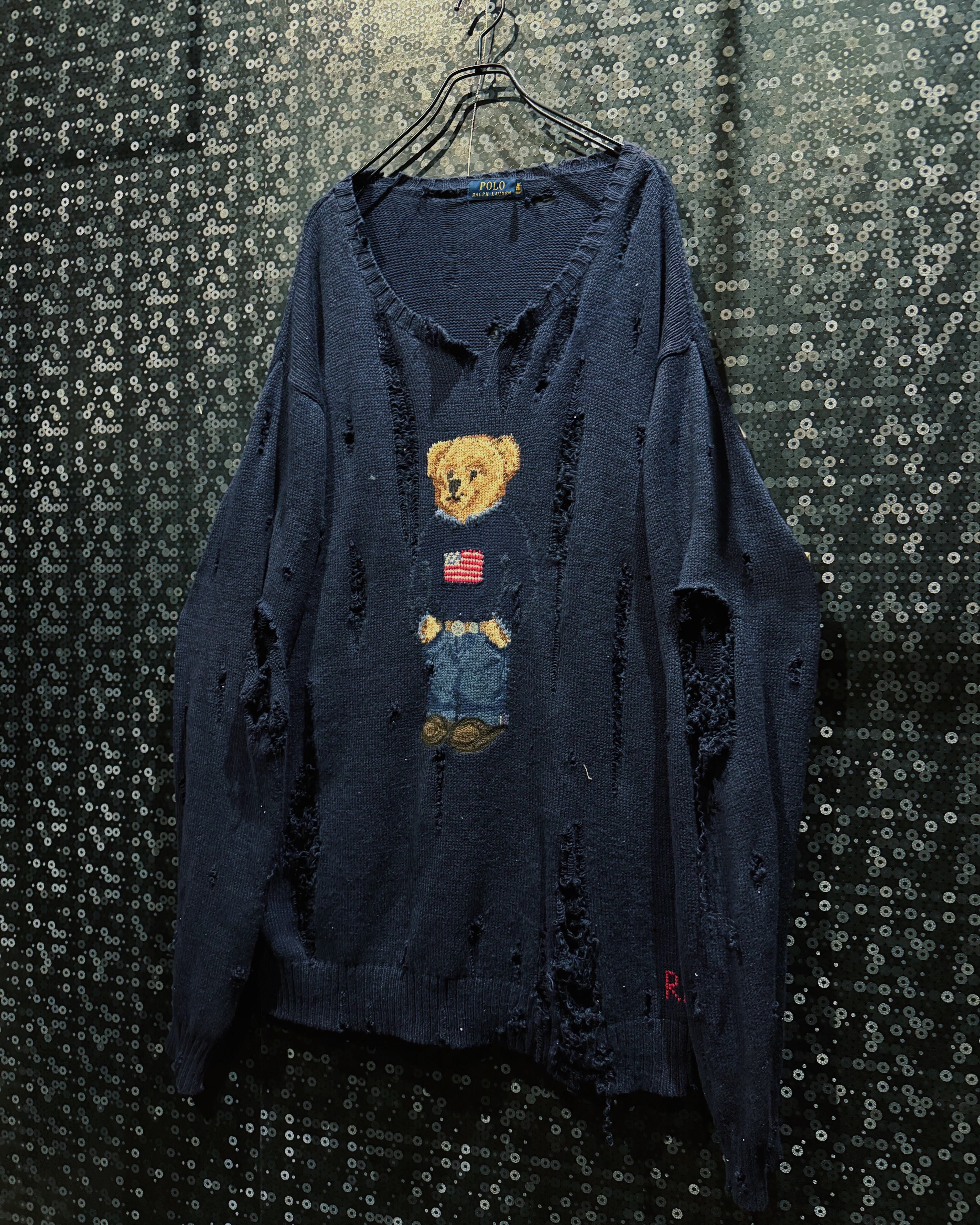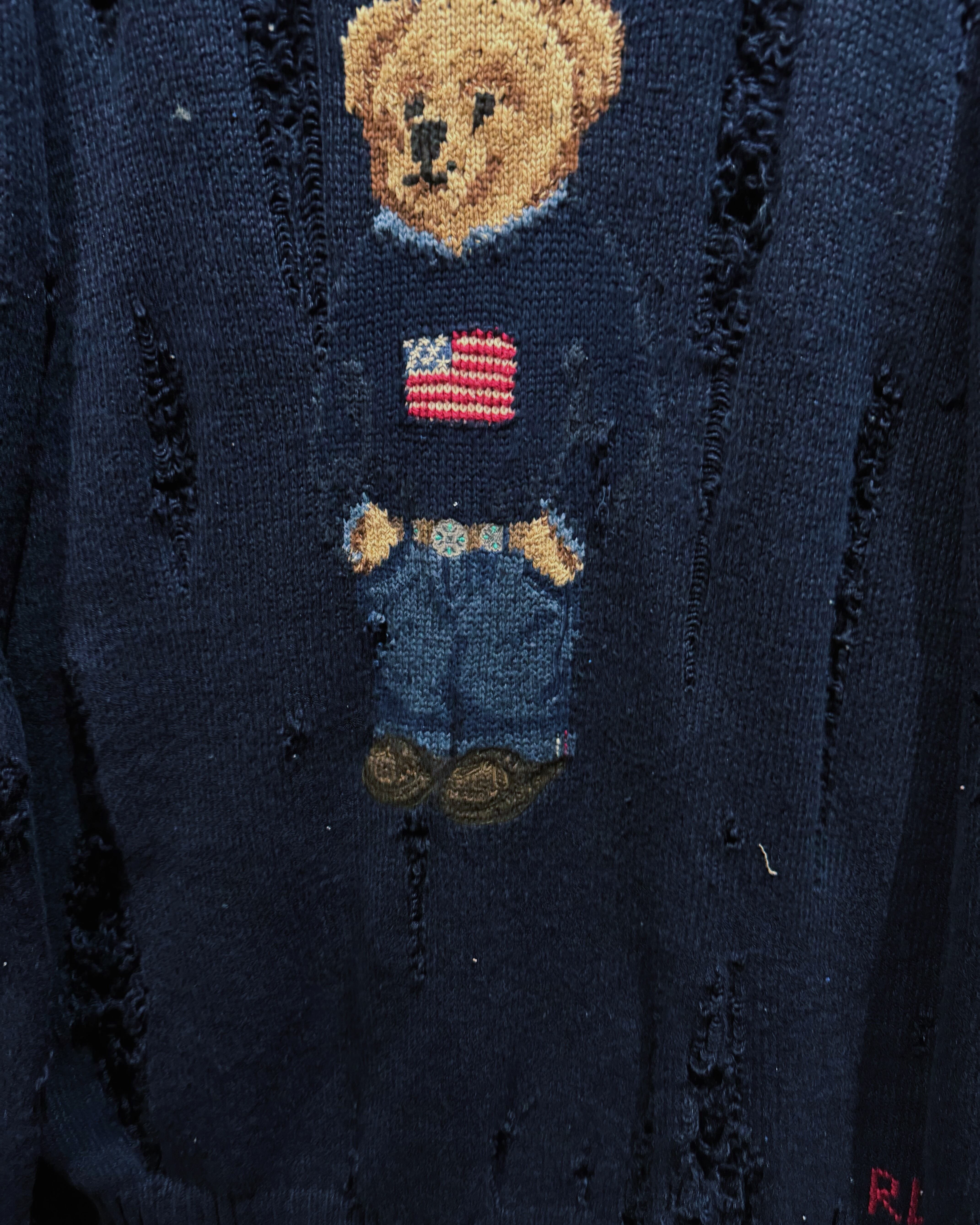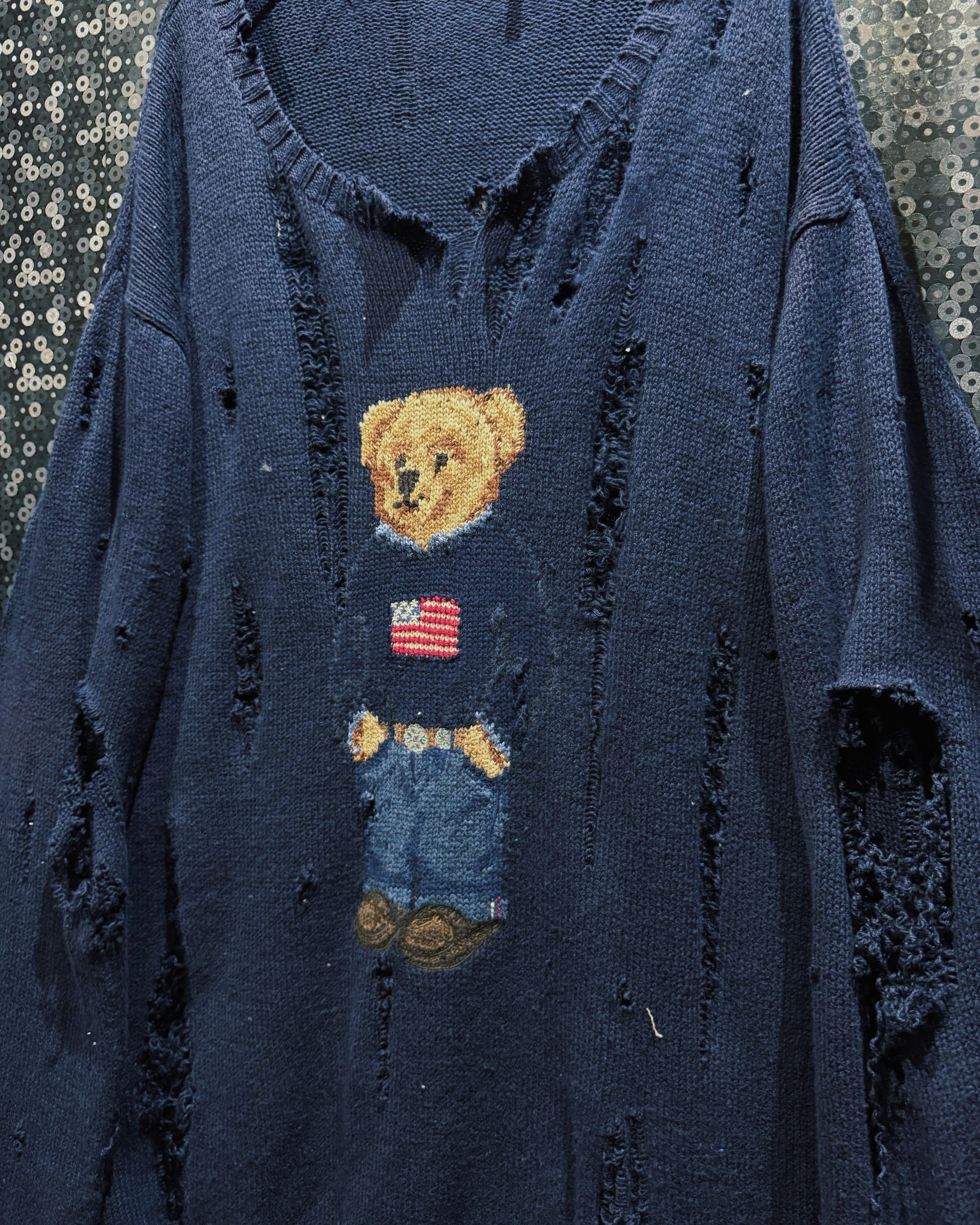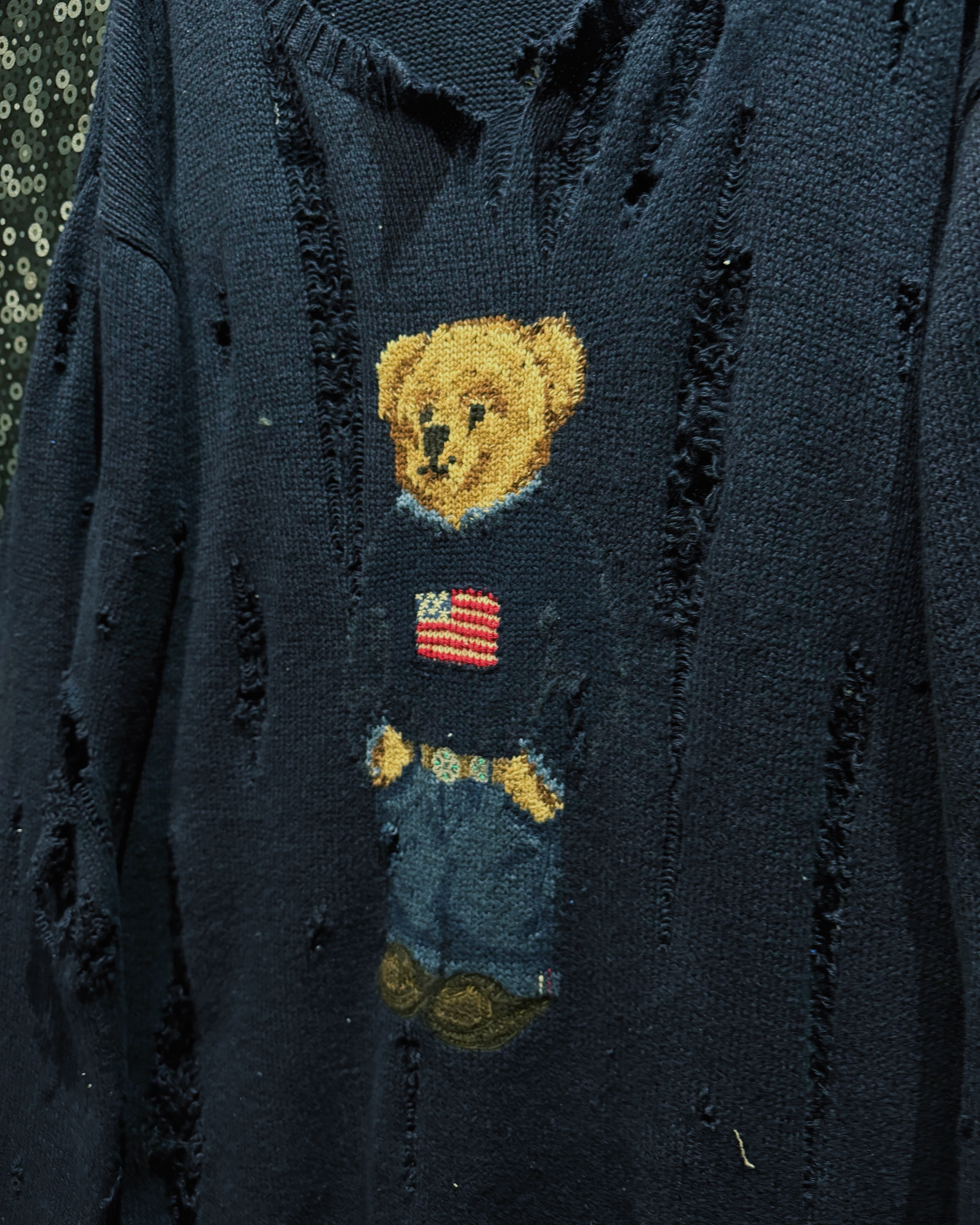【ÆIEM】original “boro” remake Polo Ralph Lauren bear knit distressed