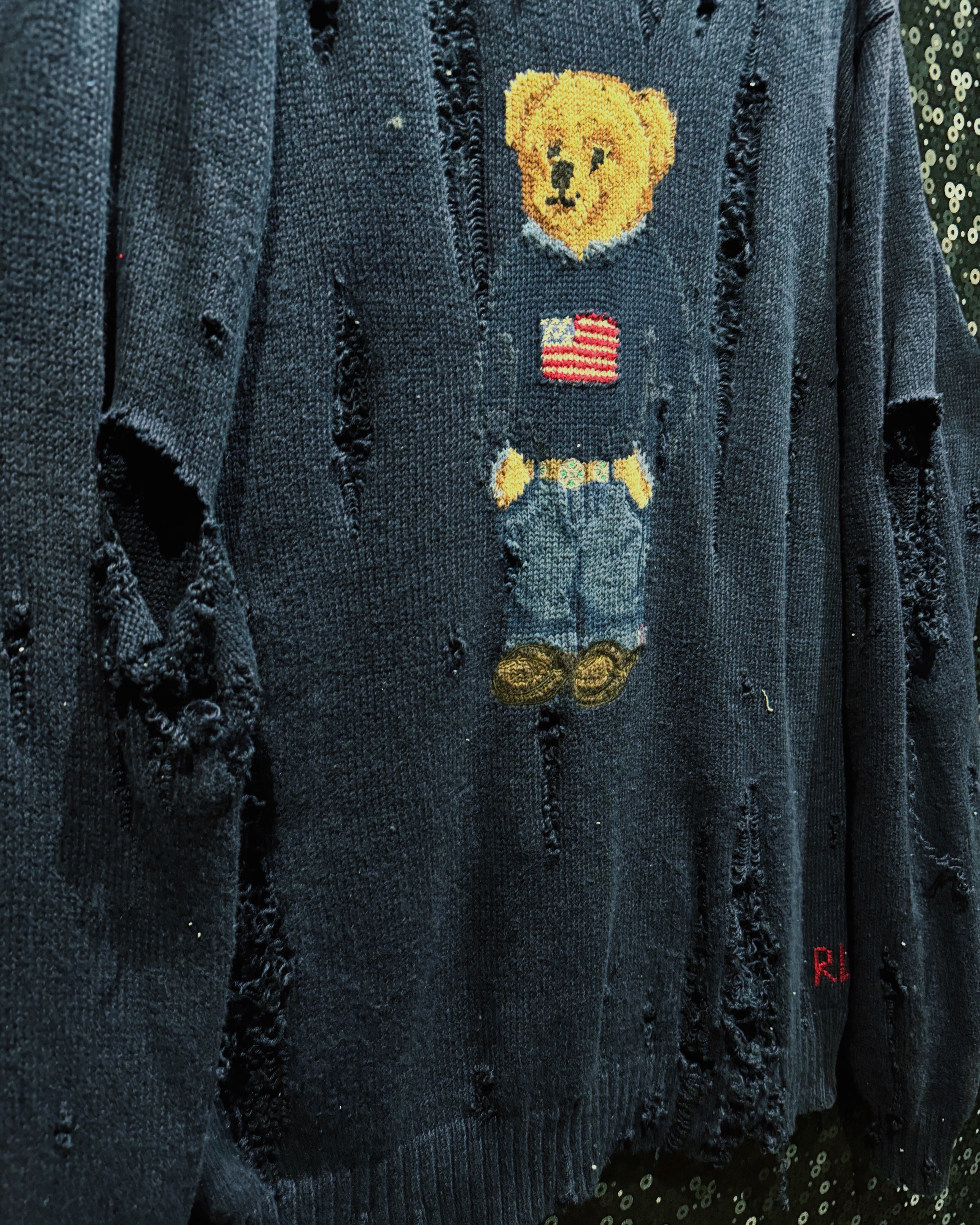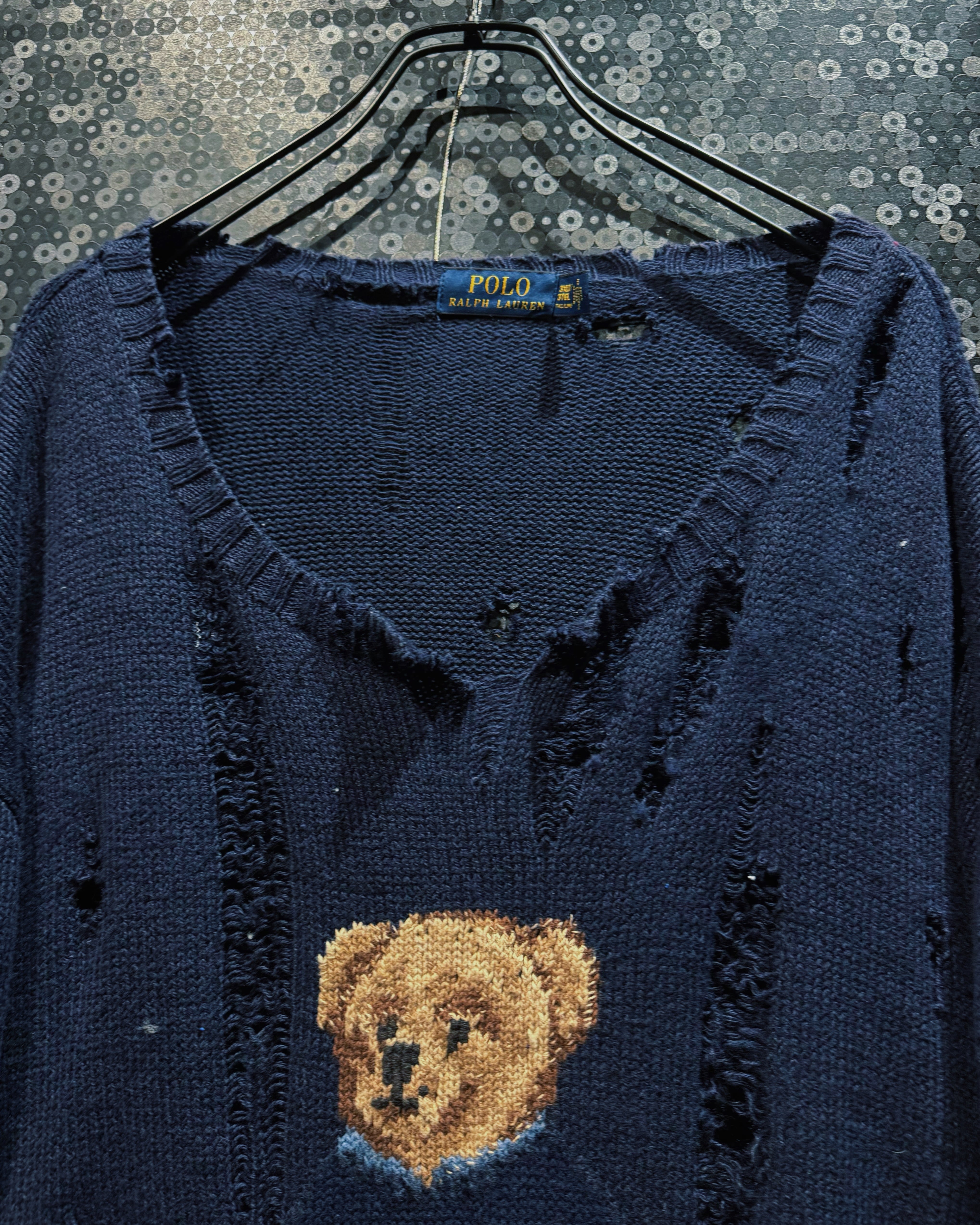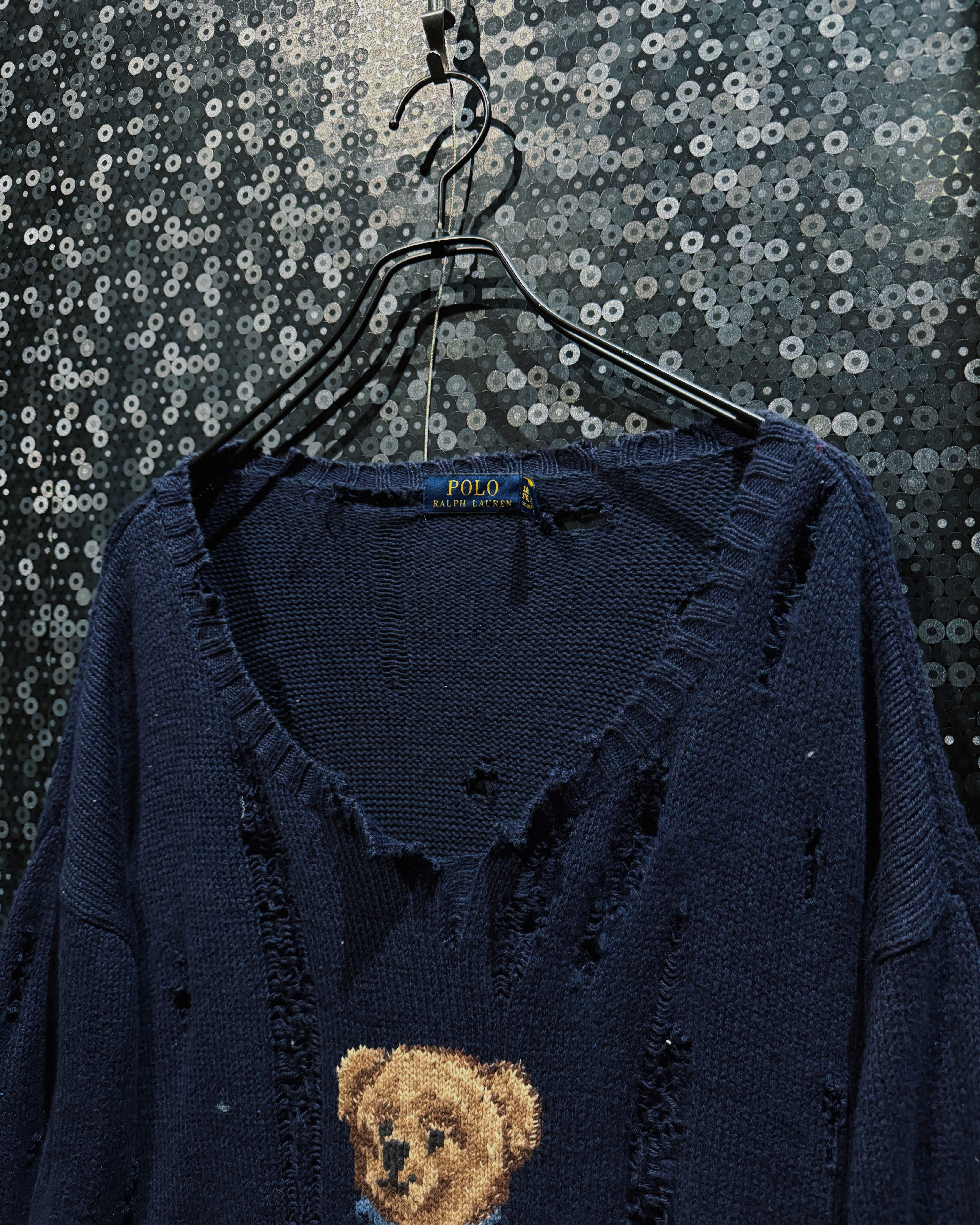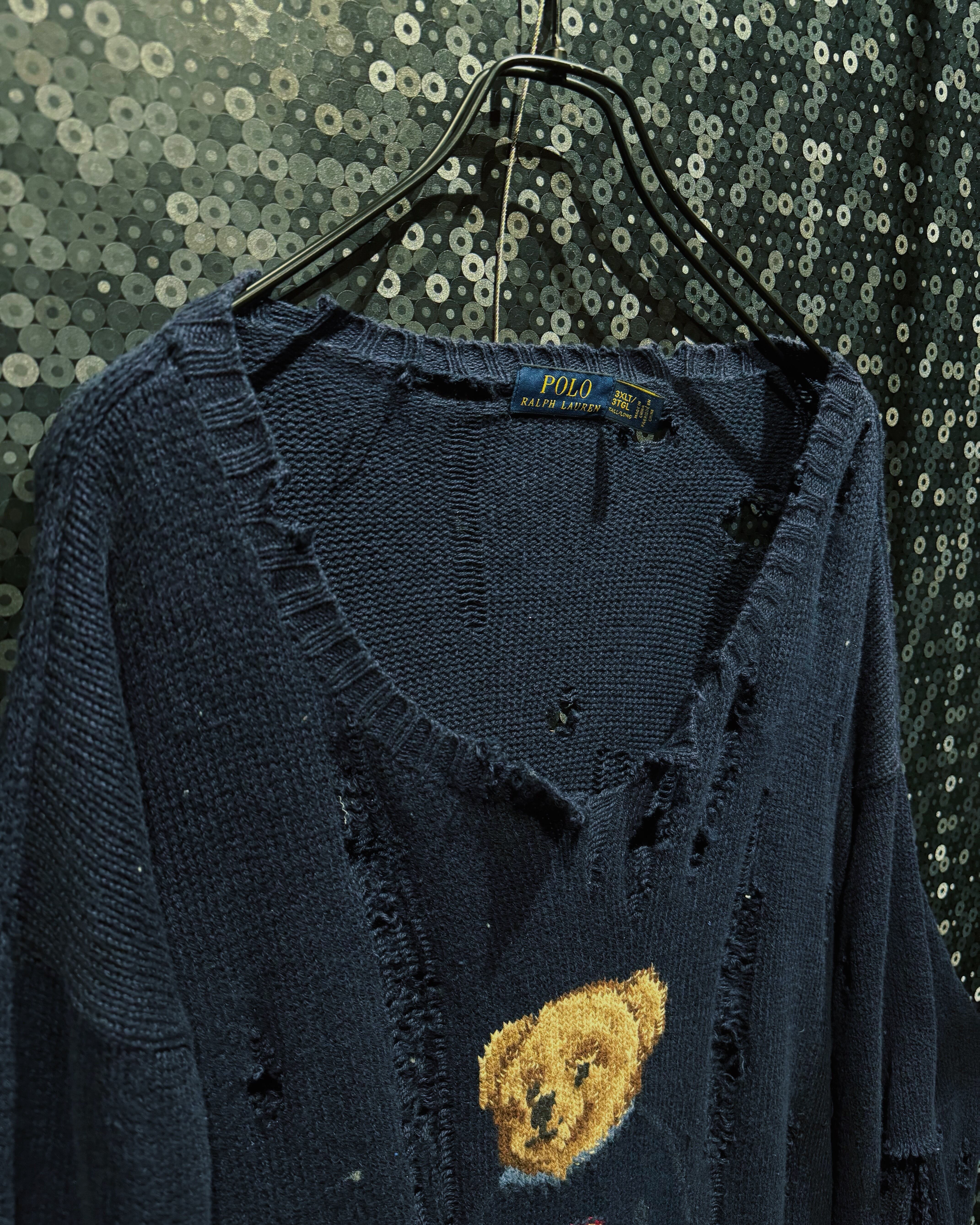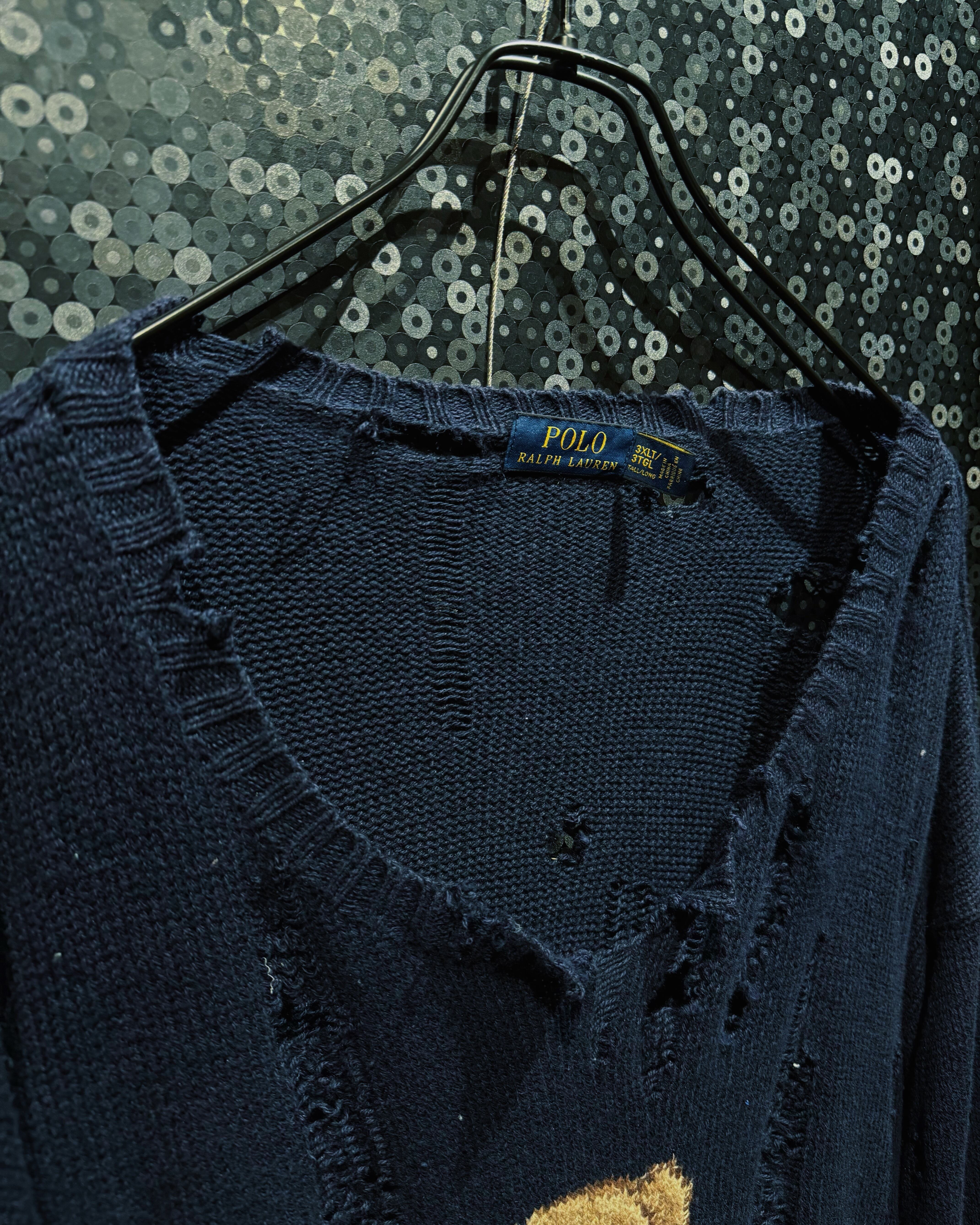 【ÆIEM】original “boro” remake Polo Ralph Lauren bear knit distressed