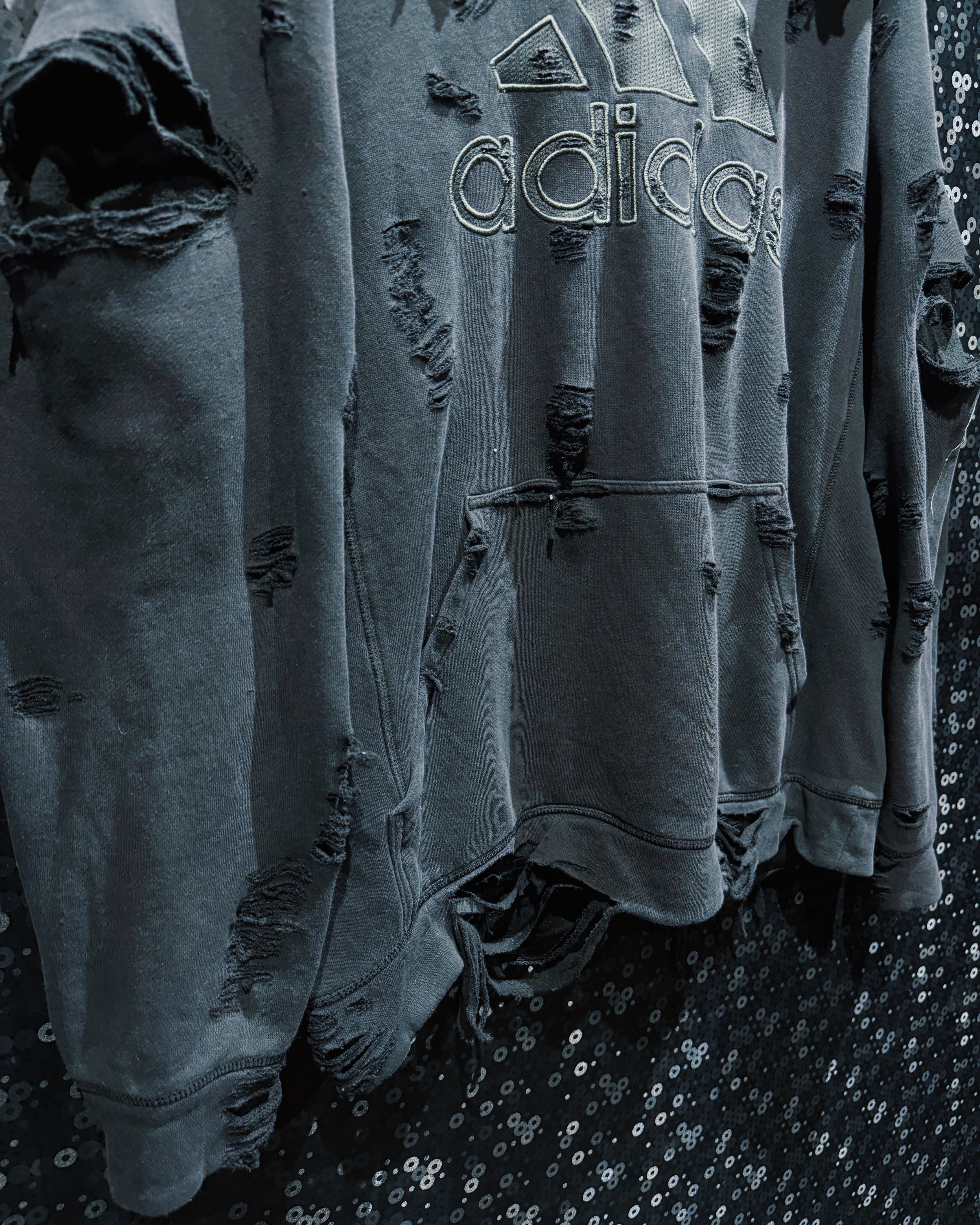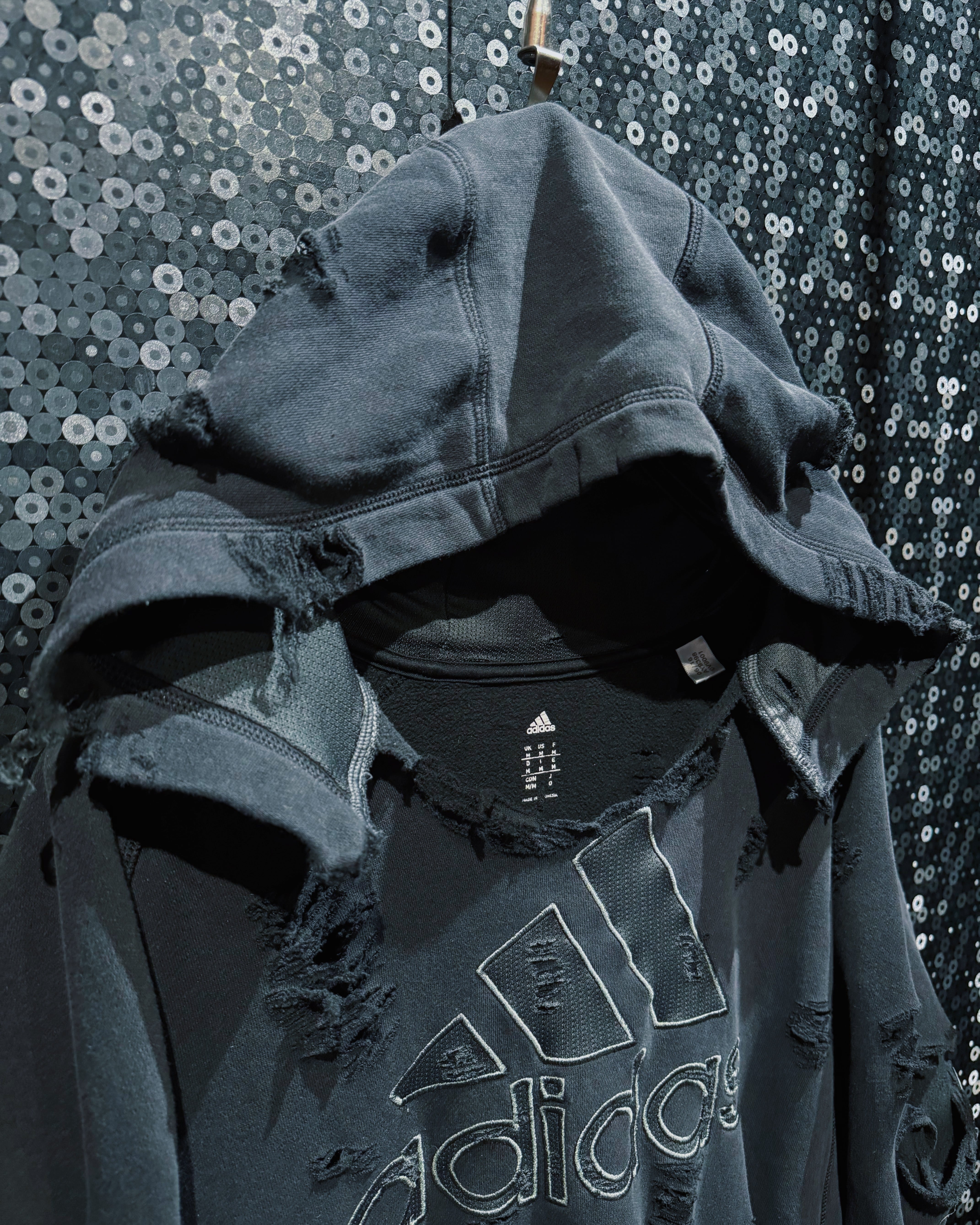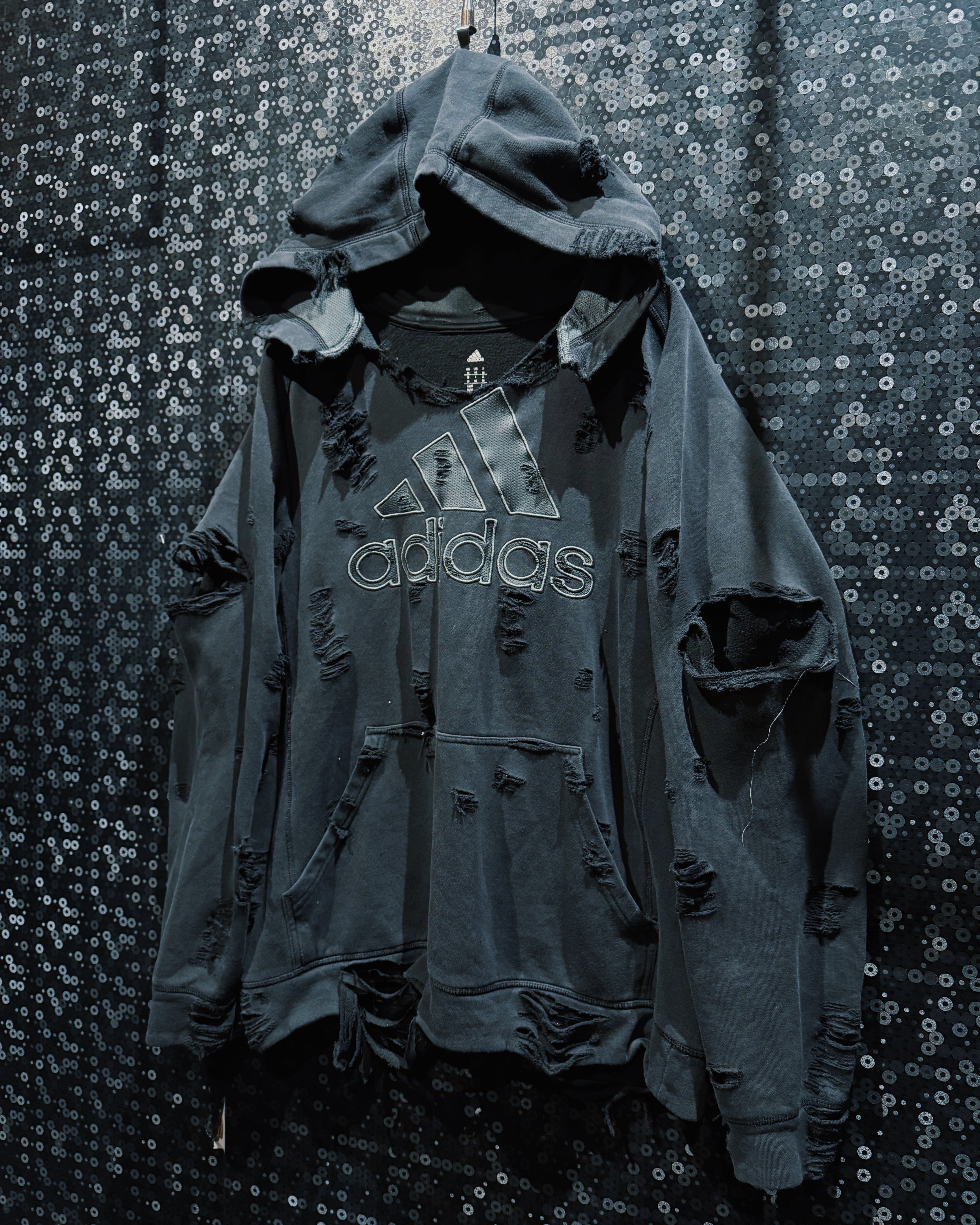 【ÆIEM】original “boro” remake adidas big performance logo hoodie