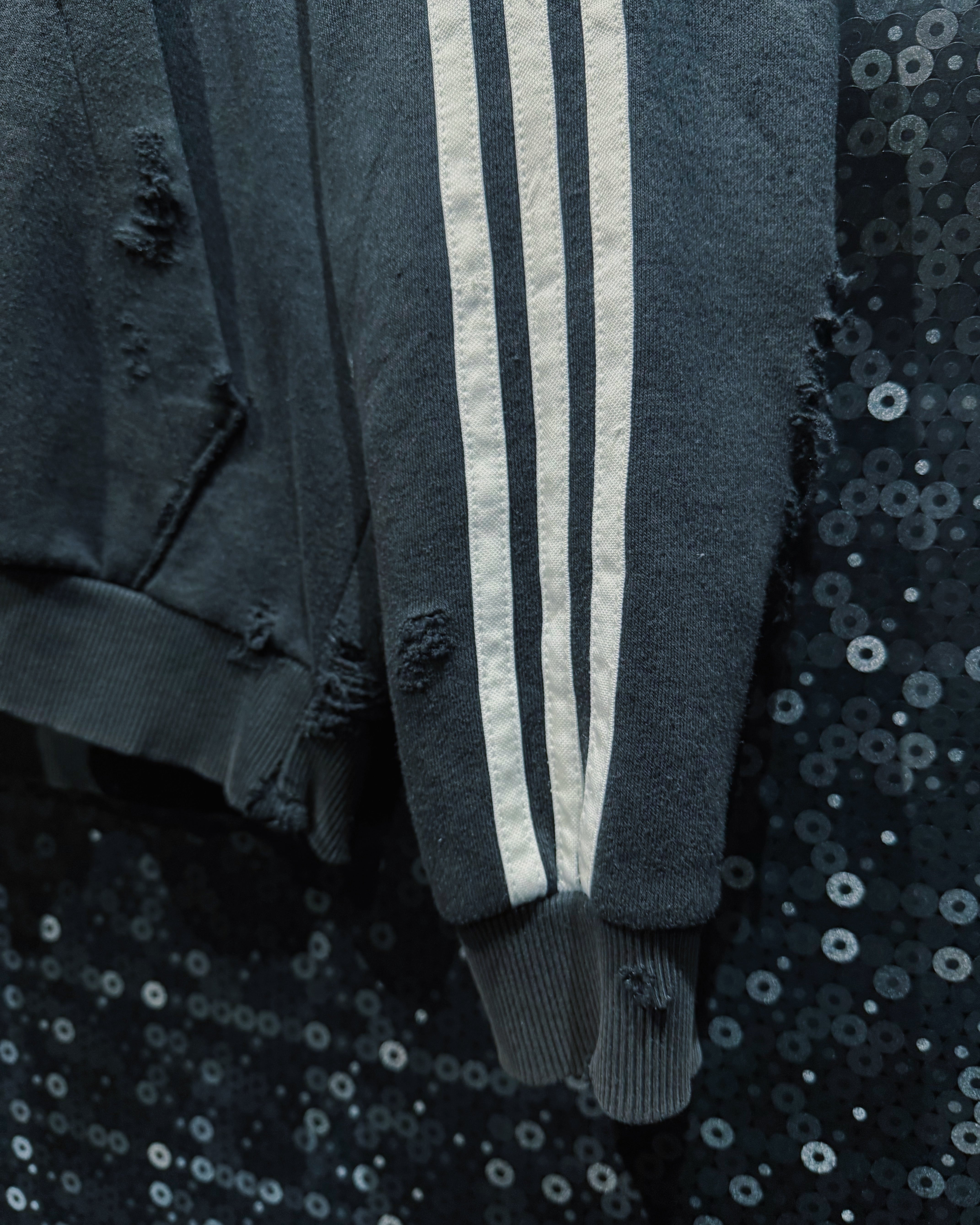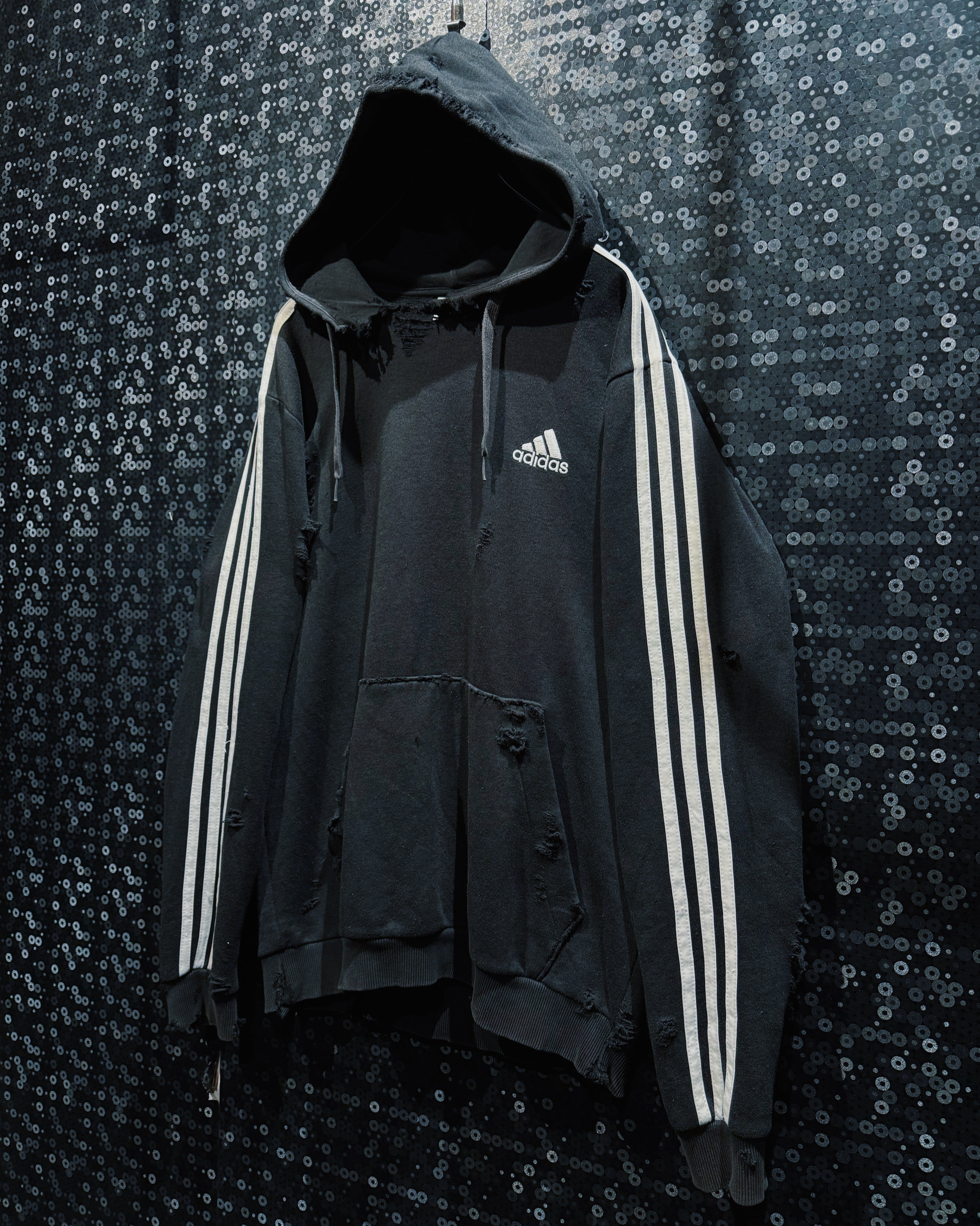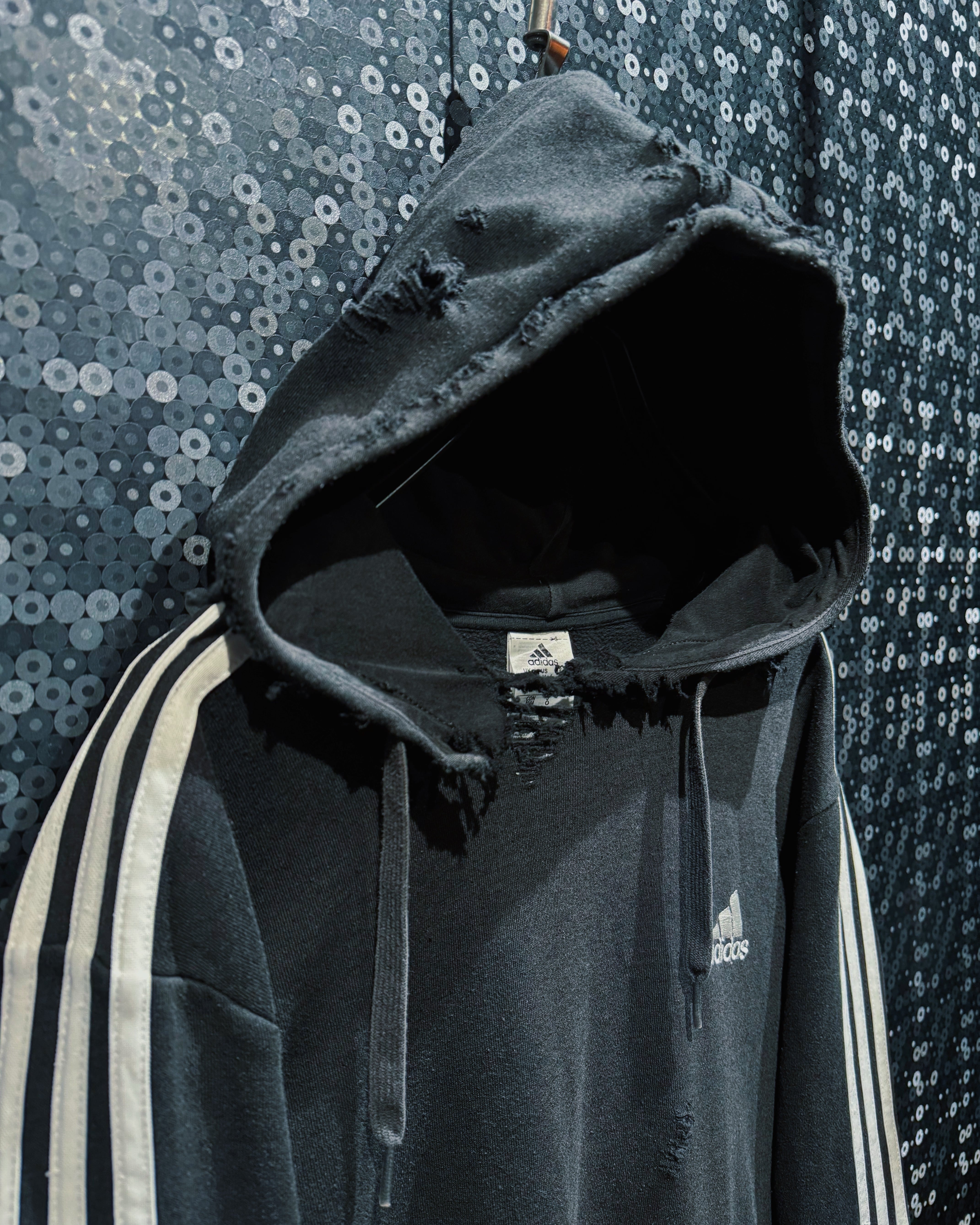 【ÆIEM】original “boro” remake adidas three stripe black hoodie pullover