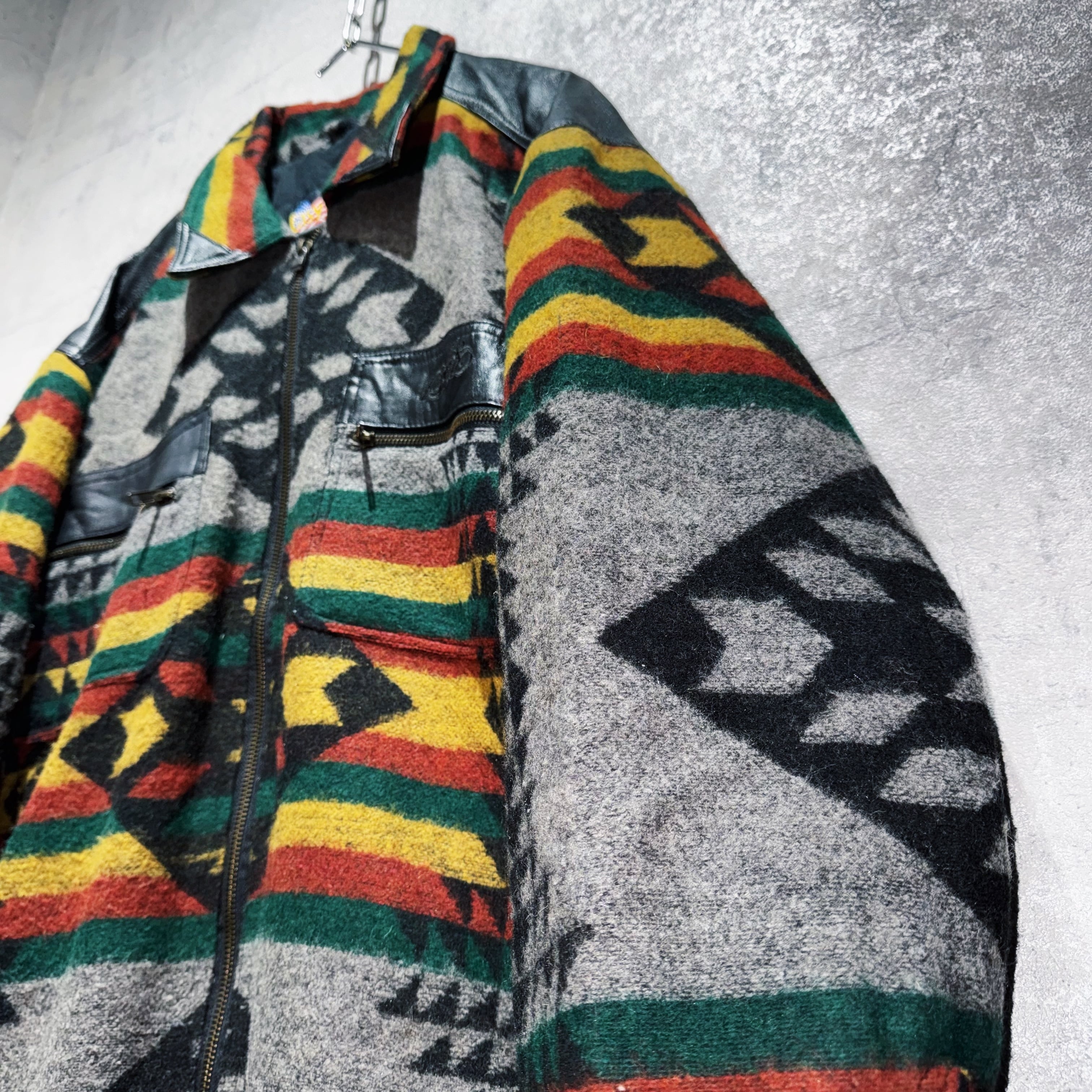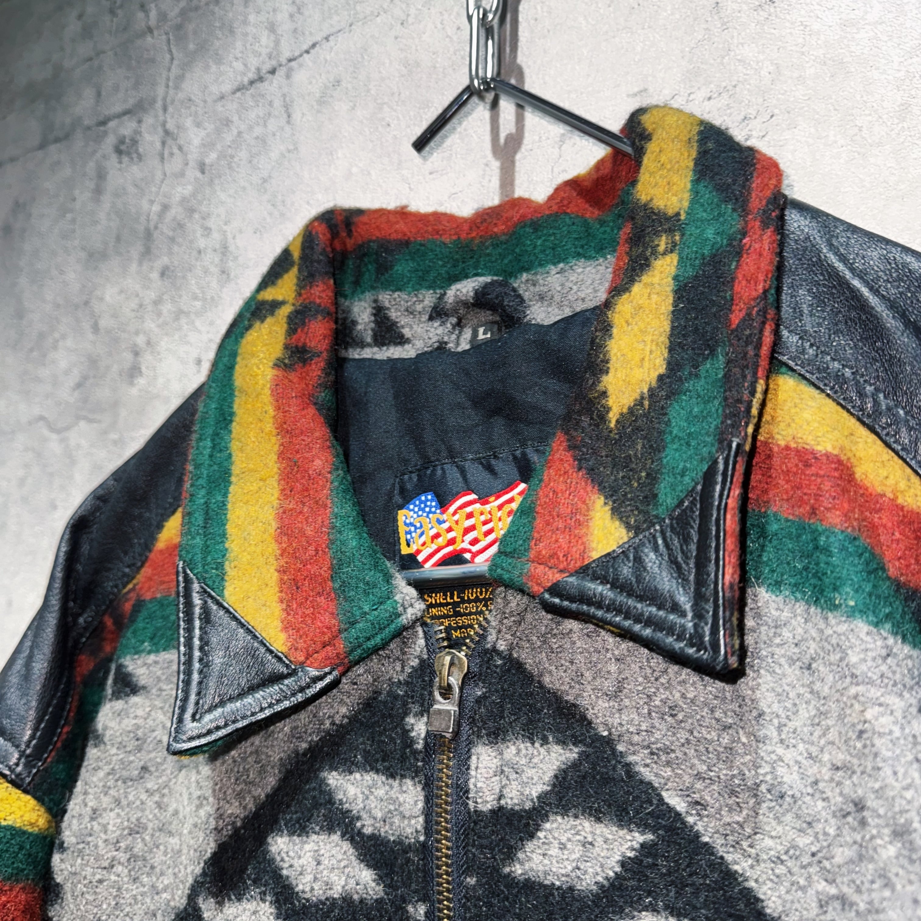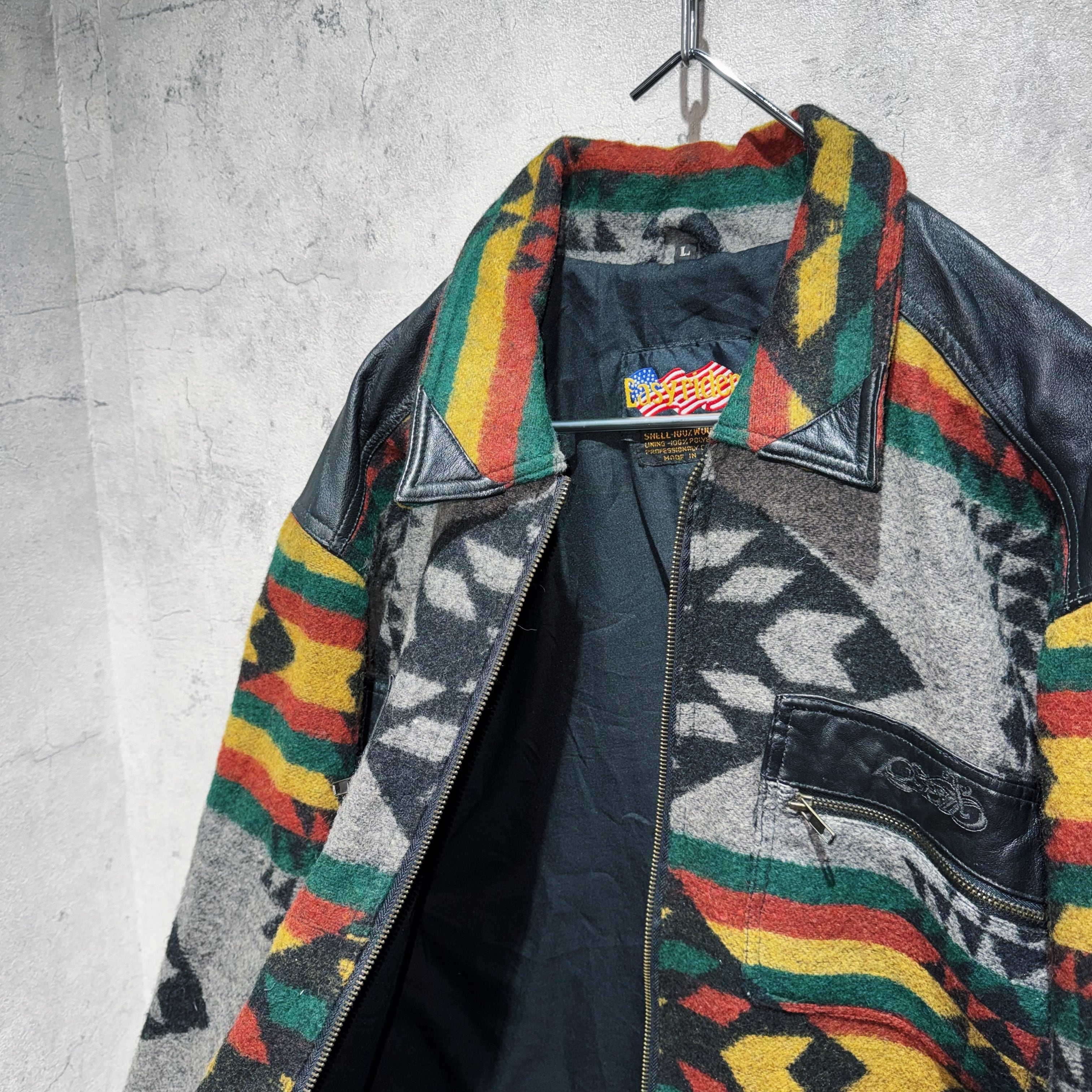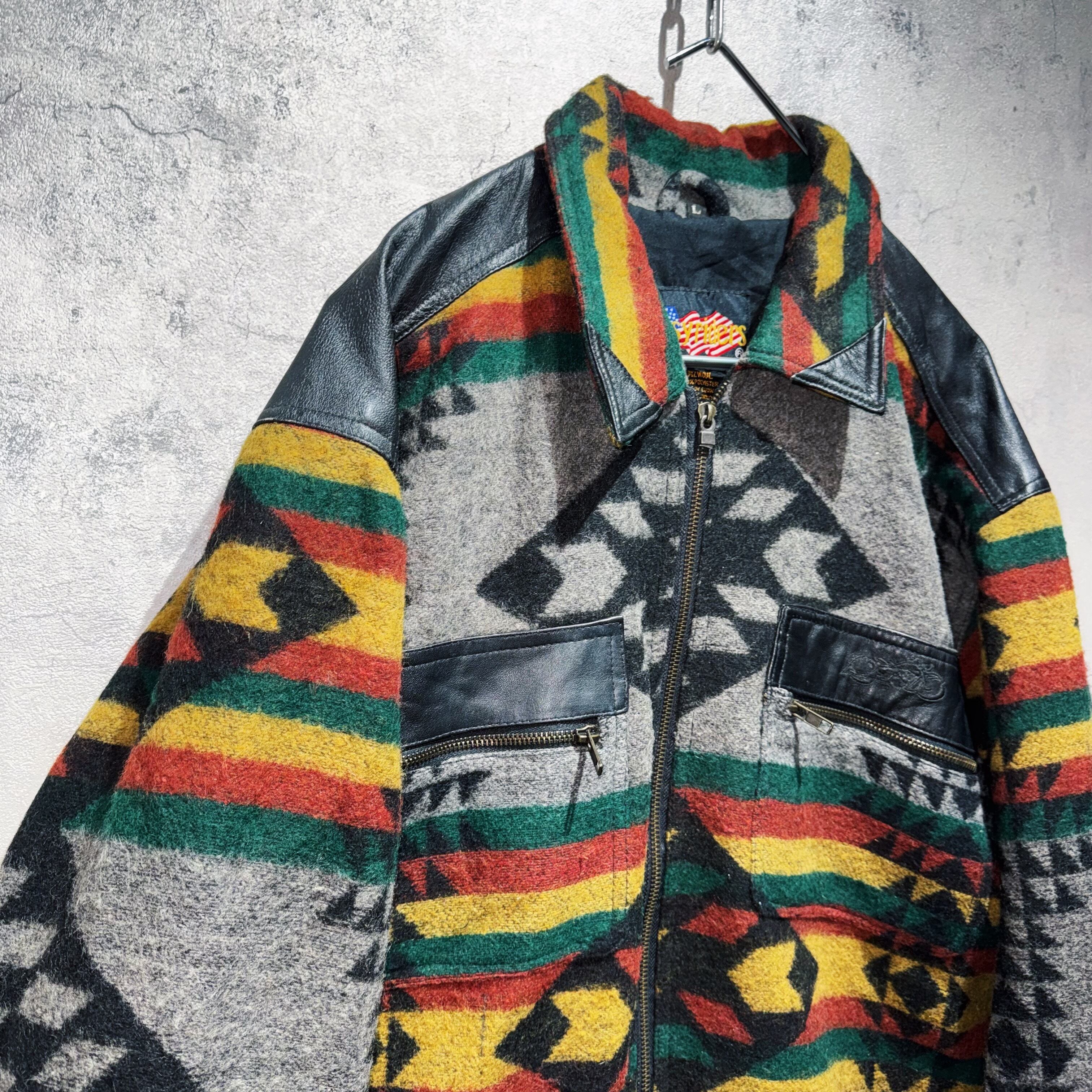ヴィンテージ"イージーライダーズ"ウールレザーアズテックトライバルモーターサイクルジャケット