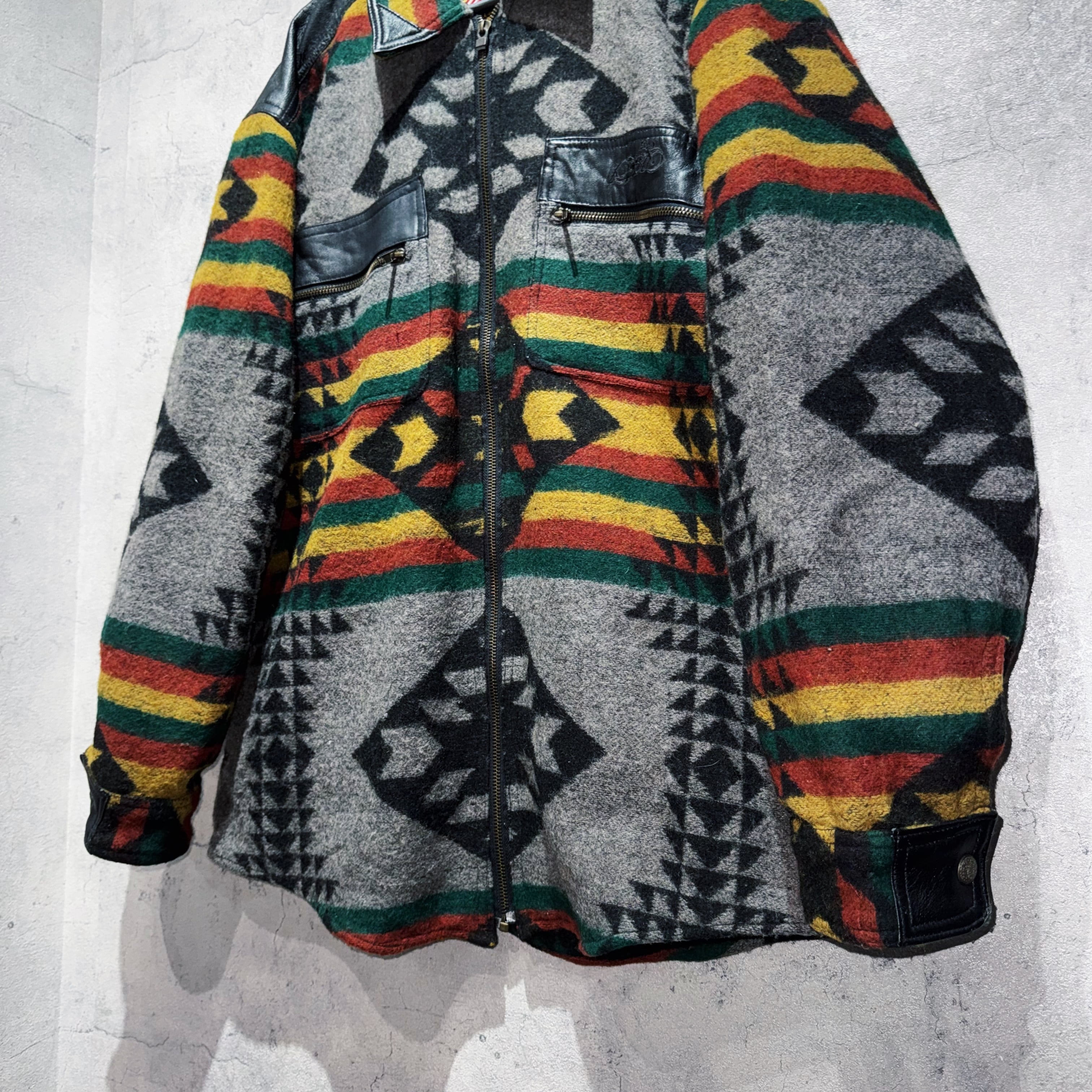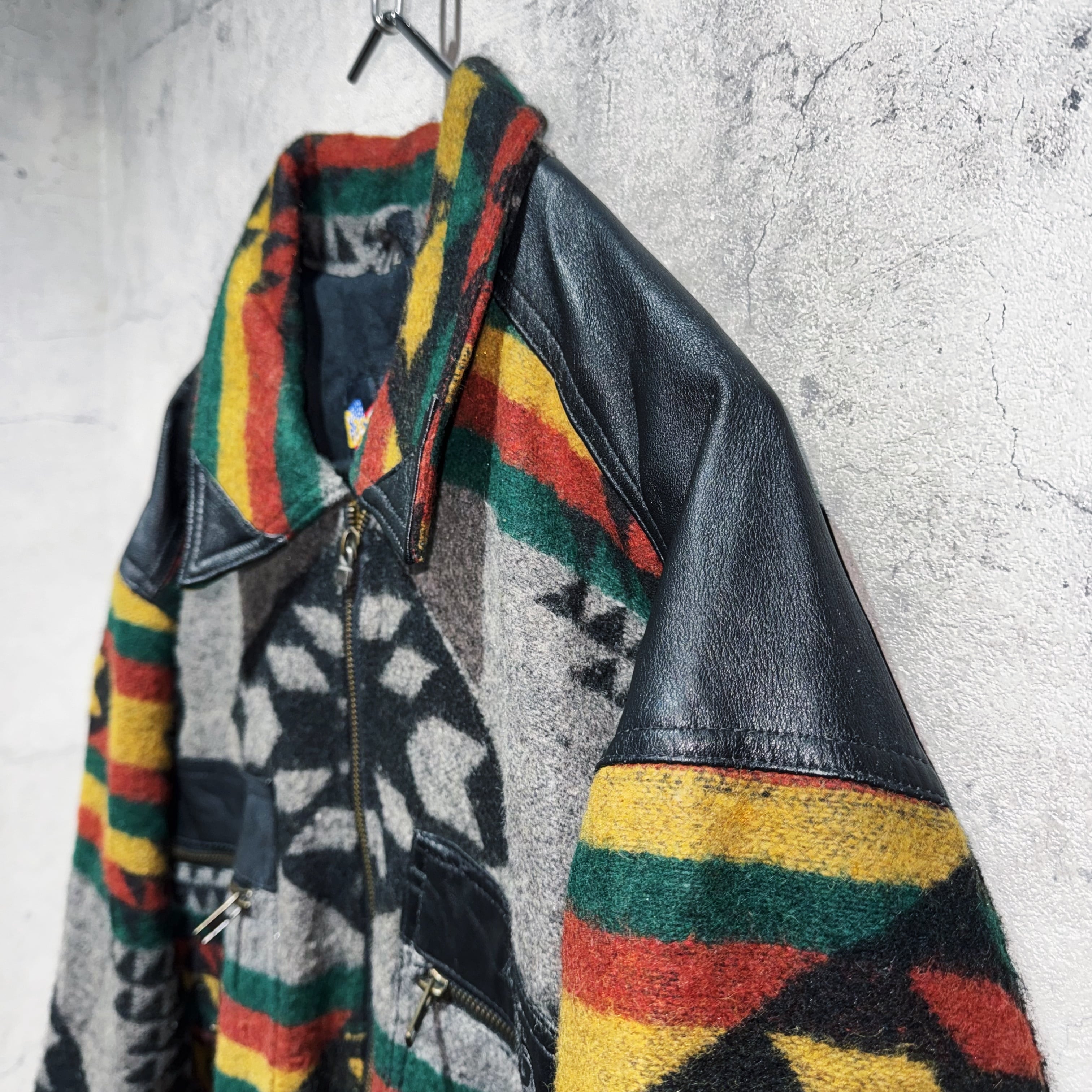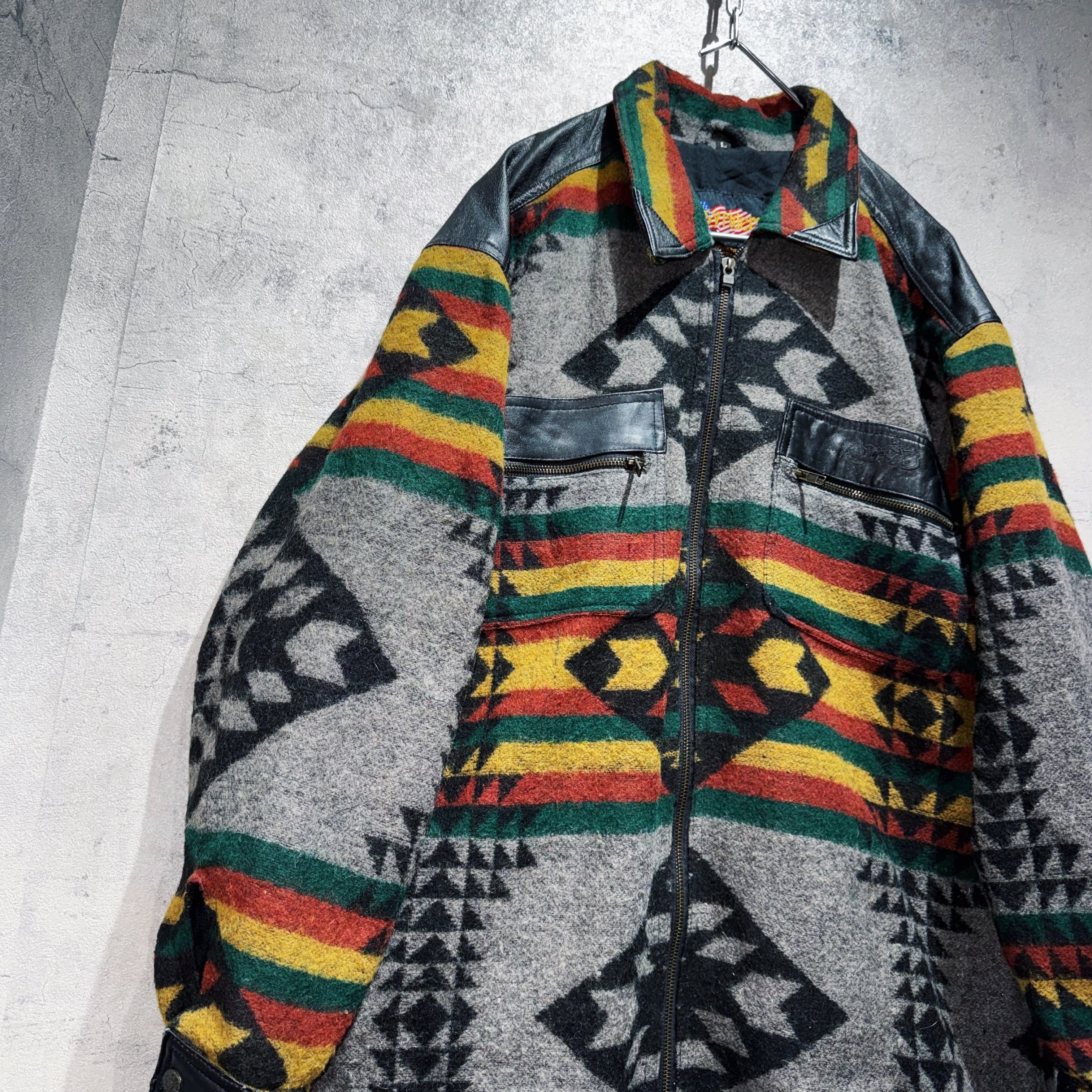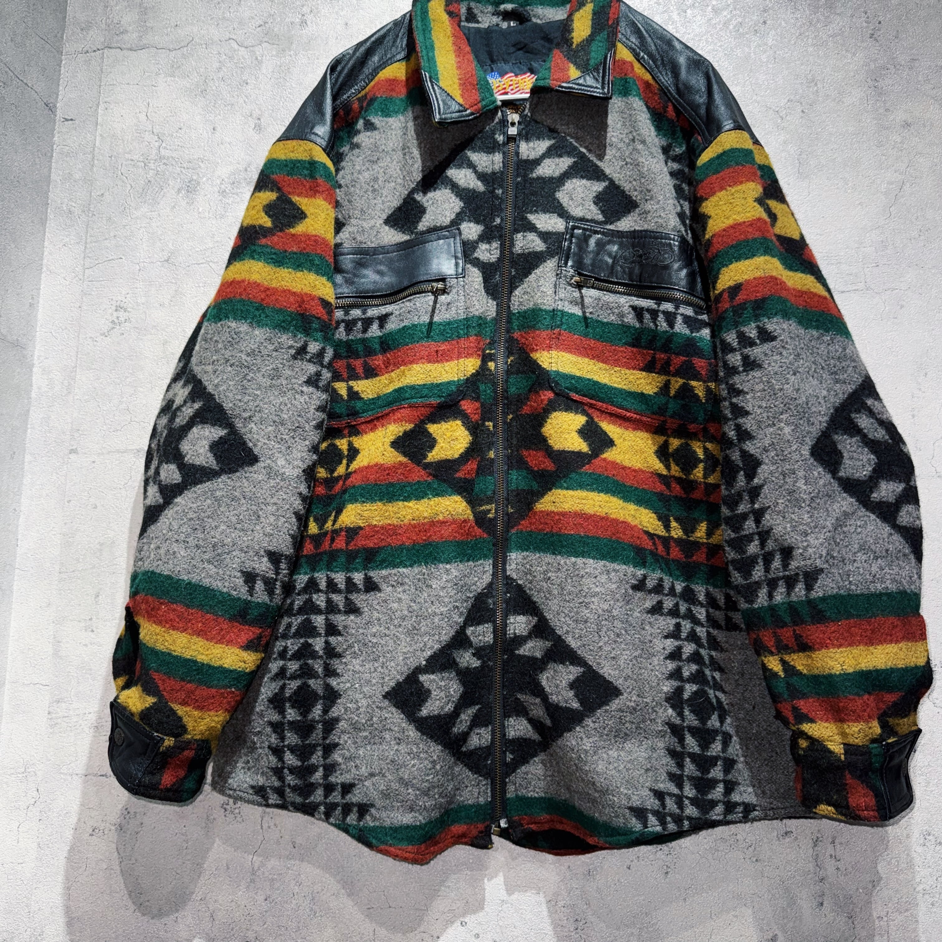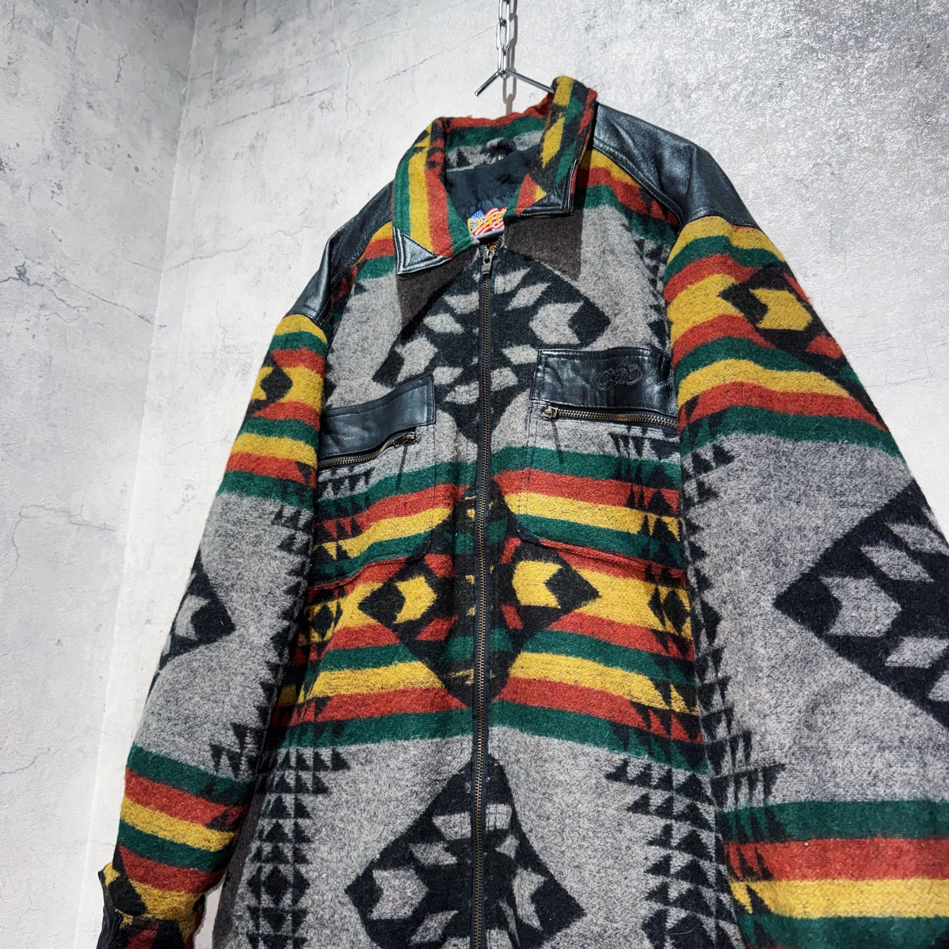 ヴィンテージ"イージーライダーズ"ウールレザーアズテックトライバルモーターサイクルジャケット