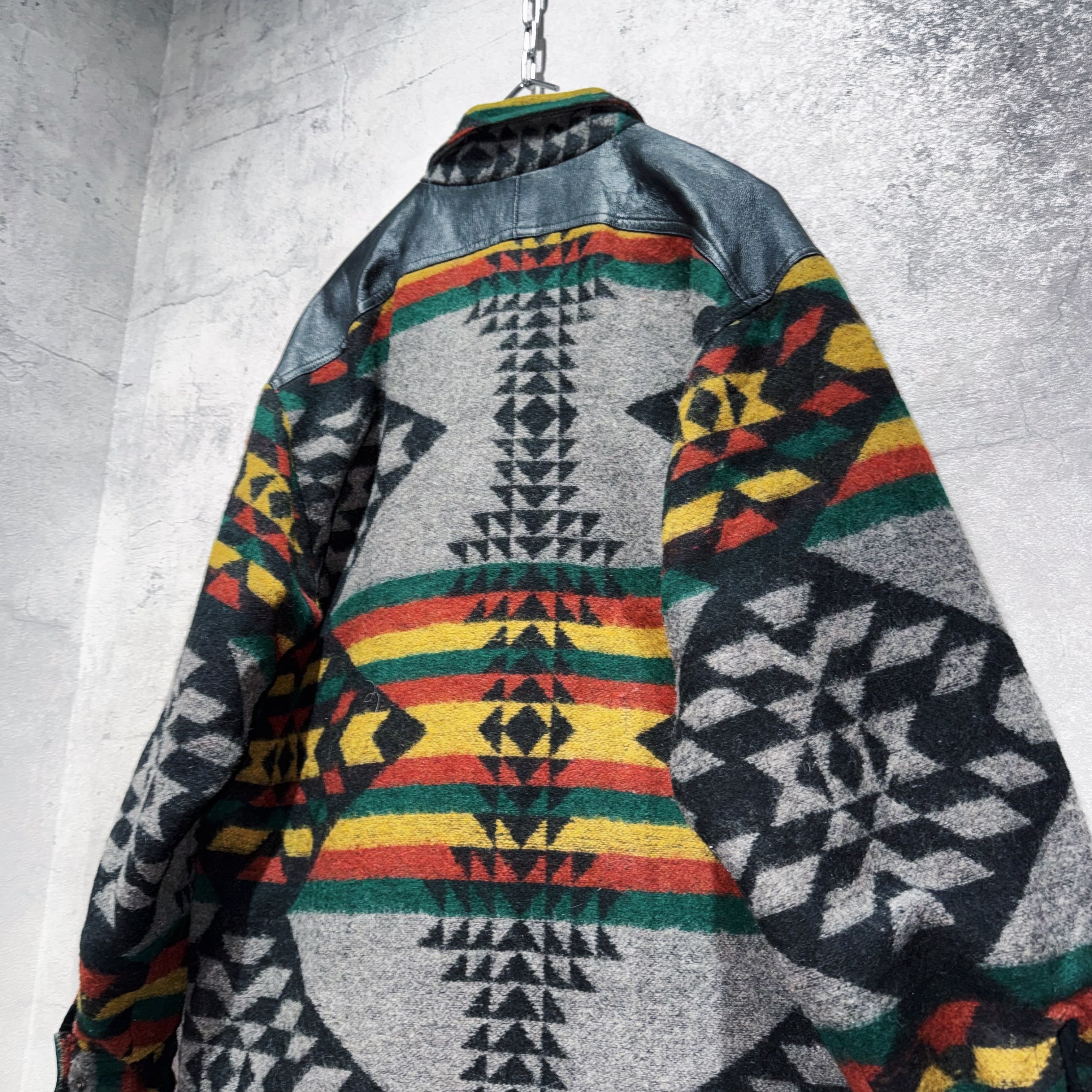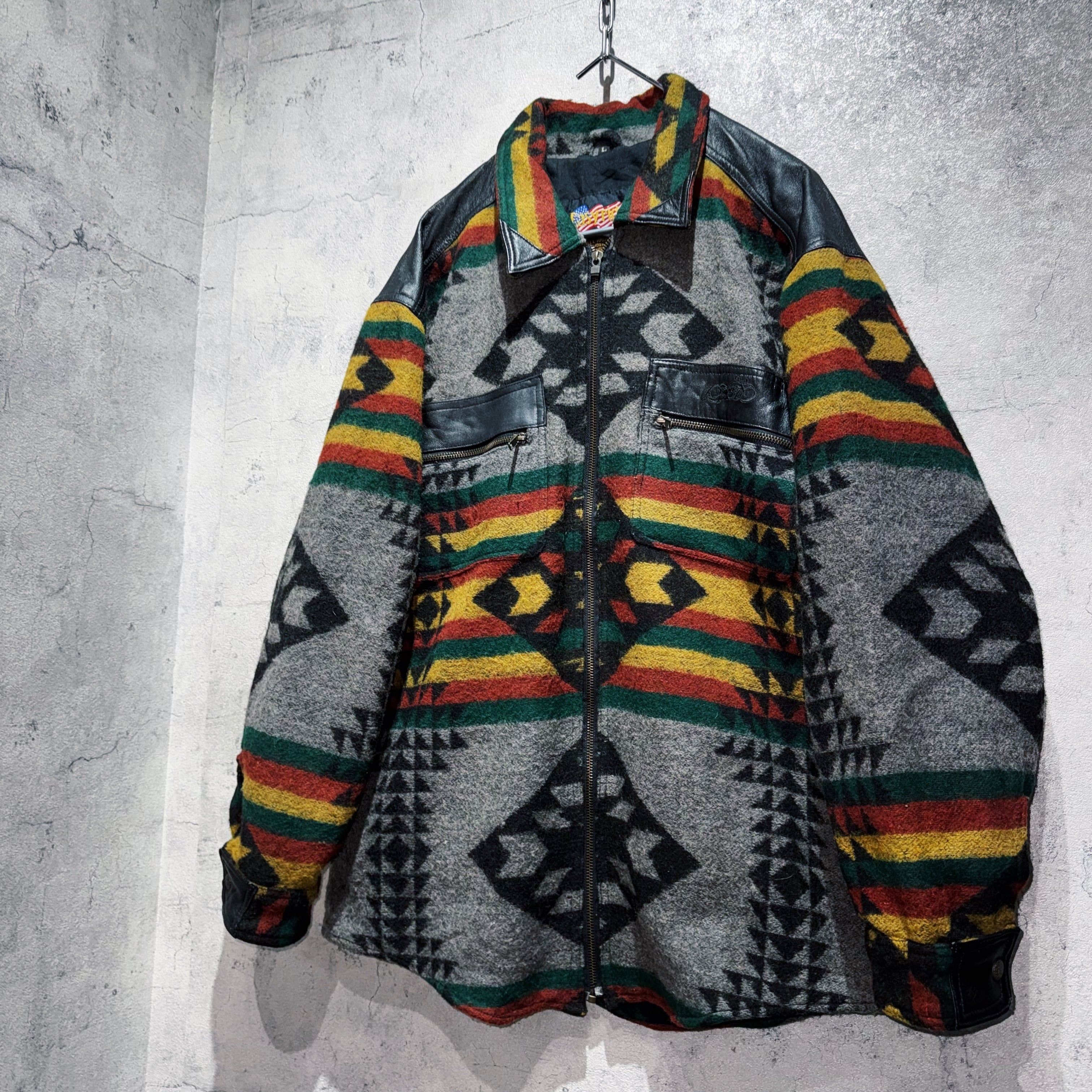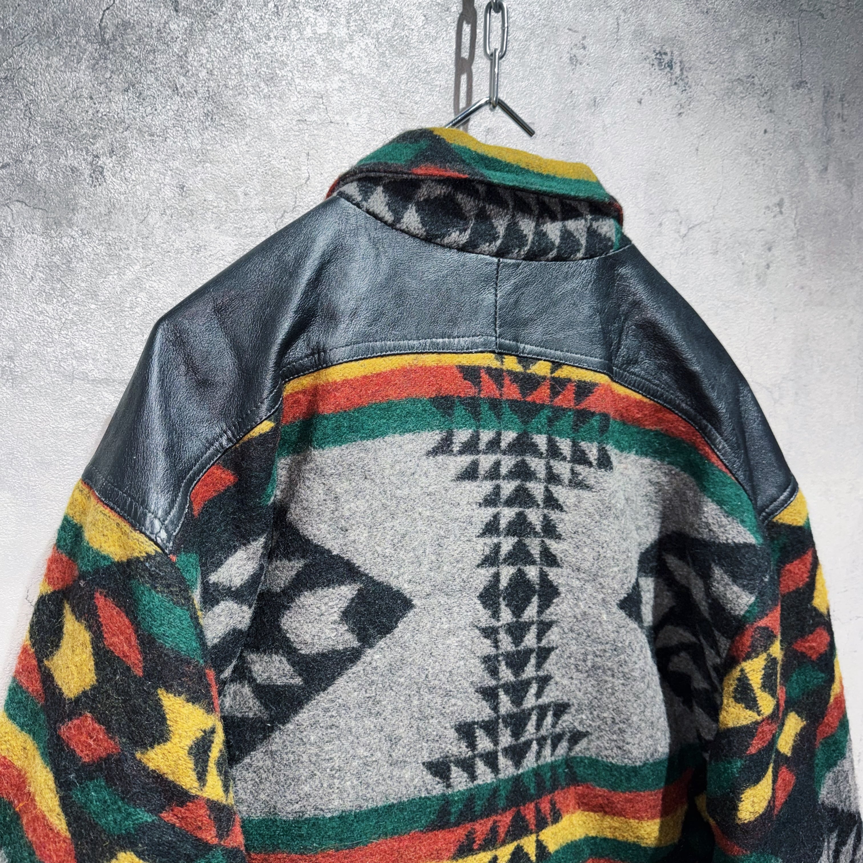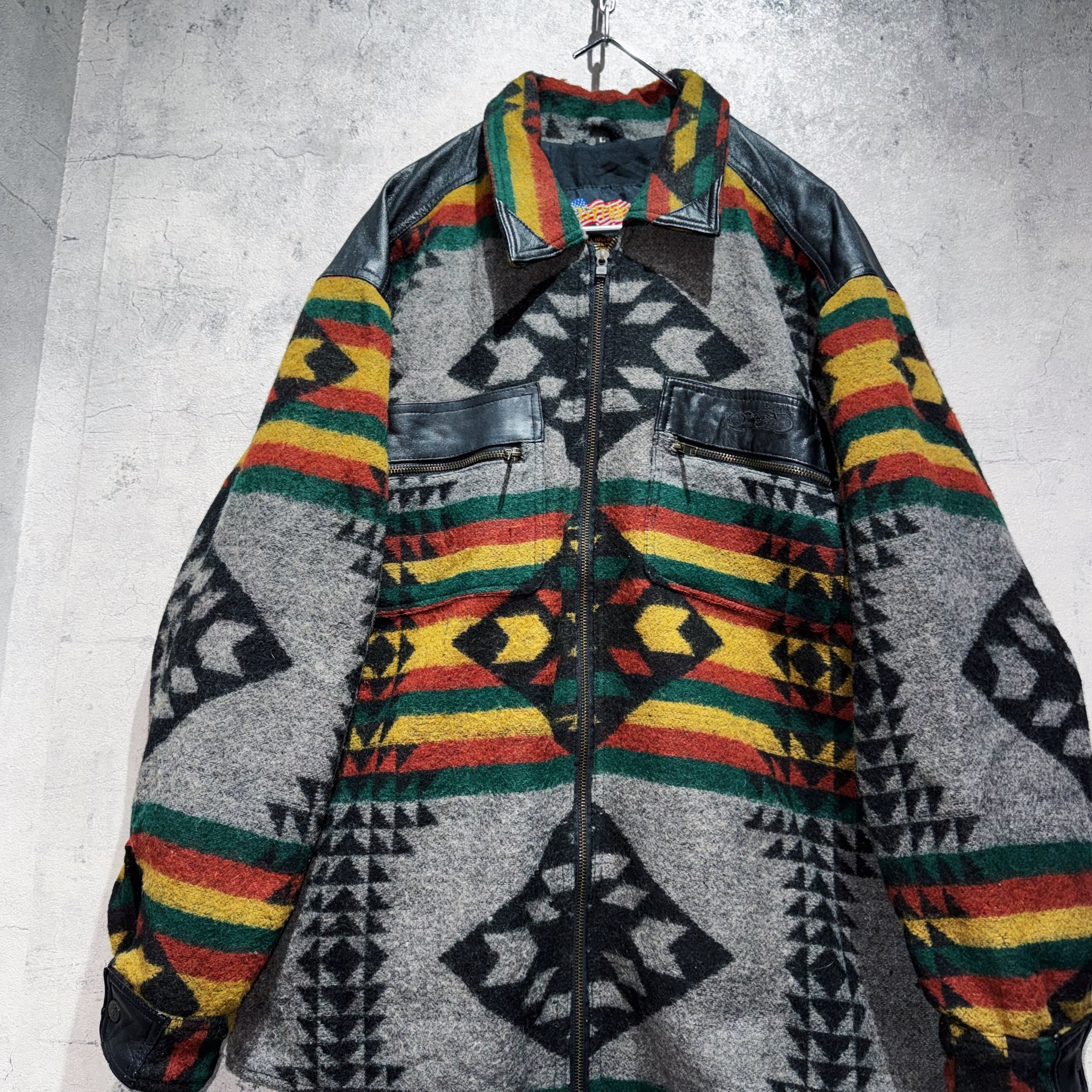 ヴィンテージ"イージーライダーズ"ウールレザーアズテックトライバルモーターサイクルジャケット