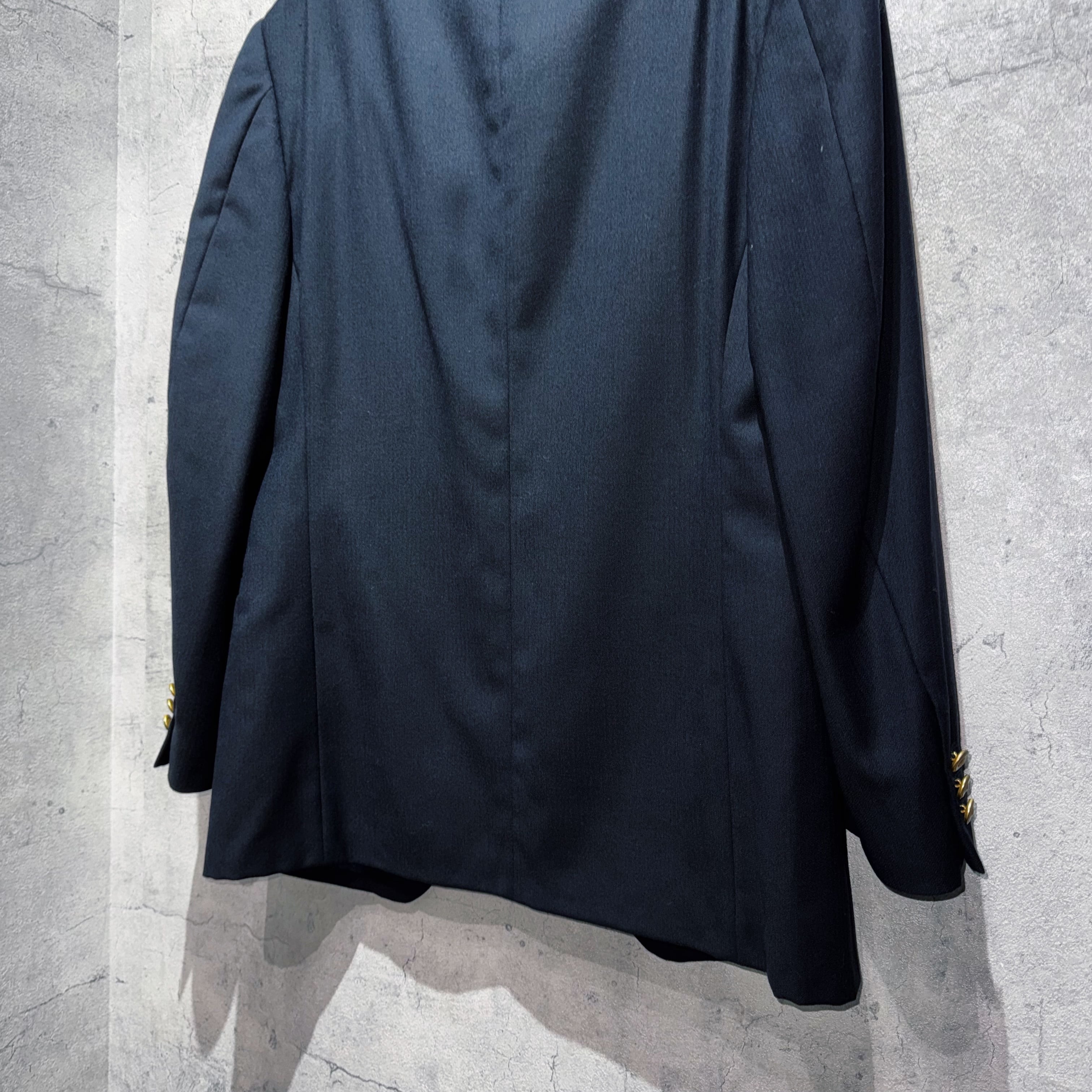 なんと言っても魅力的なのがブランド名が刻まれたゴールドボタン。左袖にはブランド名があしらわれ十分な存在感があります。