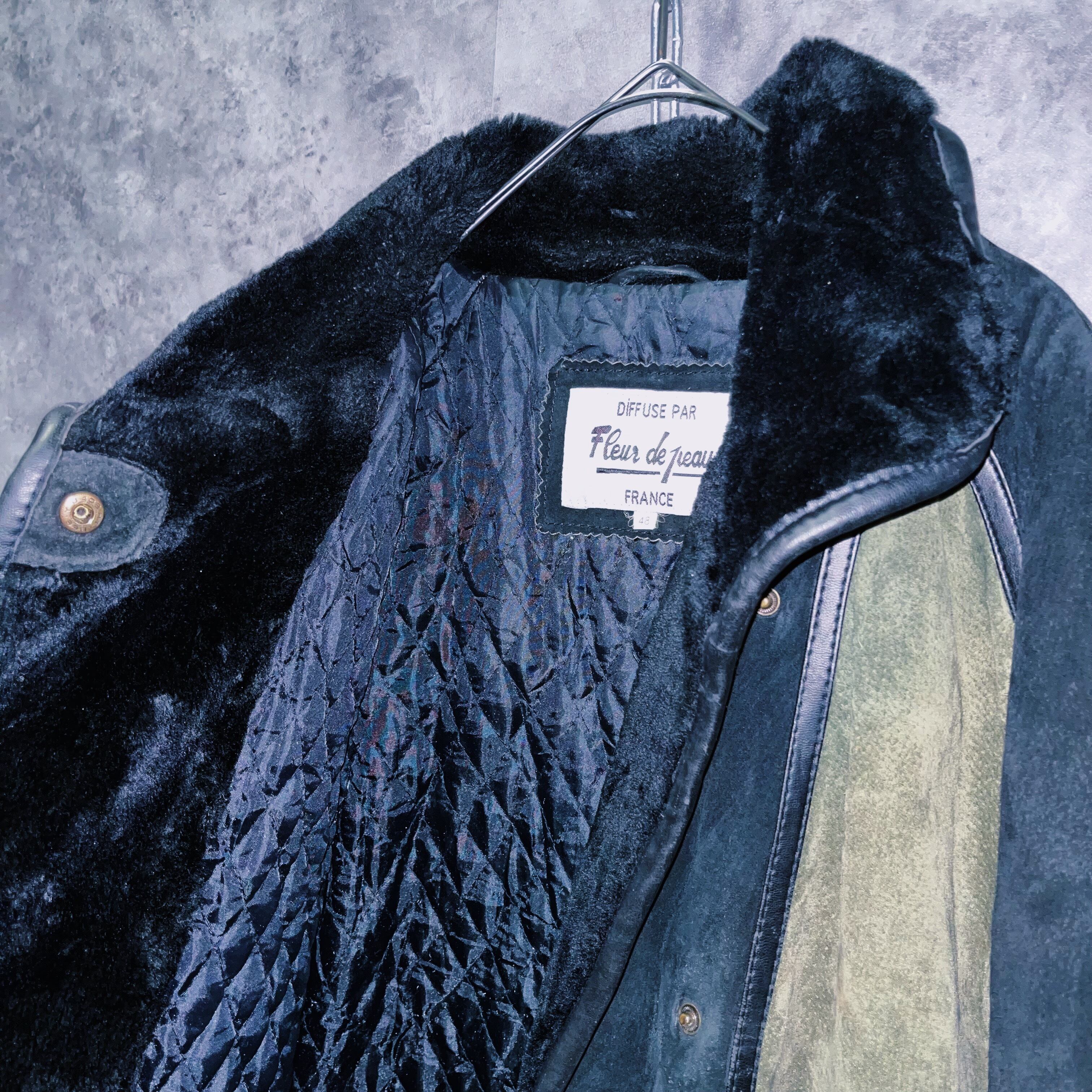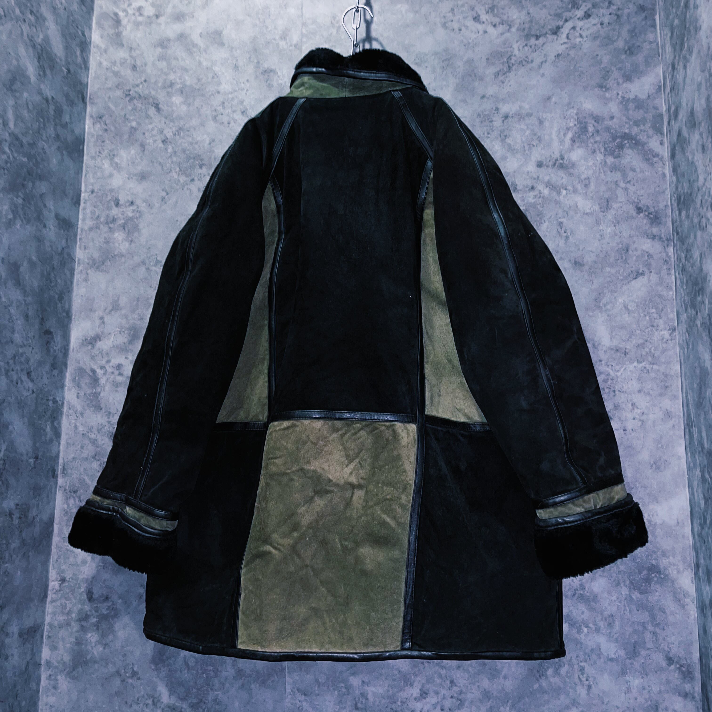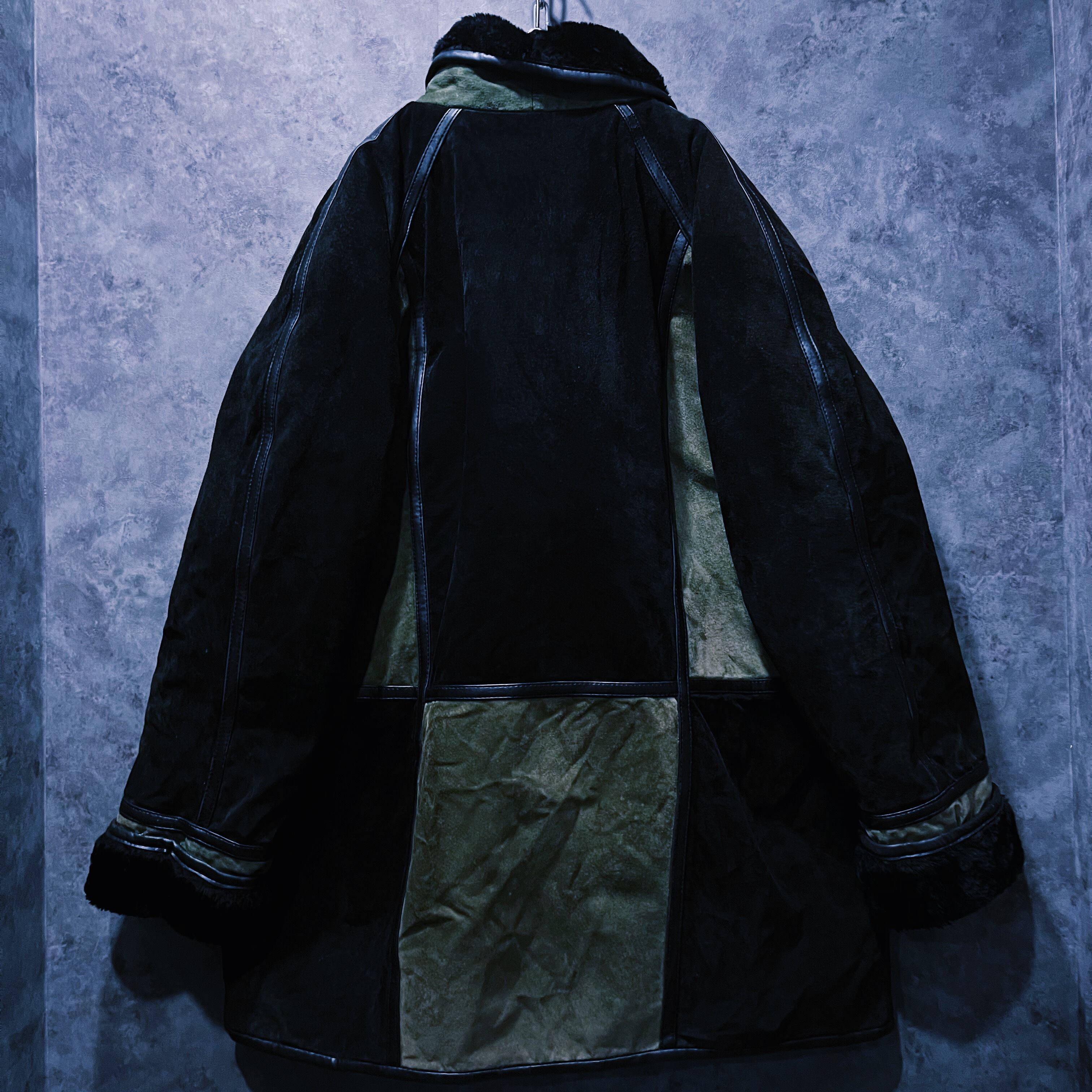 【doppio】vintage block color switching design swede leather loose jacket