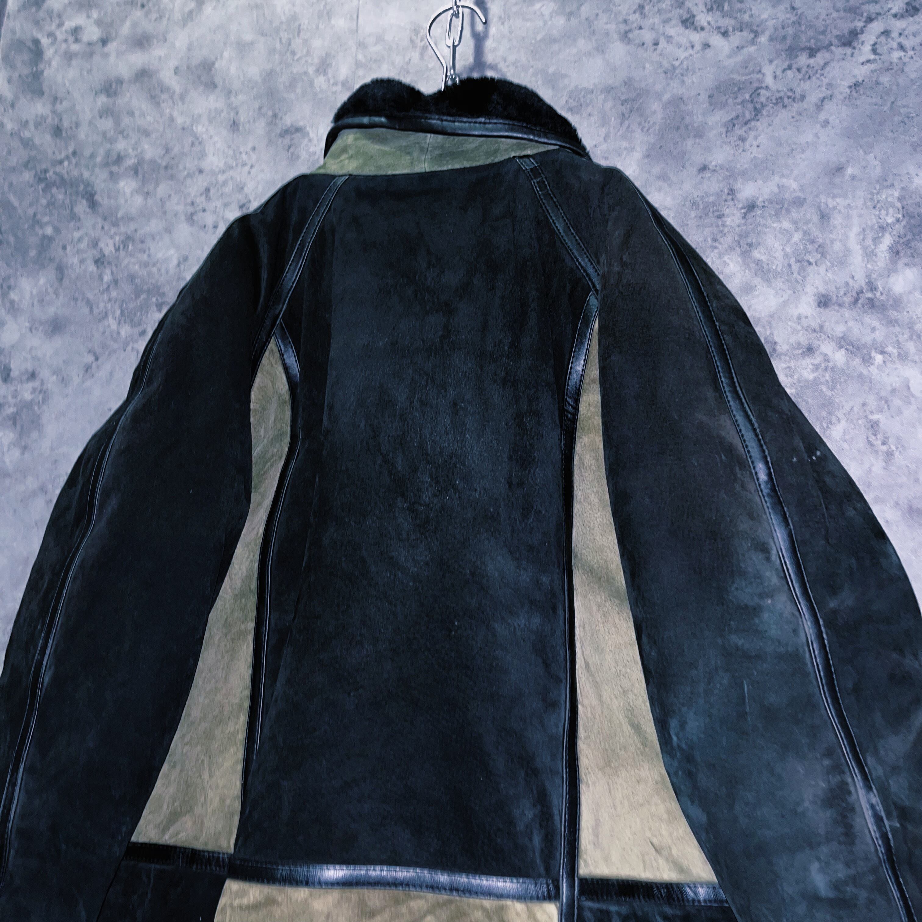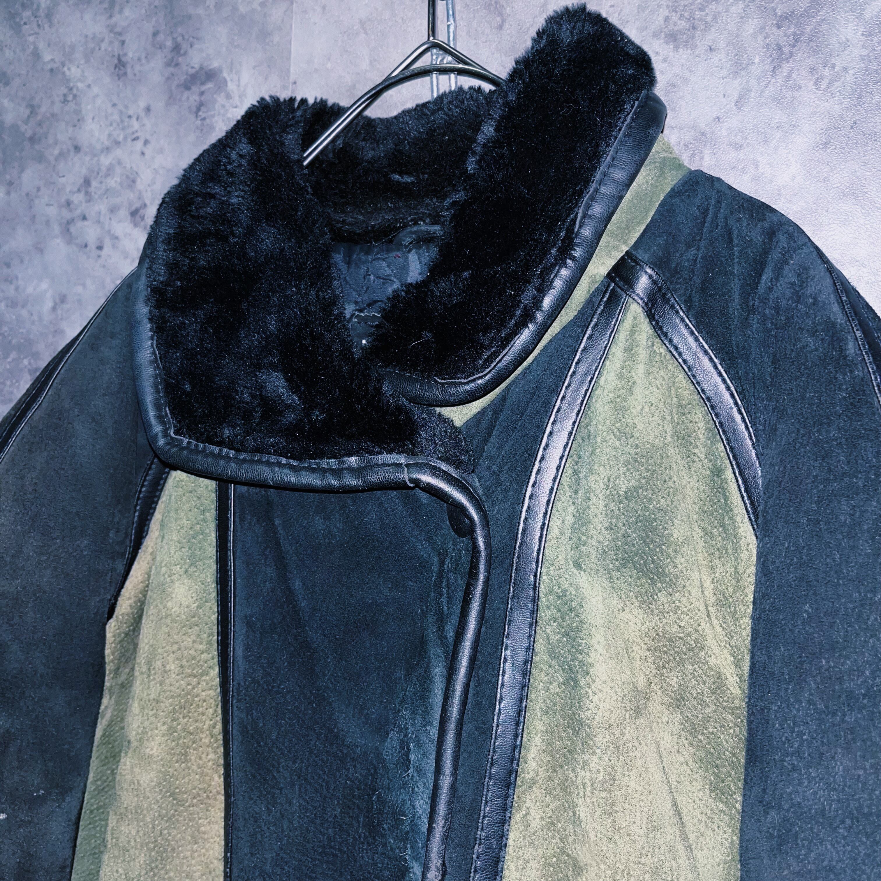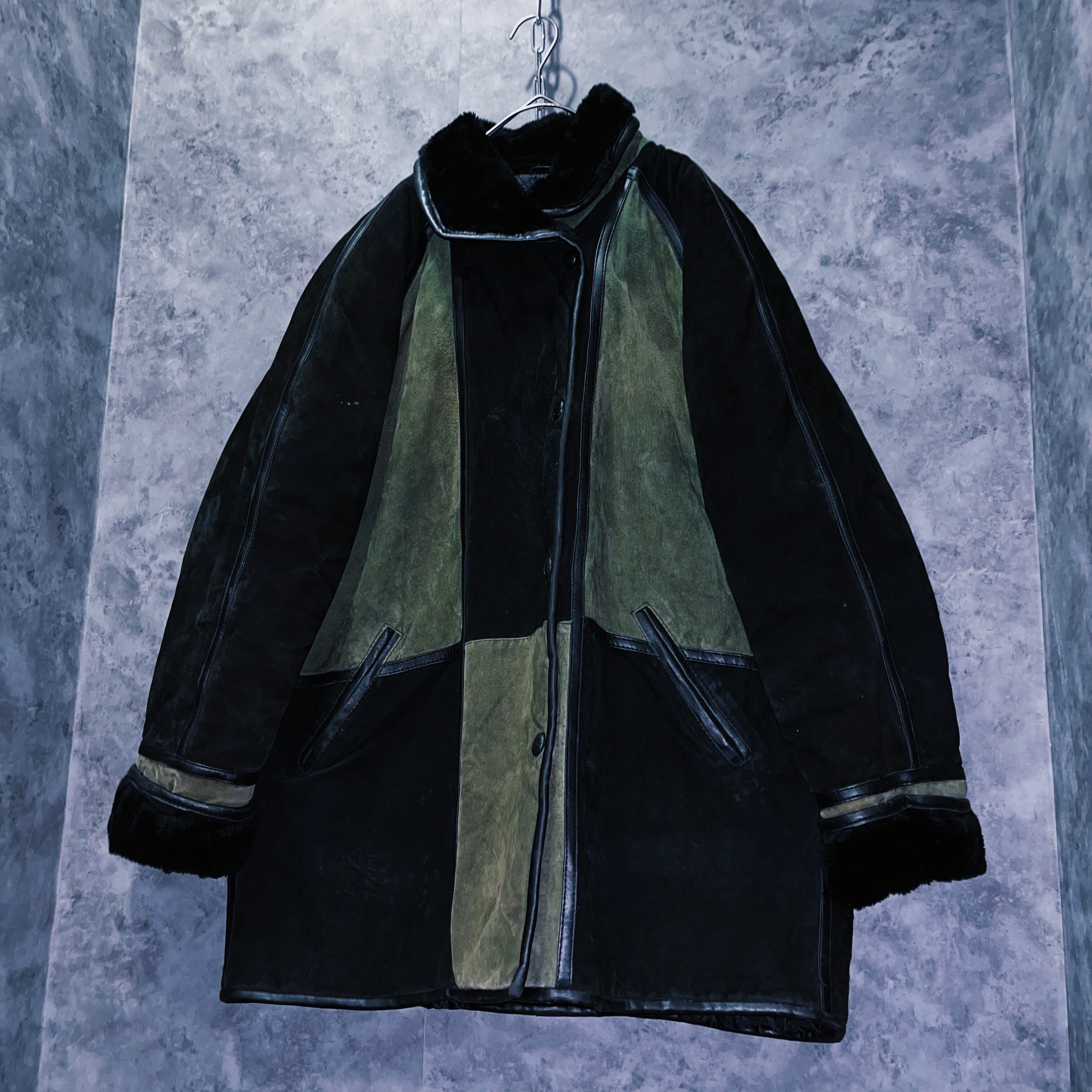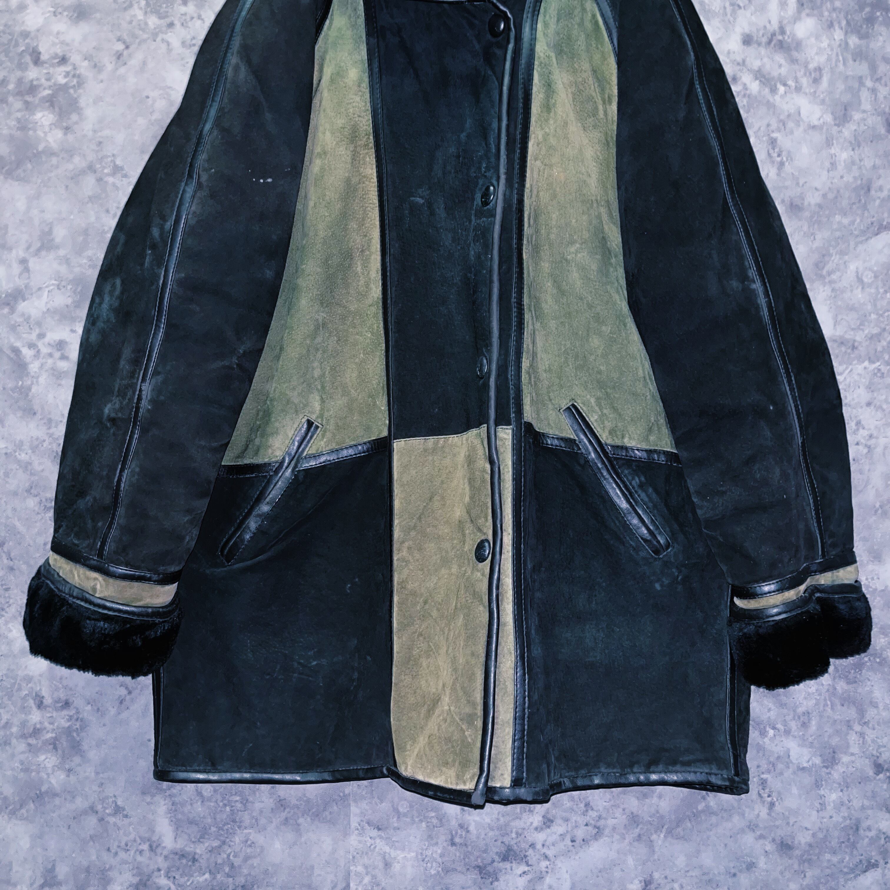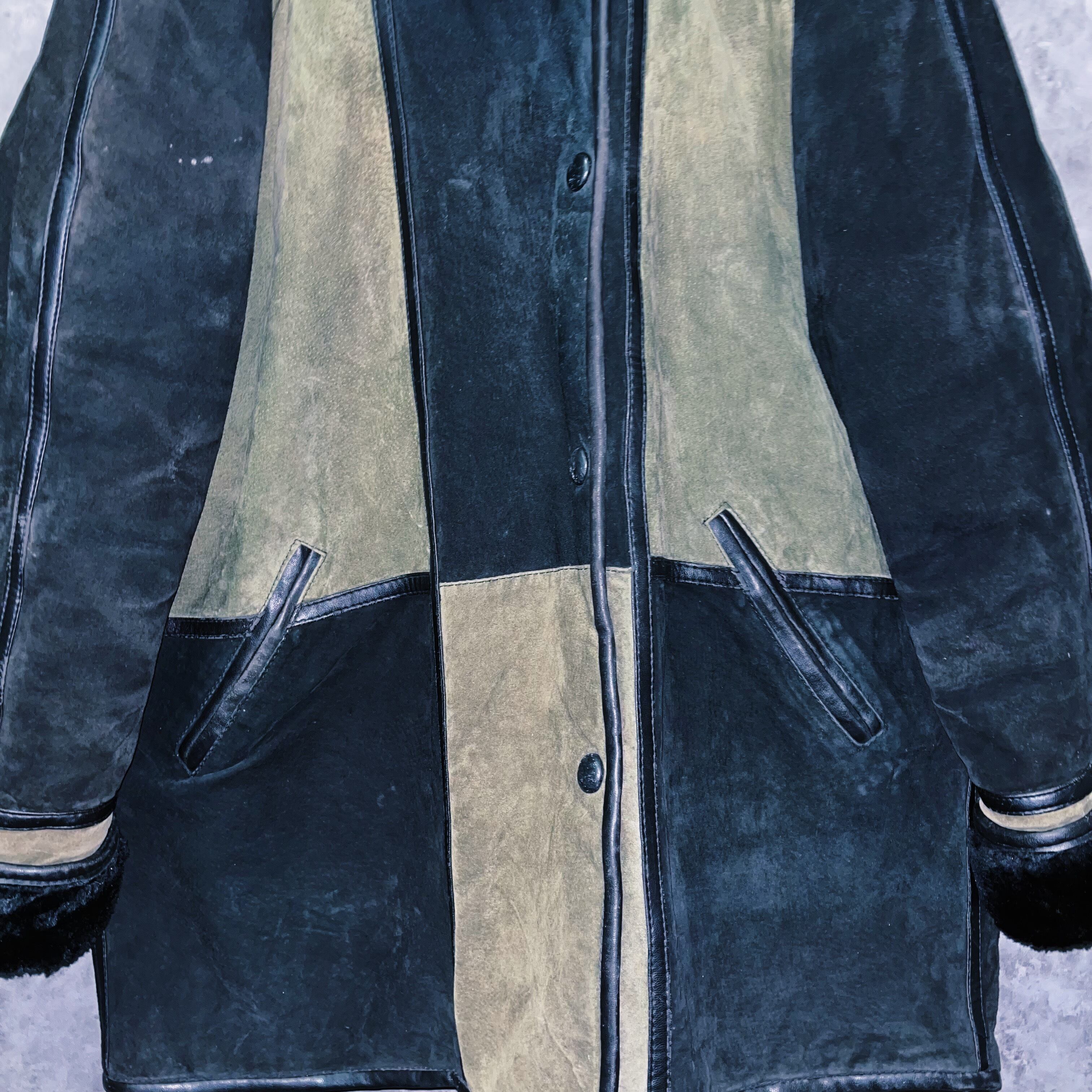 ランプブラックと、セージグリーンのツートンカラーを採用した、スウェードレザージャケット。
