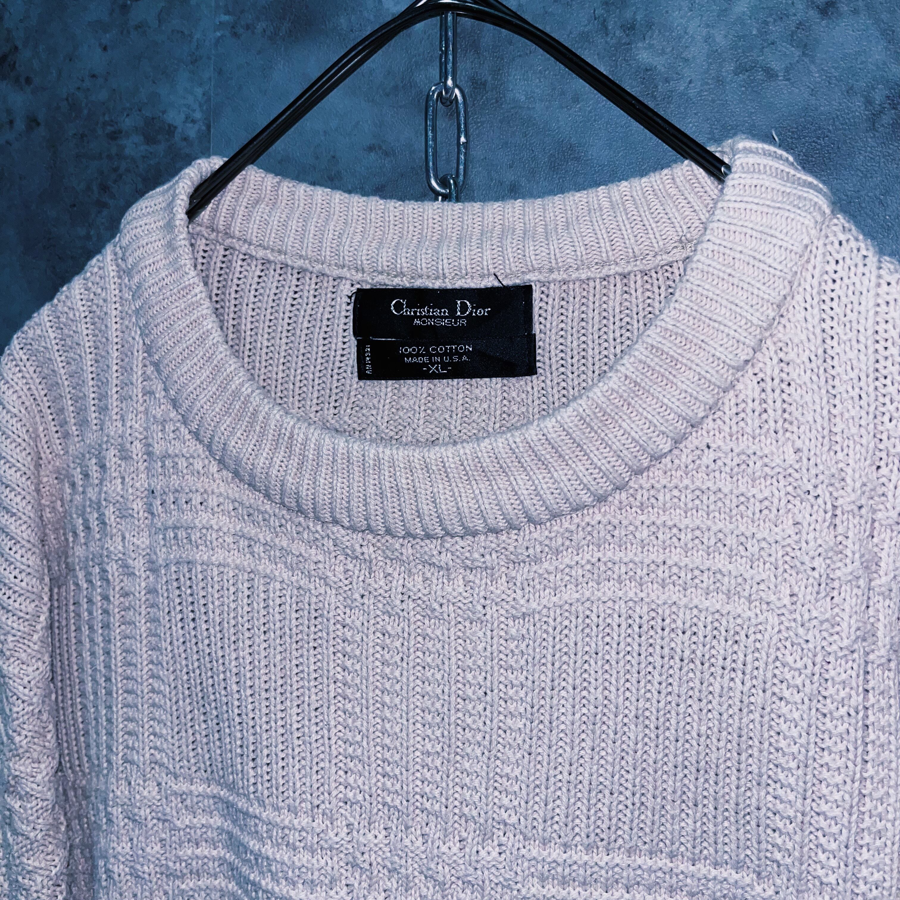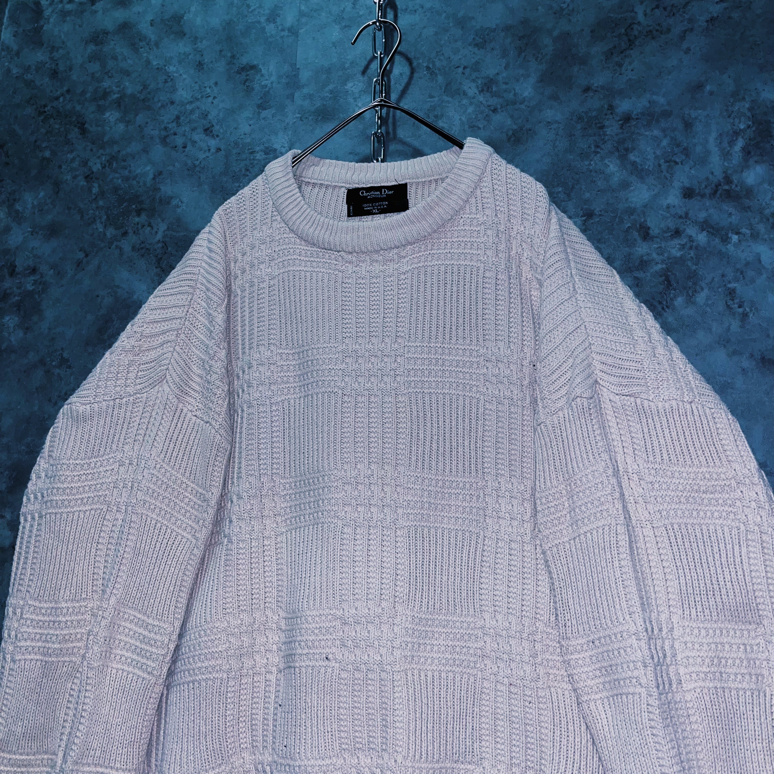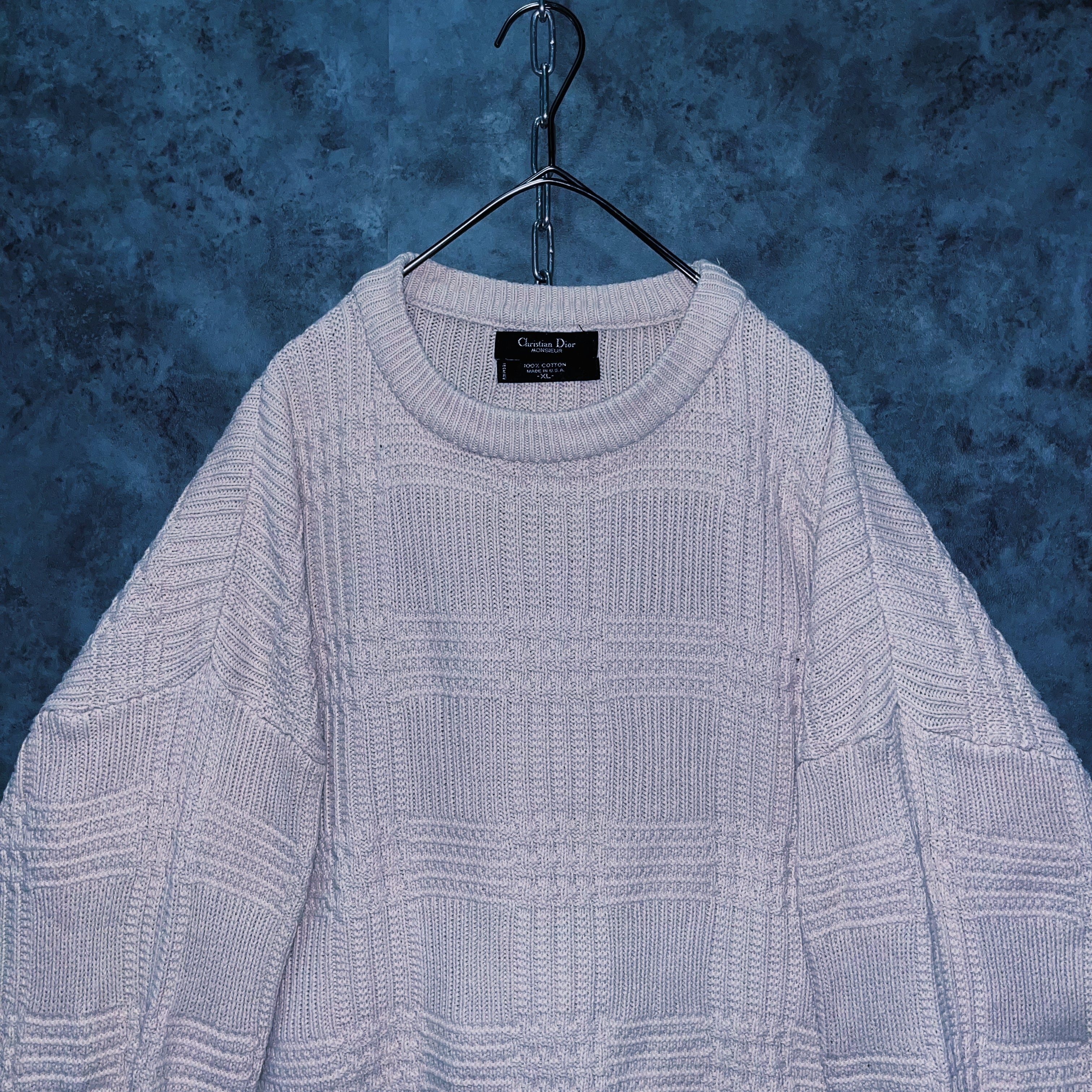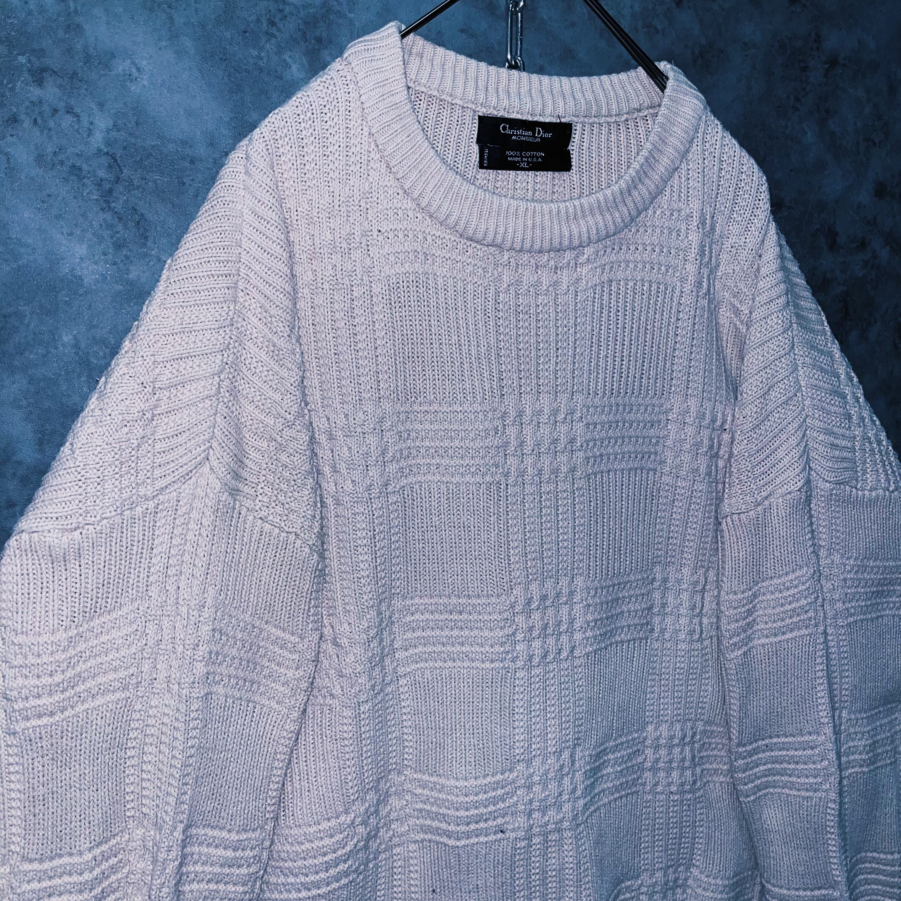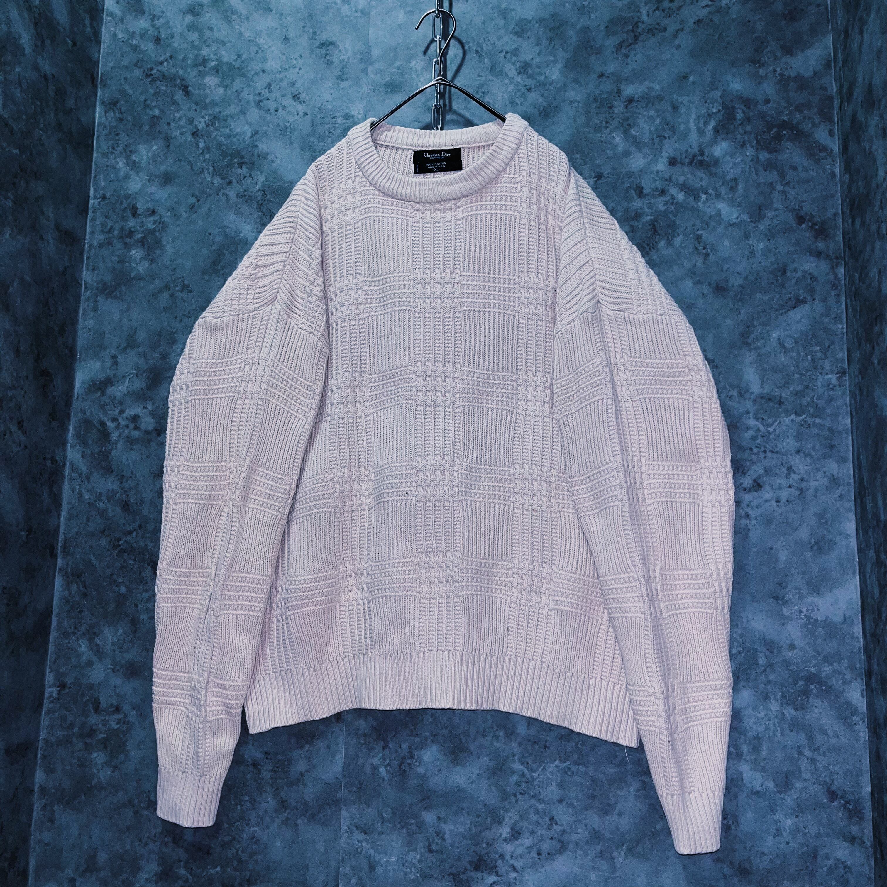 ヴィンテージ“Christian Dior”100%コットンチェックパターンニットプルオーバー