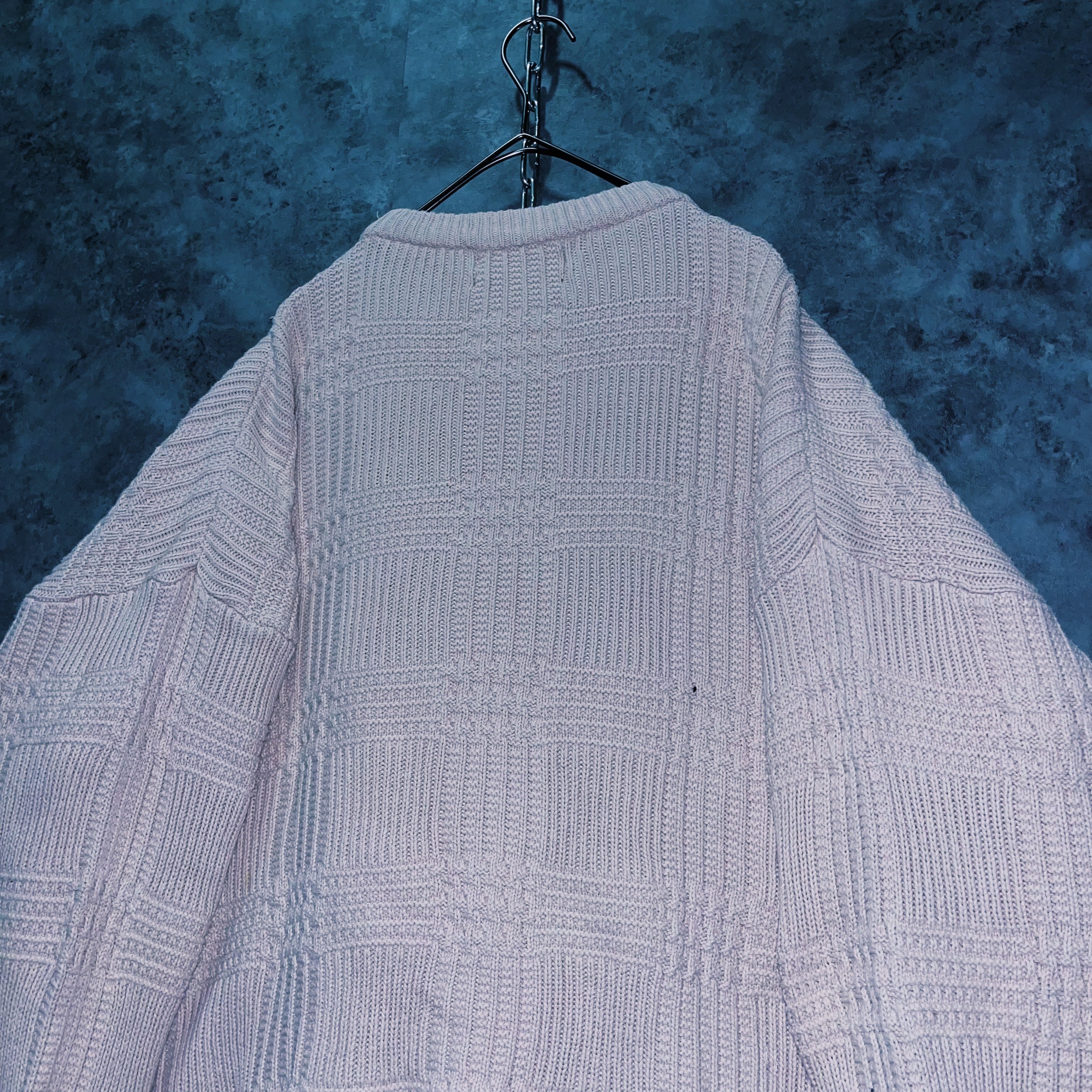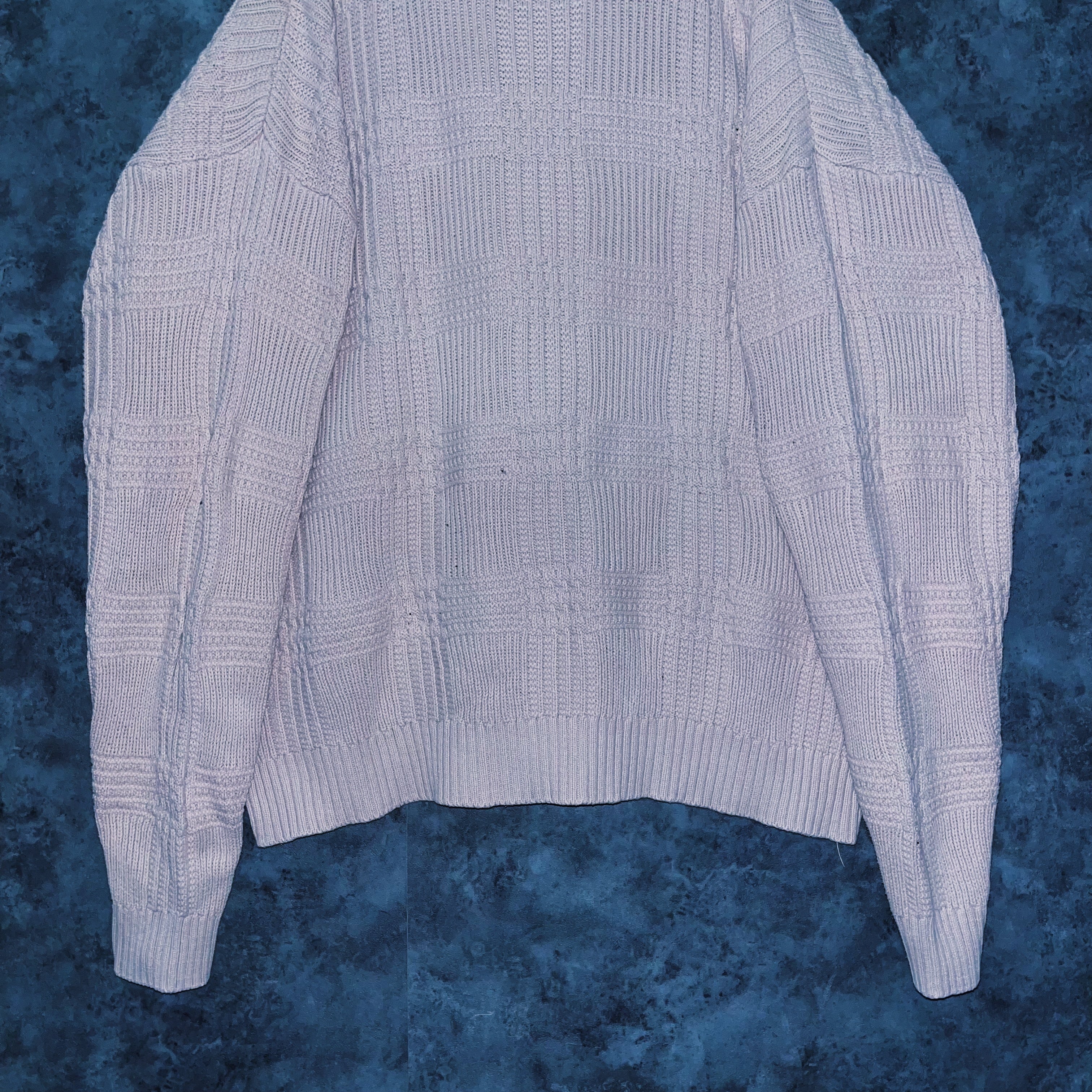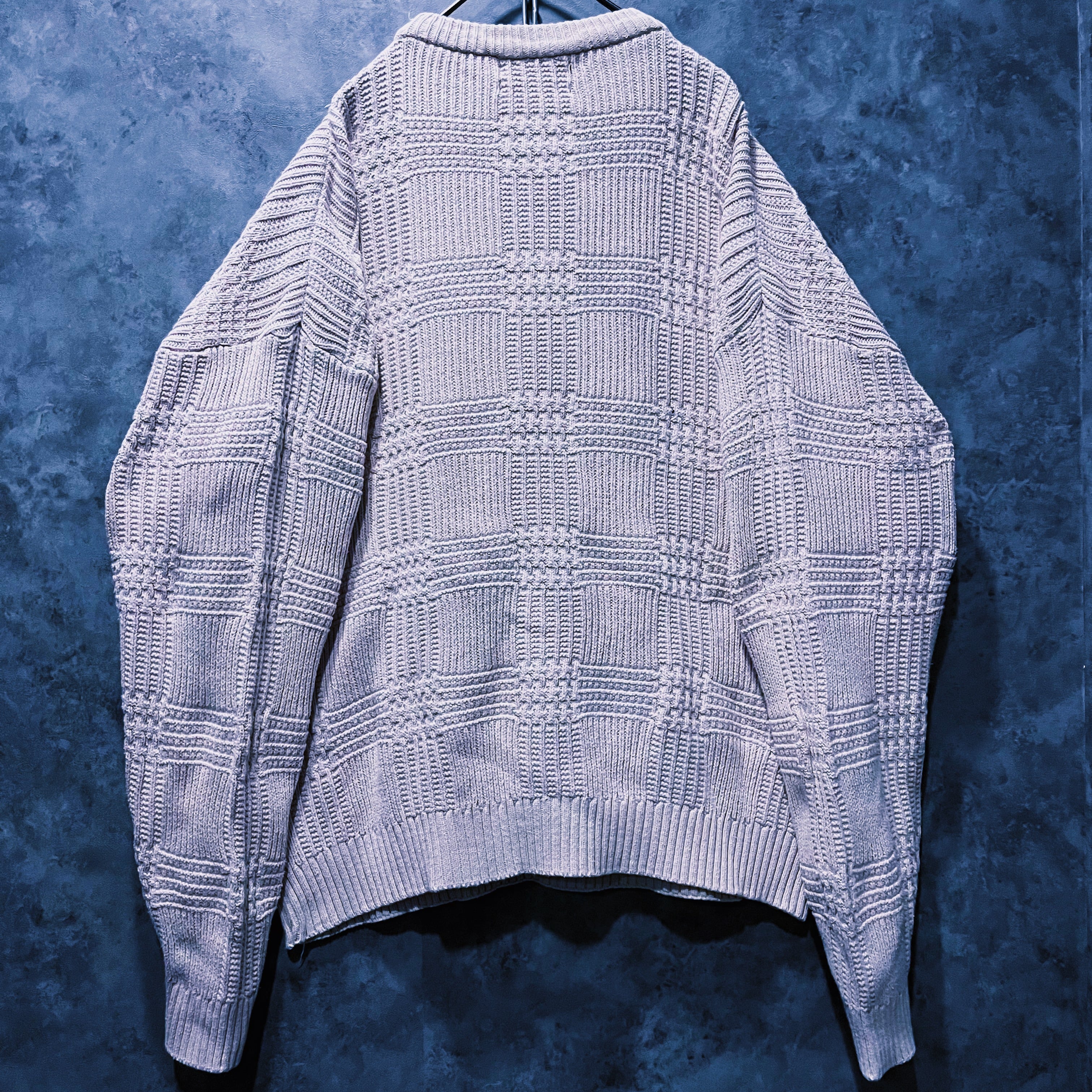 柔らかなオイスターホワイトカラーで統一された、コットン100%のニット。チェックパターンに編まれたデザインは肌馴染み良くも、紳士的な芯のあるかっこよさを演出してくれます。