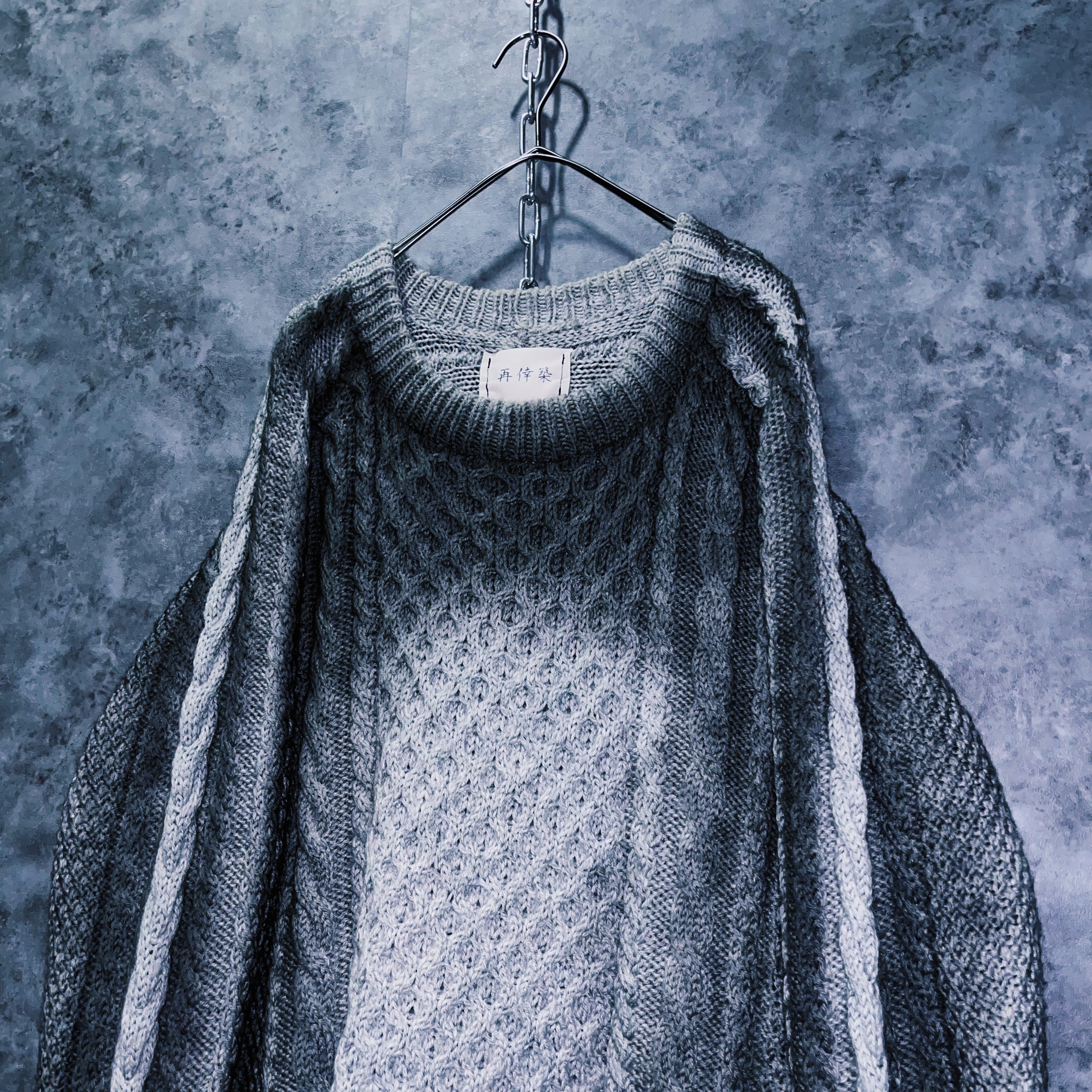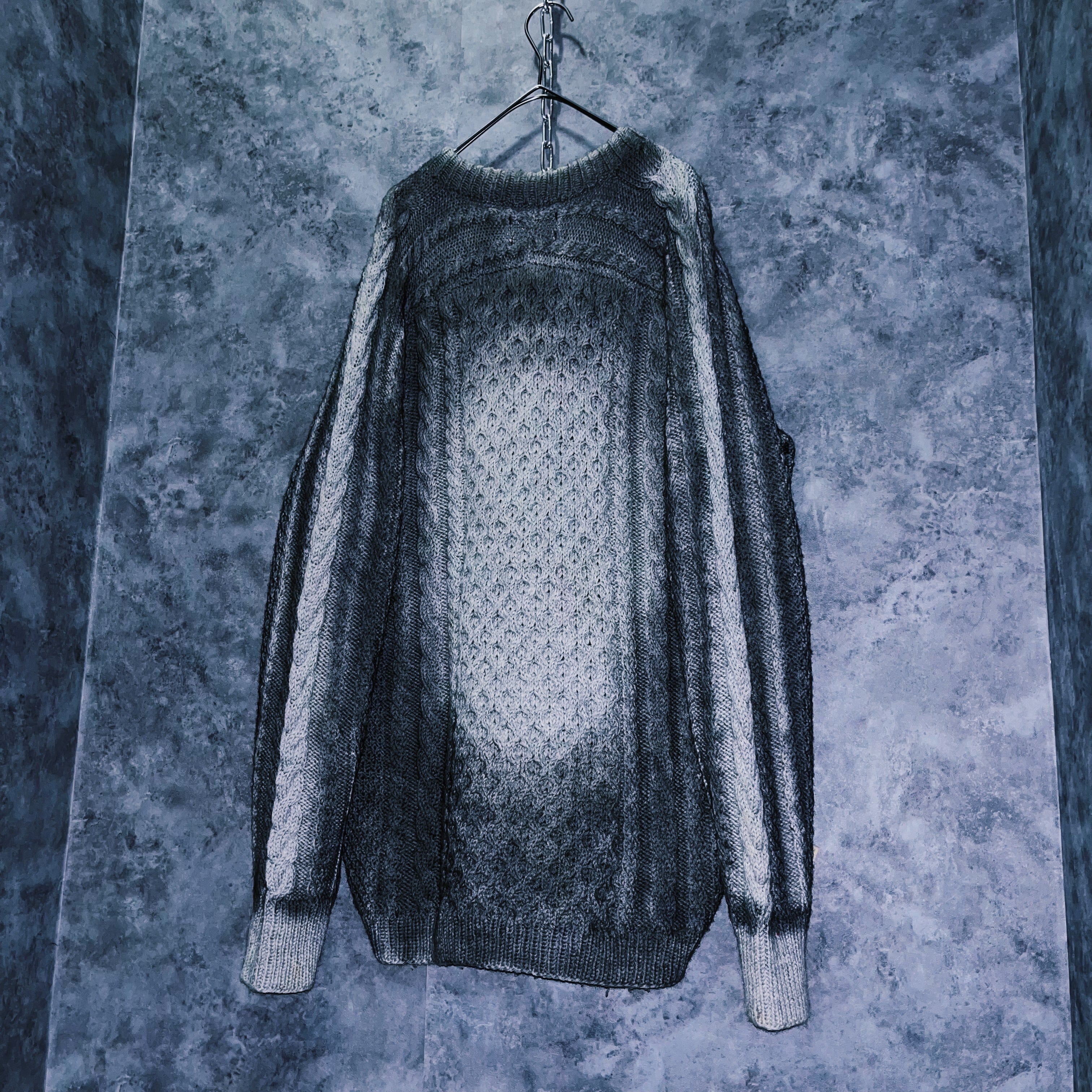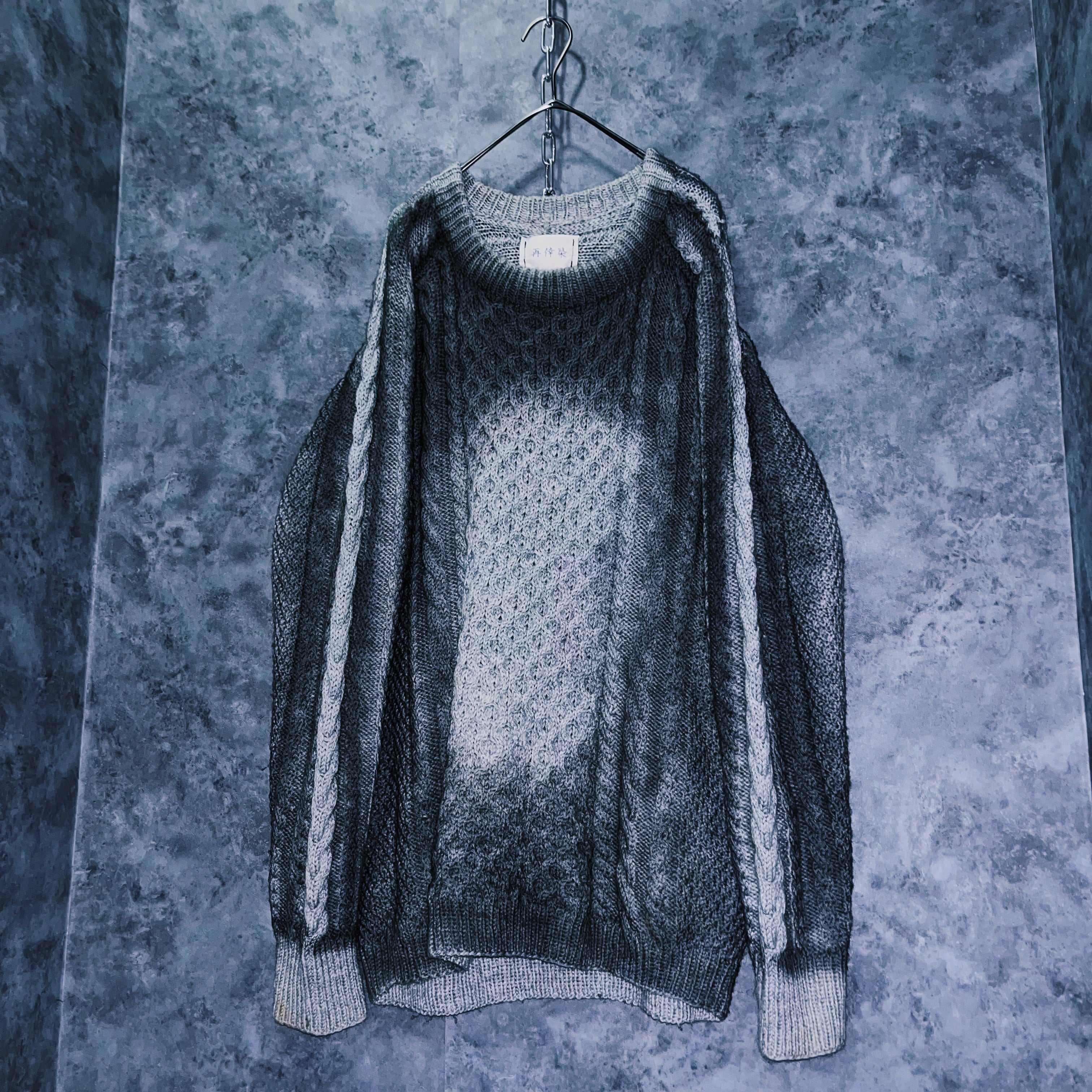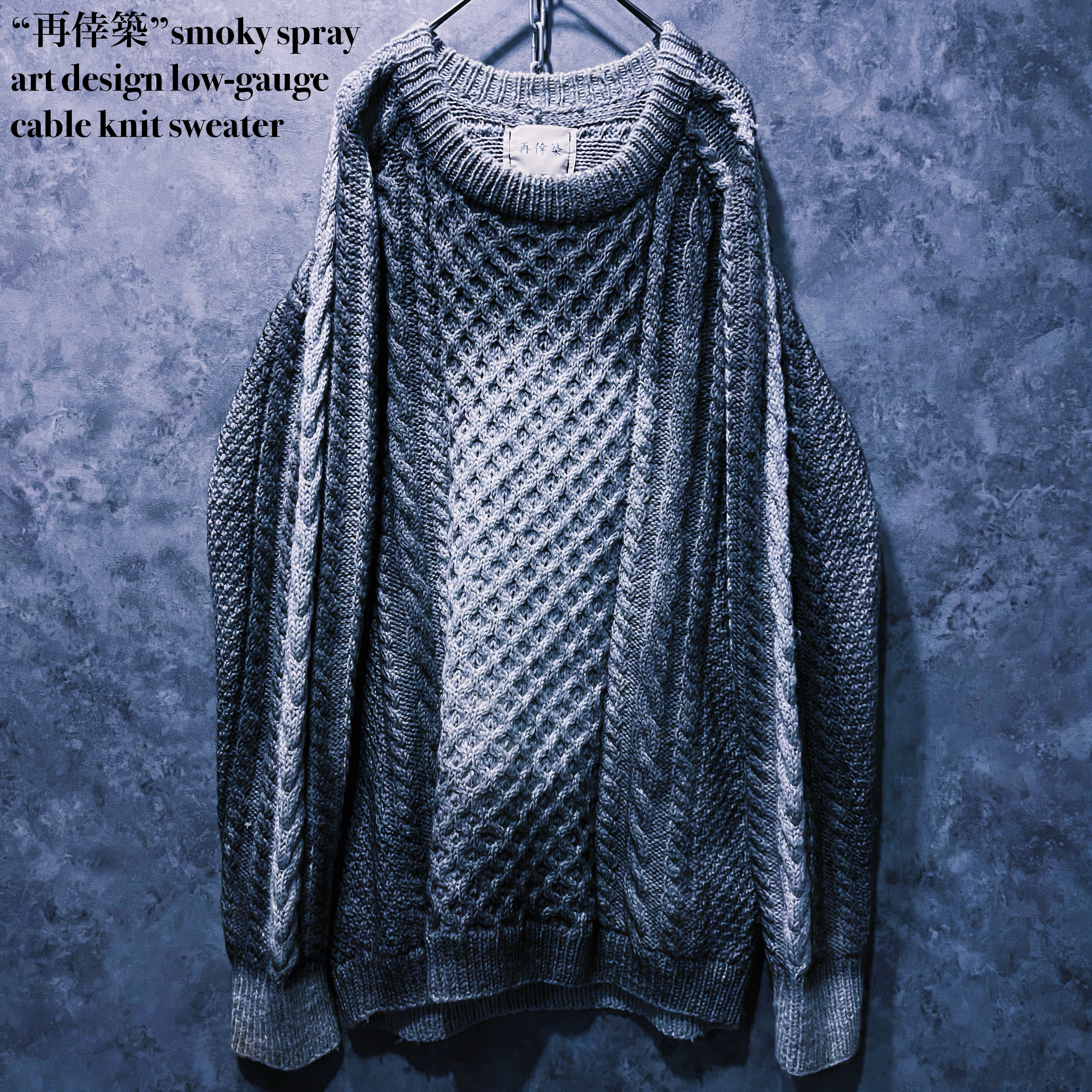 “再倖築”スモーキースプレーアートデザインローゲージケーブルニットスウェット