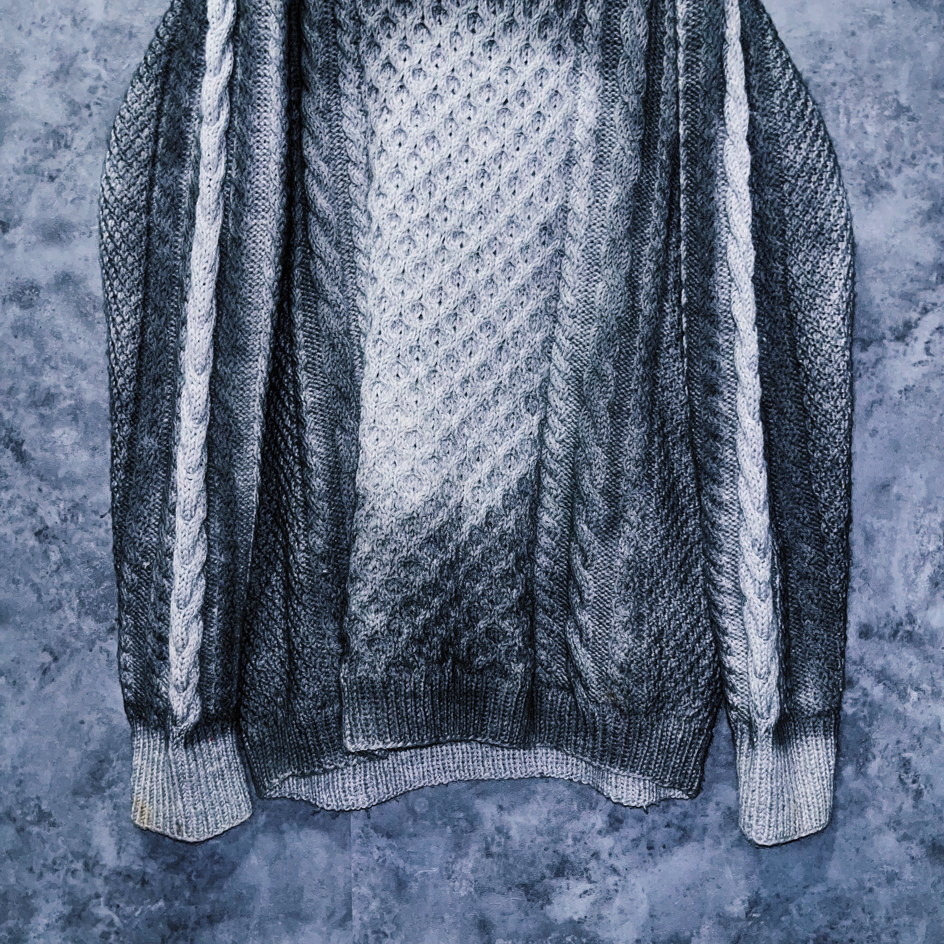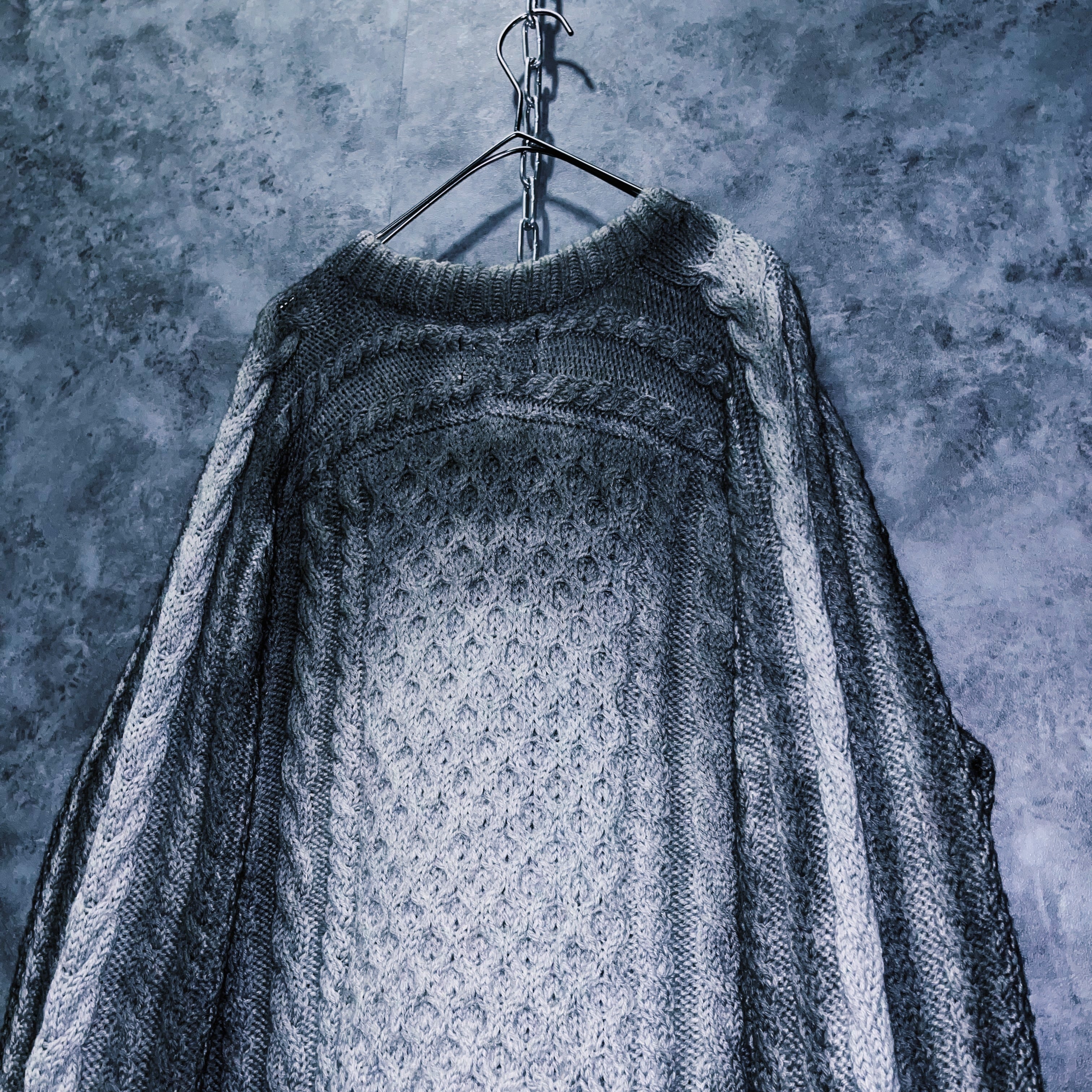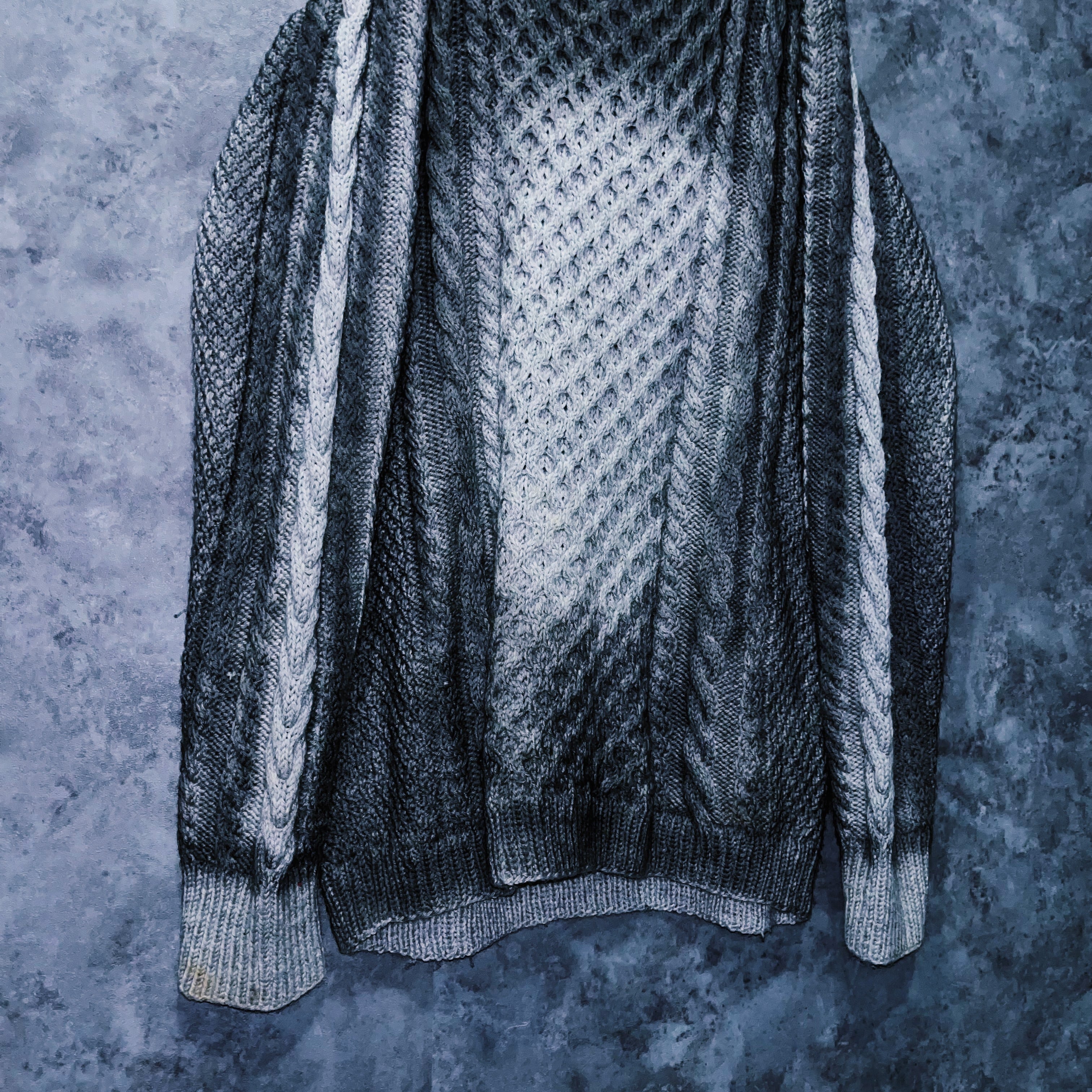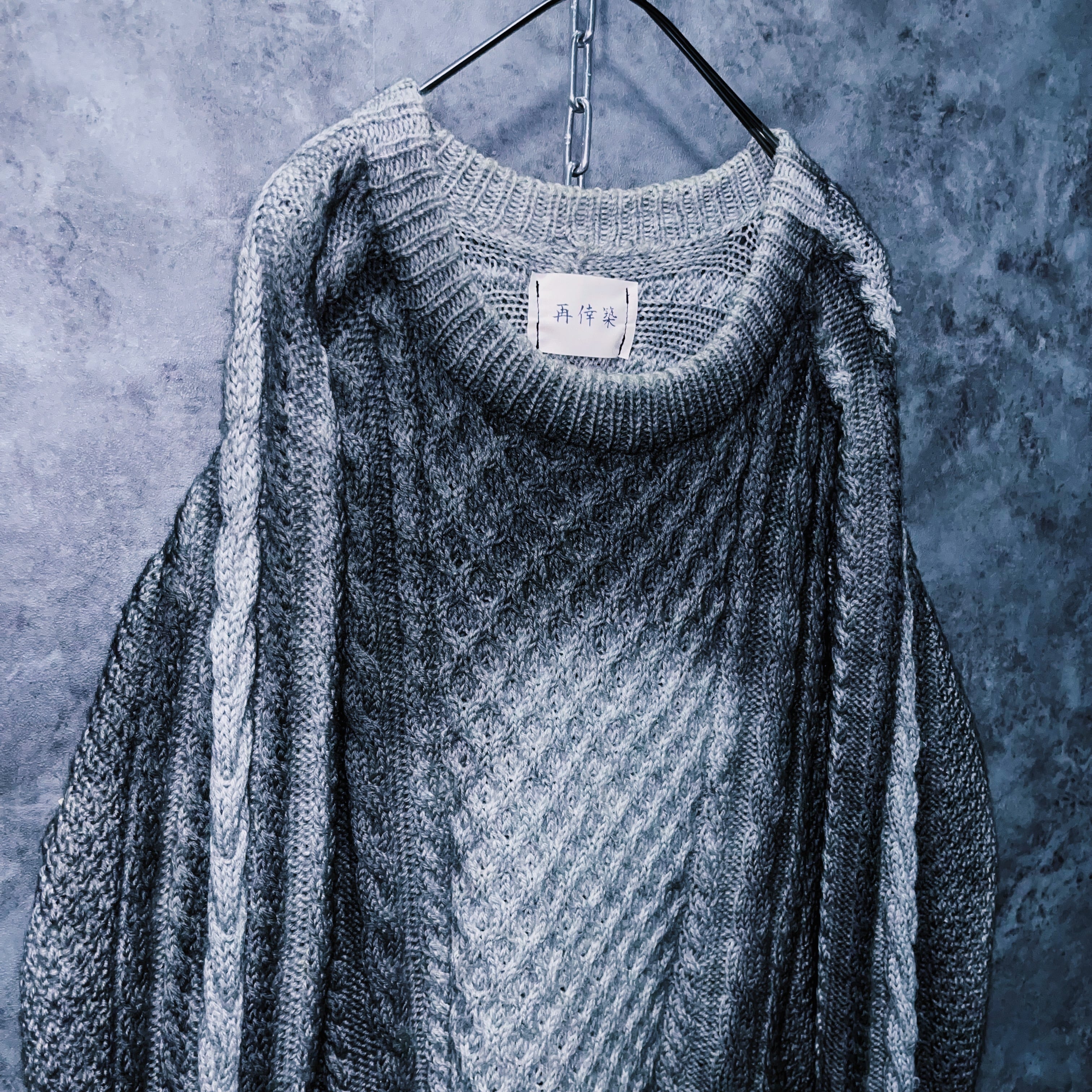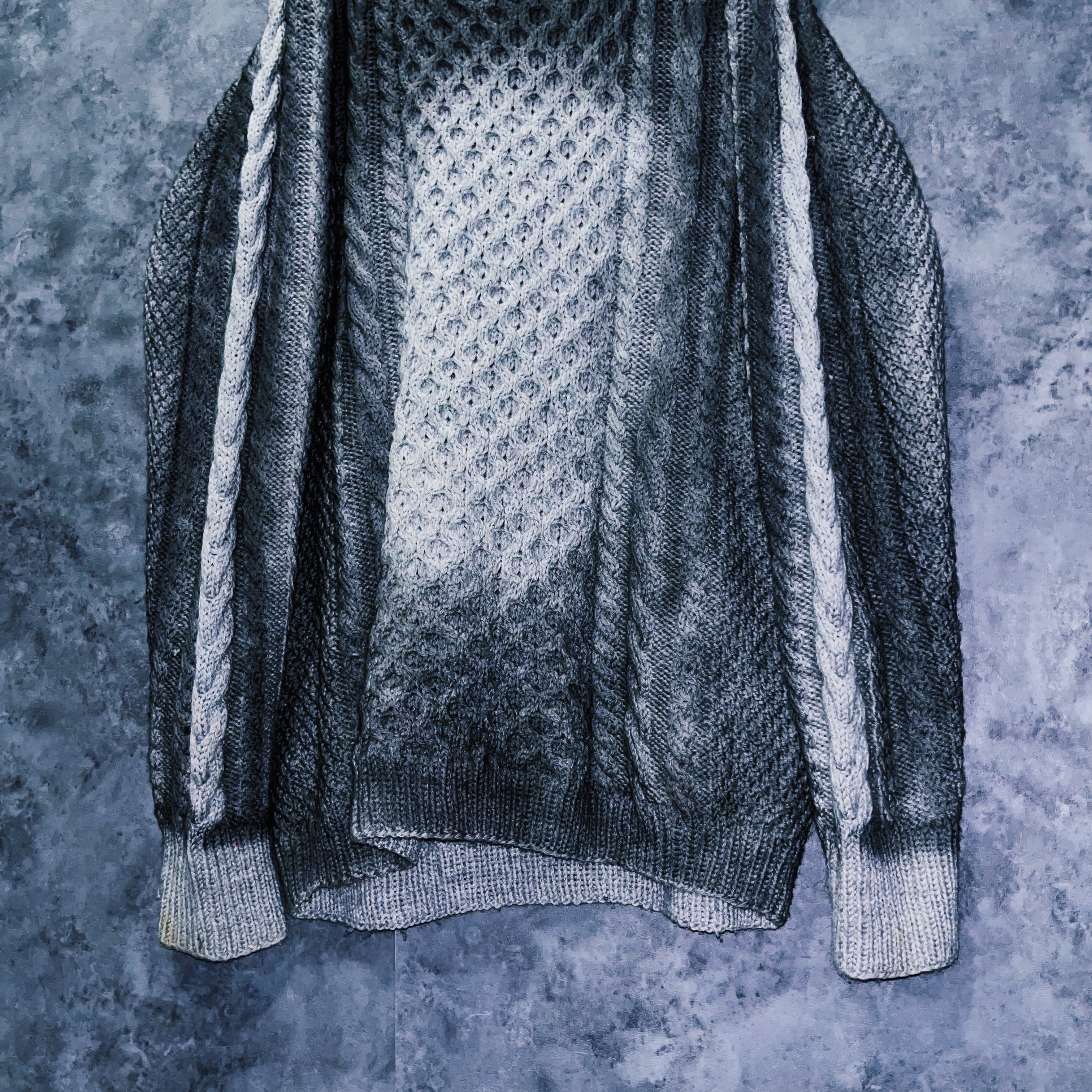 “再倖築”スモーキースプレーアートデザインローゲージケーブルニットスウェット