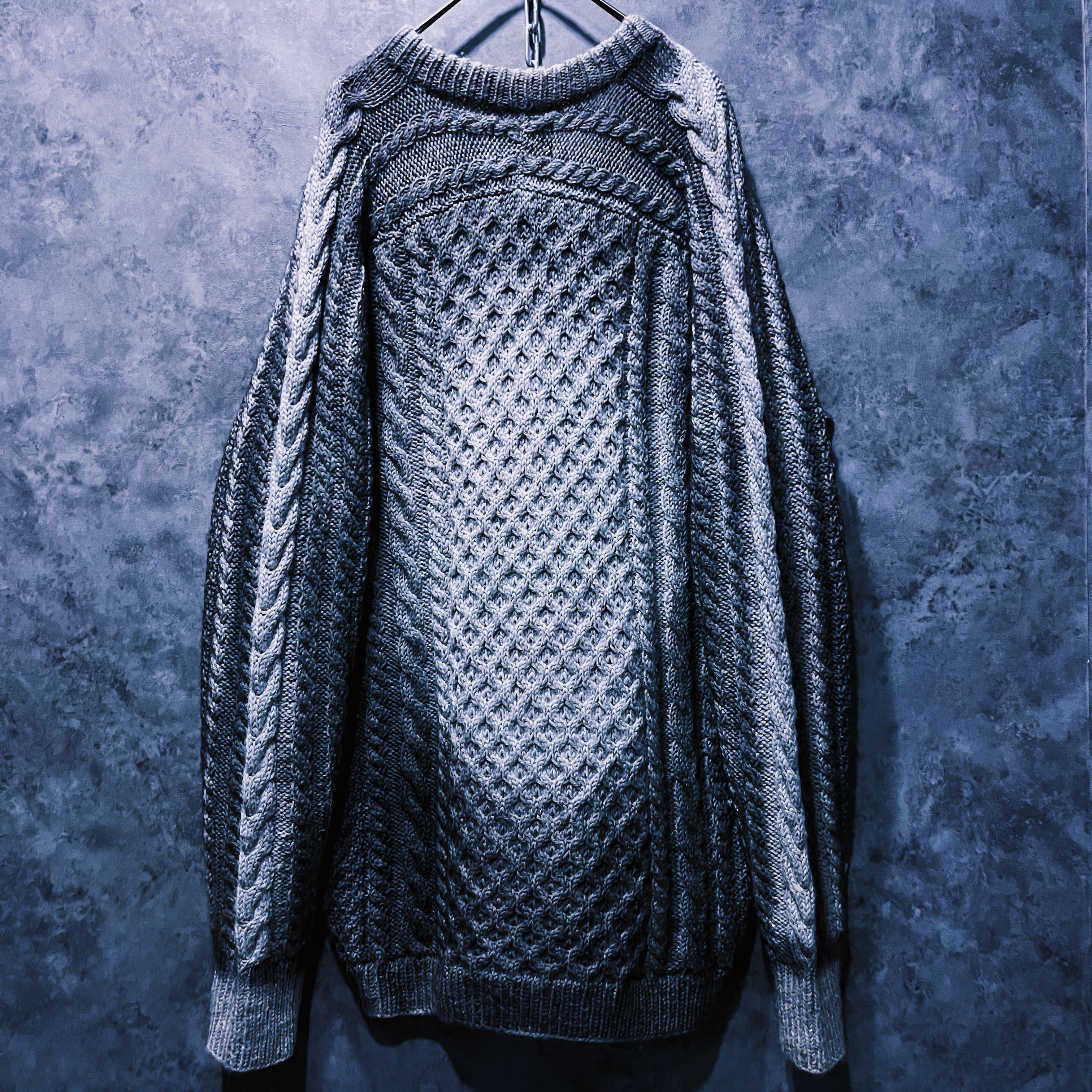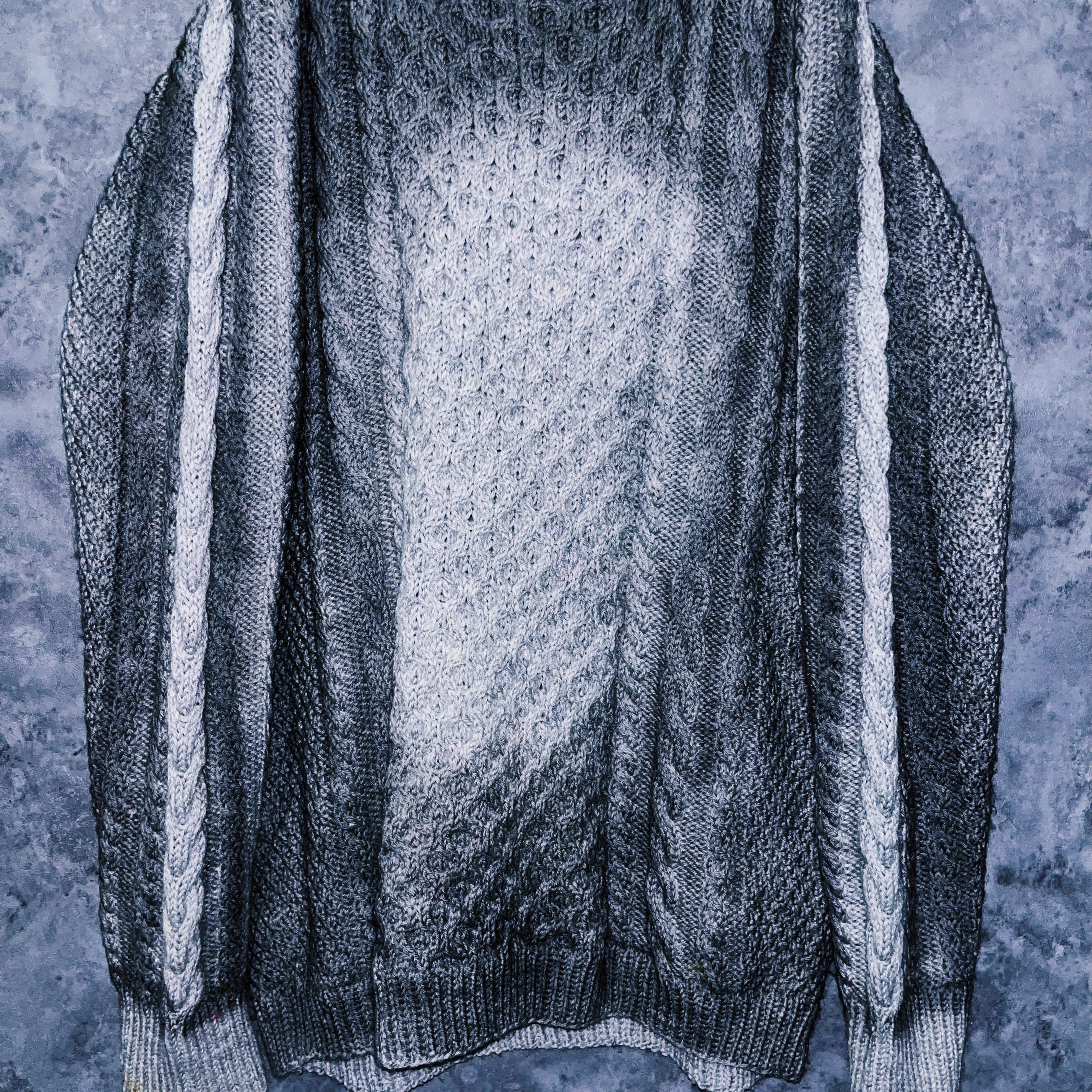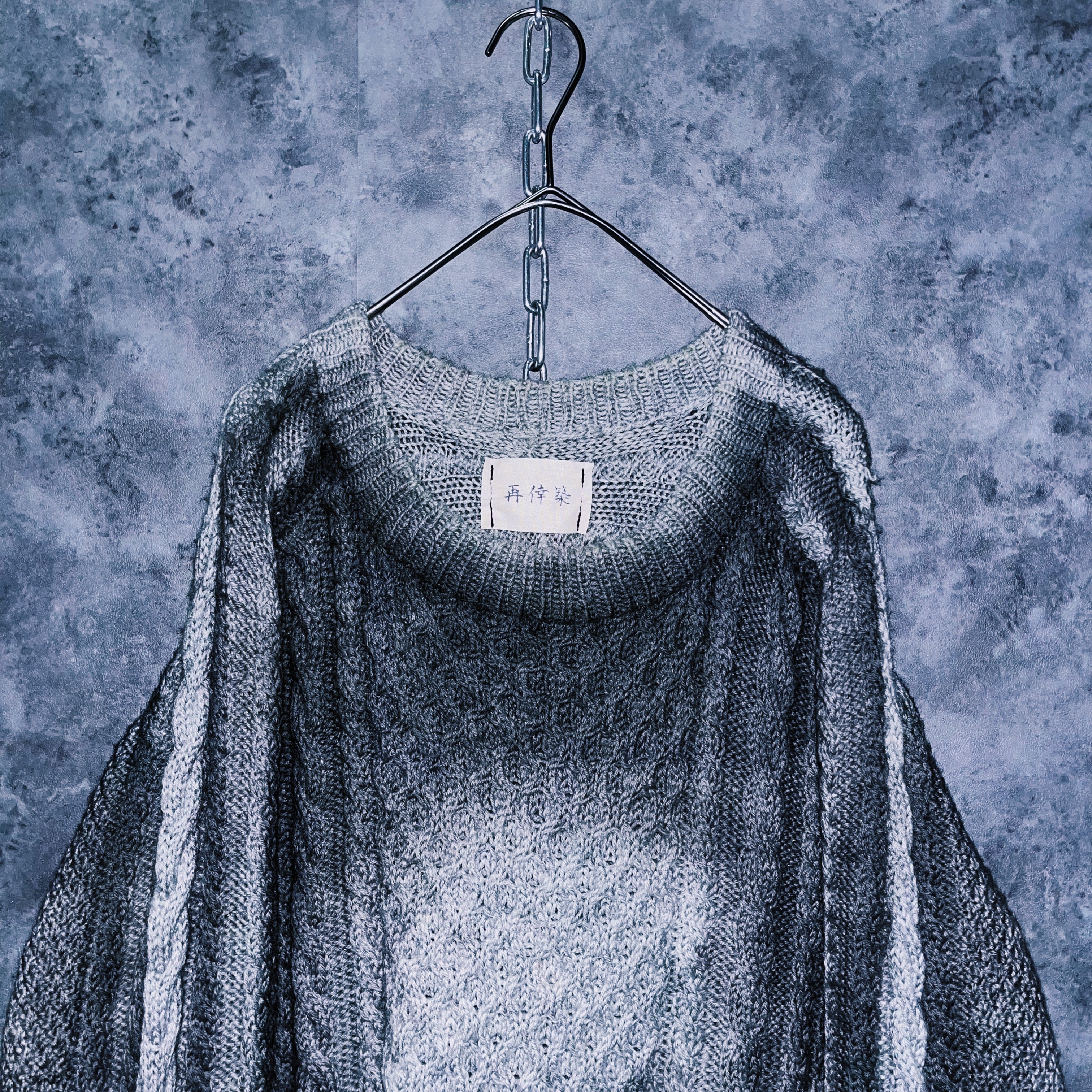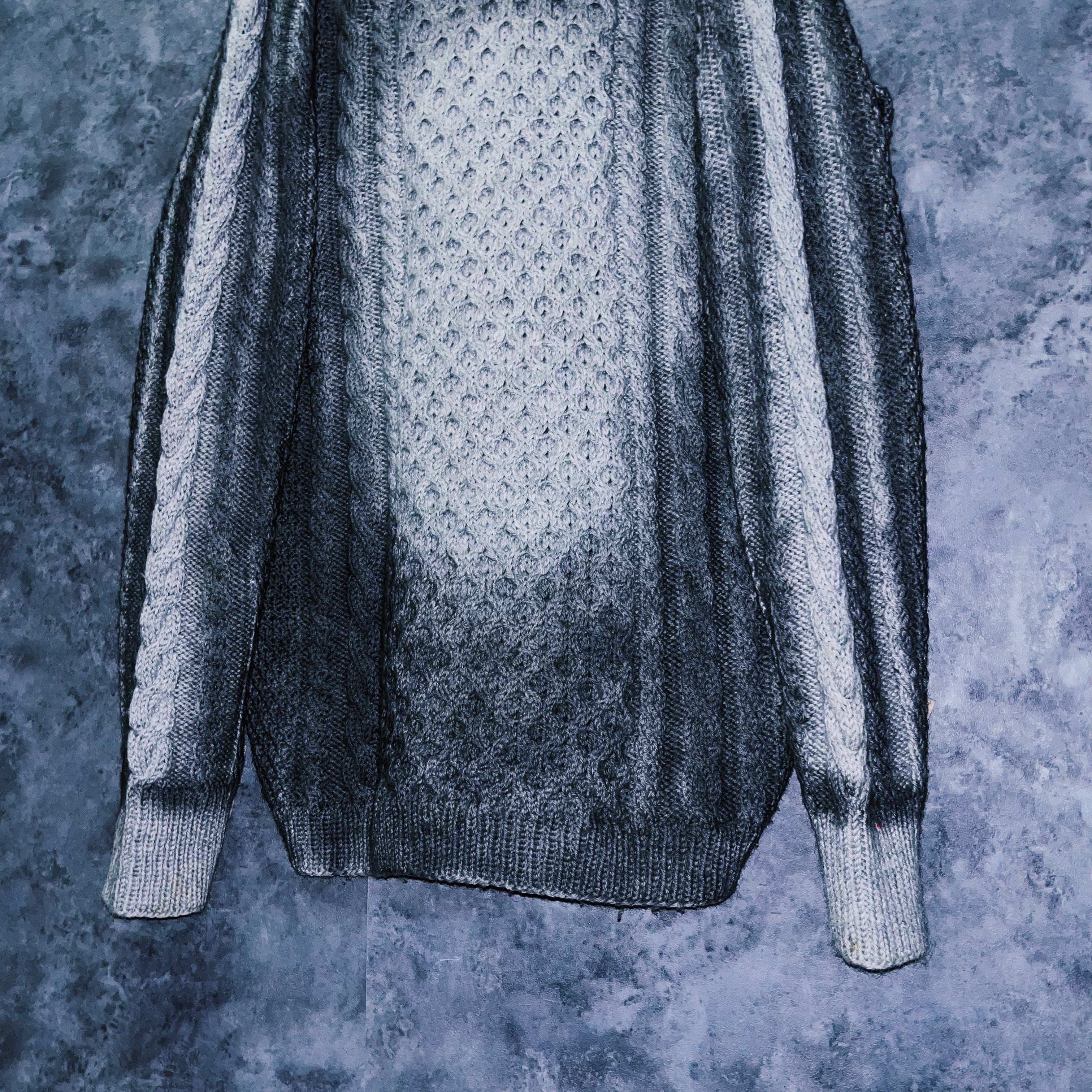 “再倖築”スモーキースプレーアートデザインローゲージケーブルニットスウェット