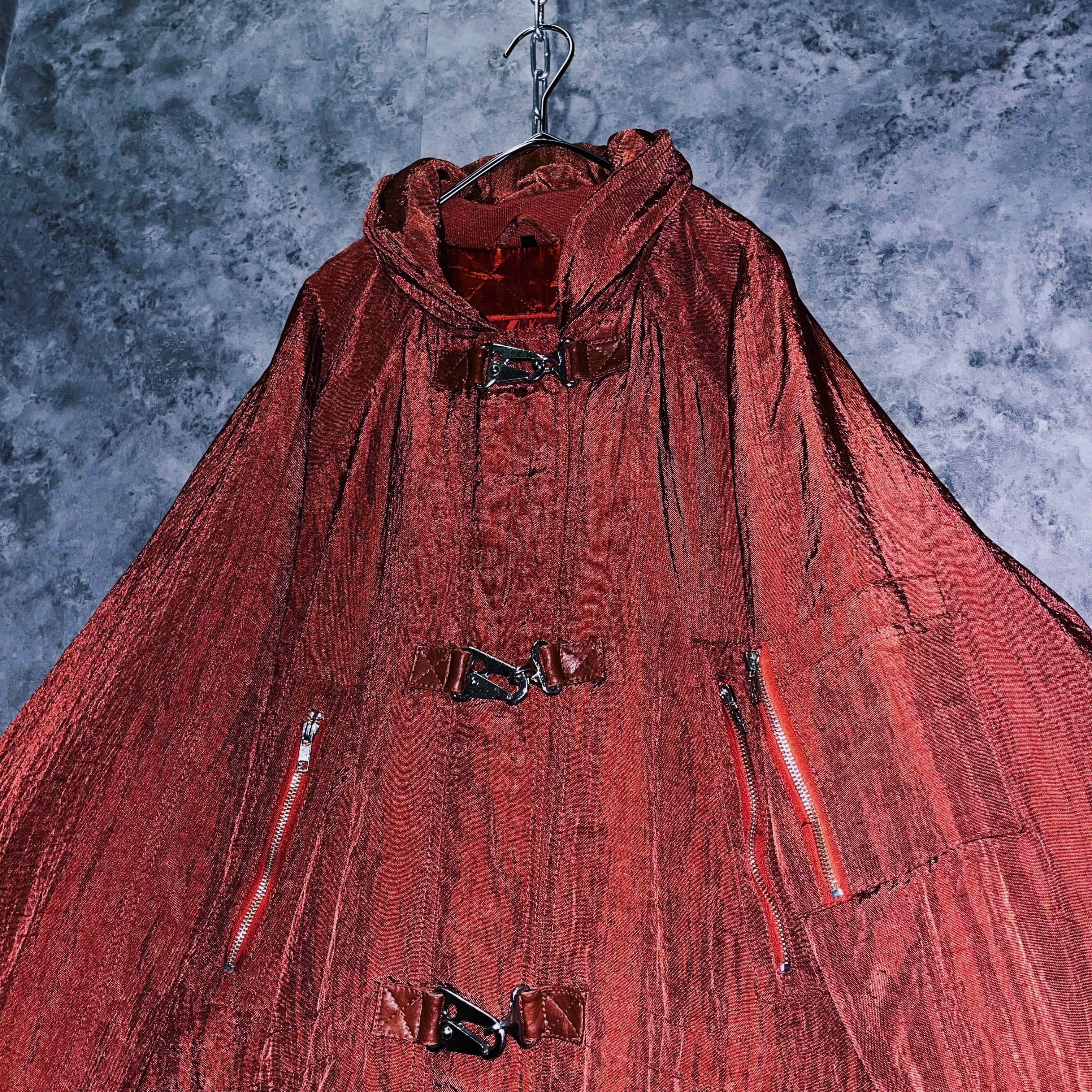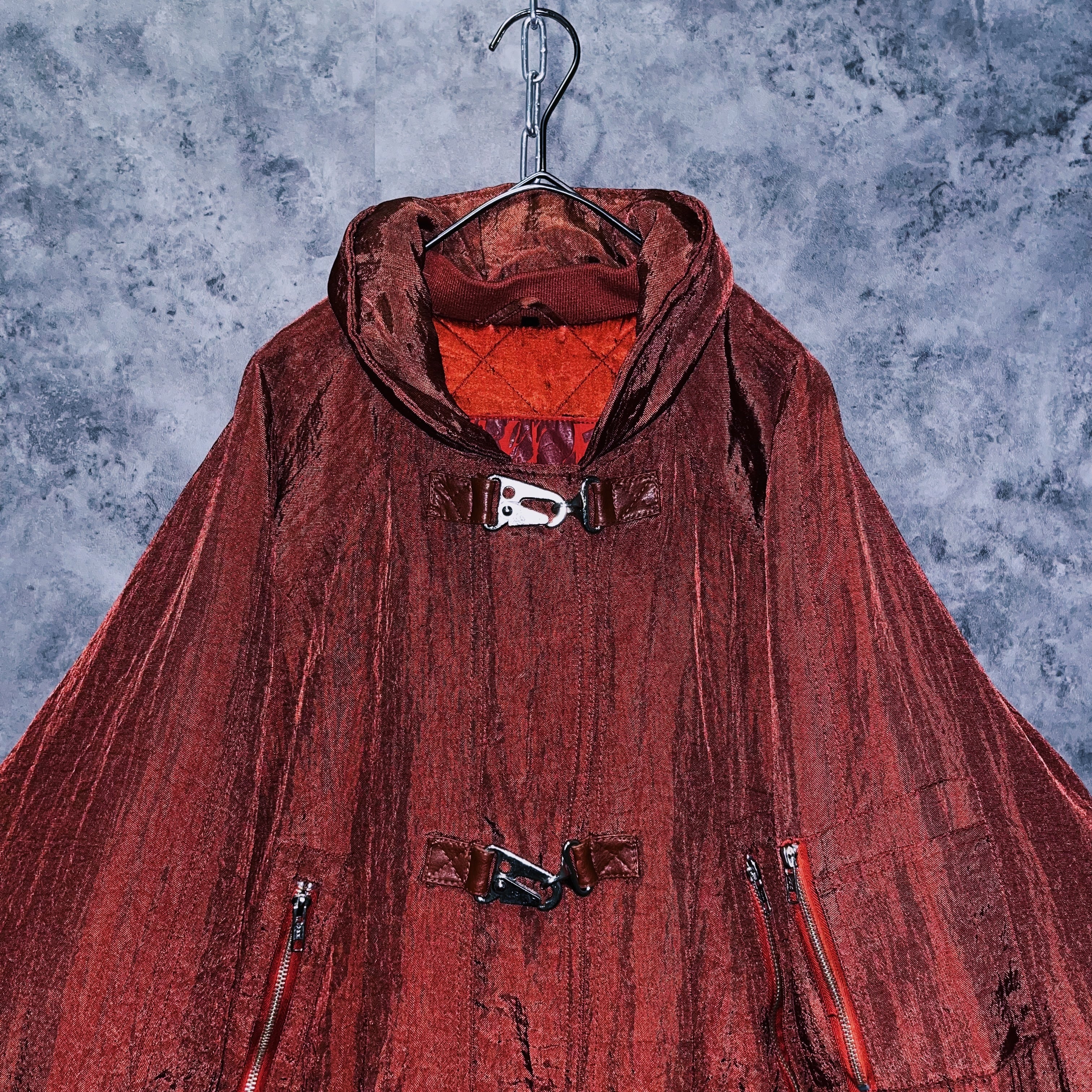 フロントの八の字のジップやフラップポケット、袖のシガーポケットと拘りのディテール。なんといっても魅力的なのがカラビナで前を閉めることができ、重厚感と高級感を演出。