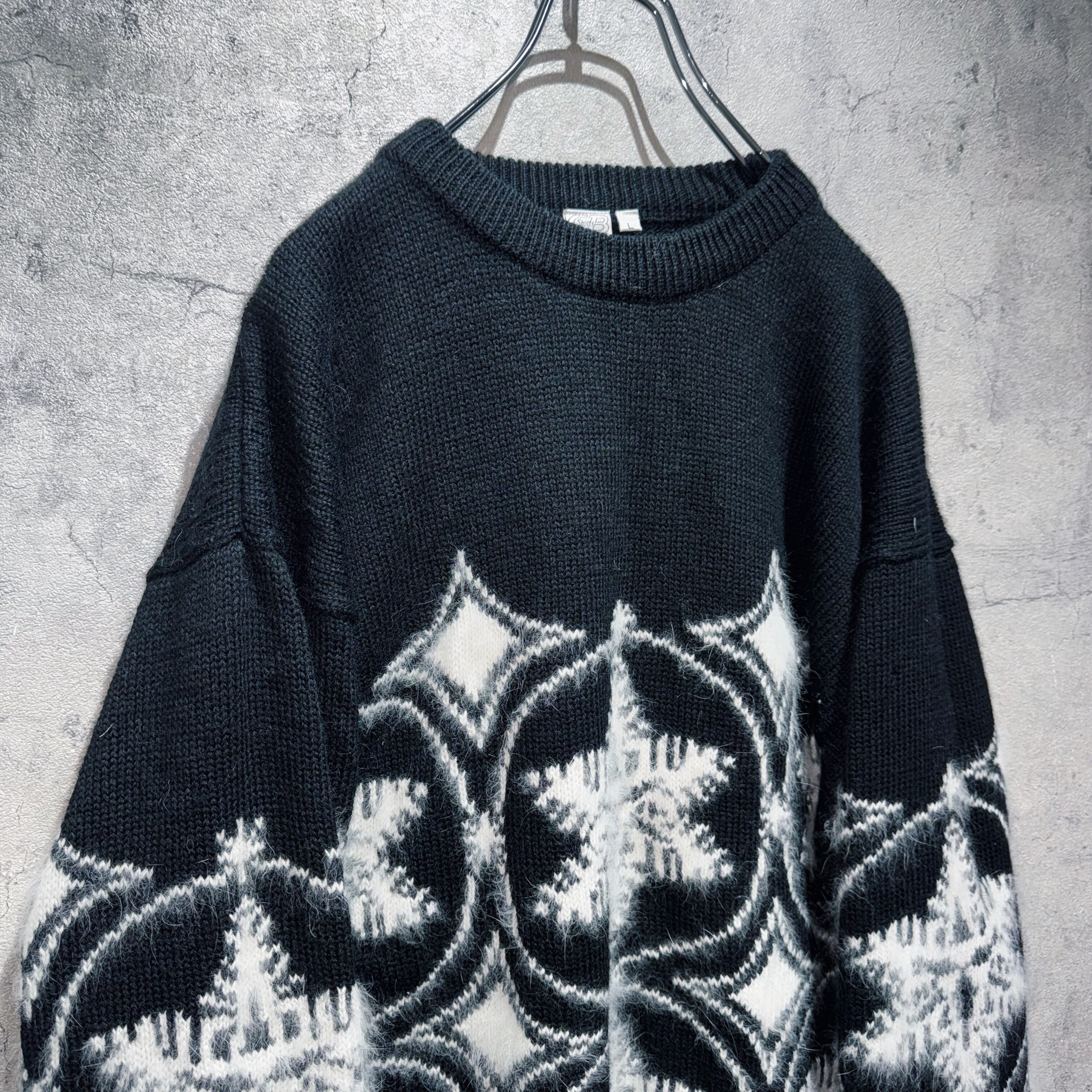 ヴィンテージエスニックパターンデザインウールプルオーバーニット