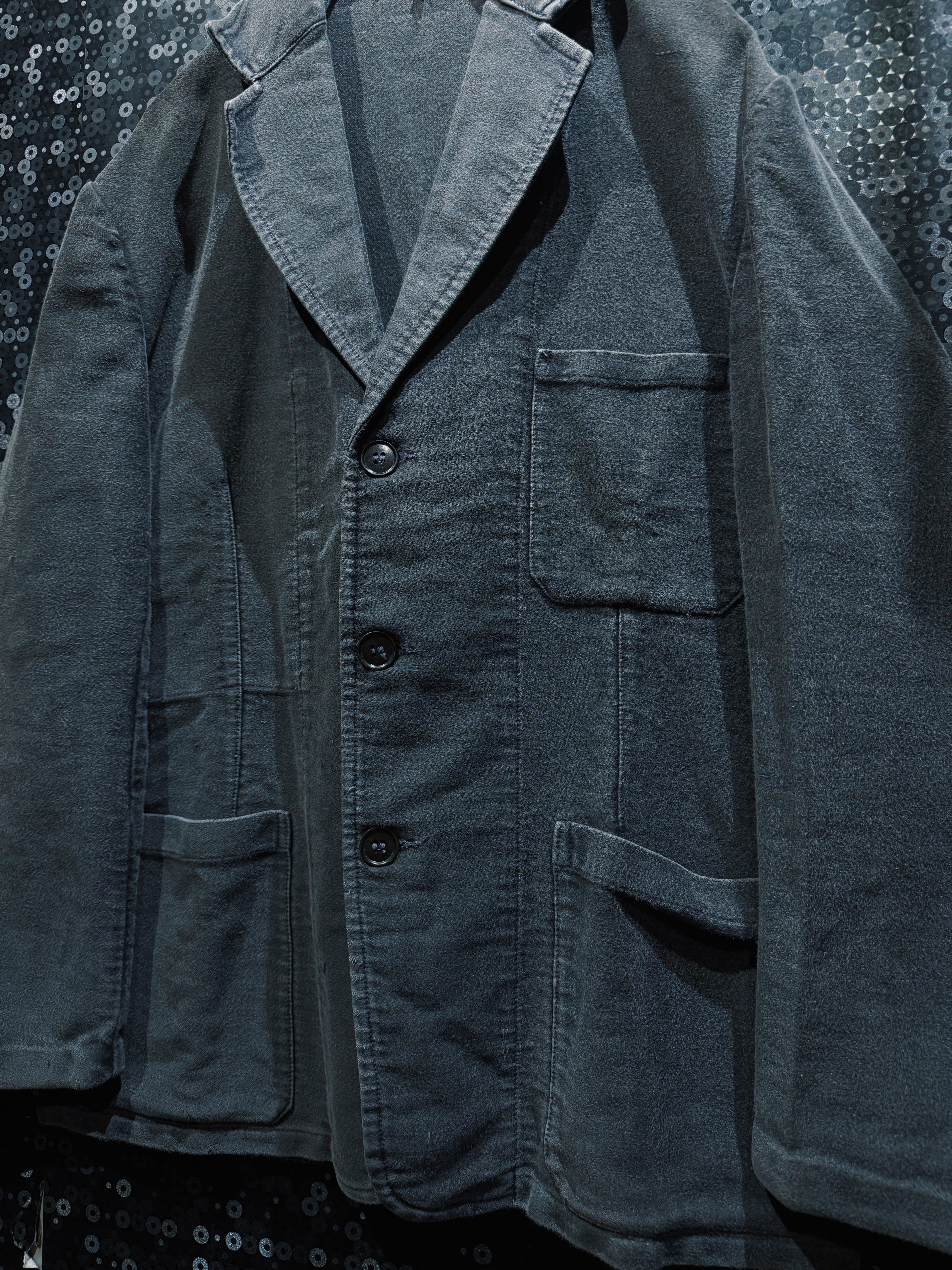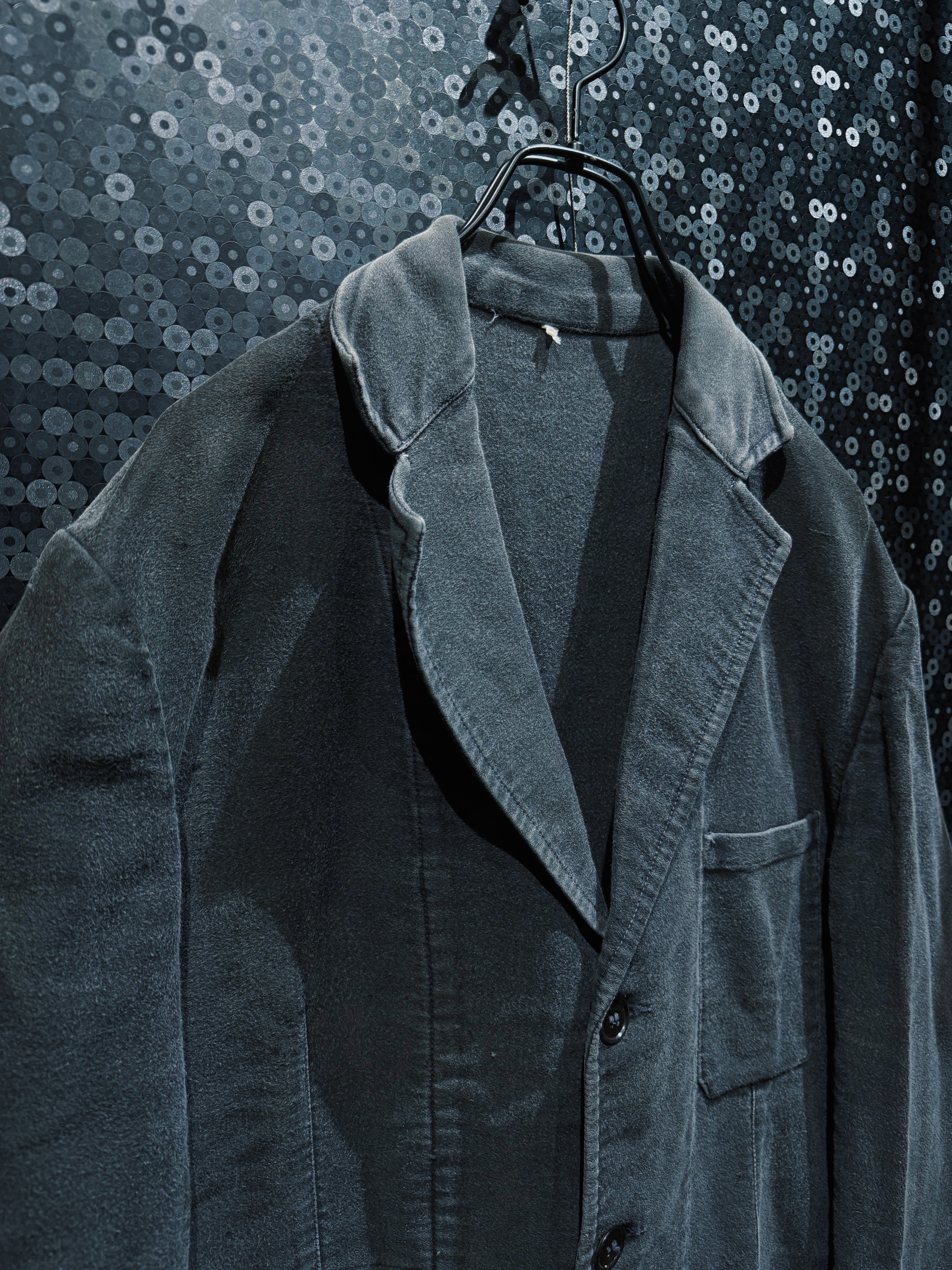 【ÆIEM】“vintage” black moleskin work tailored jacket with deep fading & rare texture