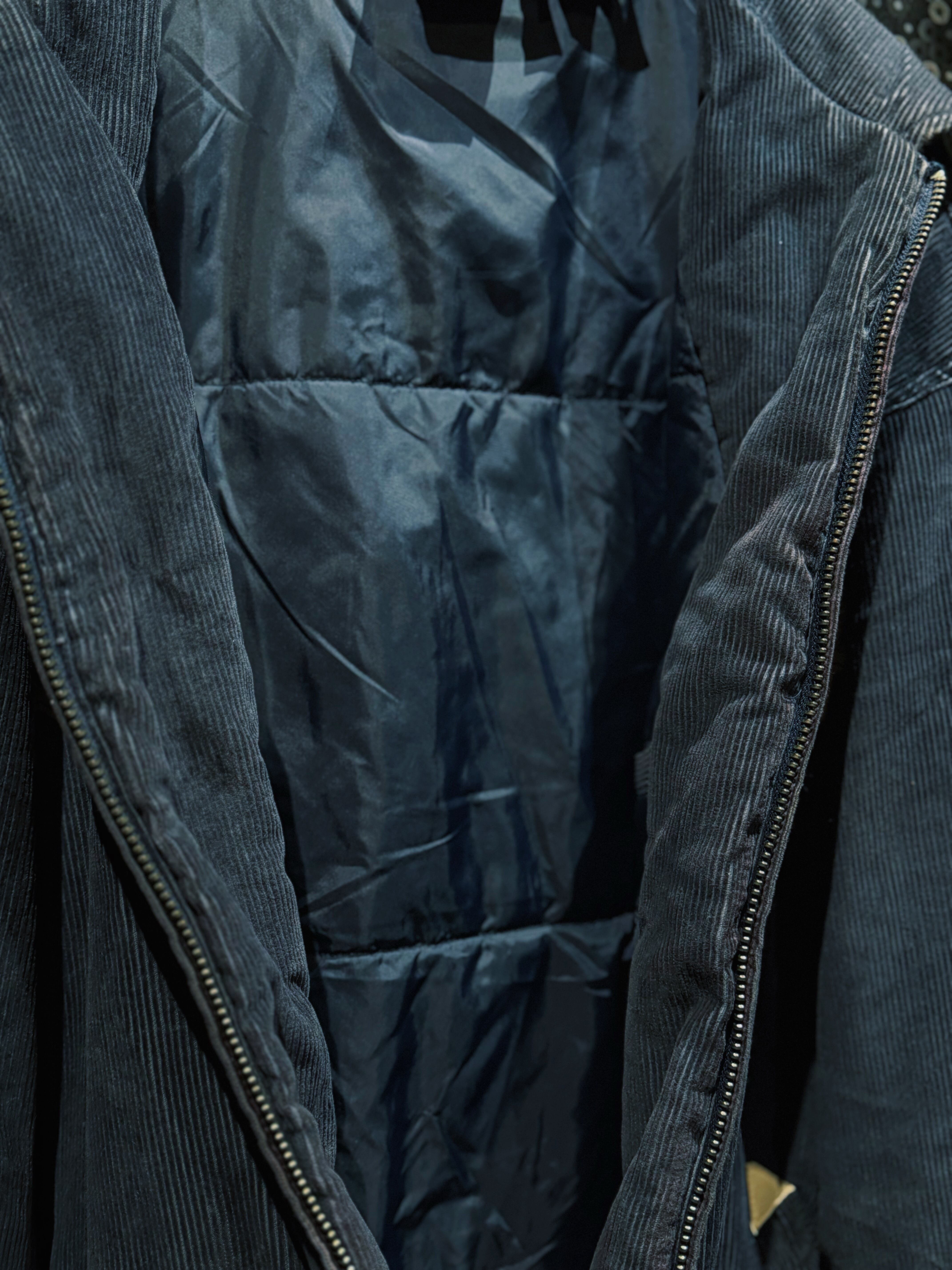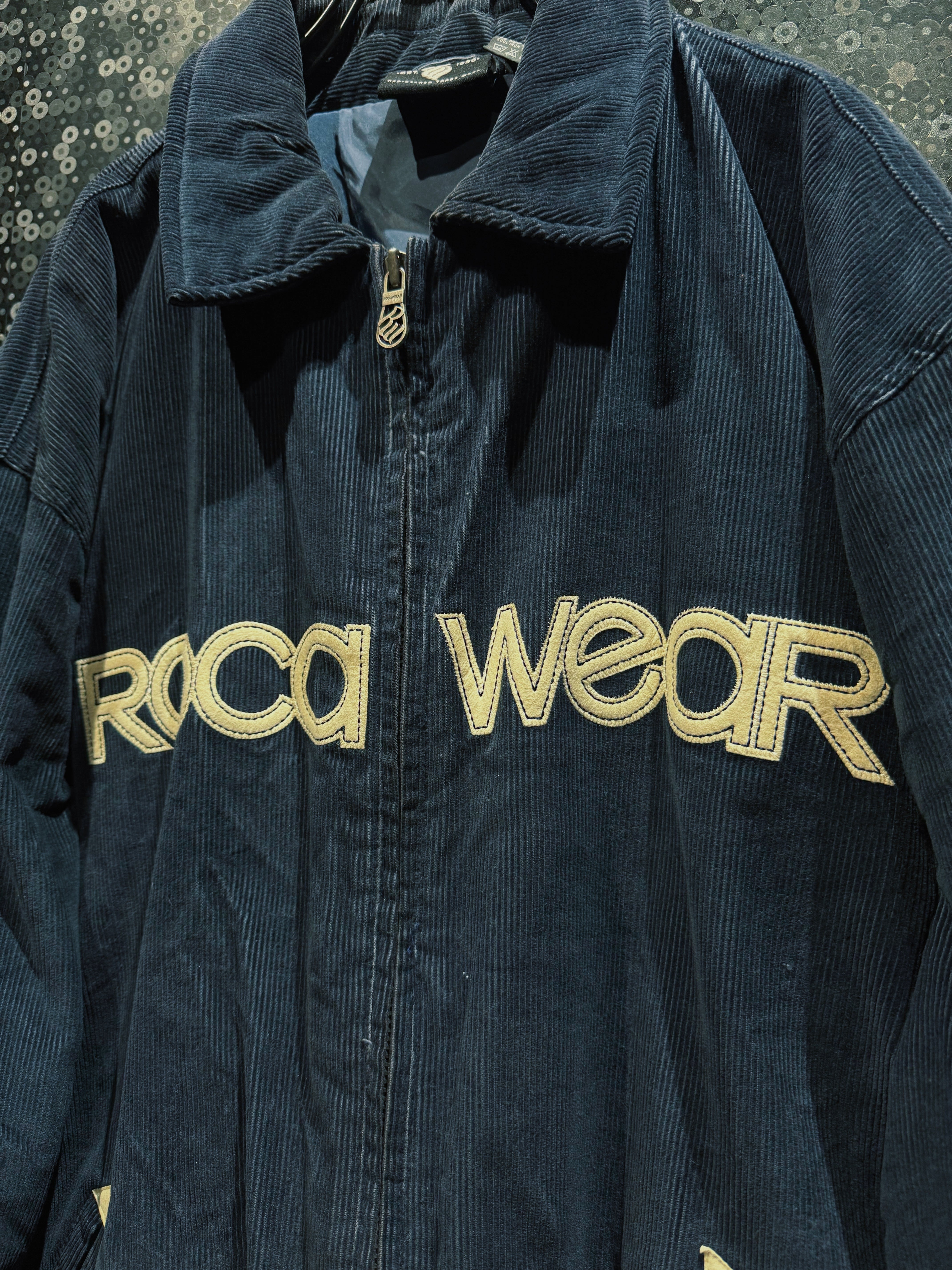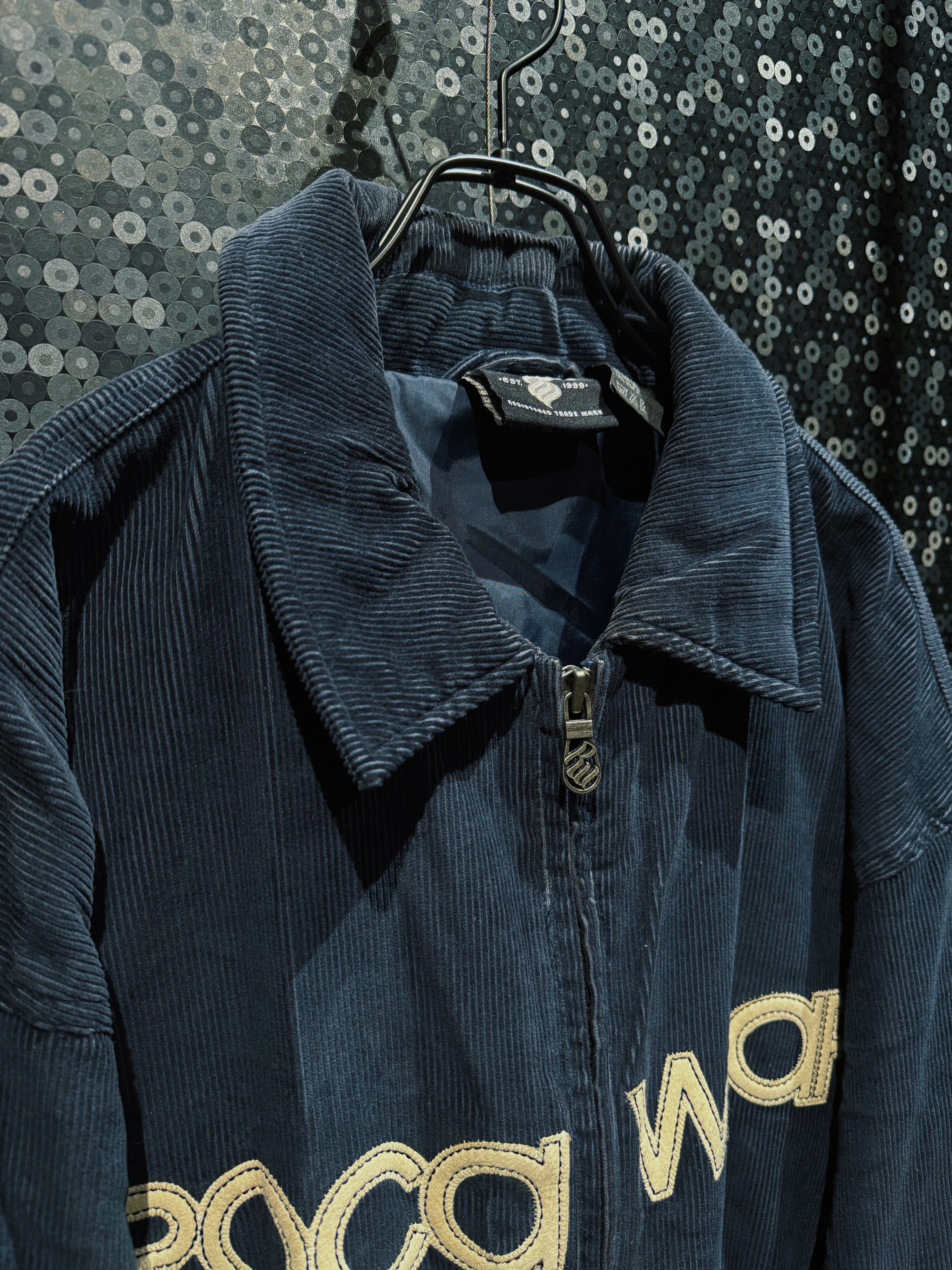 2000年代USストリートを語る上で欠かせない存在、Rocawearによるヴィンテージコーデュロイジャケット。ネイビーの太畝コーデュロイを贅沢に使用したボディに、中綿入りのボリューム感ある構造。ヒップホップカルチャーが最も勢いを持っていた時代の空気を、そのまま服に落とし込んだような一着。