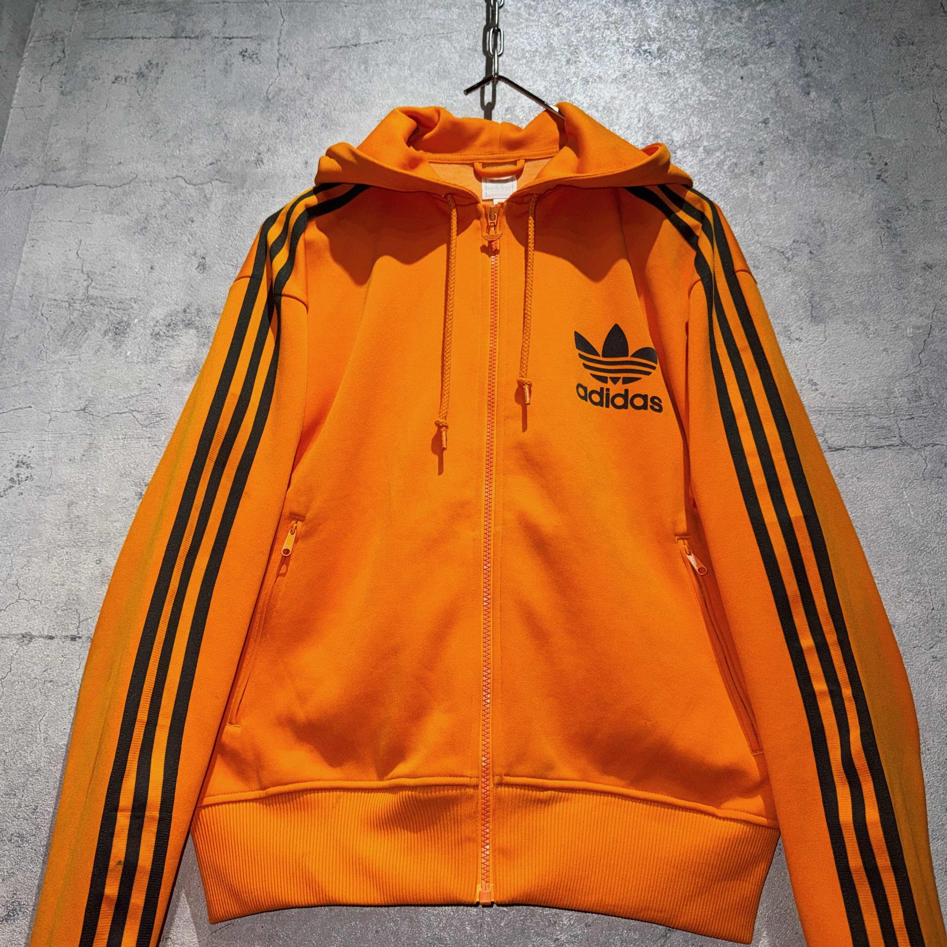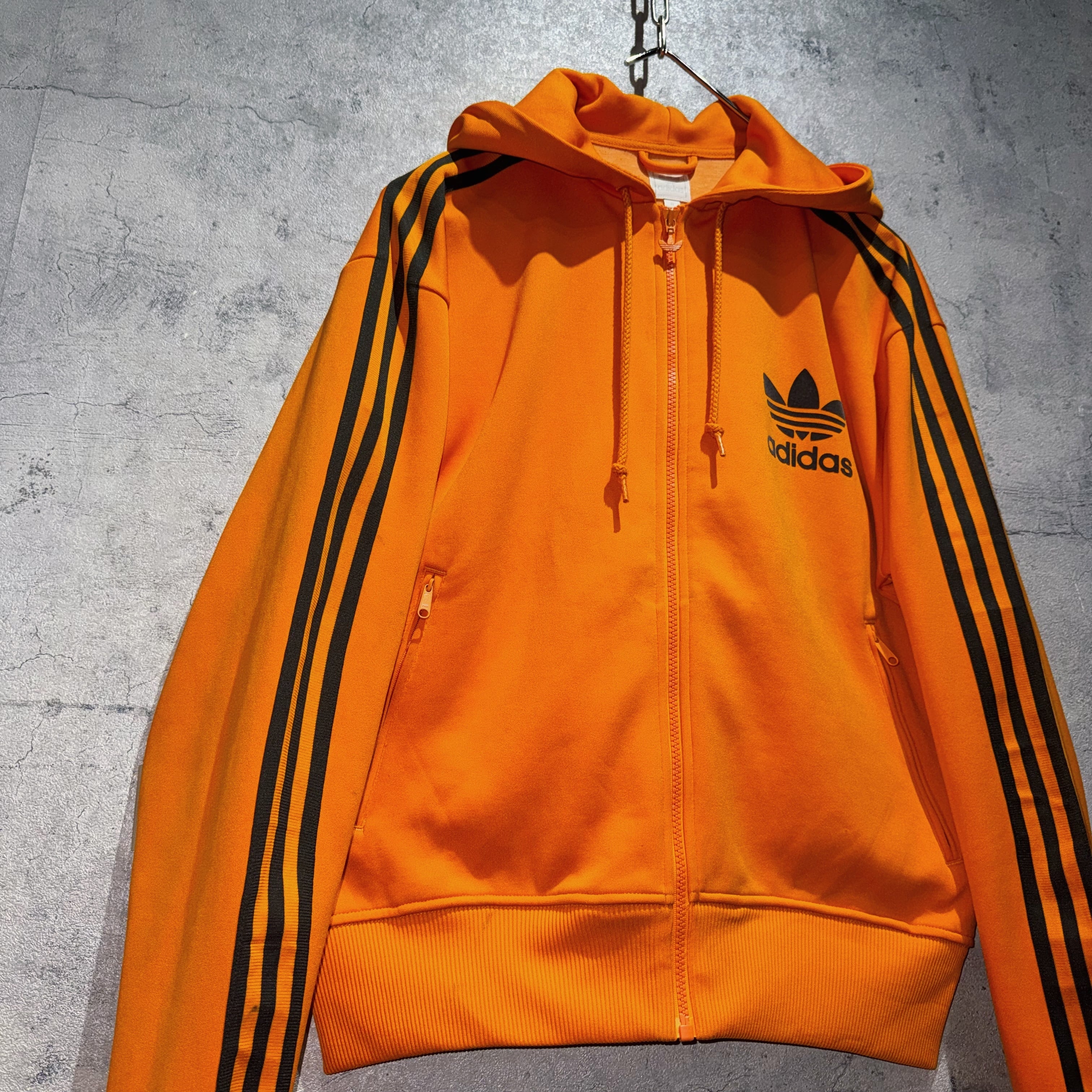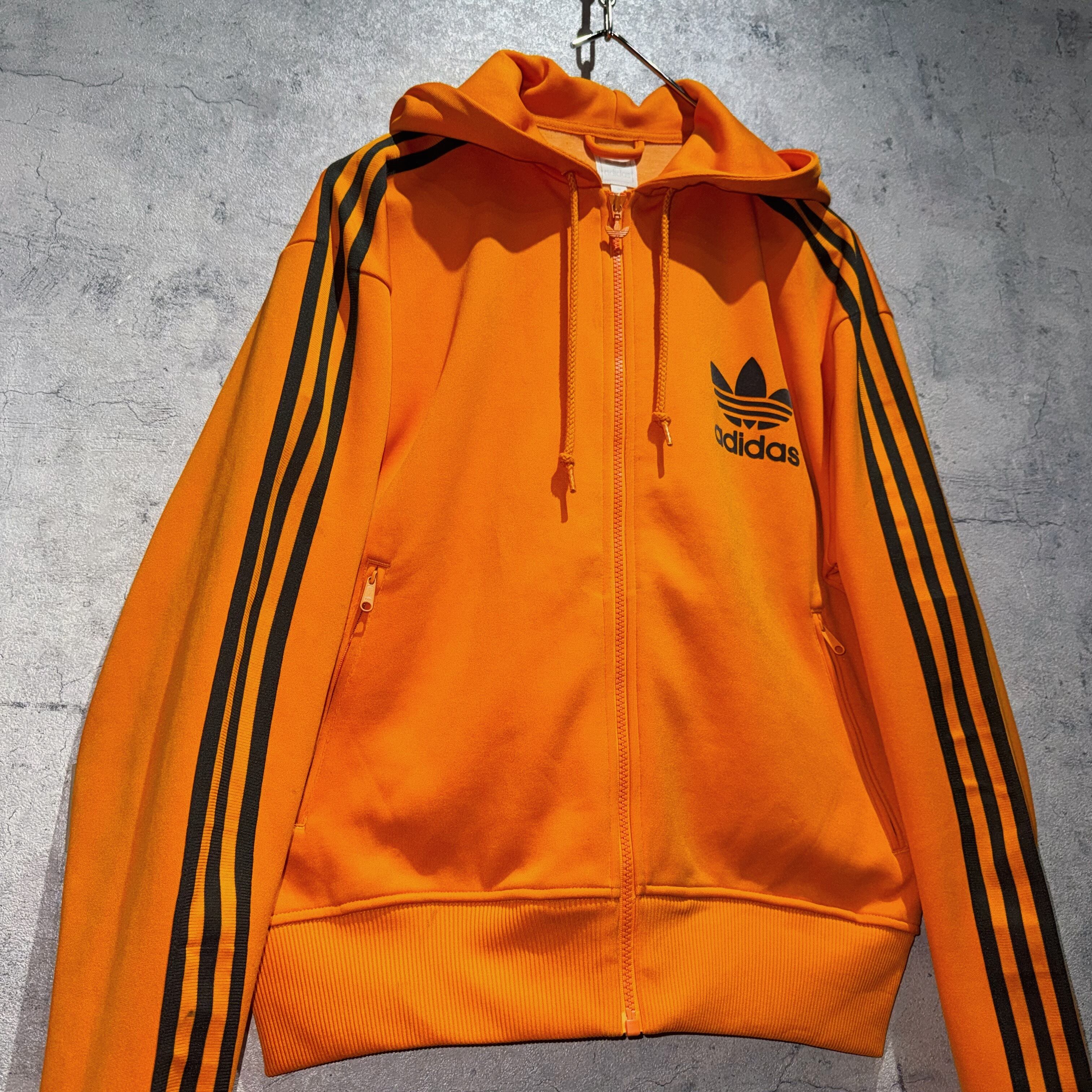 "アディダスオリジナルス"オレンジカラーフーディーデザイントラックジャケット